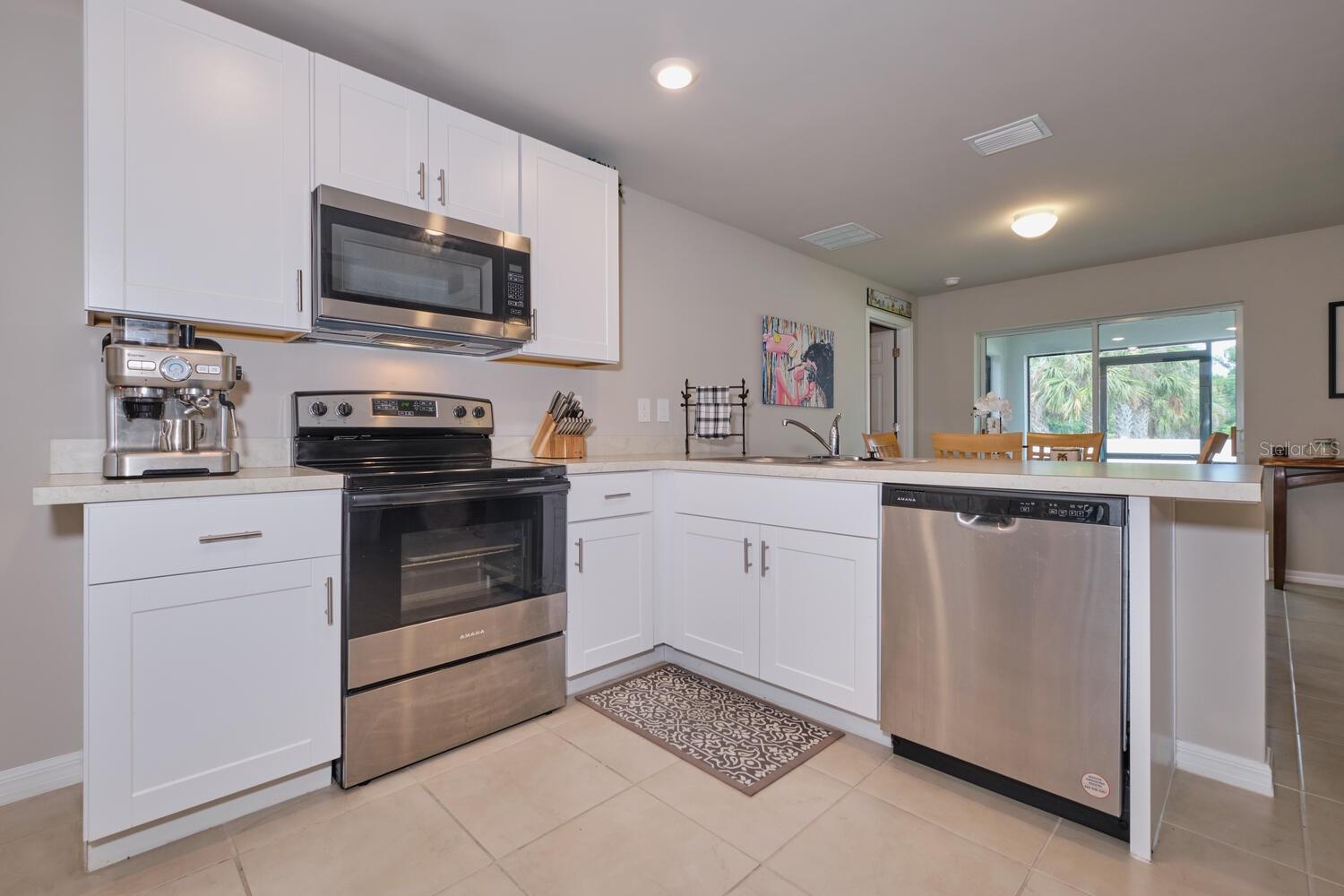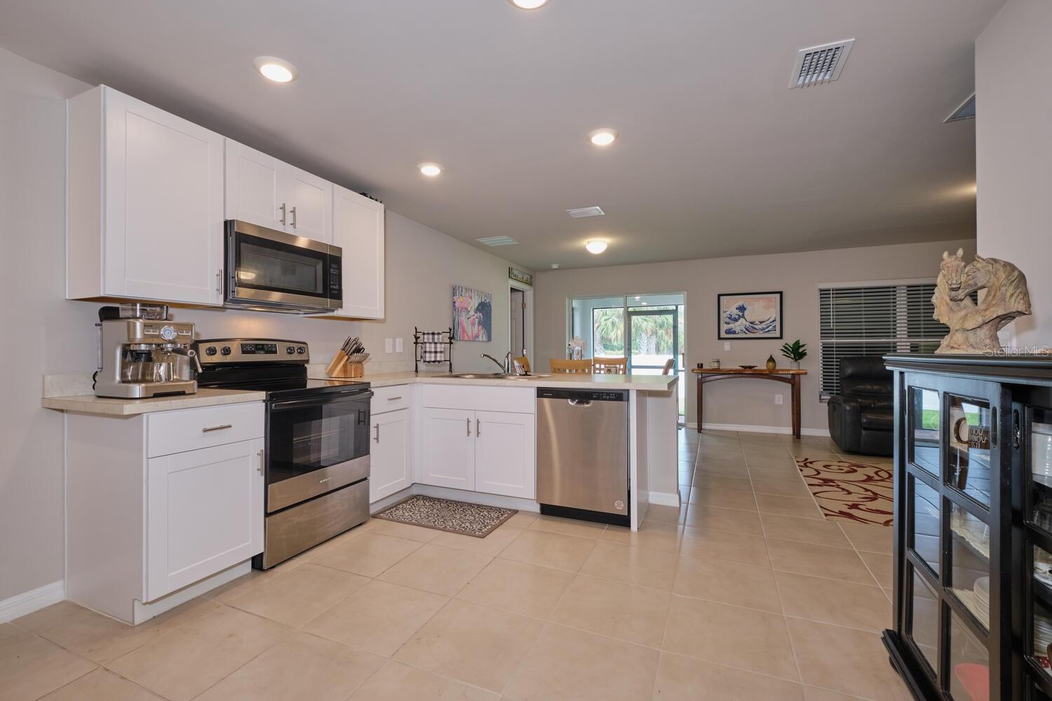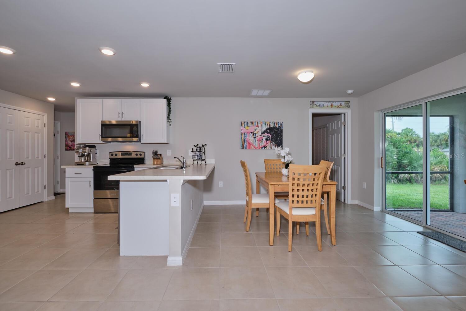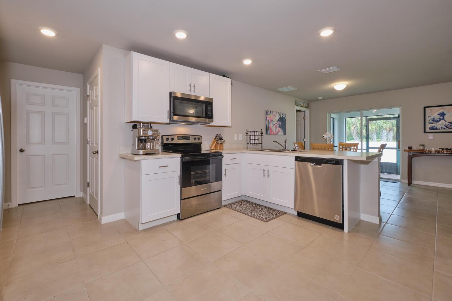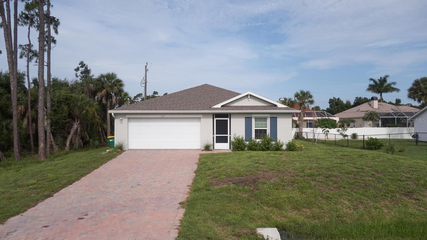 Better than new – This 2023 appealing one-story home includes many contemporary features, and an open-concept enhances the wonderful feel of this home. The well-appointed kitchen includes a large peninsula perfect for bar-style eating or entertaining, a walk-in pantry, and plenty of cabinets and counter space. The dining room and living room both overlook the covered and screened lanai, which is a great area for relaxing and dining al fresco. The main bedroom located at the back of the home for privacy, can comfortably fit a king-size bed, and includes an en suite bathroom with shower and big walk-in closet. Two other bedrooms share a second bathroom with tub and linen closet. The two-car garage connects to the front hallway where the laundry room and an extra storage closet are also located. No HOA and X-Flood Zone. The home is in the heart of Port Charlotte with easy access to US-41 and I-75, all area restaurants, shopping & medical centers. Perfect spot to start living your Florida dream. Located on a quiet street - you can enjoy all the activities the area has to offer including golfing, fishing, boating & wonderful Gulf beaches & then return home to this affordable, move-in ready home. Great starter home or bargain for Investors.