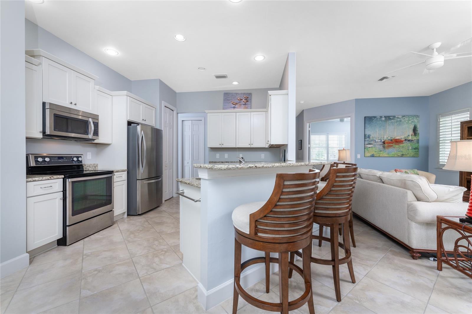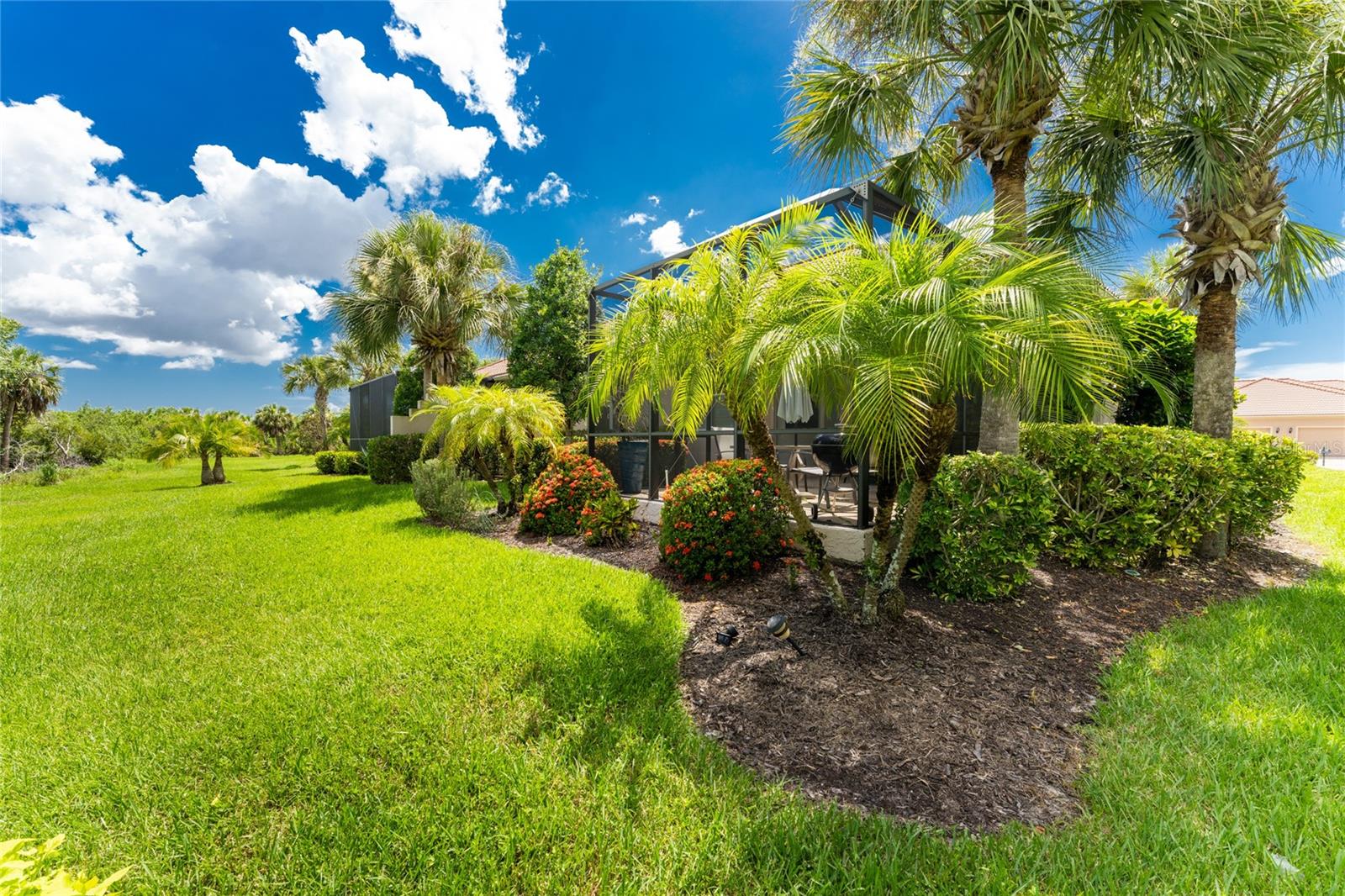 Welcome to Paradise! Enter this stunning, gated community and be greeted by breathtaking views of mature landscaping nestled within nature preserves, lakes, and ponds. At the heart of the community lies the renowned Riverwood Golf Course, a Gene Bates-designed 72-par championship course, proudly ranked among Golf Advisor's top 50 places to play golf. As you navigate through the serene community and approach this secluded cul-de-sac, you'll find a spacious driveway leading to a large two-car garage with ample storage space. Step inside to discover a thoughtfully designed floor plan that maximizes comfort and functionality. The home features a large kitchen with sparkling granite countertops and stainless-steel appliances. The versatile den can be used as an office or converted into a third bedroom for extended family visits. The large primary bedroom includes an extra-large walk-in closet, while the extended screened lanai offers the perfect relaxing space for outdoor living. Enjoy an evening glass of wine after a day of golfing or dine al fresco, surrounded by the unparalleled tranquility and beauty of the preserve behind the home. The home's large, bright windows are adorned with upgraded plantation shutters, and a new roof was installed in 2023. Enjoy peace of mind with comprehensive hurricane protection, ensuring safety and security during stormy seasons. Outside, indulge in a wealth of world-class amenities, including a resort-style pool and spa, tennis courts, croquet and pickleball facilities, and a private beach club. Stay active with bocce, a large fitness center, and participate in vibrant community events. For those who appreciate leisure and creativity, the community also features a library and an arts and crafts center. This active community promises a lifestyle of luxury, relaxation, and endless recreational opportunities. Come experience the perfect blend of nature, comfort, and community in this exceptional home.
