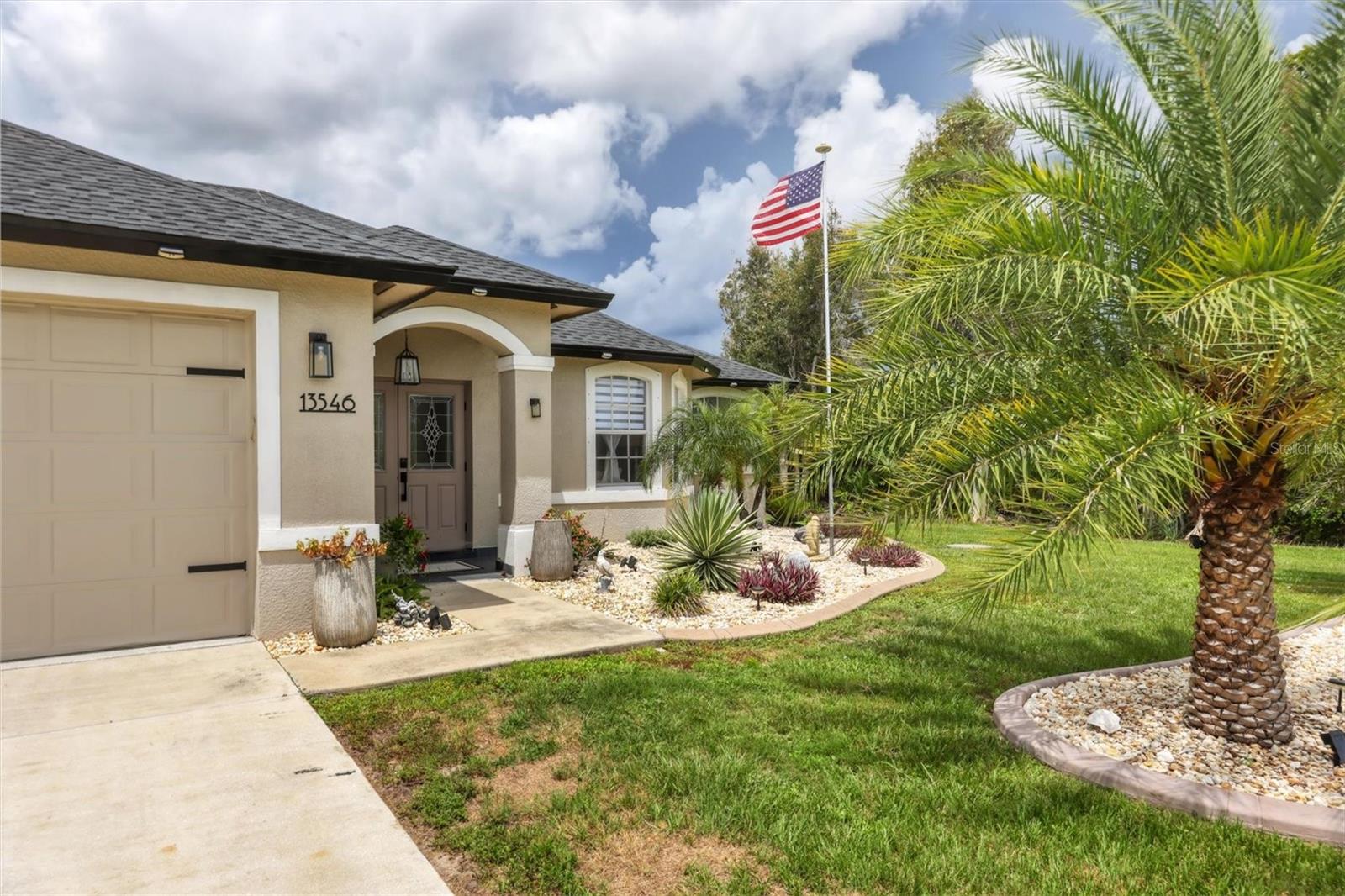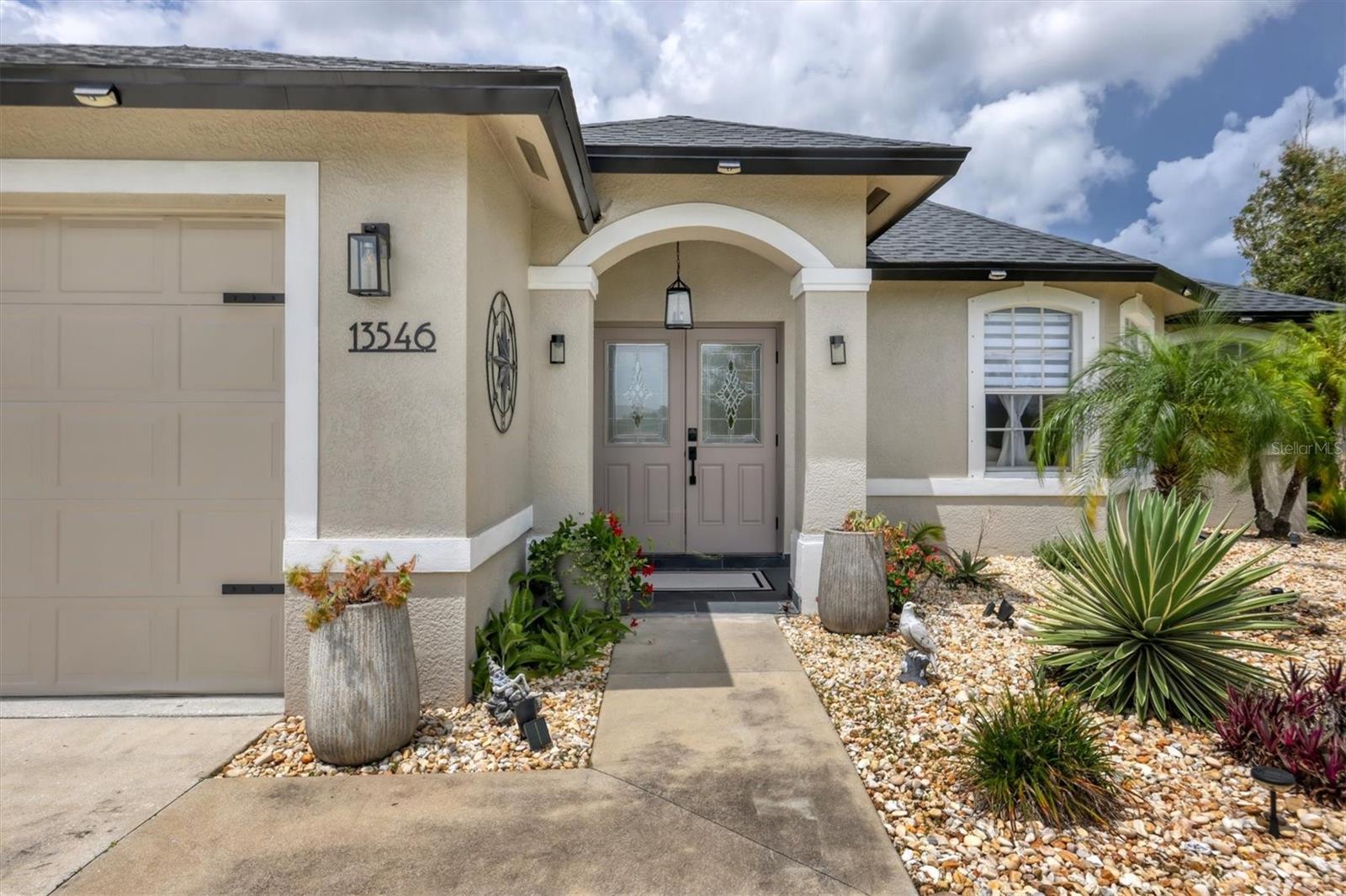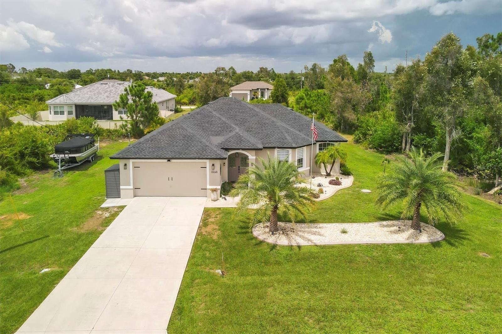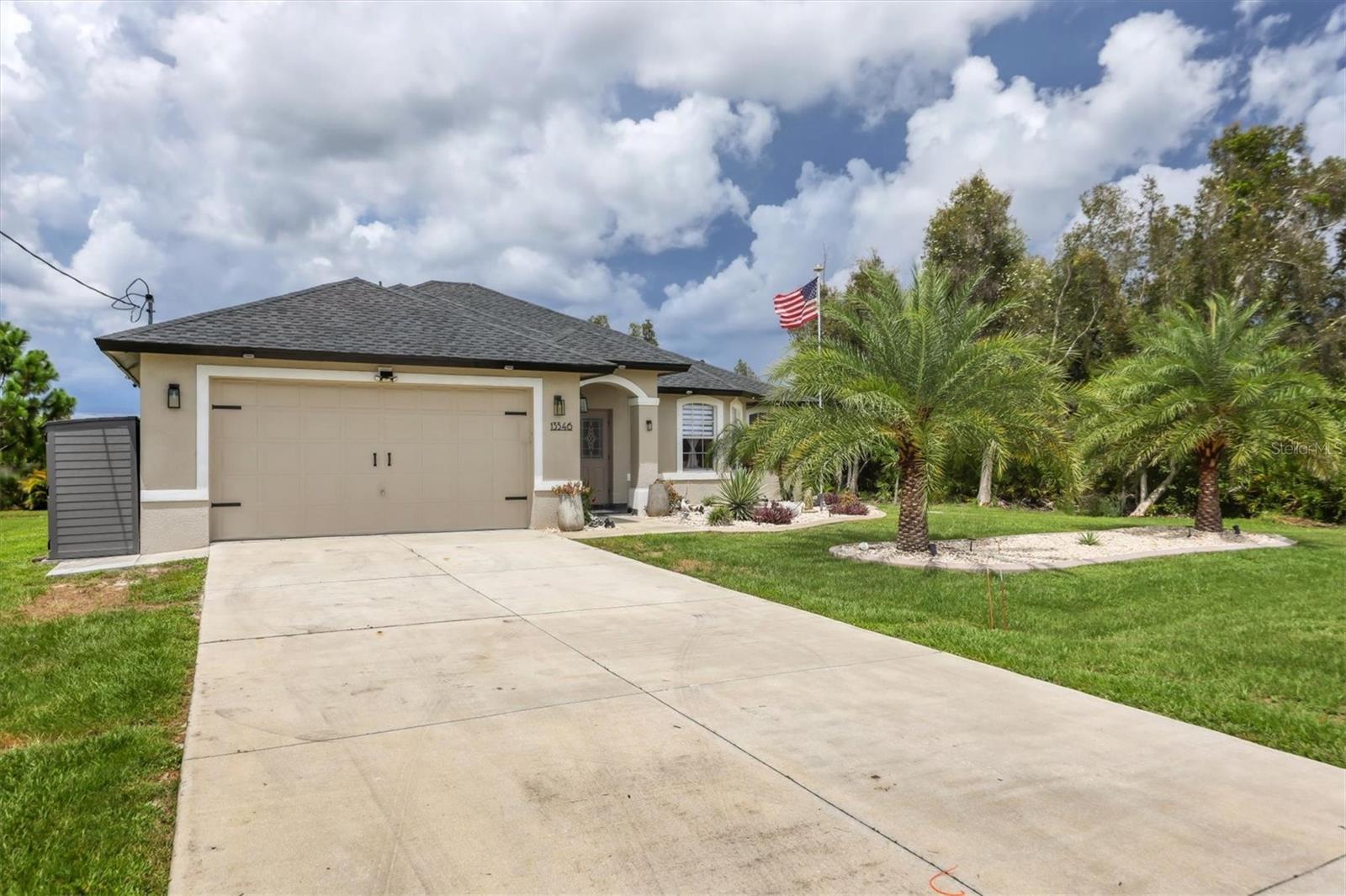 Beautiful pool home in desirable South Gulf Cove. This light bright home features 3 bedrooms, study/ den, and 2 full baths. The double entry doors lead into the living area with tons of natural light. This home offers tile throughout as well as soft neutral paint colors. The kitchen has plenty of cabinetry for storage, granite counter tops, stainless appliances and has an opening into the great room. The great room is complemented with french doors that lead out to the oversized lanai and heated pool area. The generous master suite has access to the lanai and pool area through the sliders that help bring in lots of natural light. The ensuite master bath is nicely appointed with dual sinks and walk in shower. This impeccably kept home is complete with hurricane shutters. Upgrade's include New pool screens, all new appliances, new landscaping, new paint interior and exterior and new flooring.