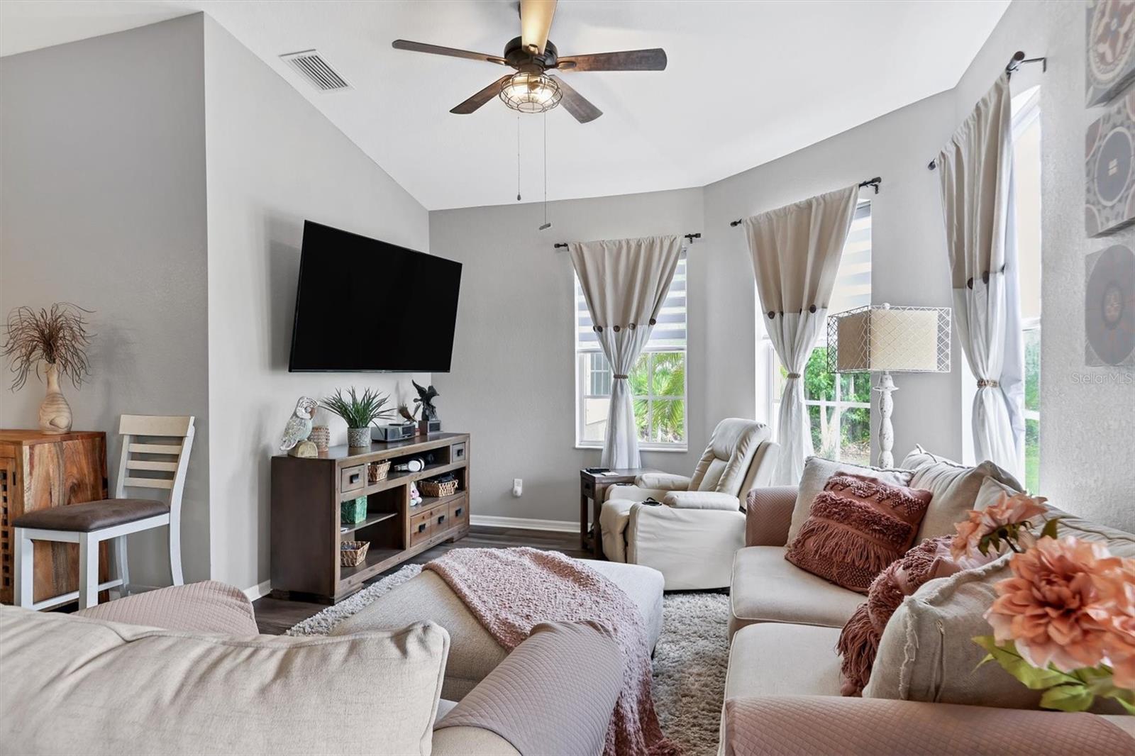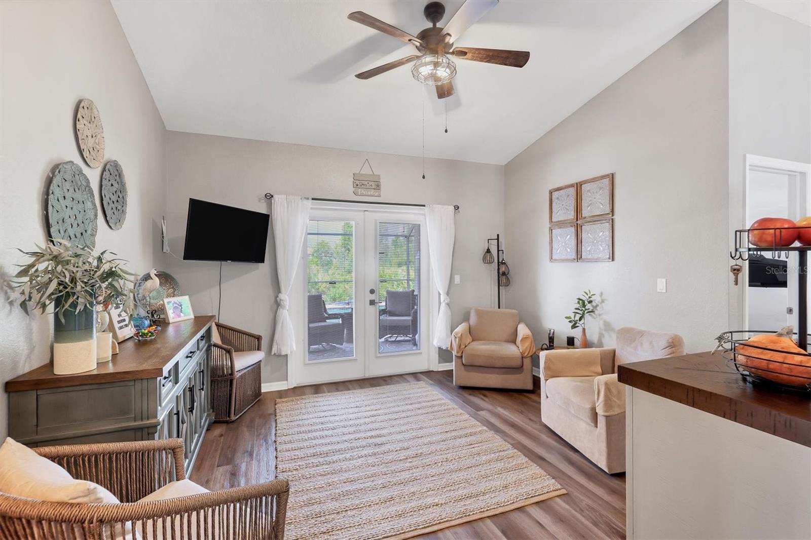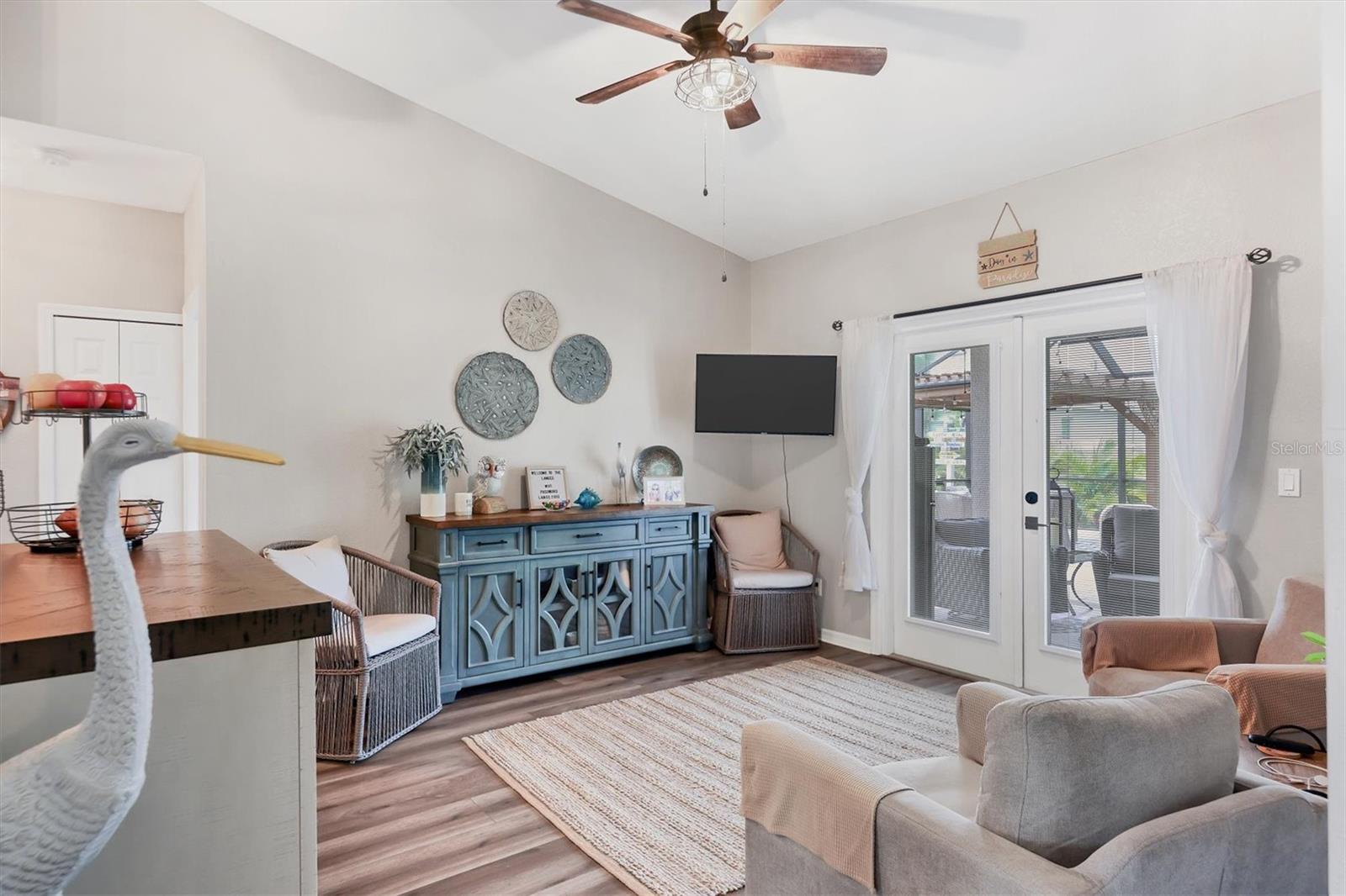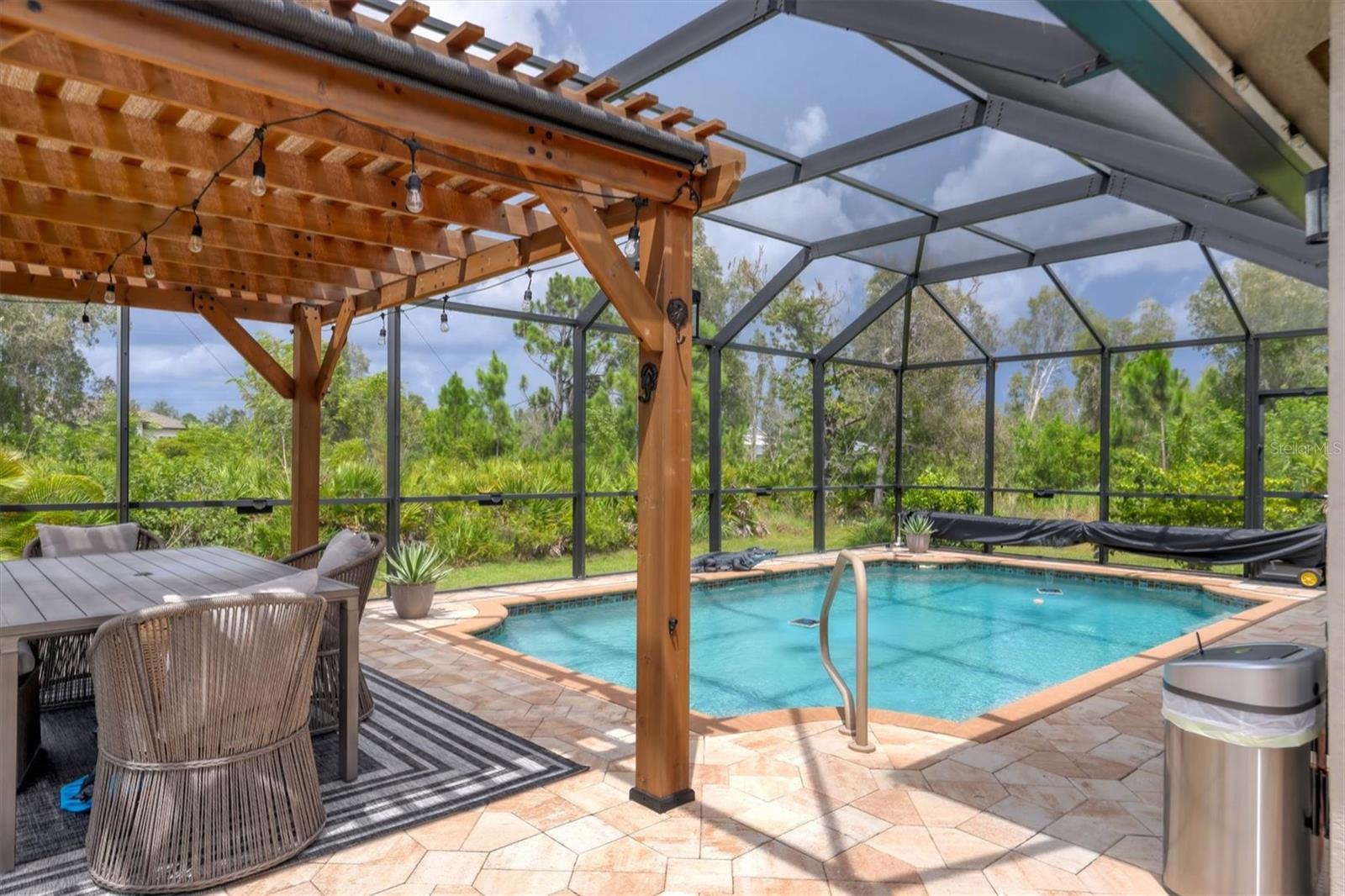 Beautiful pool home in desirable South Gulf Cove. This light bright home features 3 bedrooms, study/ den, and 2 full baths. The double entry doors lead into the living area with tons of natural light. This home offers tile throughout as well as soft neutral paint colors. The kitchen has plenty of cabinetry for storage, granite counter tops, stainless appliances and has an opening into the great room. The great room is complemented with french doors that lead out to the oversized lanai and heated pool area. The generous master suite has access to the lanai and pool area through the sliders that help bring in lots of natural light. The ensuite master bath is nicely appointed with dual sinks and walk in shower. This impeccably kept home is complete with hurricane shutters. Upgrade's include New pool screens, all new appliances, new landscaping, new paint interior and exterior and new flooring.