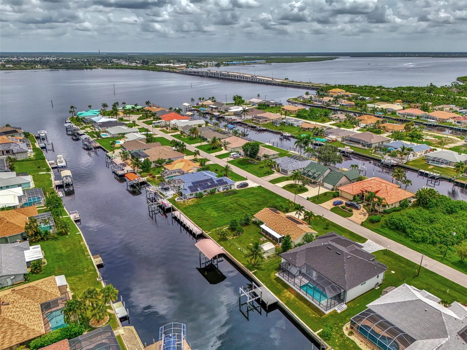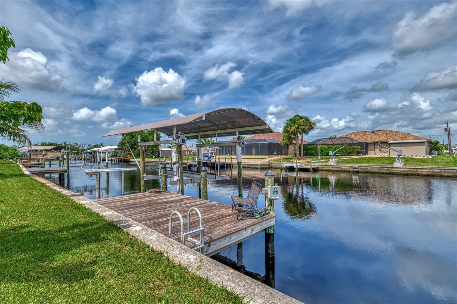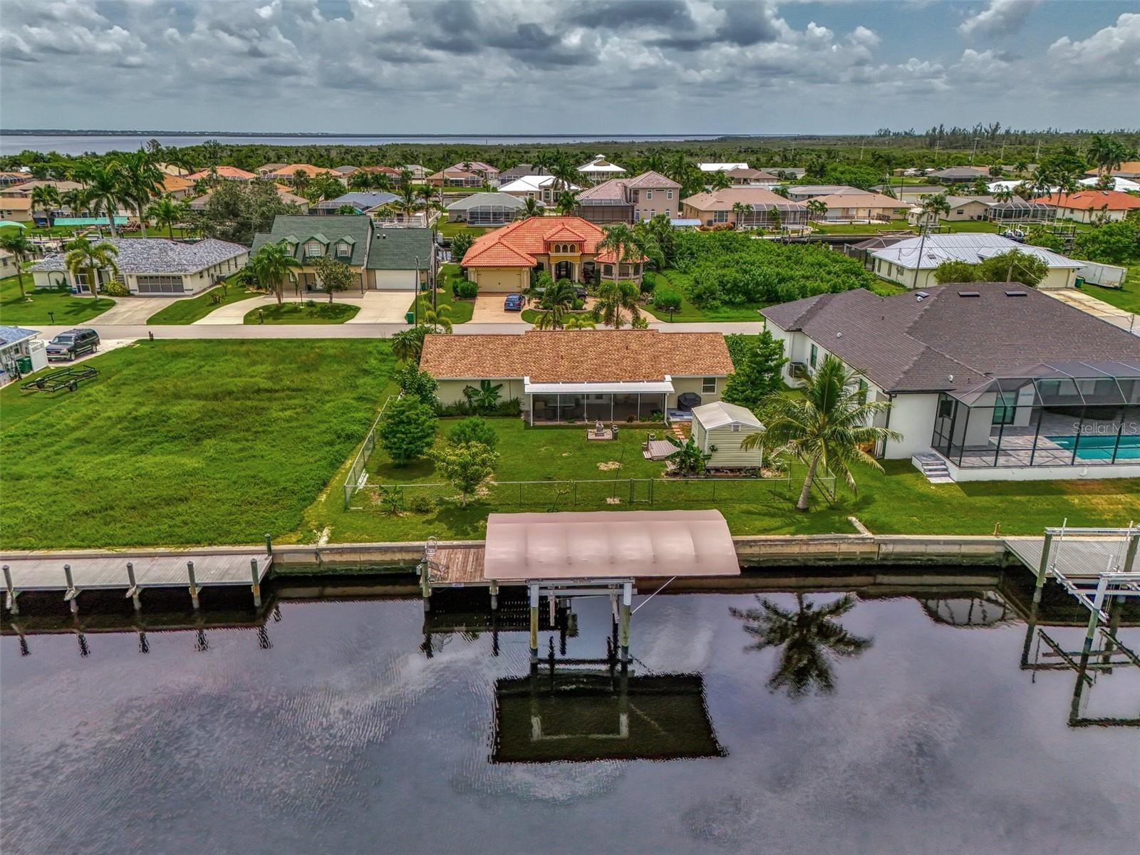The Perfect Starter Home for Boat Lovers!! This charming 3-bedroom, 2-bathroom home on the Forbes Waterway, offers direct access to the Myakka River. Whether you're into fishing or cruising the pristine waters of southwest Florida, this home has got you covered. You can head north on the Myakka to enjoy the natural beauty and wildlife along the river, or head south to visit Sunseeker Resort or Fisherman's Village in Charlotte Harbor. You can even go west to Boca Grande Pass, the tarpon fishing capital of the world. This house features many recent improvements including a NEW ROOF as of 2023, a lanai restoration, SOLAR panels installed in 2023 and a recent A/C upgrade in 2021. The 10x20 Dock features a covered boat lift with a new Canopy installed in 2024 along with a cleaning station, electric and water at the dock. The fenced backyard is a gardeners delight with an abundance of plants and flowers, and is a perfect retreat for your pet and also includes a shed with electricity, and a screened back lanai for relaxing. There is room for a pool in the future as well if you so desire! As a resident of Gulf Cove, you can also make use of the Gulf Cove private community boat ramp and the waterfront community park, playground, and pavilion. Plus, joining the Homeowners Association (HOA) is optional, with an annual fee of $75 for membership and an annual fee of $75 for use of the boat ramp.