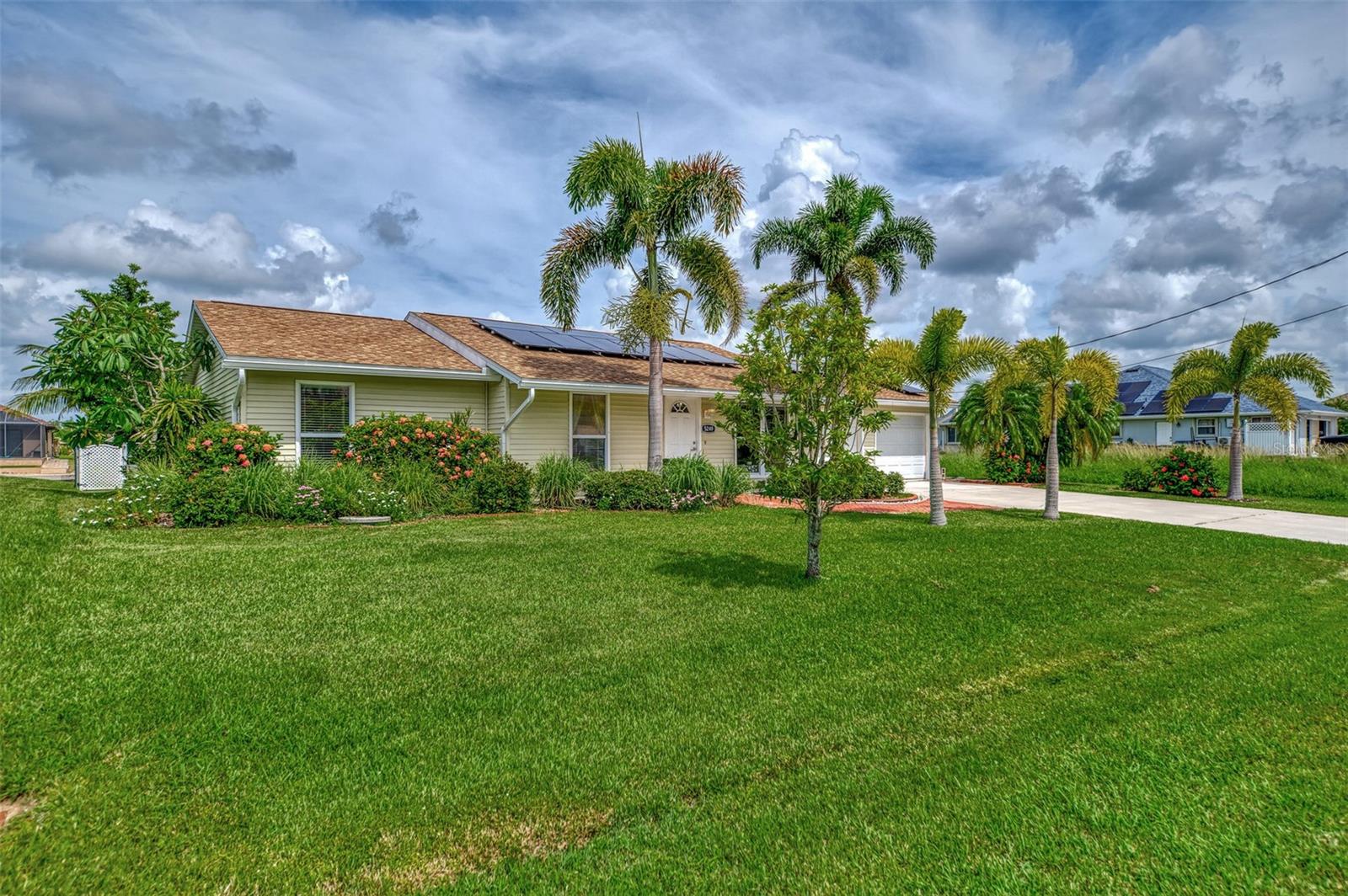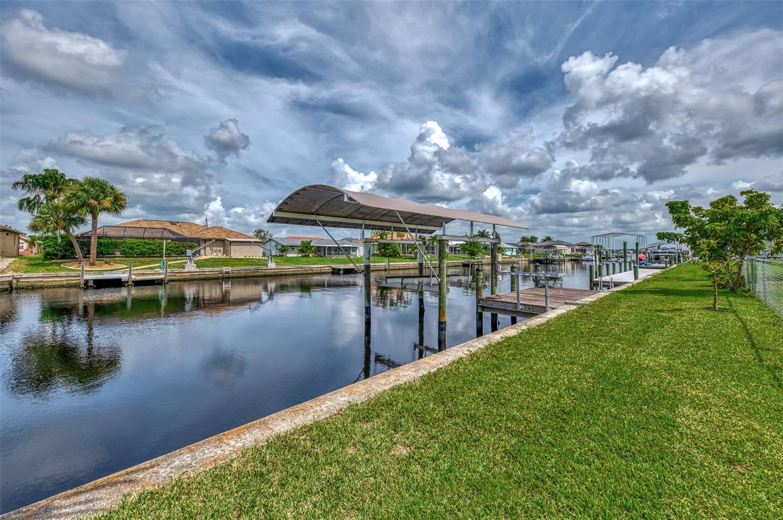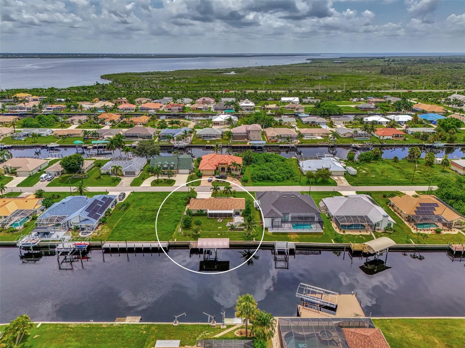 The Perfect Starter Home for Boat Lovers!! This charming 3-bedroom, 2-bathroom home on the Forbes Waterway, offers direct access to the Myakka River. Whether you're into fishing or cruising the pristine waters of southwest Florida, this home has got you covered. You can head north on the Myakka to enjoy the natural beauty and wildlife along the river, or head south to visit Sunseeker Resort or Fisherman's Village in Charlotte Harbor. You can even go west to Boca Grande Pass, the tarpon fishing capital of the world. This house features many recent improvements including a NEW ROOF as of 2023, a lanai restoration, SOLAR panels installed in 2023 and a recent A/C upgrade in 2021. The 10x20 Dock features a covered boat lift with a new Canopy installed in 2024 along with a cleaning station, electric and water at the dock. The fenced backyard is a gardeners delight with an abundance of plants and flowers, and is a perfect retreat for your pet and also includes a shed with electricity, and a screened back lanai for relaxing. There is room for a pool in the future as well if you so desire! As a resident of Gulf Cove, you can also make use of the Gulf Cove private community boat ramp and the waterfront community park, playground, and pavilion. Plus, joining the Homeowners Association (HOA) is optional, with an annual fee of $75 for membership and an annual fee of $75 for use of the boat ramp.