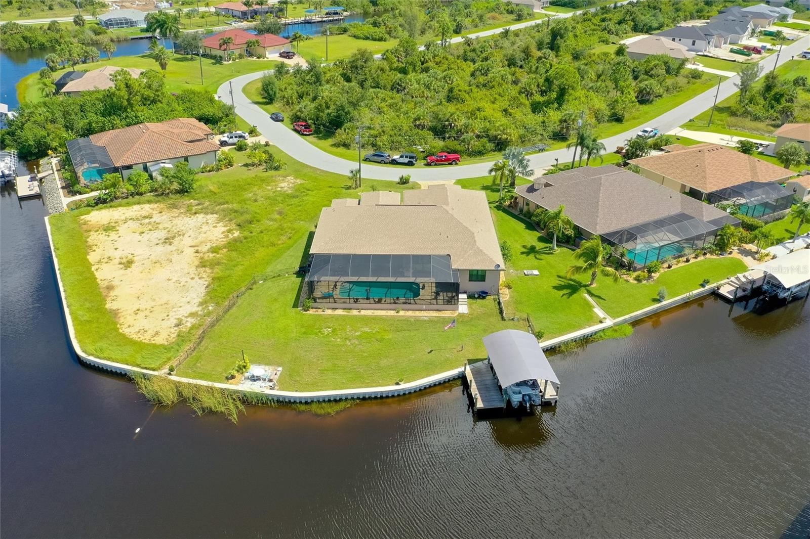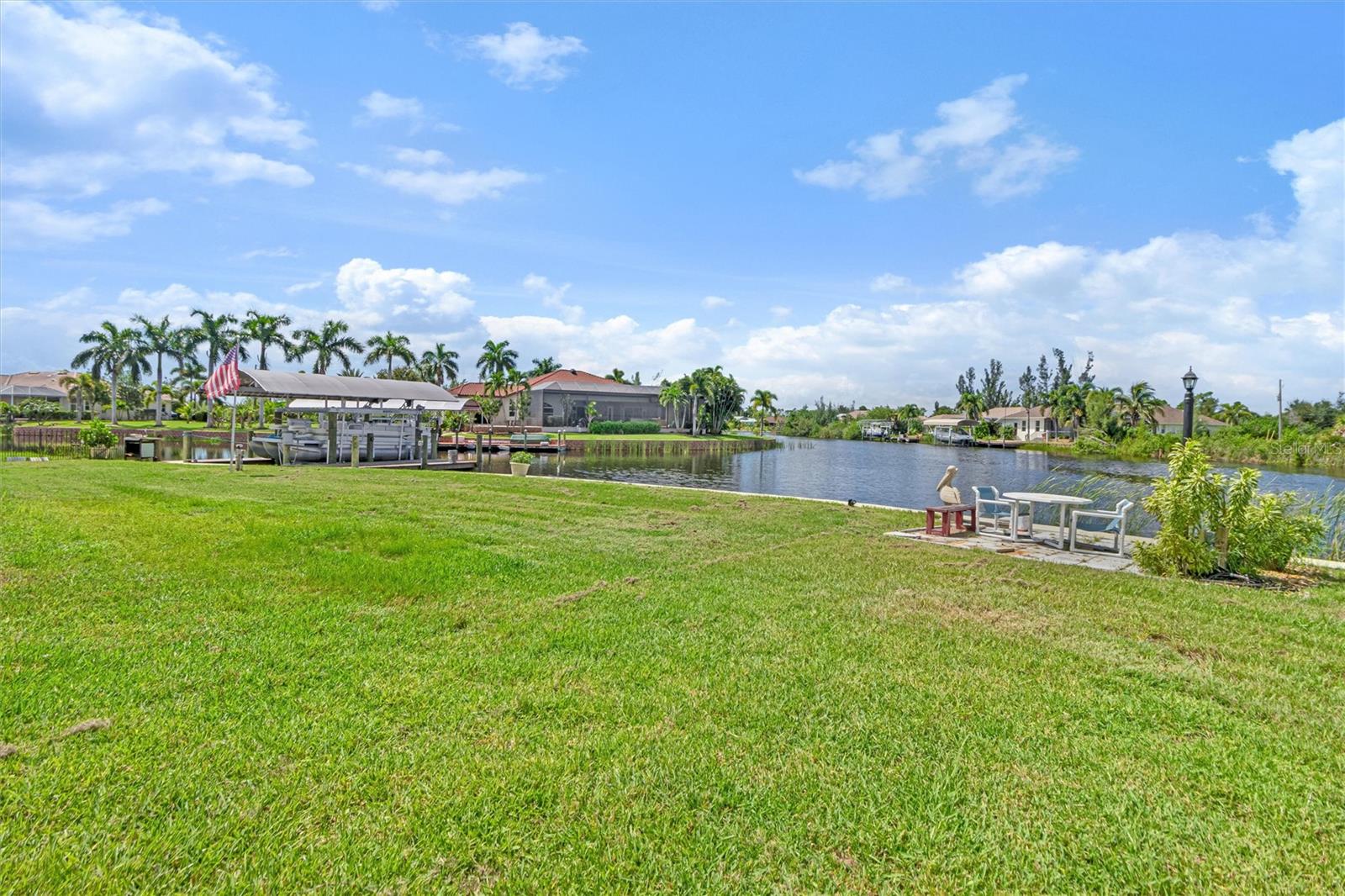 DRASTIC PRICE ADJUSTMENT 200K, SELLER SAYS SELL!!!!ENJOY "THE FLORIDA LIFESTYLE" in this Beautiful "WATERFRONT" CUSTOM BUILT Pool Home situated on a TIP LOT with 165' SEAWALL, Beautiful Sunsets and DRAMATIC WATERVIEWS of connecting canals in the WATERFRONT BOATING Community of SOUTH GULF COVE. This distinguished and well maintained home features 3 BEDROOMS, plus a BONUS OFFICE/DEN, 3 FULL BATHS and a 1/2 BATH with access to pool area. This home boasts a very spacious OPEN concept design with many UPGRADES!!! Features to include beautiful light fixtures, ceiling fans, TILED FLOORS throughout, CROWN MOLDING and tray ceilings. Kitchen is absolutely Gorgeous, Spacious and tastefully appointed with beautiful GRANITE countertops, a LARGE ISLAND and BREAKFAST BAR, PENDANT LIGHTING, beautiful wood cabinets, soft close drawers, tile backsplash, POT FILLER, All STAINLESS STEEL appliances include refrigerator, hooded range,dishwasher and microwave. A large BREAKFAST NOOK with 8'sliders to maxamize the waterview. Laundry room with utility sink, cabinetry and granite countertop with washer & dryer included. HUGE walk-in closet PANTRY. Split bedrooms, 2 spacious bedrooms with walk-in closets and 1 is being used as an in-law suite with bath and sliders to lanai and an awesome water view. Primary bedroom is spacious and has 8' sliders to lanai, 6 TRAY CEILINGSg with CROWN MOLDING, 2 walk-in closets and a linen closet. Beautiful Roman style walk-in TILED shower with niches and seating, DUAL VANITIES with GRANITE countertops...Spacious lanai has pavers and a beautiful POOL and outdoor shower, MORE FEATURES INCLUDE...All IMPACT GLASS Windows and SLIDERS are TINTED. 2 DOCKS(8x20'/4x20') with ELEC. and WATER, COVERED 10K BOAT LIFT, Seperate outdoor Paver Pad has Elec. and water and can be used as a sitting and grilling area. 3 CAR GARAGE, Nice landscaping and a brick paver driveway. SOUTH GULF COVE is only minutes away from Beautiful Southwest FLORIDA BEACHES in BOCA GRANDE and MANASOTA KEY with BOATING access to the GULF of MEXICO and surrounding ISLANDS. Community offers several nice parks, BOAT RAMP, Marinas a CLUBHOUSE and YACHT Club you can join !!! With several GOLF COURSES, WORLD CLASS FISHING, Shopping and GREAT Restaurants only minutes away !!! EXPERIENCE THE FLORIDA LIFESTYLE !!!