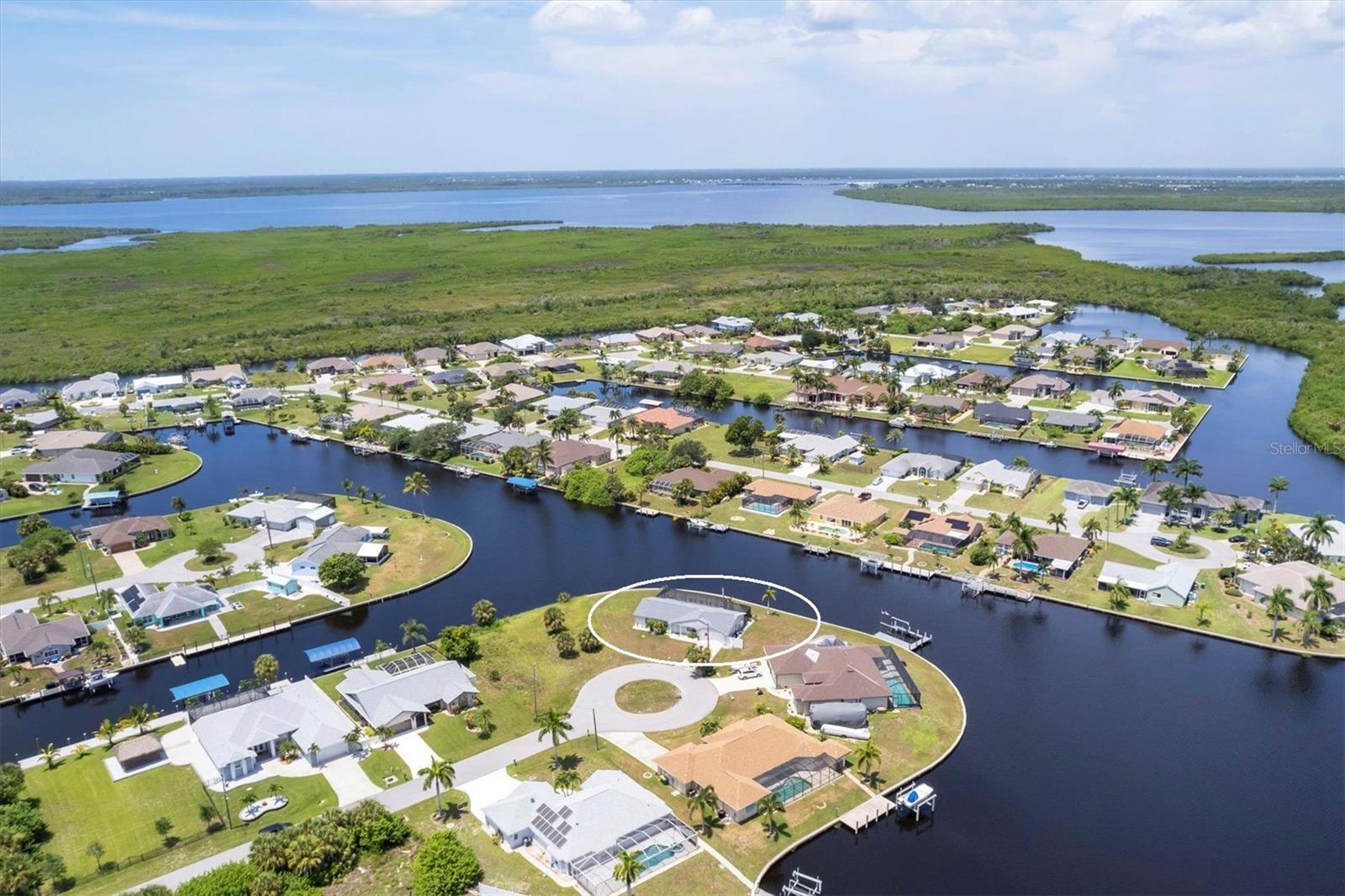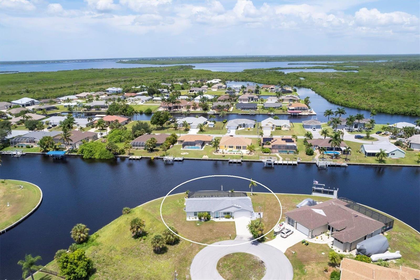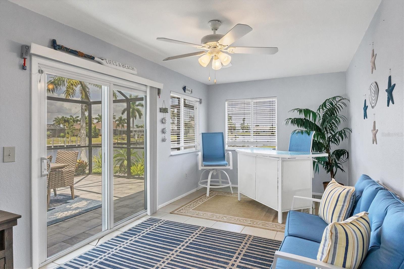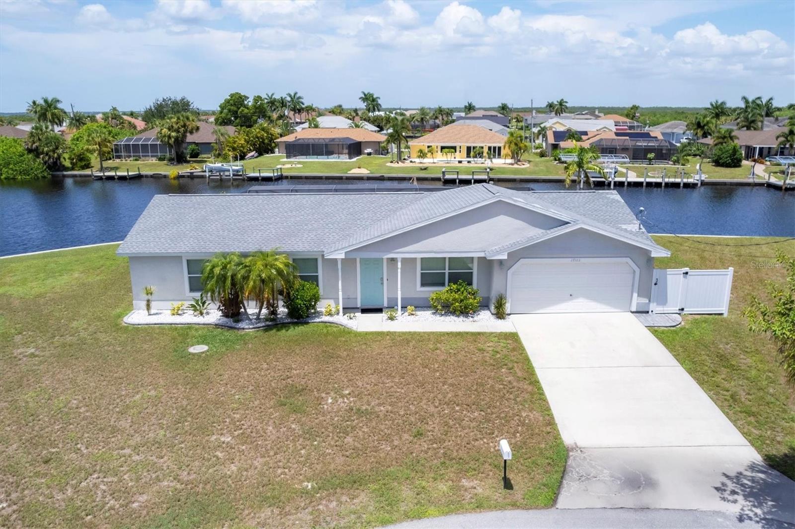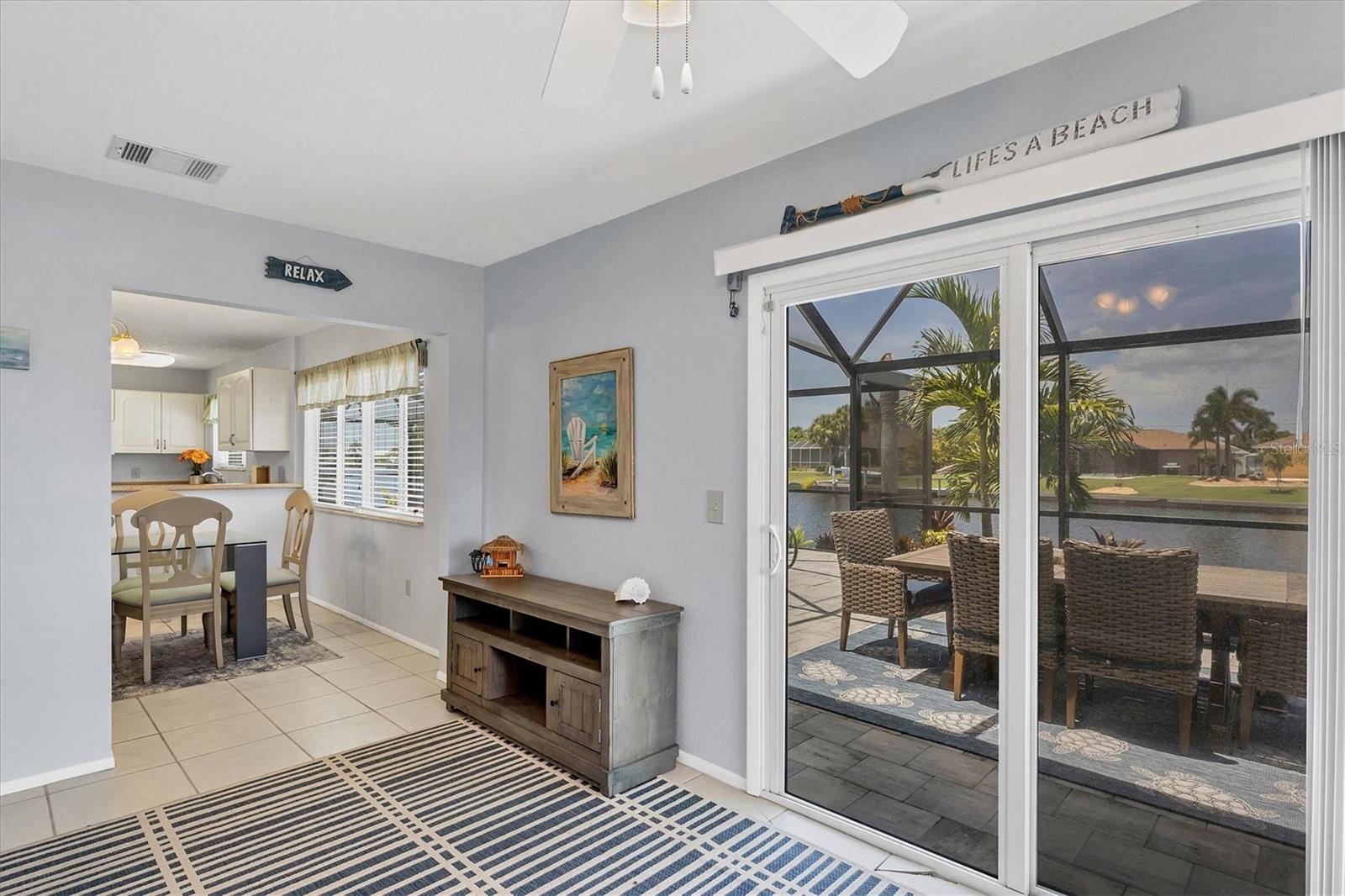 Waterfront living is redefined at this great saltwater-access furnished pool home that offers breathtaking water views of intersecting canals from this sailboat water tip lot. Enjoy easy access water frontage with the 210 foot concrete seawall, no bridges out, and captivating Western sunset views. A cul-de-sac location, professional landscaping with drip irrigation, 2022 roof, and impact windows are just a few of the exterior features this home has to offer. Inside, you'll find easy-care tile flooring and neutral paint colors throughout. The formal living room seamlessly flows into the dining area and kitchen, ideal for entertaining. The kitchen has white cabinets, a stepped-up breakfast bar, and ample countertop space for the perfect blend of style and functionality. The ensuite master bedroom has dual reach-in closets, while the master bath offers a spacious step-in shower. There are two additional bedrooms, both with dual reach-in closets and the shared guest bath has a great tub/shower combo. The family room and master bedroom both feature sliding glass doors, offering stunning views and convenient pool access. Stepping outside into the newly screened cage area from 2023, you'll immediately notice the stunning pavers installed in 2022, creating the perfect setting for the pool with its sundeck shelf and spa. The entire outdoor living space is framed by the serene beauty of the water beyond the screened area, offering an idyllic spot to relax and watch the boats sail by. When you are ready to explore the area, you will find plenty of shopping, dining, and events just a short drive away. Additionally, this home is located close to two major league baseball spring training facilities, boat ramps, kayak launches and several parks. Contact us today for a private showing.