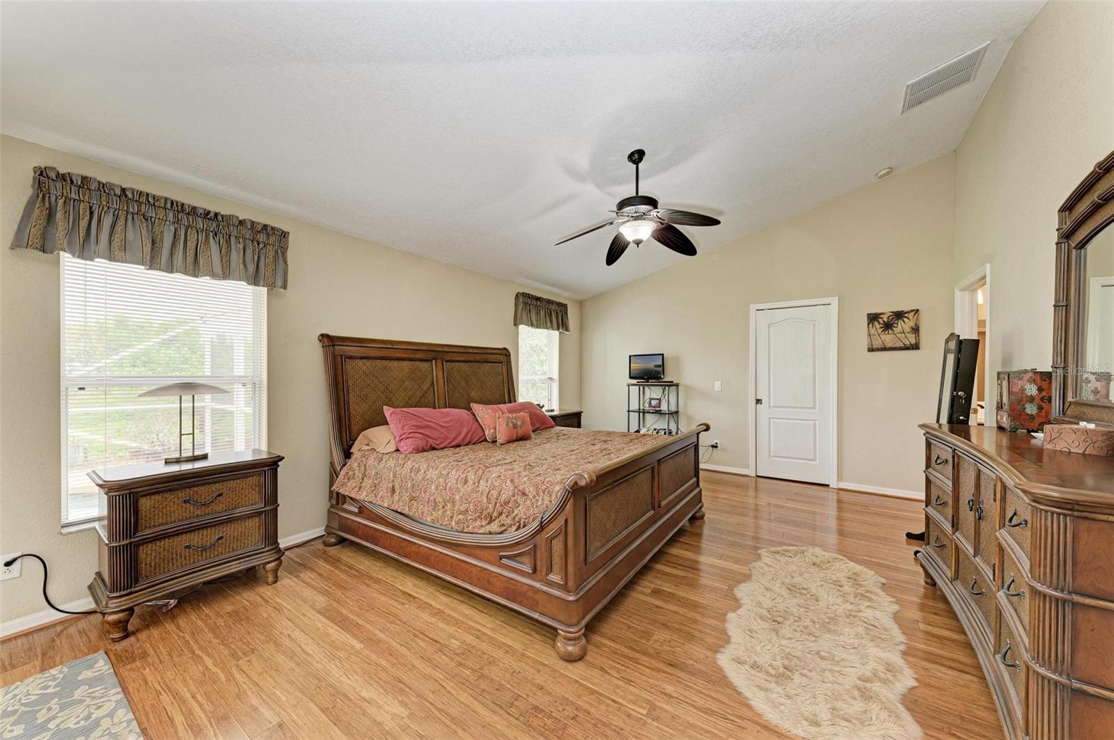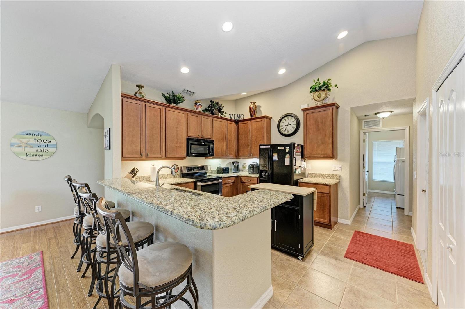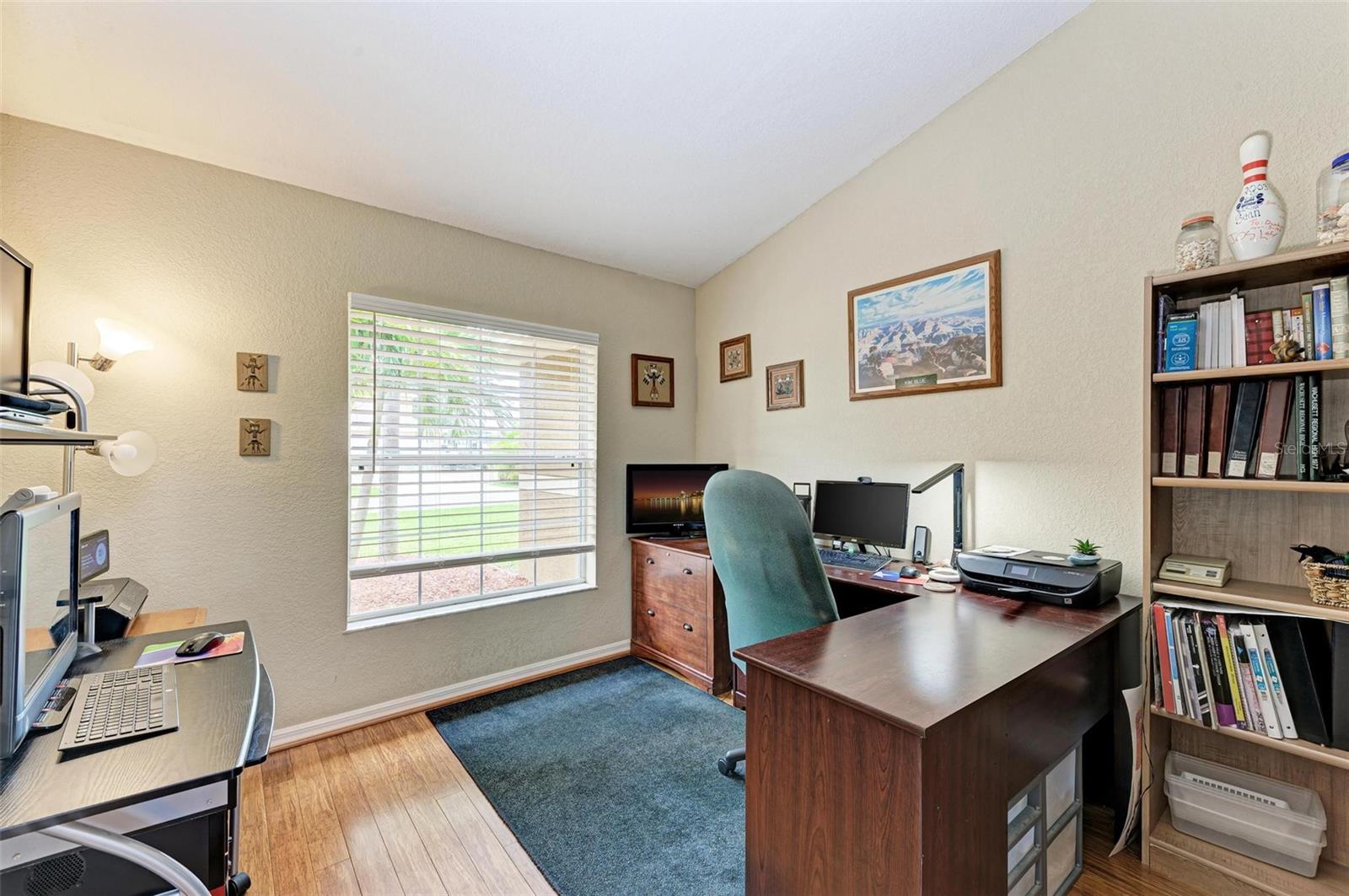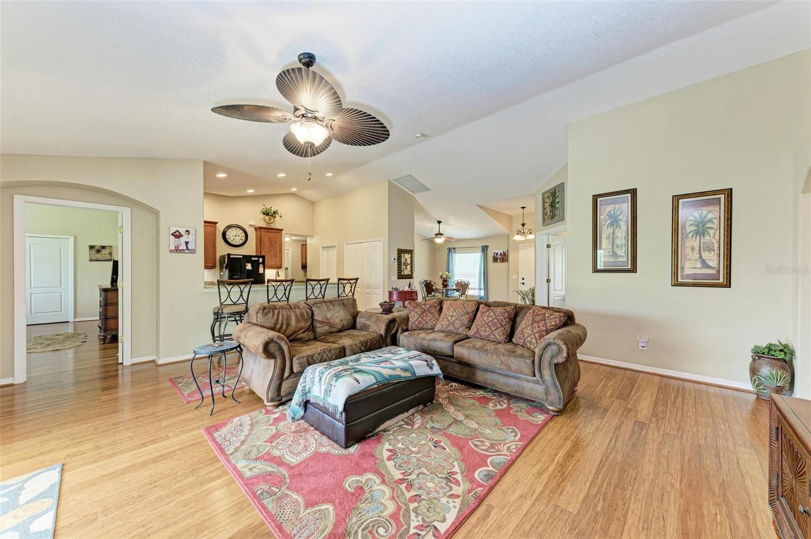 Well designed pool home in South Gulf Cove, a waterfront community where all lots are water accessible, is a great size for a large family. The single entry door leads into the living area with lots of natural light. As you step into this well defined, open floor plan home your eyes will be immediately drawn to its vaulted ceilings that create an airy atmosphere and sense of spaciousness. The rich, engineered bamboo flooring flows seamlessly throughout, offering both style and durability. The kitchen features gleaming granite counters and a breakfast bar that invites casual dining and social gatherings. The adjacent living and dining areas are bathed in natural light. This immaculate 2169 sf home features a den which can be utilized as a study, or extra guest room as it provides the opportunity to be as flexibile as your imagination. The kitchen features numerous cabinets and a large pantry for storage, granite counter tops, breakfast bar and desk. The great room is enhanced by a set of sliding doors that lead to the lanai/pool area to seamlessly combine exterior and interior environments. The generous owners' suite has access to the lanai and pool area through the sliders that help bring in lots of natural light. The room is a true retreat, boasting a generously sized walk-in closet that provides ample storage, and an ensuite bath designed for relaxation. The ensuite bath features dual sinks, garden tub and walk in shower. This well kept home is being offered with hurricane shutters, new asphalt shingle roof(2023), new lanai/pool screens (2023), gutters, and mature landscaping. The home reflects a perfect blend of functionality and comfort with excellent storage options throughout ensuring space for all your belongings. Further enticements included in this sale providing protection to you are an owners' transferable flood insurance policy and also a home warranty protection plan through July 2025. Why wait? Call for your private showing and buy now so you can start enjoying the Florida lifestyle in an area close to amenities of pristine beaches, boating, hiking and golfing opportunities, fine dining, and more!