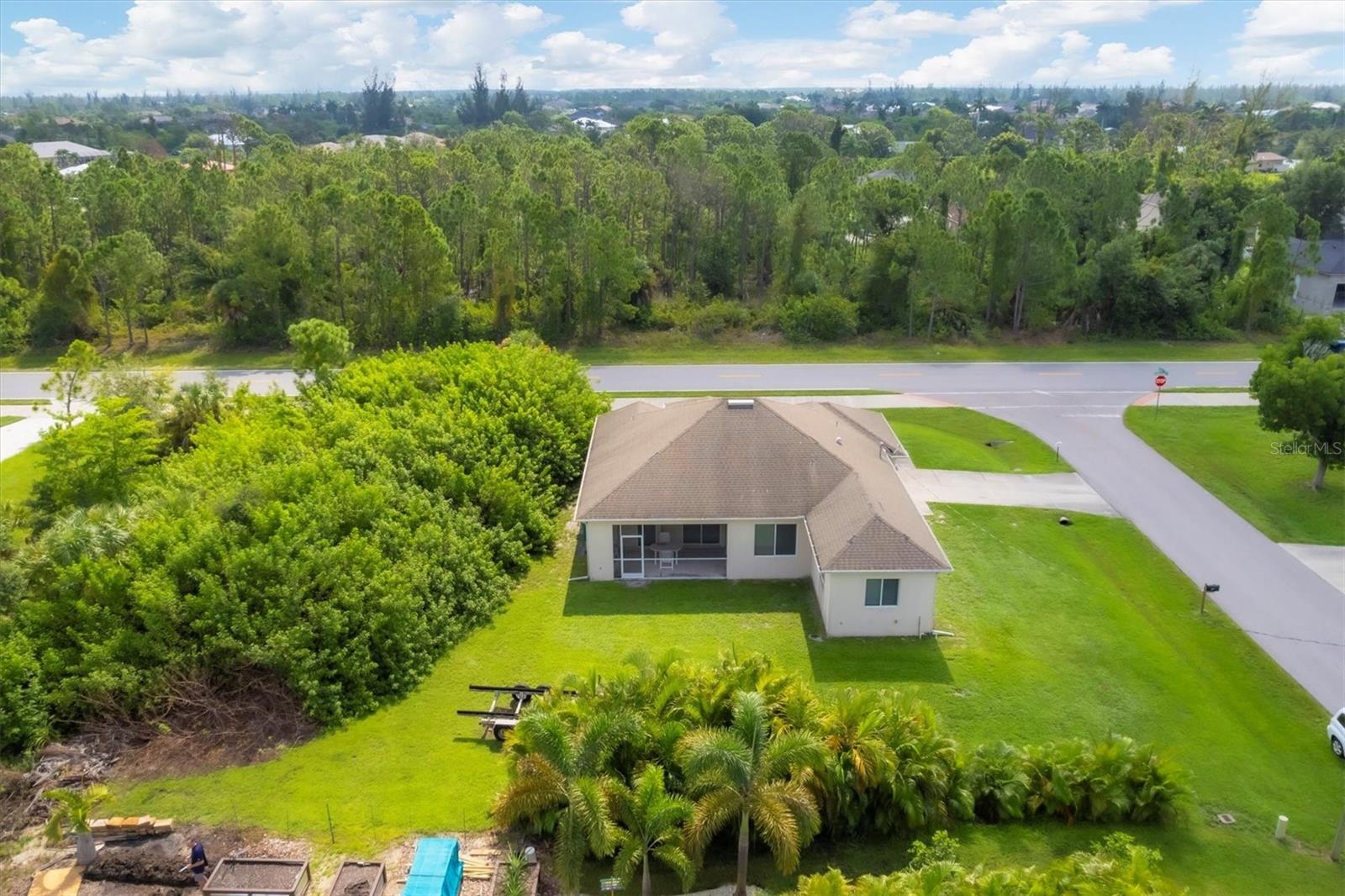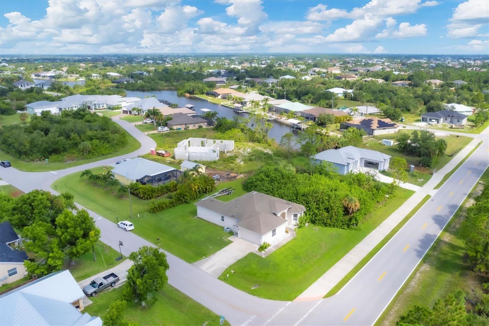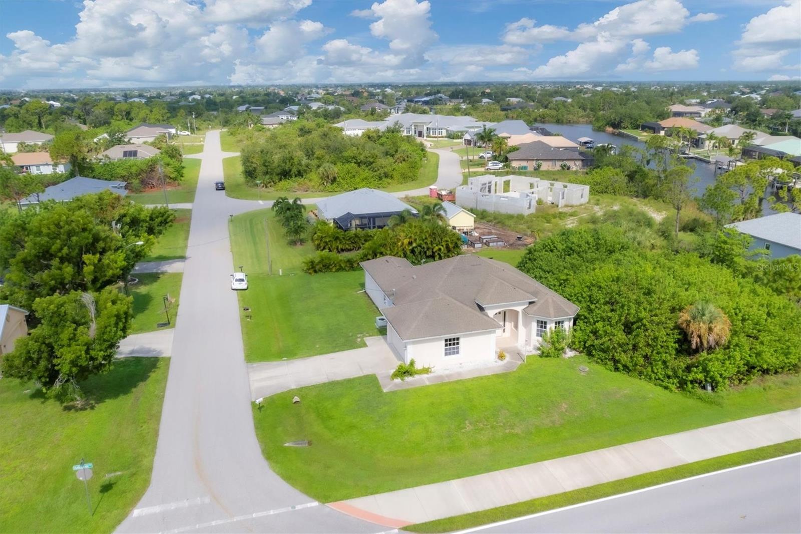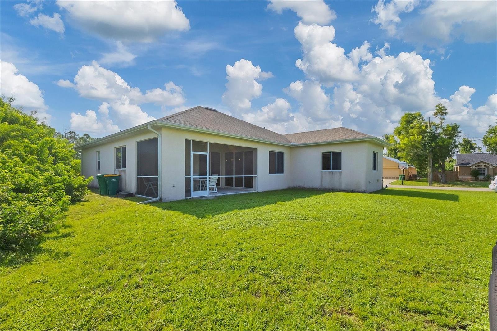 Welcome to this charming home crafted by renowned builder Tom Fero, nestled in the highly desirable South Gulf Cove community. Featuring a sought-after western exposure, this residence is light-filled and inviting, with large windows throughout, 10-foot flat ceilings, and 8-foot fully pocketing sliders that enhance the open and airy atmosphere. Elegant arched doorways, plant shelves, and tile flooring throughout most of the home add to its appeal, while the bedrooms feature cozy carpeting. The spacious primary suite is a true retreat, complete with an ensuite bathroom featuring double sinks, a Roman shower, and a generously sized walk-in closet that provides convenient access to the laundry room. On the opposite side of the home, guest suites are thoughtfully positioned for privacy, with a well-placed guest bathroom in between. Relax and entertain on the sizable under-trussed lanai, and take advantage of the nearby sidewalk for easy strolls around the neighborhood. This delightful home offers both comfort and style in a sought-after location. Roof is intact free of leaks.