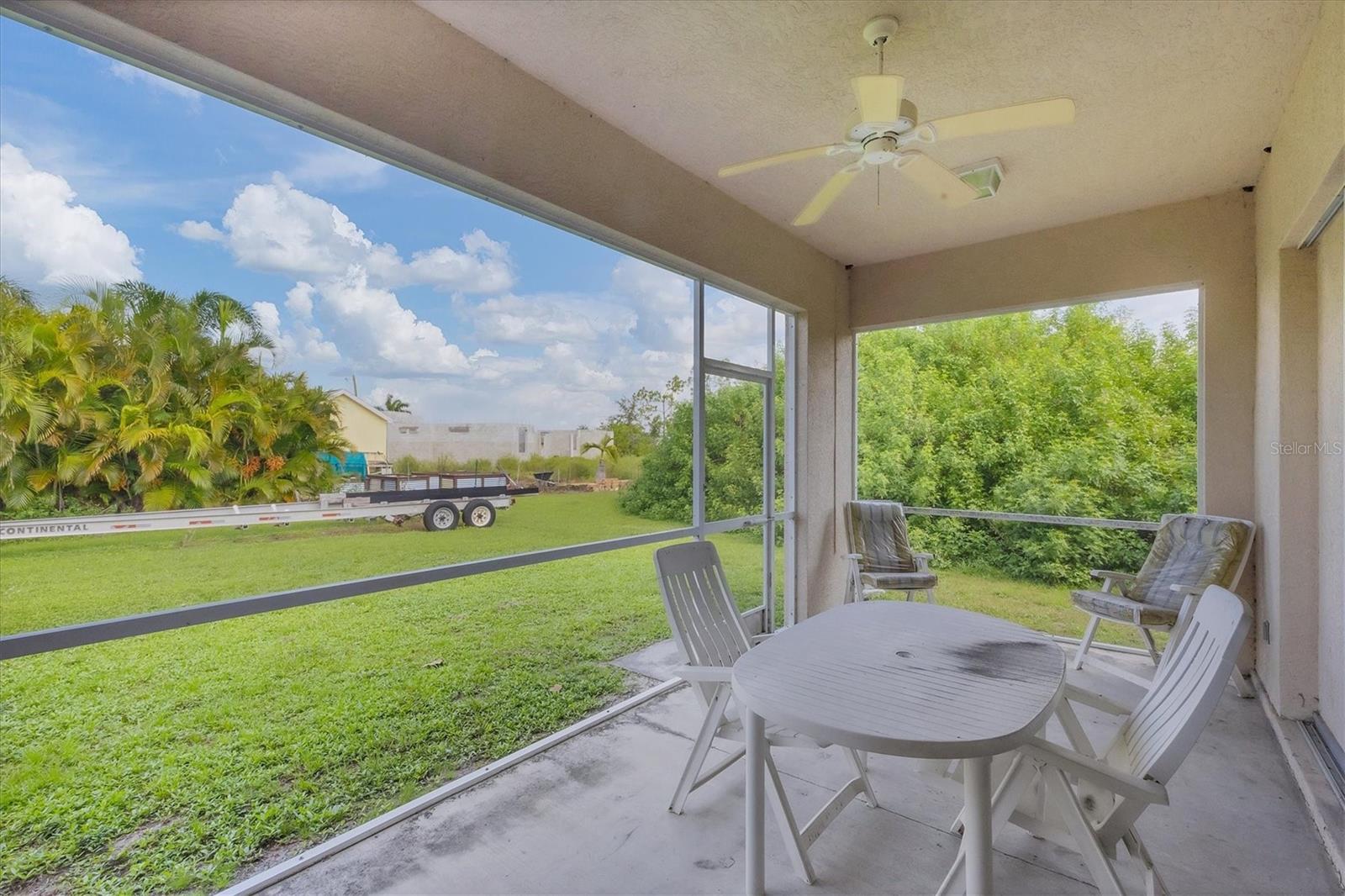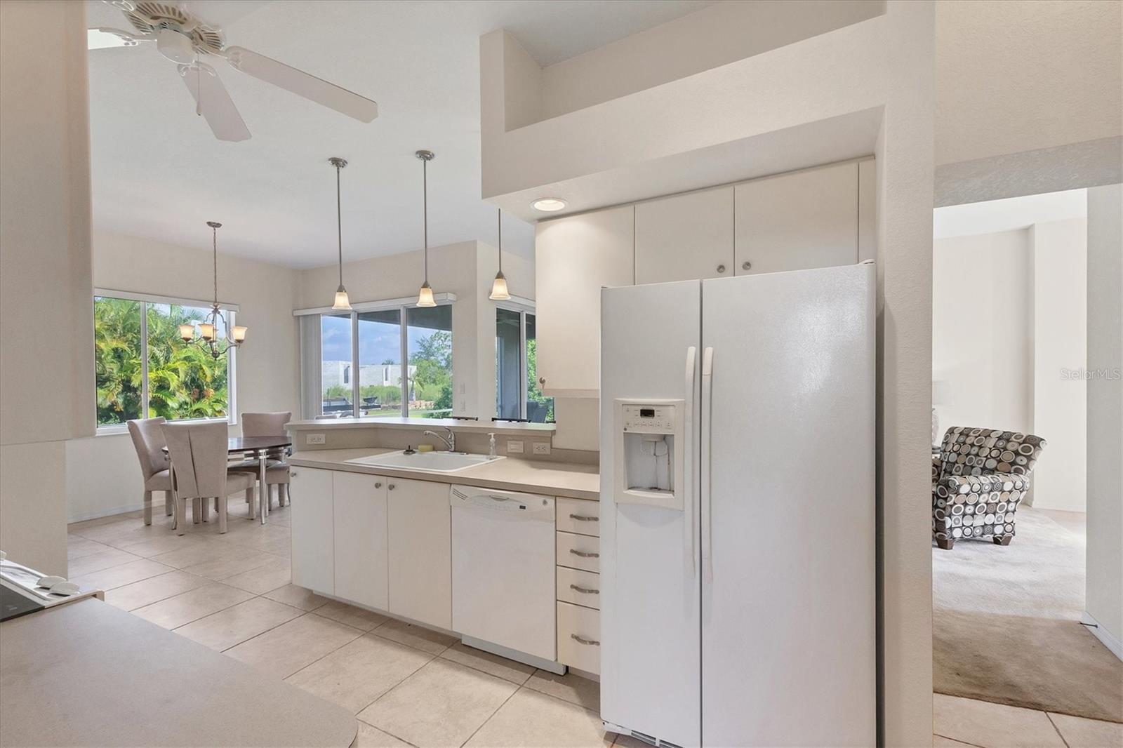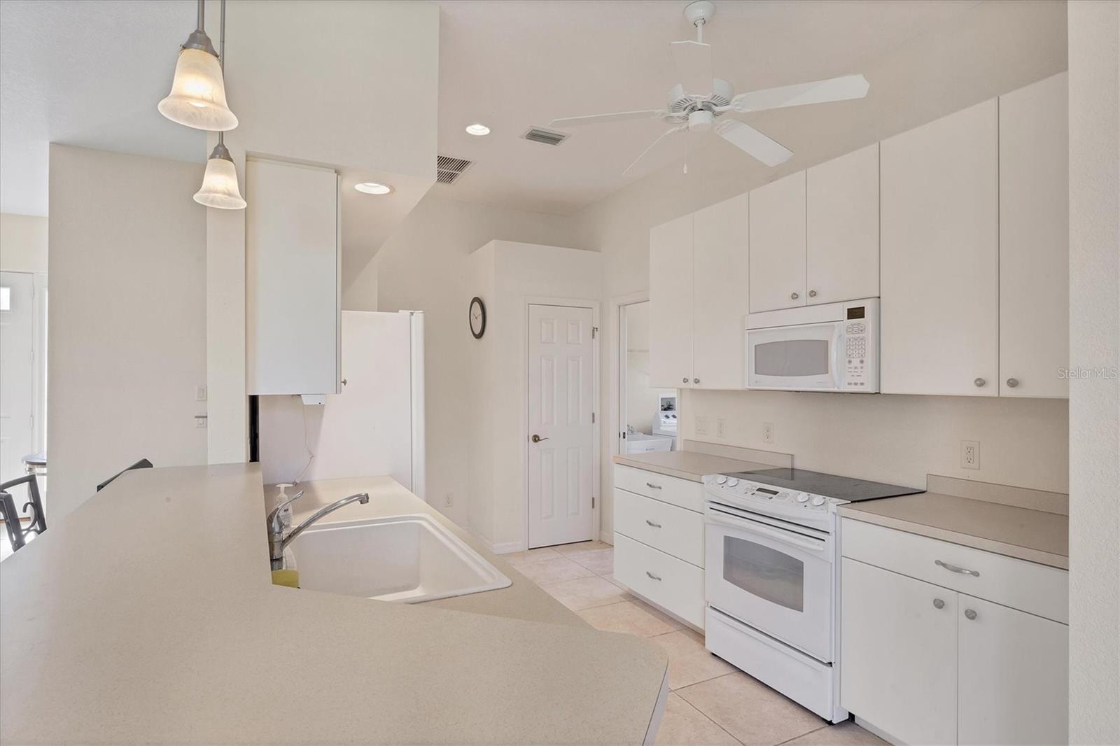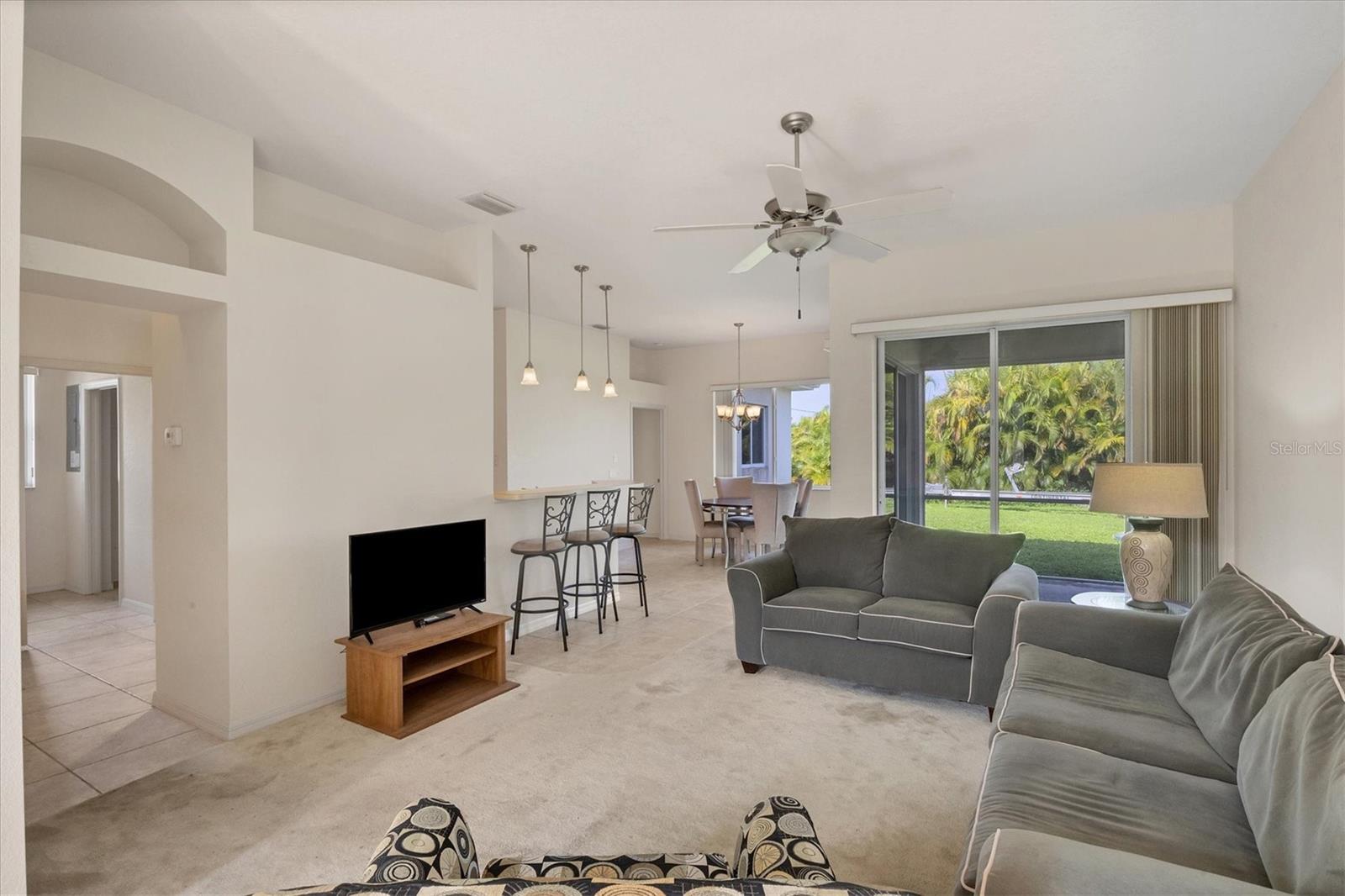 Welcome to this charming home crafted by renowned builder Tom Fero, nestled in the highly desirable South Gulf Cove community. Featuring a sought-after western exposure, this residence is light-filled and inviting, with large windows throughout, 10-foot flat ceilings, and 8-foot fully pocketing sliders that enhance the open and airy atmosphere. Elegant arched doorways, plant shelves, and tile flooring throughout most of the home add to its appeal, while the bedrooms feature cozy carpeting. The spacious primary suite is a true retreat, complete with an ensuite bathroom featuring double sinks, a Roman shower, and a generously sized walk-in closet that provides convenient access to the laundry room. On the opposite side of the home, guest suites are thoughtfully positioned for privacy, with a well-placed guest bathroom in between. Relax and entertain on the sizable under-trussed lanai, and take advantage of the nearby sidewalk for easy strolls around the neighborhood. This delightful home offers both comfort and style in a sought-after location. Roof is intact free of leaks.
