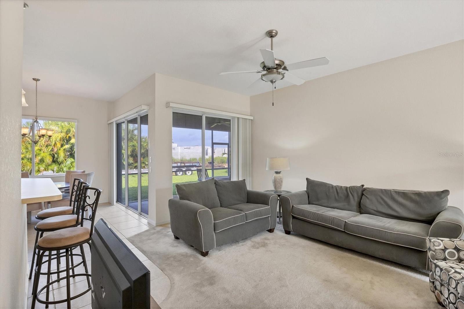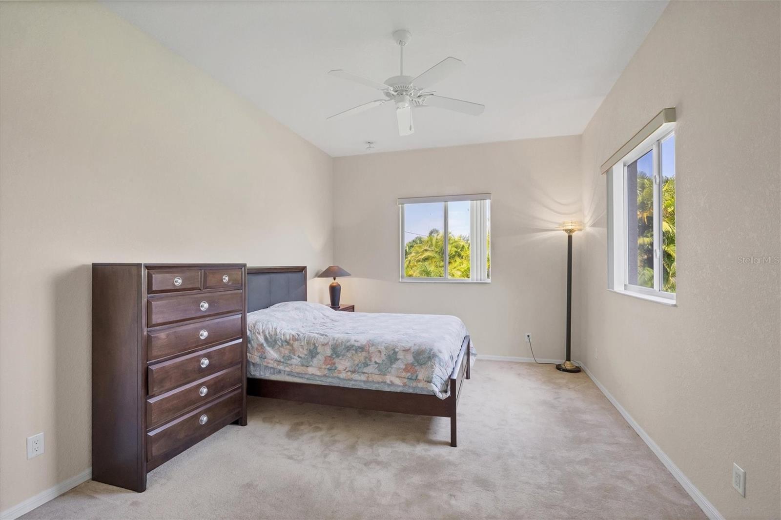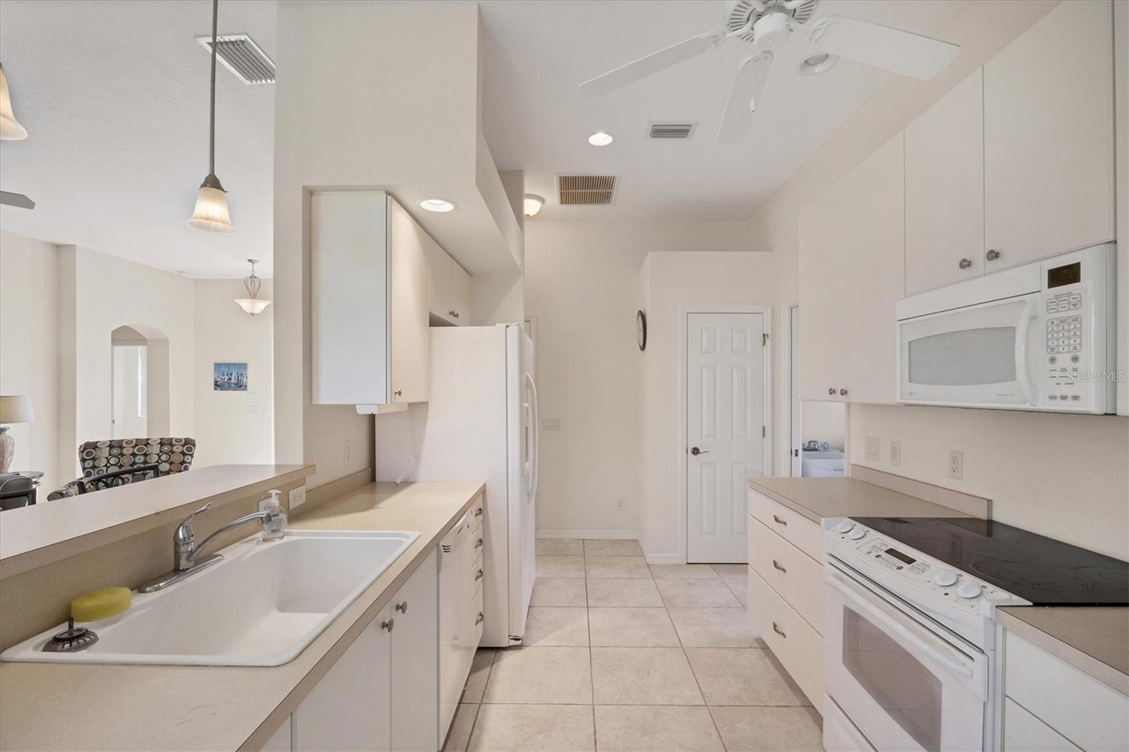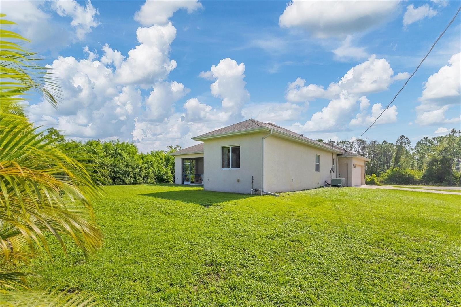 Welcome to this charming home crafted by renowned builder Tom Fero, nestled in the highly desirable South Gulf Cove community. Featuring a sought-after western exposure, this residence is light-filled and inviting, with large windows throughout, 10-foot flat ceilings, and 8-foot fully pocketing sliders that enhance the open and airy atmosphere. Elegant arched doorways, plant shelves, and tile flooring throughout most of the home add to its appeal, while the bedrooms feature cozy carpeting. The spacious primary suite is a true retreat, complete with an ensuite bathroom featuring double sinks, a Roman shower, and a generously sized walk-in closet that provides convenient access to the laundry room. On the opposite side of the home, guest suites are thoughtfully positioned for privacy, with a well-placed guest bathroom in between. Relax and entertain on the sizable under-trussed lanai, and take advantage of the nearby sidewalk for easy strolls around the neighborhood. This delightful home offers both comfort and style in a sought-after location. Roof is intact free of leaks.