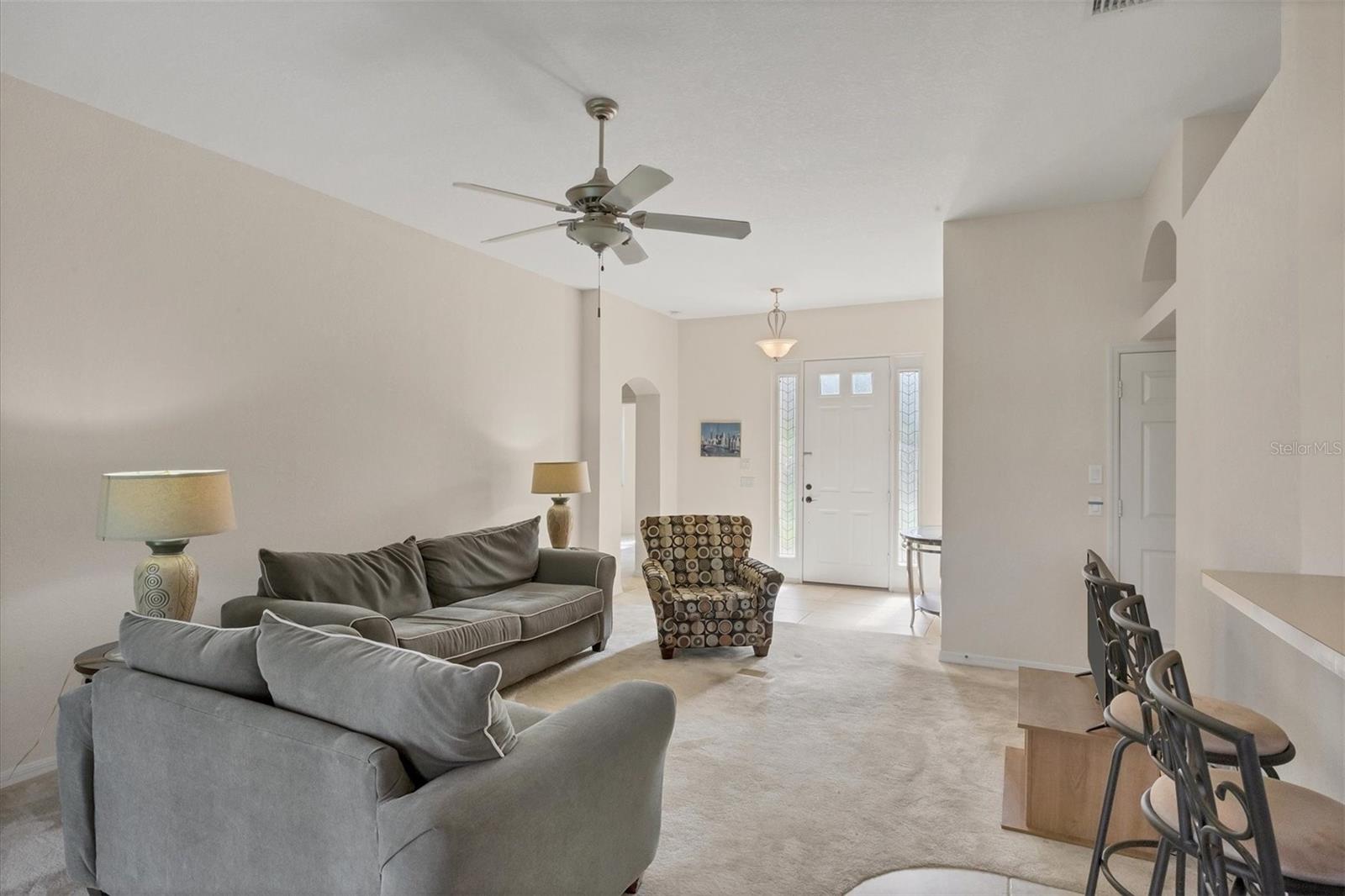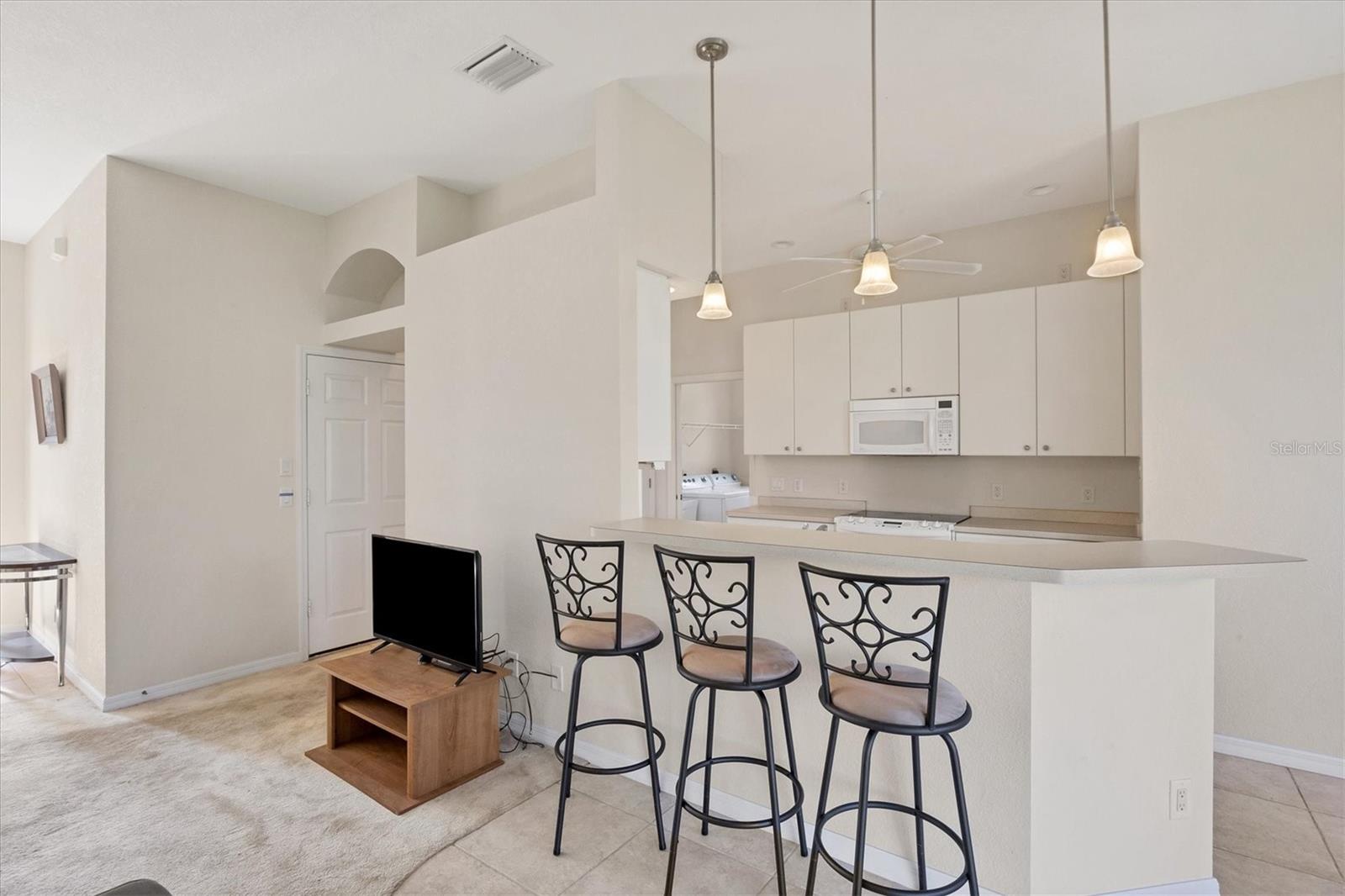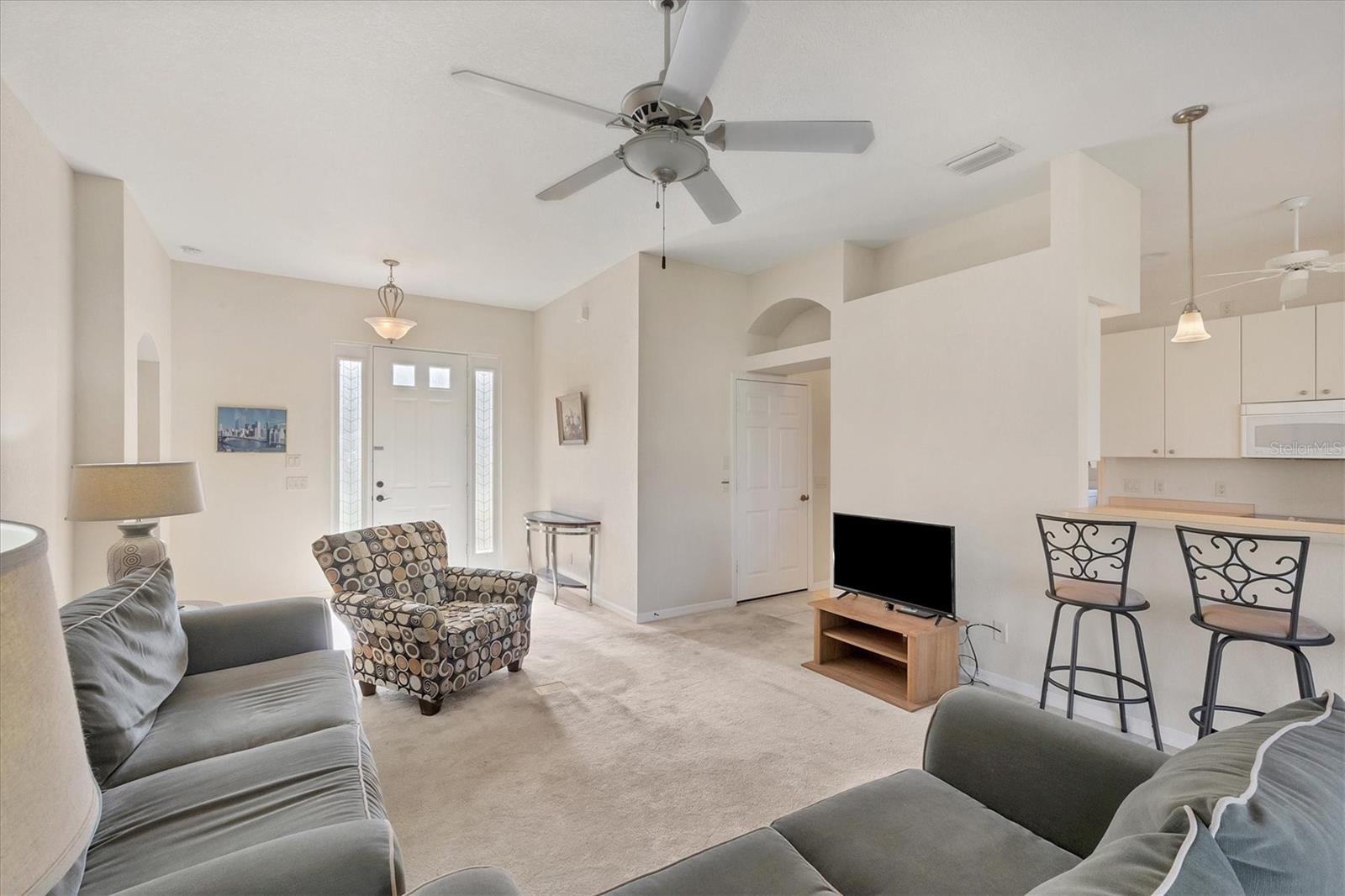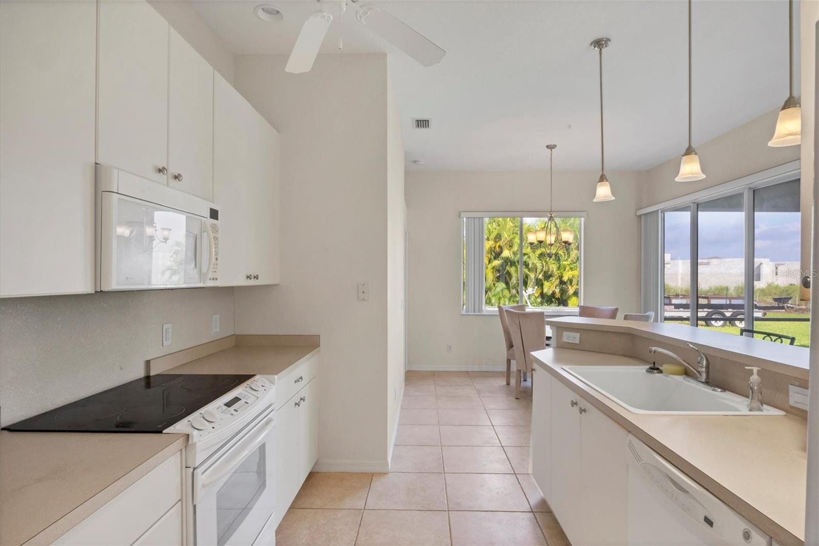 Welcome to this charming home crafted by renowned builder Tom Fero, nestled in the highly desirable South Gulf Cove community. Featuring a sought-after western exposure, this residence is light-filled and inviting, with large windows throughout, 10-foot flat ceilings, and 8-foot fully pocketing sliders that enhance the open and airy atmosphere. Elegant arched doorways, plant shelves, and tile flooring throughout most of the home add to its appeal, while the bedrooms feature cozy carpeting. The spacious primary suite is a true retreat, complete with an ensuite bathroom featuring double sinks, a Roman shower, and a generously sized walk-in closet that provides convenient access to the laundry room. On the opposite side of the home, guest suites are thoughtfully positioned for privacy, with a well-placed guest bathroom in between. Relax and entertain on the sizable under-trussed lanai, and take advantage of the nearby sidewalk for easy strolls around the neighborhood. This delightful home offers both comfort and style in a sought-after location. Roof is intact free of leaks.