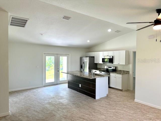 Under Construction. Under Construction. Brand new Gulf Cove home that is scheduled to be completed in October. Not in a flood zone! This wonderful home has county water, no stinky well water. This property is on 80x 125 lot with nice woods in the back. This split bedroom home with a Great room, island kitchen and an open floor plan. The interior upgrades include granite counters, cabinets, with tile floors throughout, high ceilings and interior metal stud framing. The exterior of the home is complete with, Concrete block construction, hurricane shutters, additional exterior electrical panel, and covered entry and rear porch. Garage door is an oversized 8 foot door. Water access from the private boat ramp to Charlotte Harbor then on to the Gulf of Mexico so bring your boat!! Many new homes in the community! Close to shopping, restaurants and just a short drive to area beaches including Boca Grande!! The kitchen appliances are included and already installed as are fans. FHA & VA loans are acceptable. The lot is included in the price, all construction meets all new energy and wind codes. We have a larger home that is completed mls D6135907 at 14039 DUSTY LN, PORT CHARLOTTE, FL 33981
