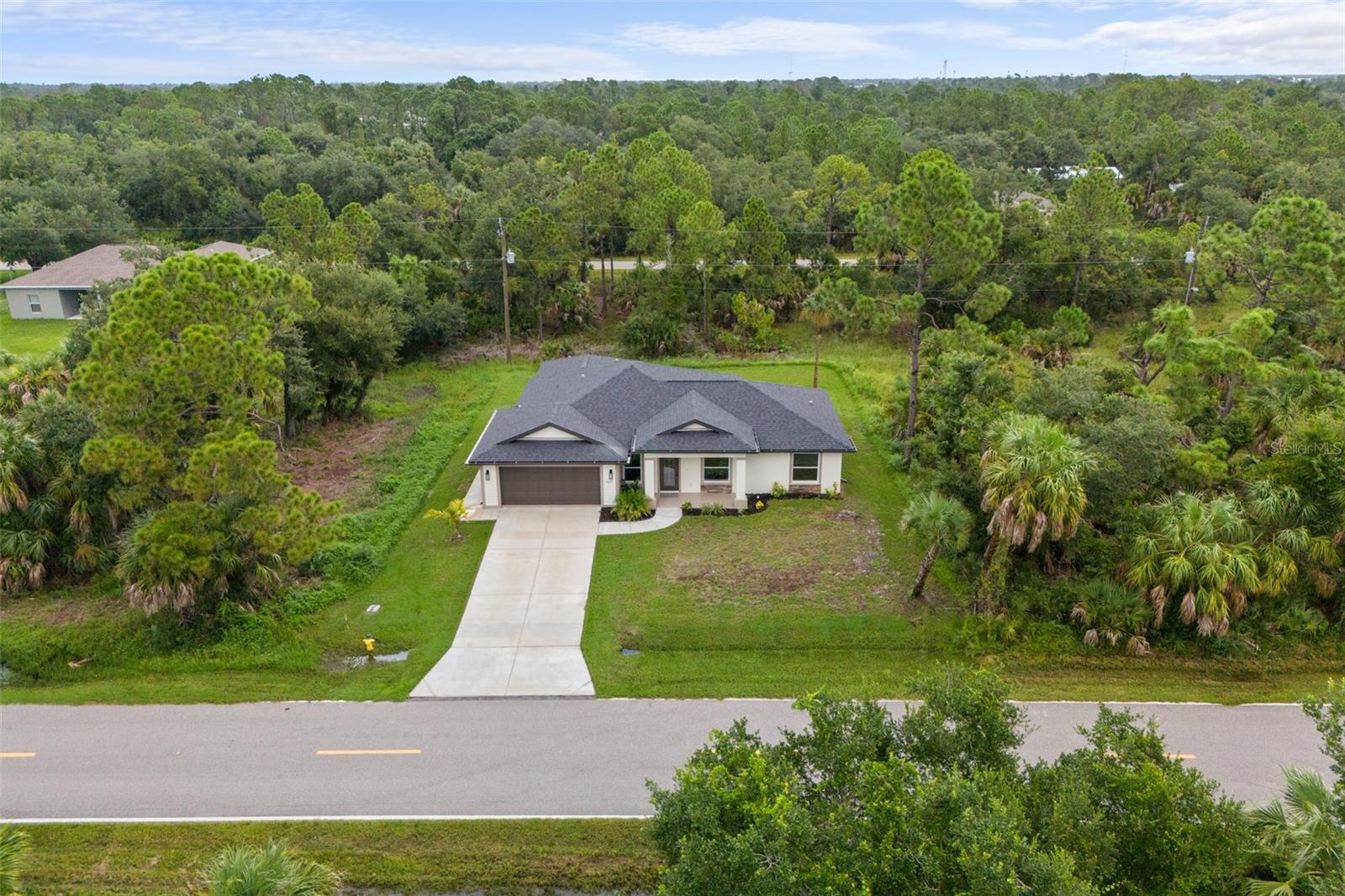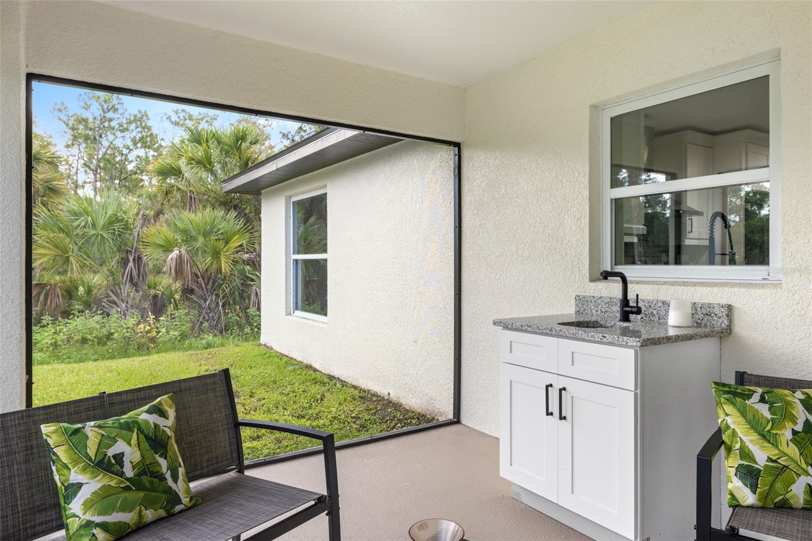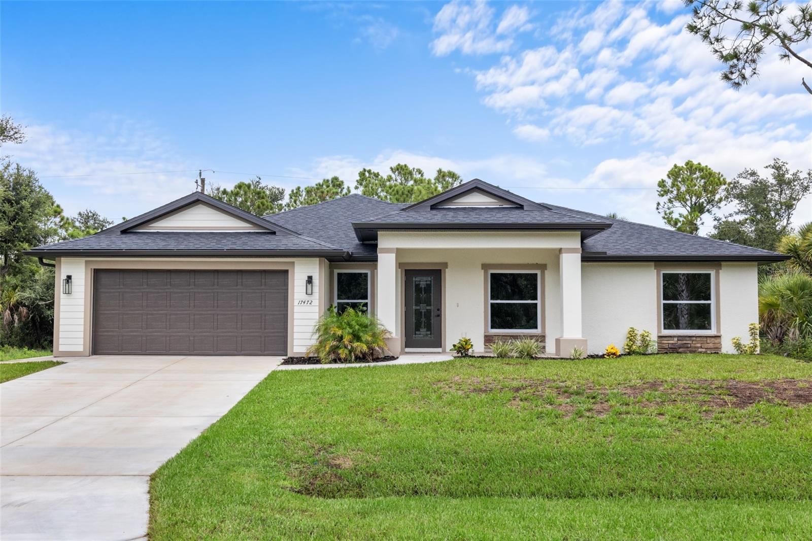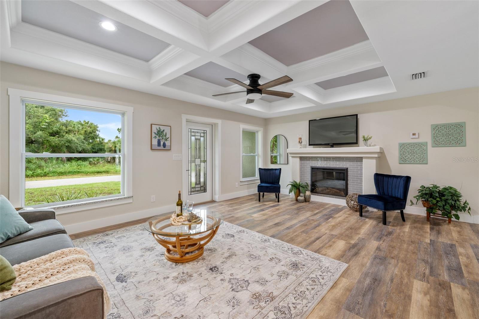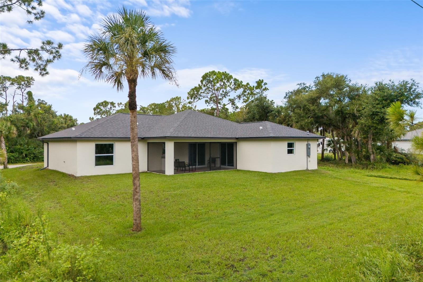Price Improvement! Welcome to your dream home! This stunning new construction is the epitome of quality and craftsmanship, offering a lifestyle that feels like a vacation every day. From the moment you enter, you'll be captivated by the exquisite details and luxurious upgrades throughout. The open concept living space offers high, coffered ceilings with elegant crown molding and bullnose beading, creating a grand ambiance. Imagine relaxing in the living room, where a fireplace provides the perfect cozy atmosphere for cool evenings. The space seamlessly flows into an impressive open kitchen, where no detail has been overlooked. The kitchen features an oversized island with granite countertops, solid wood soft-close cabinets and drawers, stainless steel appliances, a cast iron farmhouse sink, and more! Designer pendant lighting and LED recessed lighting add a touch of modern elegance, making this kitchen both functional and beautiful. Adjacent to the kitchen is the dining area with radius walls and a sliding glass door that leads to a screened-in lanai. The lanai is complete with a wet bar and granite countertop, perfect for weekend barbecues or quiet afternoons spent enjoying the Florida sunshine. The master suite is a true retreat, offering both luxury and comfort. Imagine waking up each morning in your spacious bedroom, sliding open the glass doors, and stepping out onto your private lanai to enjoy a peaceful moment with your coffee, listening to the gentle sounds of nature. The en-suite master bath is fully equipped with dual sinks, granite countertops, a large Roman walk-in shower with upgraded tile and a niche for toiletries, and a private water closet. Barn doors lead to an expansive walk-in closet, with an additional closet providing even more storage. The split floor plan ensures privacy, with two additional large bedrooms, each with walk-in closets located on the opposite side of the home. Additional upgrades include 6" baseboards throughout, two-panel doors, granite windowsills, and an inside laundry room with pocket doors and a large walk-in closet. Living in this home means enjoying the finer details every day—upgraded design features indulge the quiet elegance of this property. You will also note that the exterior of the home is just as impressive, with a hurricane impact leaded glass front door and windows, large front and back yards, and professional landscaping. There’s plenty of room for a pool and a large storage shed, offering endless possibilities to create your own backyard oasis. Situated in a prime location, this home offers easy access to beaches, boating, restaurants, shopping, top notch golf courses and spring training facilities. The area is serviced by four airports making travel a breeze. With no HOA or CDD and city water you can enjoy all the amenities of Florida living without any of the hassles. This is more than just a house; it’s the home where your best memories will be made. Come live the dream in this spectacular new construction home, where every day feels like a vacation.