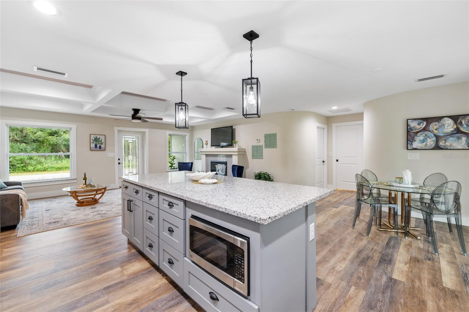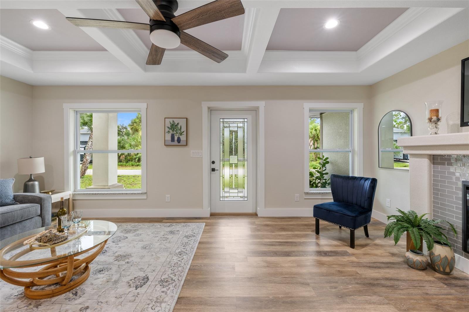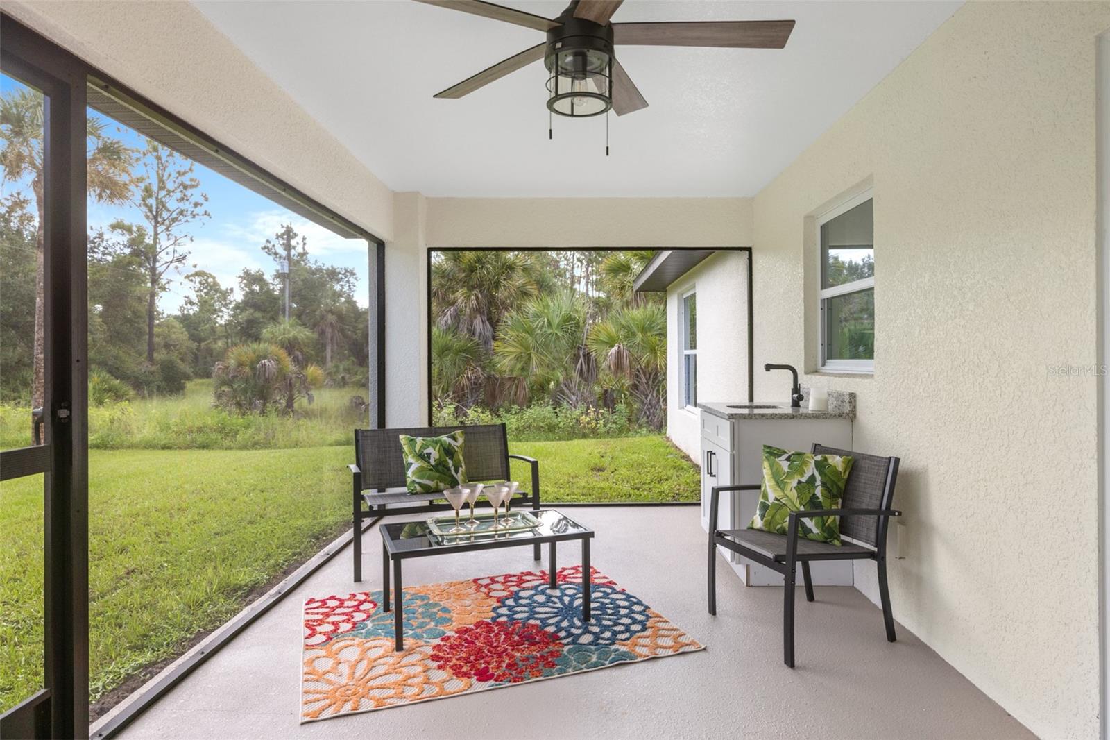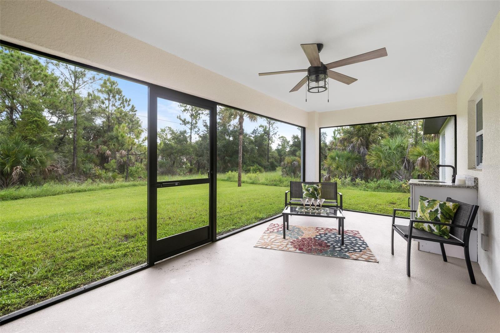 Price Improvement! Welcome to your dream home! This stunning new construction is the epitome of quality and craftsmanship, offering a lifestyle that feels like a vacation every day. From the moment you enter, you'll be captivated by the exquisite details and luxurious upgrades throughout. The open concept living space offers high, coffered ceilings with elegant crown molding and bullnose beading, creating a grand ambiance. Imagine relaxing in the living room, where a fireplace provides the perfect cozy atmosphere for cool evenings. The space seamlessly flows into an impressive open kitchen, where no detail has been overlooked. The kitchen features an oversized island with granite countertops, solid wood soft-close cabinets and drawers, stainless steel appliances, a cast iron farmhouse sink, and more! Designer pendant lighting and LED recessed lighting add a touch of modern elegance, making this kitchen both functional and beautiful. Adjacent to the kitchen is the dining area with radius walls and a sliding glass door that leads to a screened-in lanai. The lanai is complete with a wet bar and granite countertop, perfect for weekend barbecues or quiet afternoons spent enjoying the Florida sunshine. The master suite is a true retreat, offering both luxury and comfort. Imagine waking up each morning in your spacious bedroom, sliding open the glass doors, and stepping out onto your private lanai to enjoy a peaceful moment with your coffee, listening to the gentle sounds of nature. The en-suite master bath is fully equipped with dual sinks, granite countertops, a large Roman walk-in shower with upgraded tile and a niche for toiletries, and a private water closet. Barn doors lead to an expansive walk-in closet, with an additional closet providing even more storage. The split floor plan ensures privacy, with two additional large bedrooms, each with walk-in closets located on the opposite side of the home. Additional upgrades include 6" baseboards throughout, two-panel doors, granite windowsills, and an inside laundry room with pocket doors and a large walk-in closet. Living in this home means enjoying the finer details every day—upgraded design features indulge the quiet elegance of this property. You will also note that the exterior of the home is just as impressive, with a hurricane impact leaded glass front door and windows, large front and back yards, and professional landscaping. There’s plenty of room for a pool and a large storage shed, offering endless possibilities to create your own backyard oasis. Situated in a prime location, this home offers easy access to beaches, boating, restaurants, shopping, top notch golf courses and spring training facilities. The area is serviced by four airports making travel a breeze. With no HOA or CDD and city water you can enjoy all the amenities of Florida living without any of the hassles. This is more than just a house; it’s the home where your best memories will be made. Come live the dream in this spectacular new construction home, where every day feels like a vacation.
