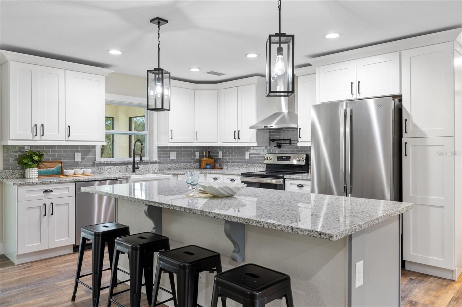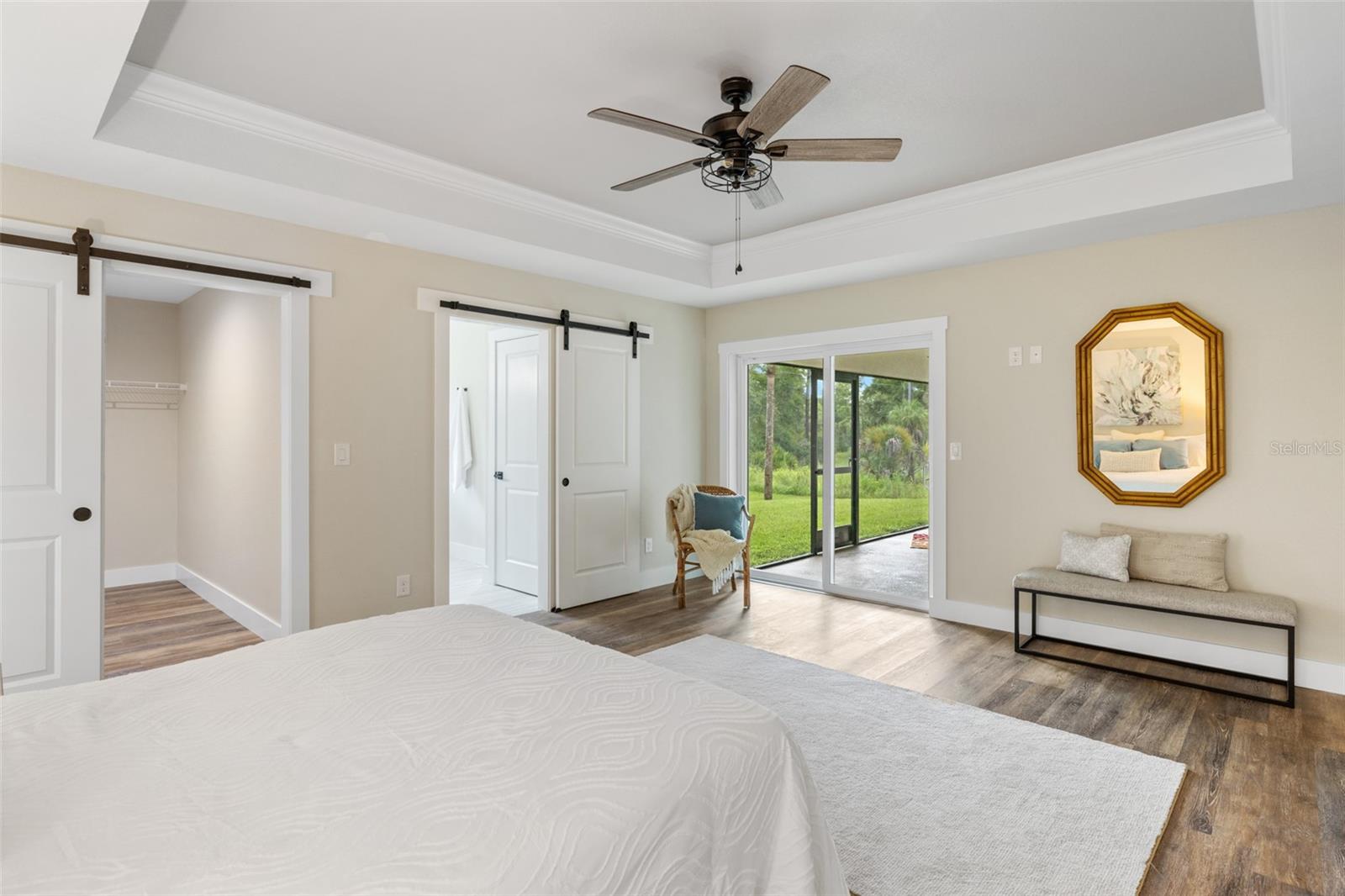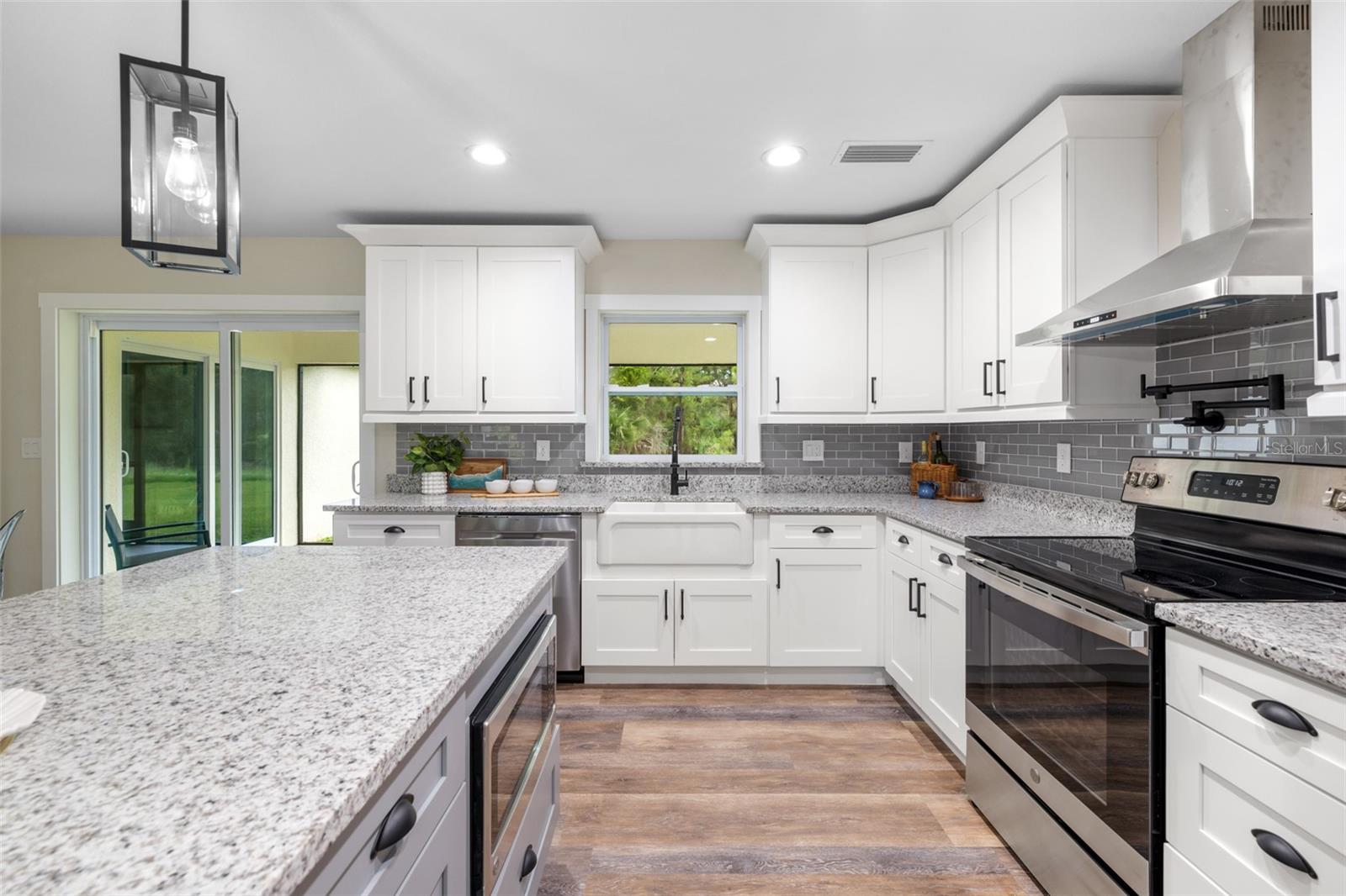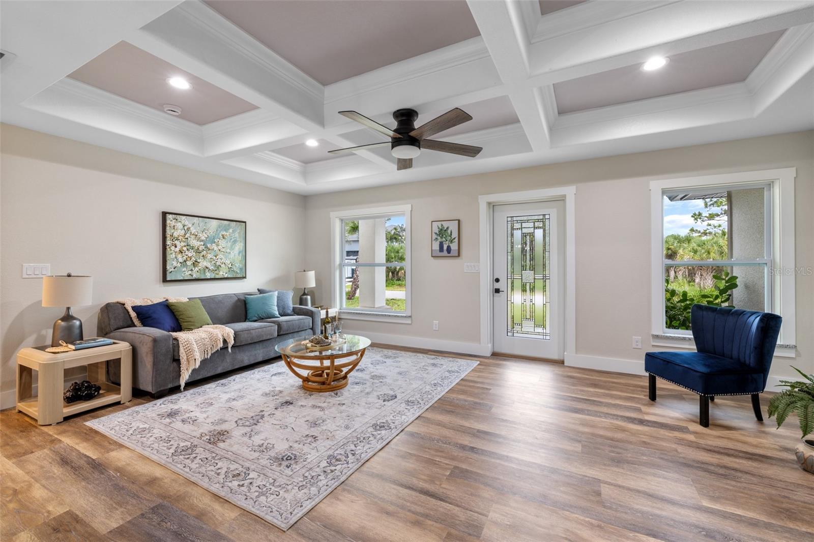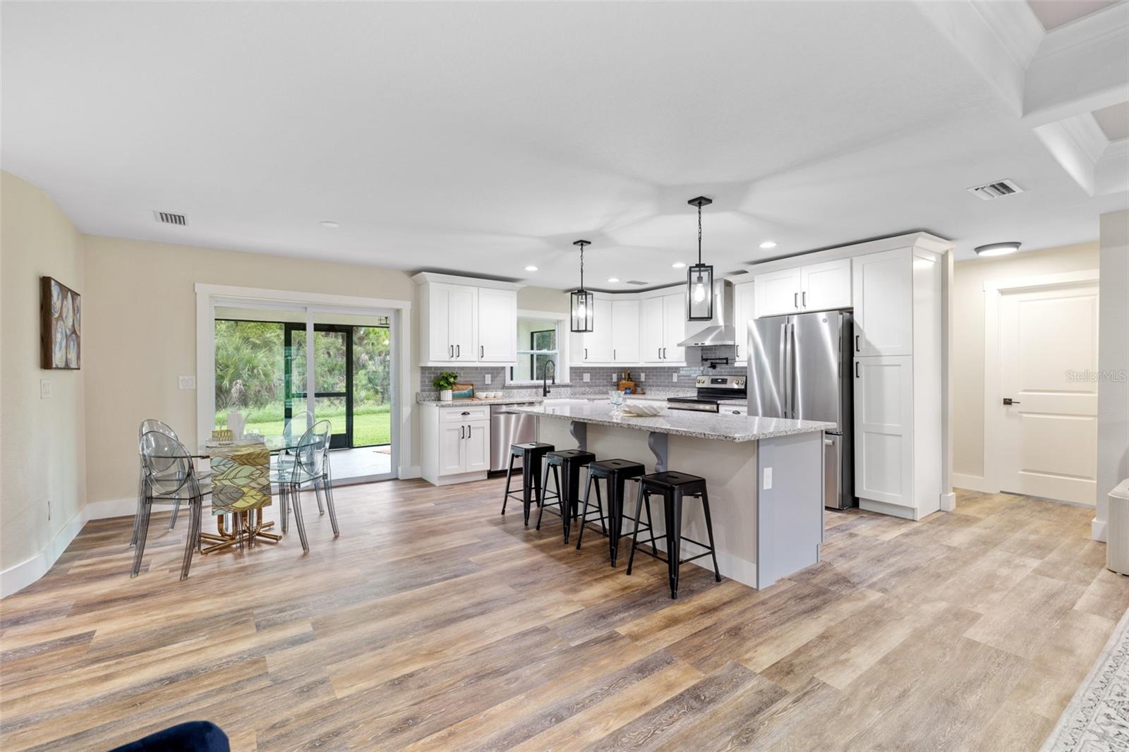 Price Improvement! Welcome to your dream home! This stunning new construction is the epitome of quality and craftsmanship, offering a lifestyle that feels like a vacation every day. From the moment you enter, you'll be captivated by the exquisite details and luxurious upgrades throughout. The open concept living space offers high, coffered ceilings with elegant crown molding and bullnose beading, creating a grand ambiance. Imagine relaxing in the living room, where a fireplace provides the perfect cozy atmosphere for cool evenings. The space seamlessly flows into an impressive open kitchen, where no detail has been overlooked. The kitchen features an oversized island with granite countertops, solid wood soft-close cabinets and drawers, stainless steel appliances, a cast iron farmhouse sink, and more! Designer pendant lighting and LED recessed lighting add a touch of modern elegance, making this kitchen both functional and beautiful. Adjacent to the kitchen is the dining area with radius walls and a sliding glass door that leads to a screened-in lanai. The lanai is complete with a wet bar and granite countertop, perfect for weekend barbecues or quiet afternoons spent enjoying the Florida sunshine. The master suite is a true retreat, offering both luxury and comfort. Imagine waking up each morning in your spacious bedroom, sliding open the glass doors, and stepping out onto your private lanai to enjoy a peaceful moment with your coffee, listening to the gentle sounds of nature. The en-suite master bath is fully equipped with dual sinks, granite countertops, a large Roman walk-in shower with upgraded tile and a niche for toiletries, and a private water closet. Barn doors lead to an expansive walk-in closet, with an additional closet providing even more storage. The split floor plan ensures privacy, with two additional large bedrooms, each with walk-in closets located on the opposite side of the home. Additional upgrades include 6" baseboards throughout, two-panel doors, granite windowsills, and an inside laundry room with pocket doors and a large walk-in closet. Living in this home means enjoying the finer details every day—upgraded design features indulge the quiet elegance of this property. You will also note that the exterior of the home is just as impressive, with a hurricane impact leaded glass front door and windows, large front and back yards, and professional landscaping. There’s plenty of room for a pool and a large storage shed, offering endless possibilities to create your own backyard oasis. Situated in a prime location, this home offers easy access to beaches, boating, restaurants, shopping, top notch golf courses and spring training facilities. The area is serviced by four airports making travel a breeze. With no HOA or CDD and city water you can enjoy all the amenities of Florida living without any of the hassles. This is more than just a house; it’s the home where your best memories will be made. Come live the dream in this spectacular new construction home, where every day feels like a vacation.