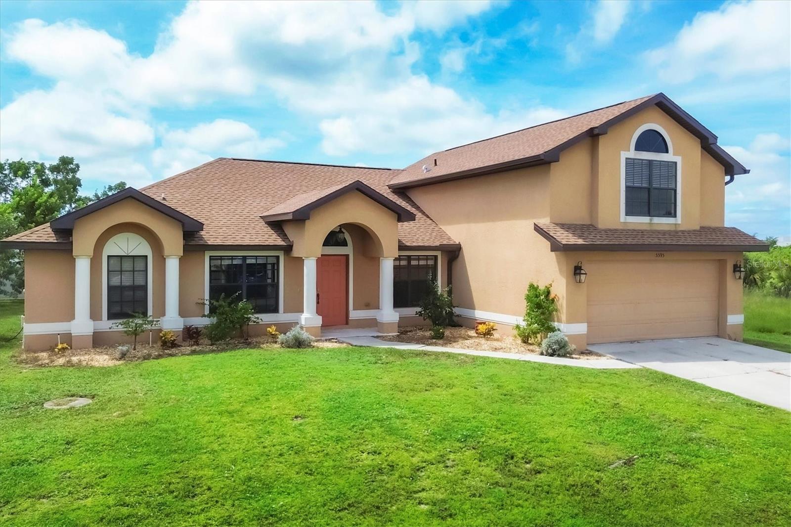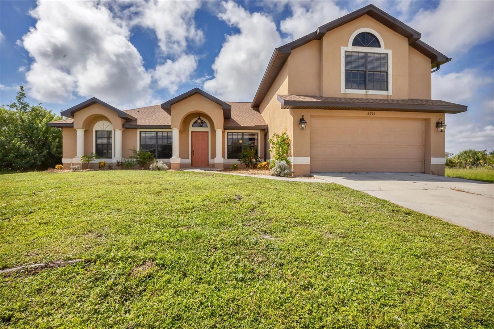 Discover this stunning, rarely available 5-bedroom, 3-bath home located in the highly desirable community of South Gulf Cove. With a new roof installed in 2022 along with fresh fascia and soffit, this home is move-in ready and designed for comfort. As you step through the front door, you'll be welcomed by an open floor plan, vaulted ceilings, and an abundance of natural light. The spacious main living area is perfect for entertaining, featuring a formal dining room, breakfast nook, and a large great room for family gatherings. The well-appointed kitchen offers everything a home chef could desire, including a breakfast bar, closet pantry, tile backsplash, solid wood cabinets, and stainless steel appliances. Whether you're cooking for family or friends, this kitchen provides both style and functionality. The master suite is conveniently located on the main floor and includes a luxurious master bath with a walk-in tile shower, jetted tub, and dual sinks. In addition to the master suite, there are 3 comfortable guest bedrooms on the main floor, perfect for family or visitors. Upstairs, you'll find an enormous second master suite complete with a spacious closet and a private bathroom—ideal for guests or as a private retreat. Step outside to your screened lanai where you can unwind and enjoy the peaceful privacy of your backyard. The South Gulf Cove community offers an array of amenities, including a park, playground, bike and walking paths, and a community boat ramp for boating enthusiasts. Located just minutes from shopping, dining, fishing, boating, and gorgeous Gulf beaches, this home has it all! Don't miss your chance to own this incredible property—schedule your showing today, because this one won't last long!