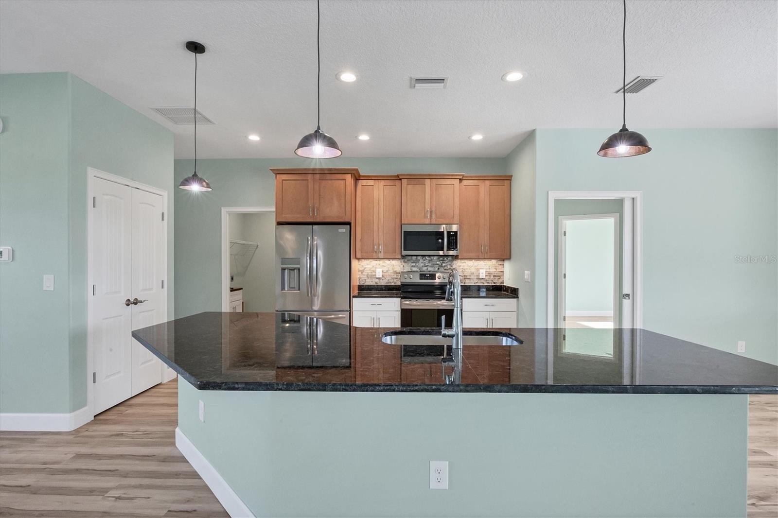 Why wait to build when you can move right into this 2023 custom-built home located in the waterfront community of South Gulf Cove. This move-in ready home was built by a local builder and perfectly balances Florida living and efficiency. When you walk through the front doors, you are greeted by a row of pocketing 8-foot sliders pouring light into every room. The open floor plan blends dining, kitchen, and a spacious living room, creating a seamless space for relaxation or hosting. The kitchen, a centerpiece for entertaining, features a large granite island, plenty of storage, soft-close cabinets, and high-end Frigidaire Gallery appliances. The spacious primary suite is a private retreat with French doors leading directly to the pool area; it also boasts a large walk-in closet and a spa-like en-suite bathroom with a beautifully tiled shower, bench, and custom double vanity. The two guest bedrooms are optimally sized for comfort and convenience, offering privacy and space for visitors or family members. The secondary bathroom serves as a pool bath, providing easy access to and from the outdoor area. The Lanai area has been created as a perfect setting for entertaining or enjoying family meals and grilling with a large under-shade area, recess lighting, and ceiling fans. The spacious pool has all the fun features, including a sun shelf, fountains, and a relaxing waterfall. Just minutes to Boca Grande beaches, plenty of local golf courses, restaurants, shopping, and more. Upgrades Include spray foam insulation, impact windows and doors, luxury vinyl throughout, irrigation, and a saltwater pool.