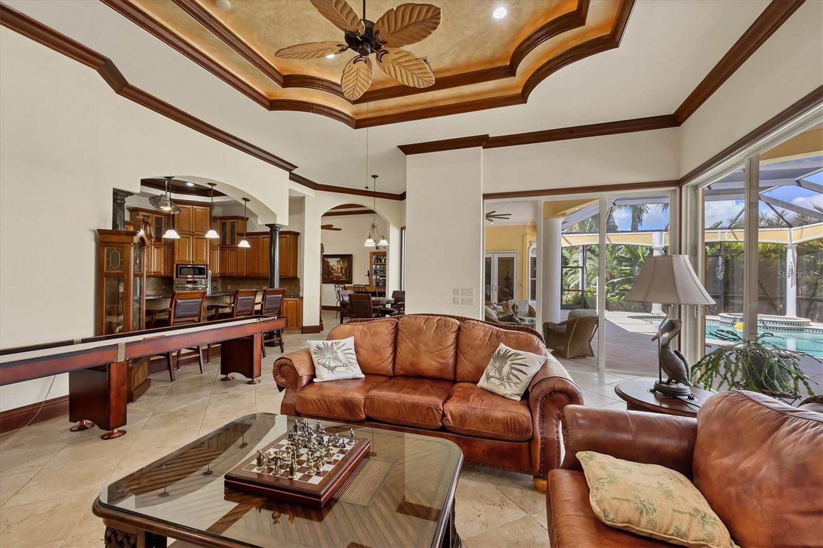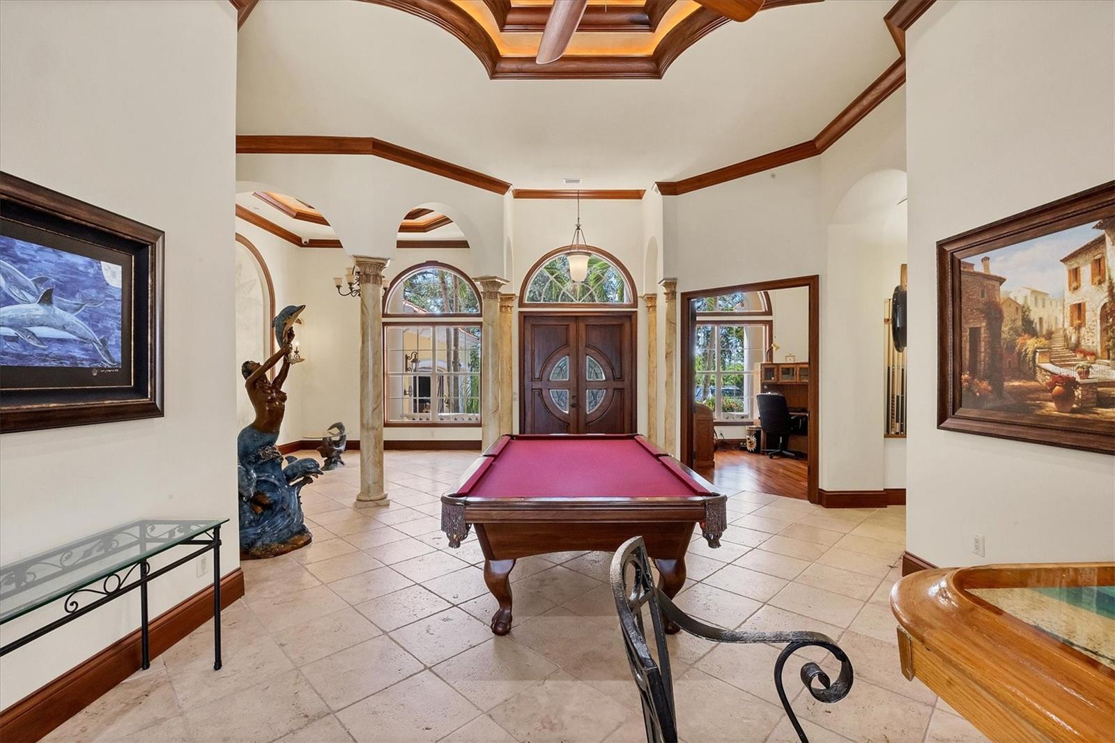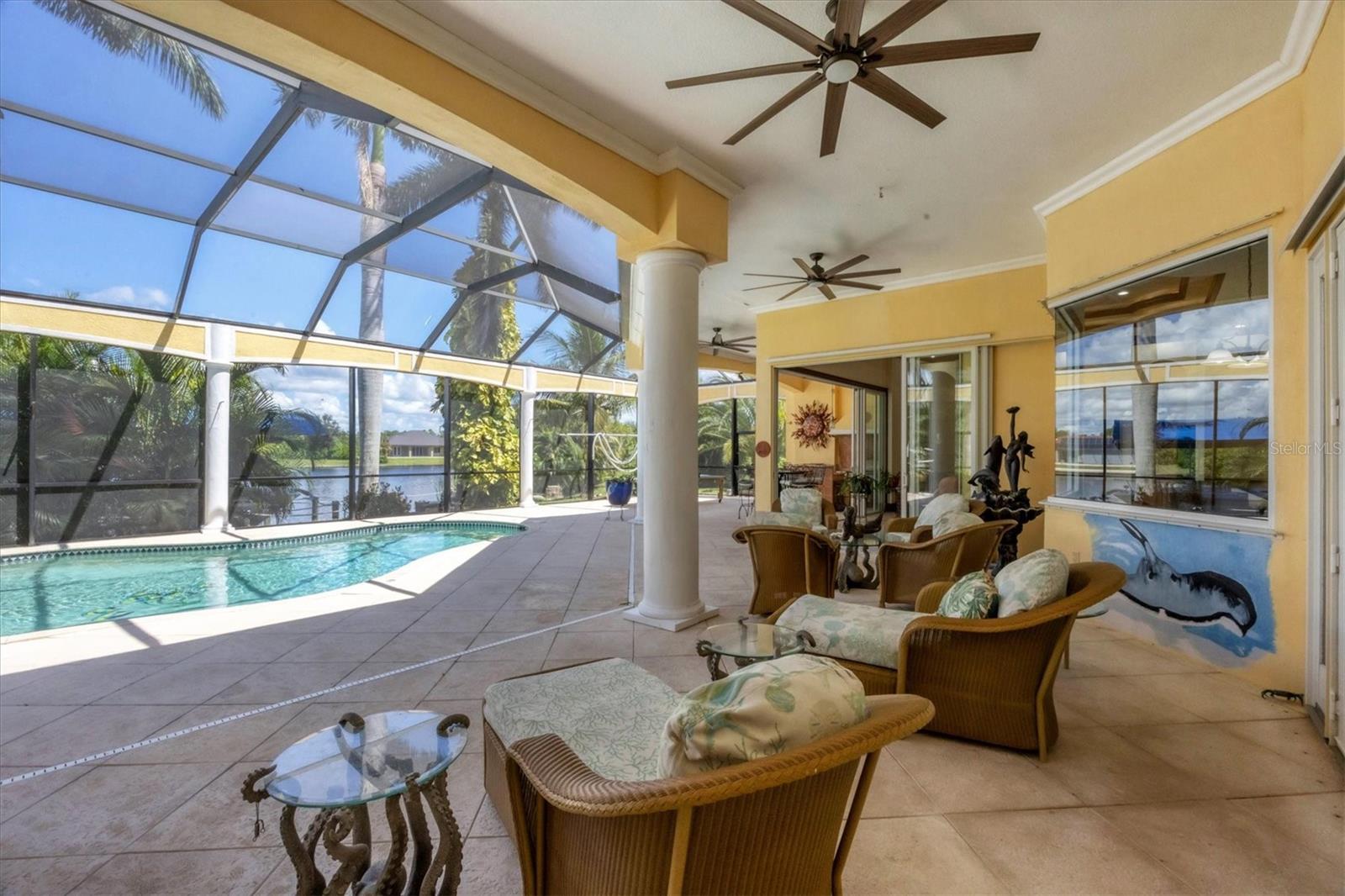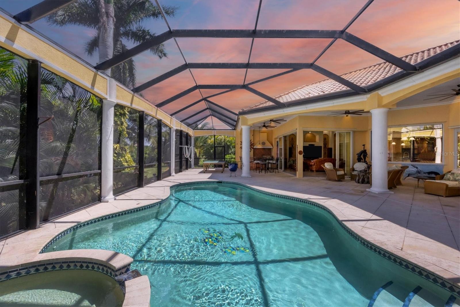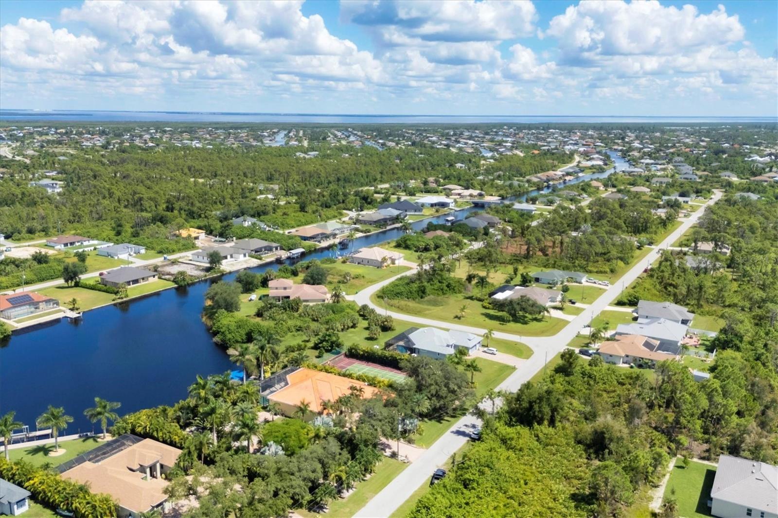Experience luxury in this canal-front entertainment waterfront home! Set on over an acre across three spacious lots in a tranquil neighborhood off the beaten path, but with easy access to Boca Grande, Englewood beaches, & Port Charlotte shopping. This finely constructed 3 bed, 4 bath home offers elegance with soaring ceilings, natural light, and impeccable details. Enjoy stunning water views, arches, tray ceilings, custom moldings, solid core doors, plantation shutters, and more. The chef's kitchen boasts top-tier stainless steel appliances, custom cabinetry, and a breakfast bar. Perfect for entertaining, the home features two living rooms, a built-in bar, wine cooler, and three en-suite bedrooms. The master suite is a peaceful retreat with Brazilian mahogany floors, canal views, and a spa-like bath with dual sinks, a soaking tub, and a triple-head shower. Plus, a private office/den, tankless water heater, and two zoned A/C units for your comfort and enjoyment. The resort-style pool area, private fire pit, and lighted pickleball/tennis courts make this property a party paradise. Situated on the serene Zephyr Waterway, with 210 feet of seawall, a 25,000 lb boat lift, and an oversized trek dock, it's a boaters dream. For a full list of the features, please refer to the attachments. Schedule a private tour and experience the luxurious space and amenities this home offers!