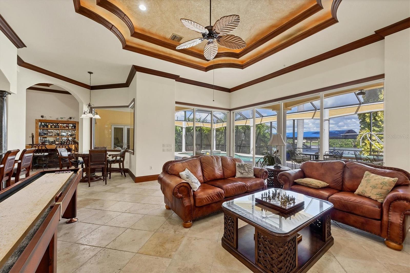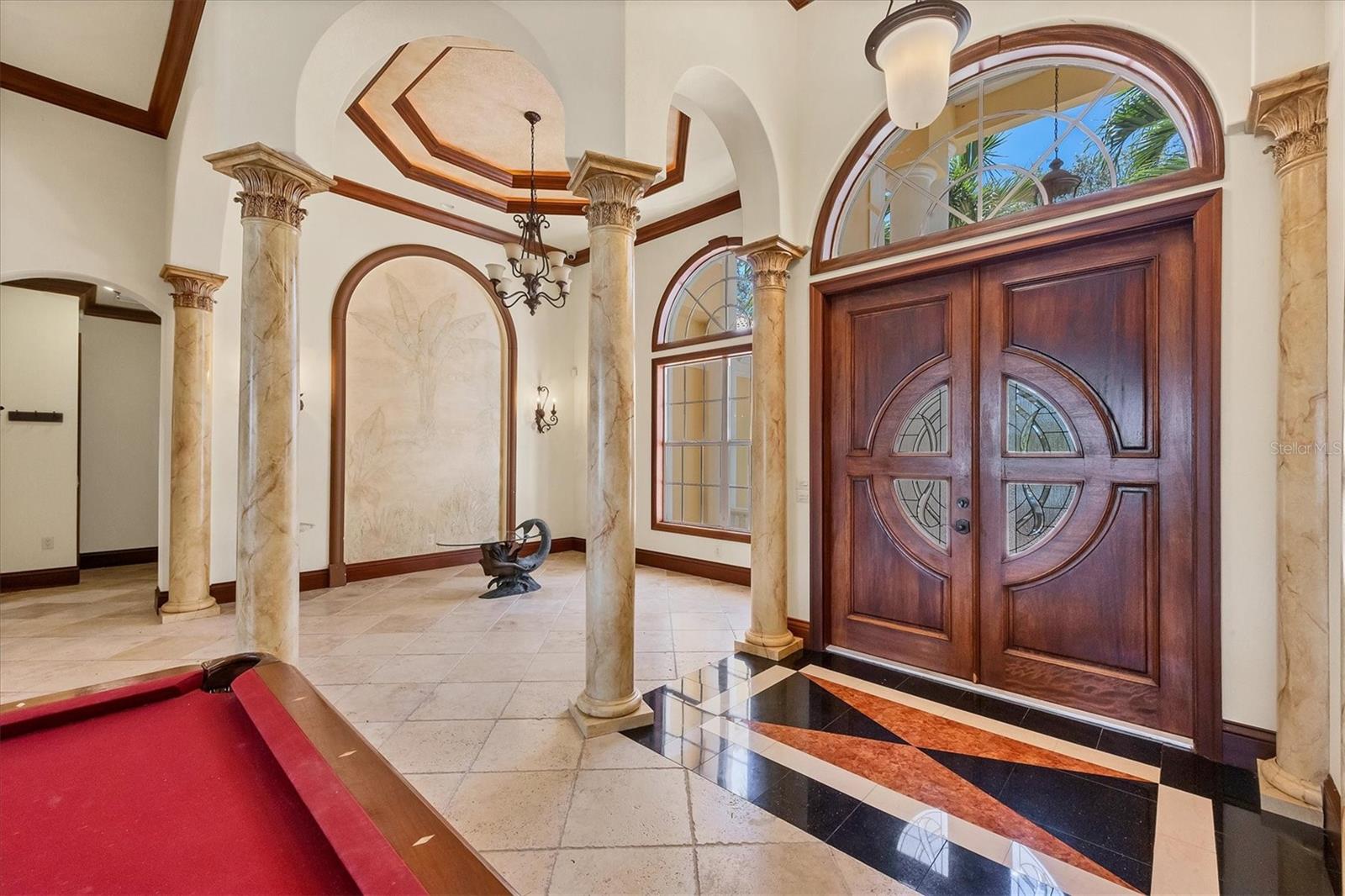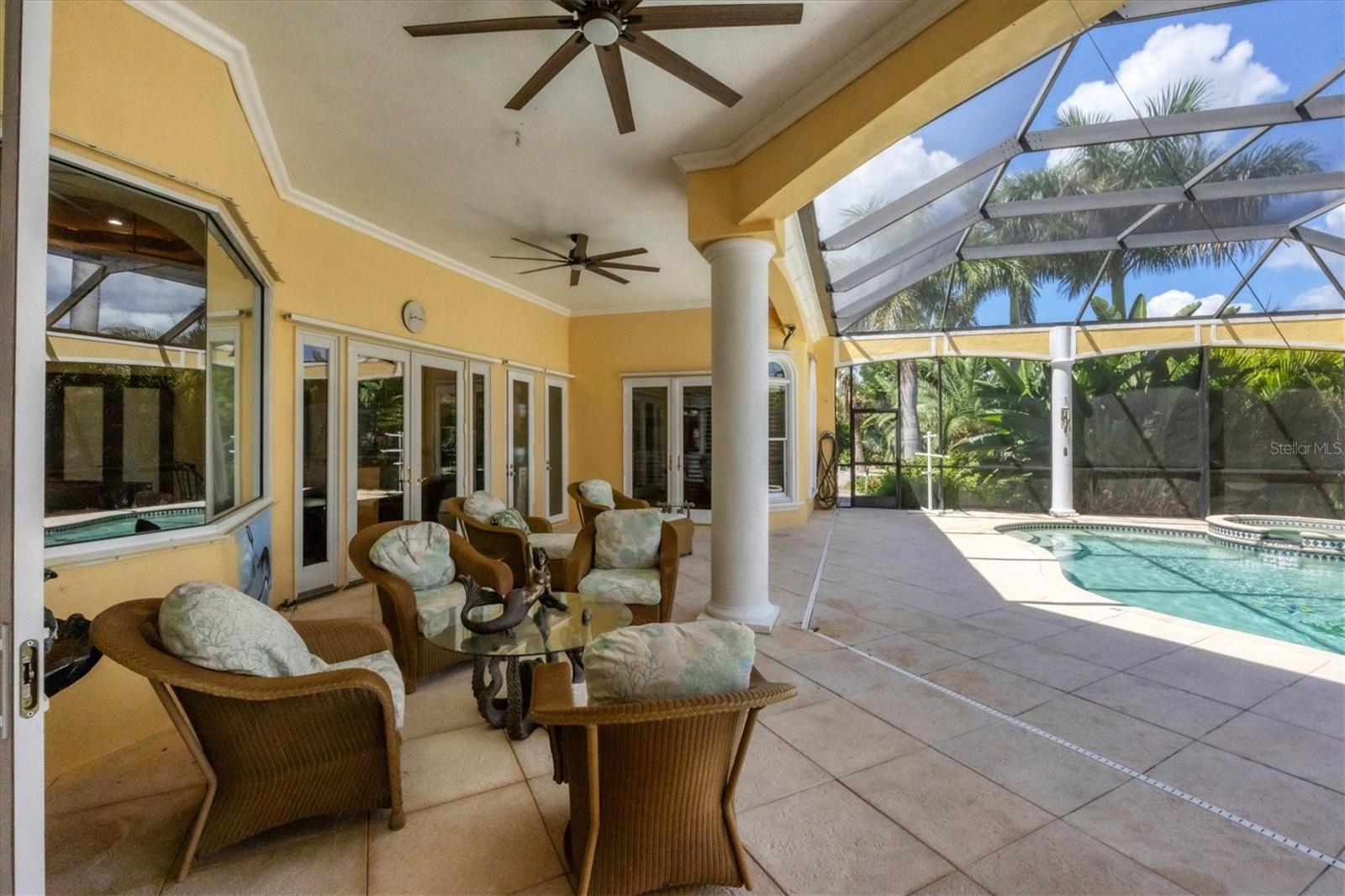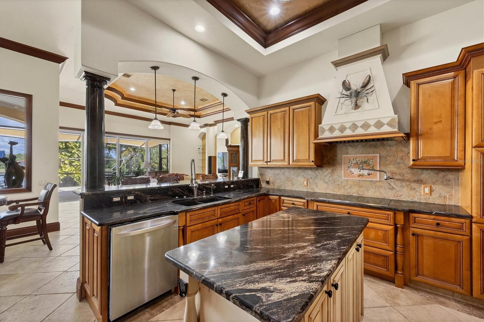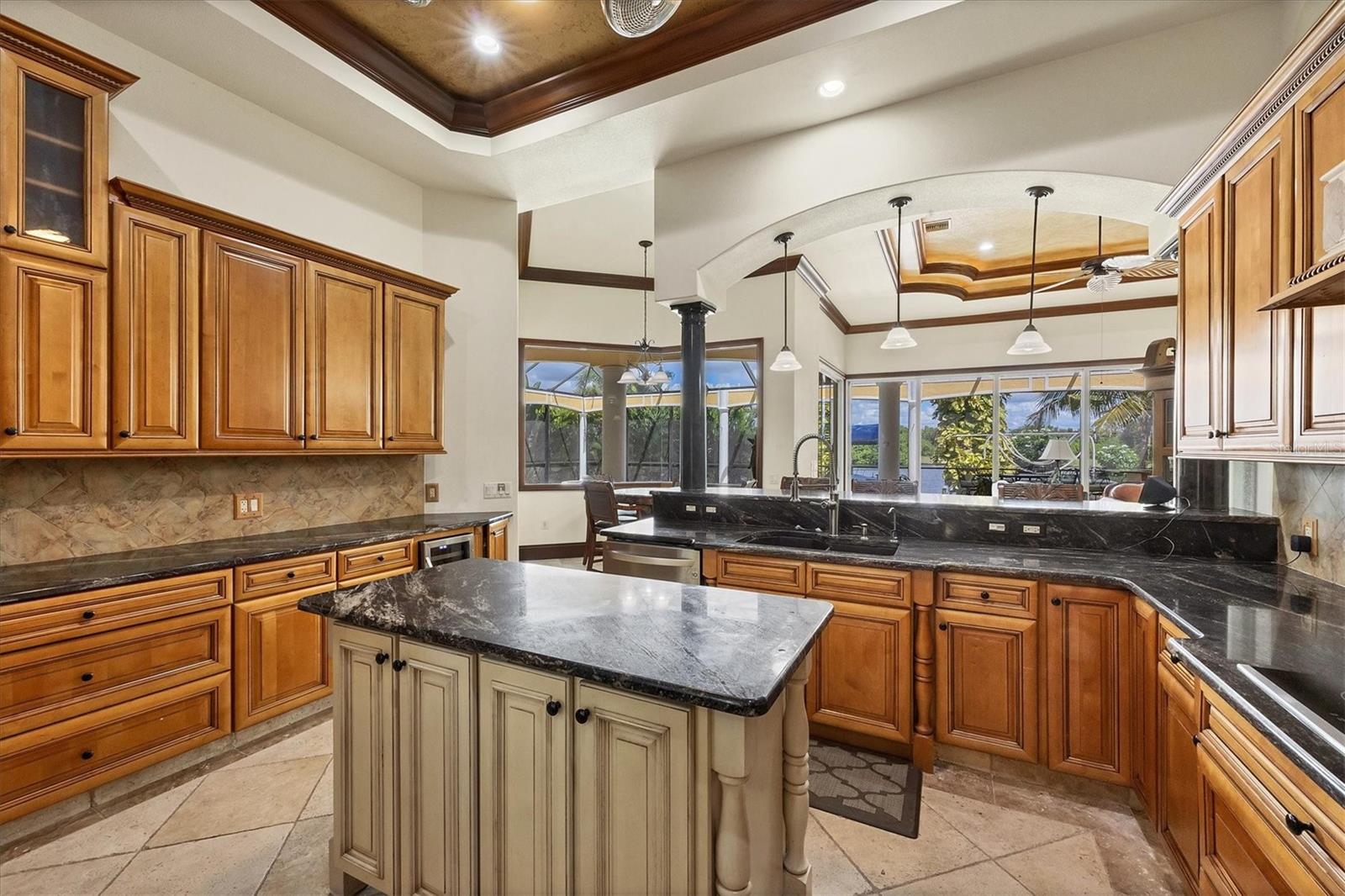 Experience luxury in this canal-front entertainment waterfront home! Set on over an acre across three spacious lots in a tranquil neighborhood off the beaten path, but with easy access to Boca Grande, Englewood beaches, & Port Charlotte shopping. This finely constructed 3 bed, 4 bath home offers elegance with soaring ceilings, natural light, and impeccable details. Enjoy stunning water views, arches, tray ceilings, custom moldings, solid core doors, plantation shutters, and more. The chef's kitchen boasts top-tier stainless steel appliances, custom cabinetry, and a breakfast bar. Perfect for entertaining, the home features two living rooms, a built-in bar, wine cooler, and three en-suite bedrooms. The master suite is a peaceful retreat with Brazilian mahogany floors, canal views, and a spa-like bath with dual sinks, a soaking tub, and a triple-head shower. Plus, a private office/den, tankless water heater, and two zoned A/C units for your comfort and enjoyment. The resort-style pool area, private fire pit, and lighted pickleball/tennis courts make this property a party paradise. Situated on the serene Zephyr Waterway, with 210 feet of seawall, a 25,000 lb boat lift, and an oversized trek dock, it's a boaters dream. For a full list of the features, please refer to the attachments. Schedule a private tour and experience the luxurious space and amenities this home offers!