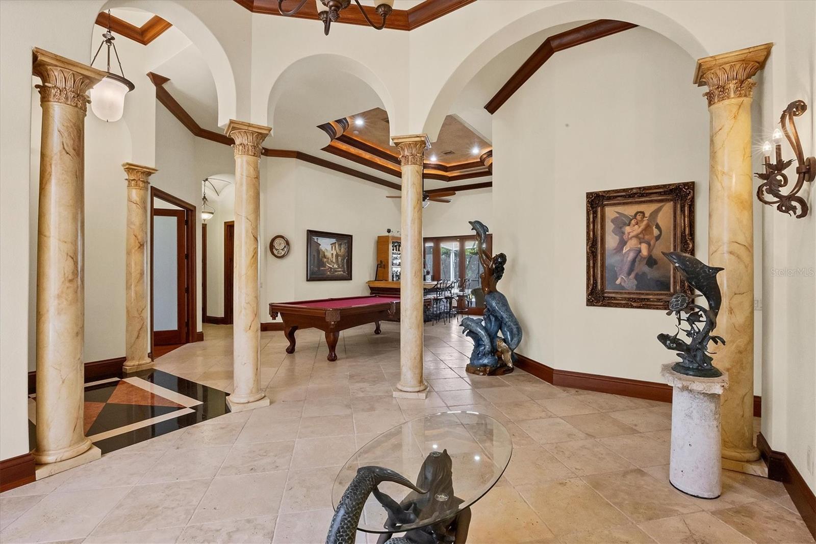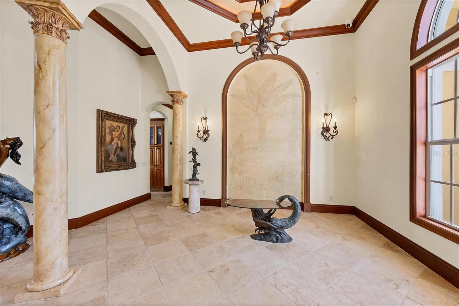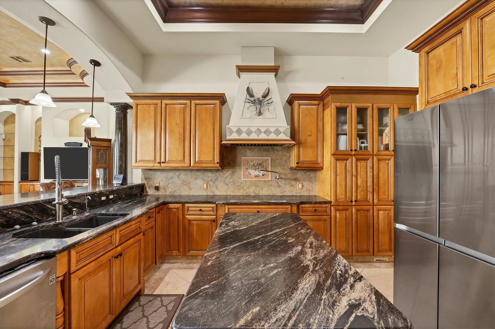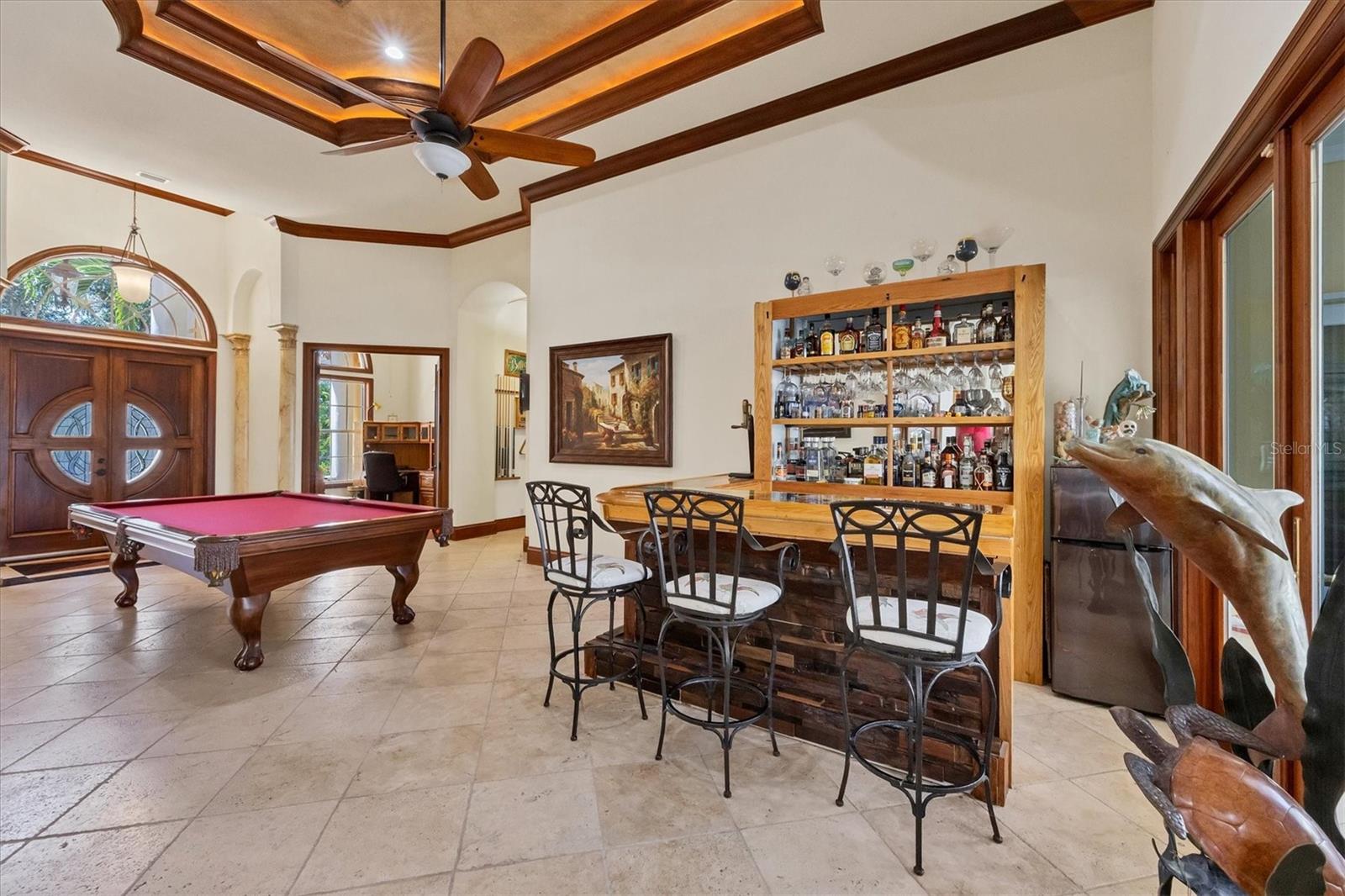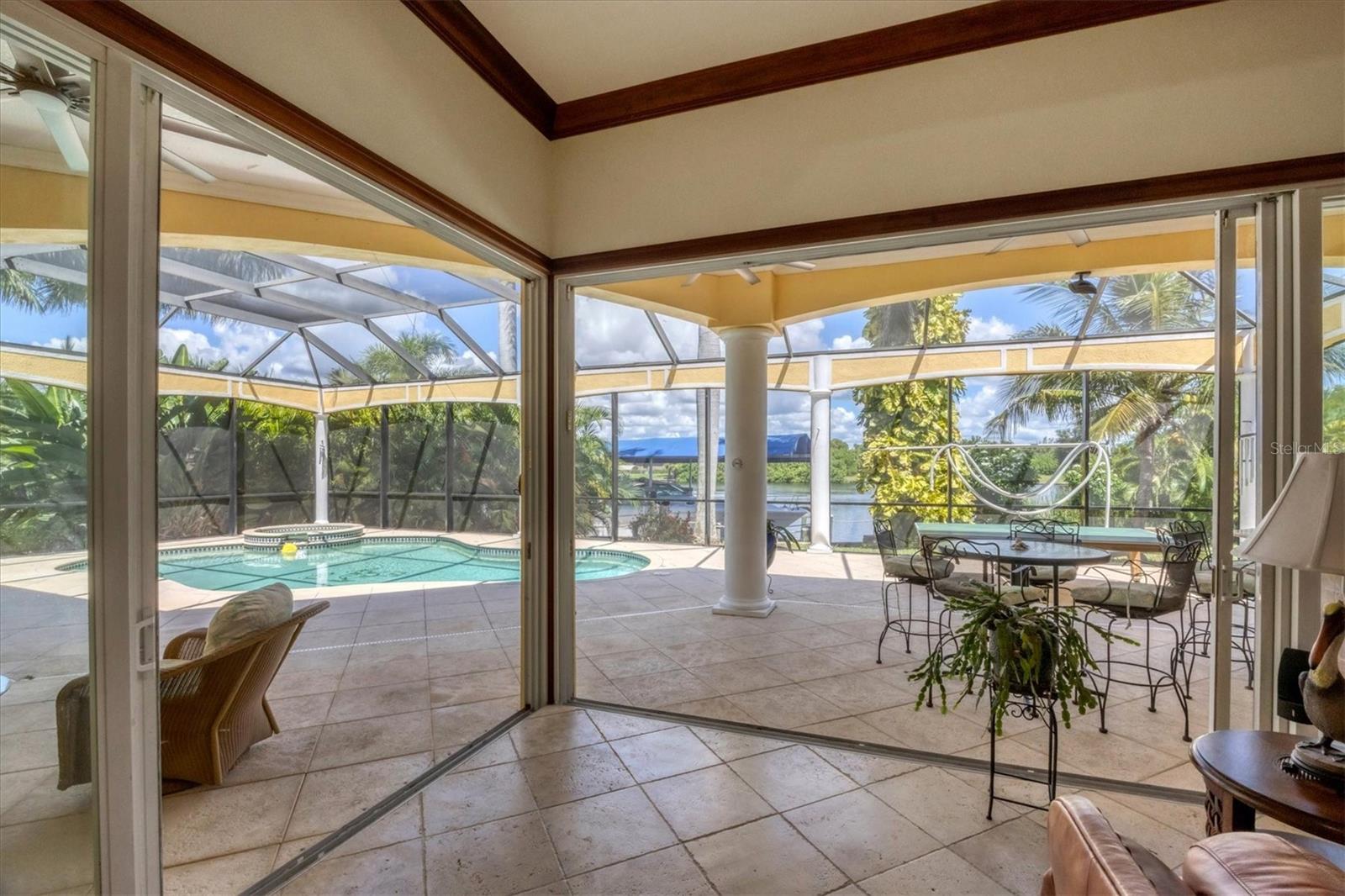 Experience luxury in this canal-front entertainment waterfront home! Set on over an acre across three spacious lots in a tranquil neighborhood off the beaten path, but with easy access to Boca Grande, Englewood beaches, & Port Charlotte shopping. This finely constructed 3 bed, 4 bath home offers elegance with soaring ceilings, natural light, and impeccable details. Enjoy stunning water views, arches, tray ceilings, custom moldings, solid core doors, plantation shutters, and more. The chef's kitchen boasts top-tier stainless steel appliances, custom cabinetry, and a breakfast bar. Perfect for entertaining, the home features two living rooms, a built-in bar, wine cooler, and three en-suite bedrooms. The master suite is a peaceful retreat with Brazilian mahogany floors, canal views, and a spa-like bath with dual sinks, a soaking tub, and a triple-head shower. Plus, a private office/den, tankless water heater, and two zoned A/C units for your comfort and enjoyment. The resort-style pool area, private fire pit, and lighted pickleball/tennis courts make this property a party paradise. Situated on the serene Zephyr Waterway, with 210 feet of seawall, a 25,000 lb boat lift, and an oversized trek dock, it's a boaters dream. For a full list of the features, please refer to the attachments. Schedule a private tour and experience the luxurious space and amenities this home offers!