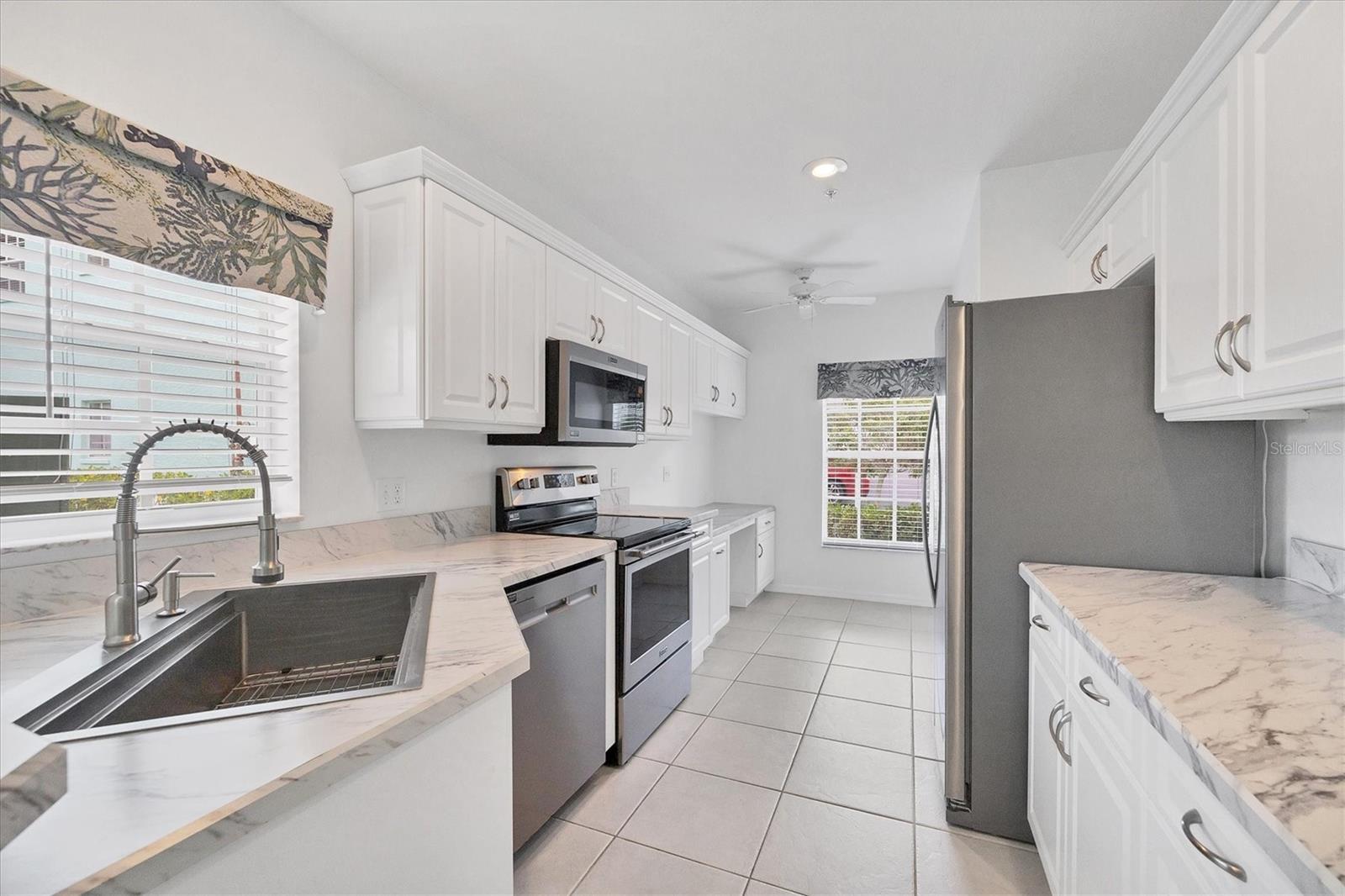 Fire up your 4th of July, grab this deal before it flies! Dream Property, price slashed low, hurry now, it's gotta go! Charming First-Floor Condo in the Coveted Heritage Oak Park Community! This first floor three-bedroom, two-bath end unit offers pond views, lush landscaping and beautiful oak tree, just steps from the pool and clubhouse. Step outside to the lanai, equipped with a sunshade and accessible through a triple glass sliding doors, to enjoy the sights and sounds of nature. The living room features a built-in entertainment center, complete with a television and electric fireplace for cozy comfort. The primary bedroom includes a walk-in closet and a bathroom with an easy-access shower and dual-sink vanity. The recently updated kitchen boasts new cabinets, modern stainless-steel appliances, ample storage, and a built-in office desk. For added privacy, the guest bedroom and bath are separated by a frosted paneled door, and a brand-new hot water heater has been installed. The vibrant community offers a heated pool, fitness center, tennis and pickleball courts, bocce ball, shuffleboard, billiards, and a library. Heritage Oak Park is located near shopping and dining in the heart of Port Charlotte and is just minutes from the beautiful Gulf beaches.
