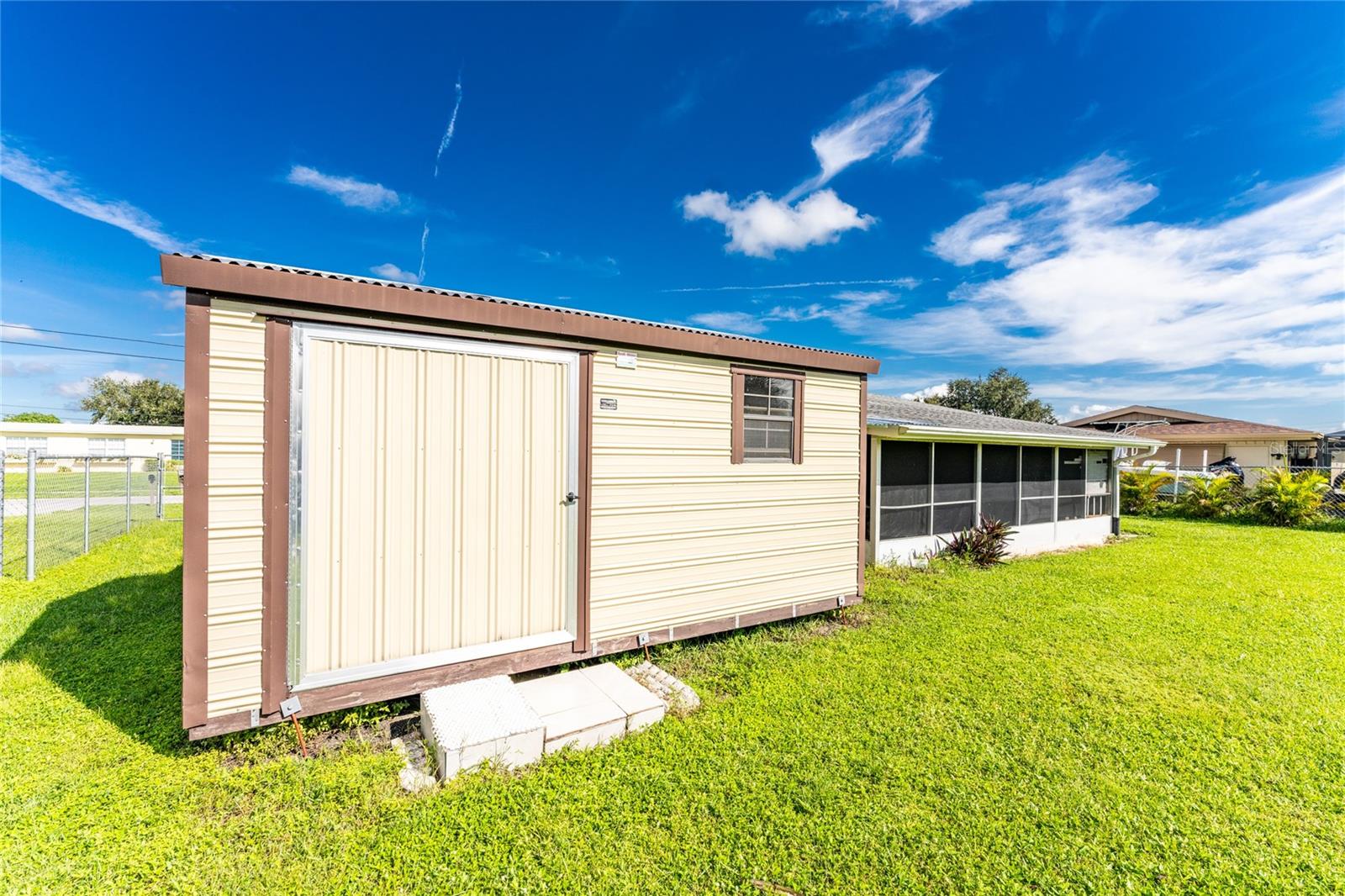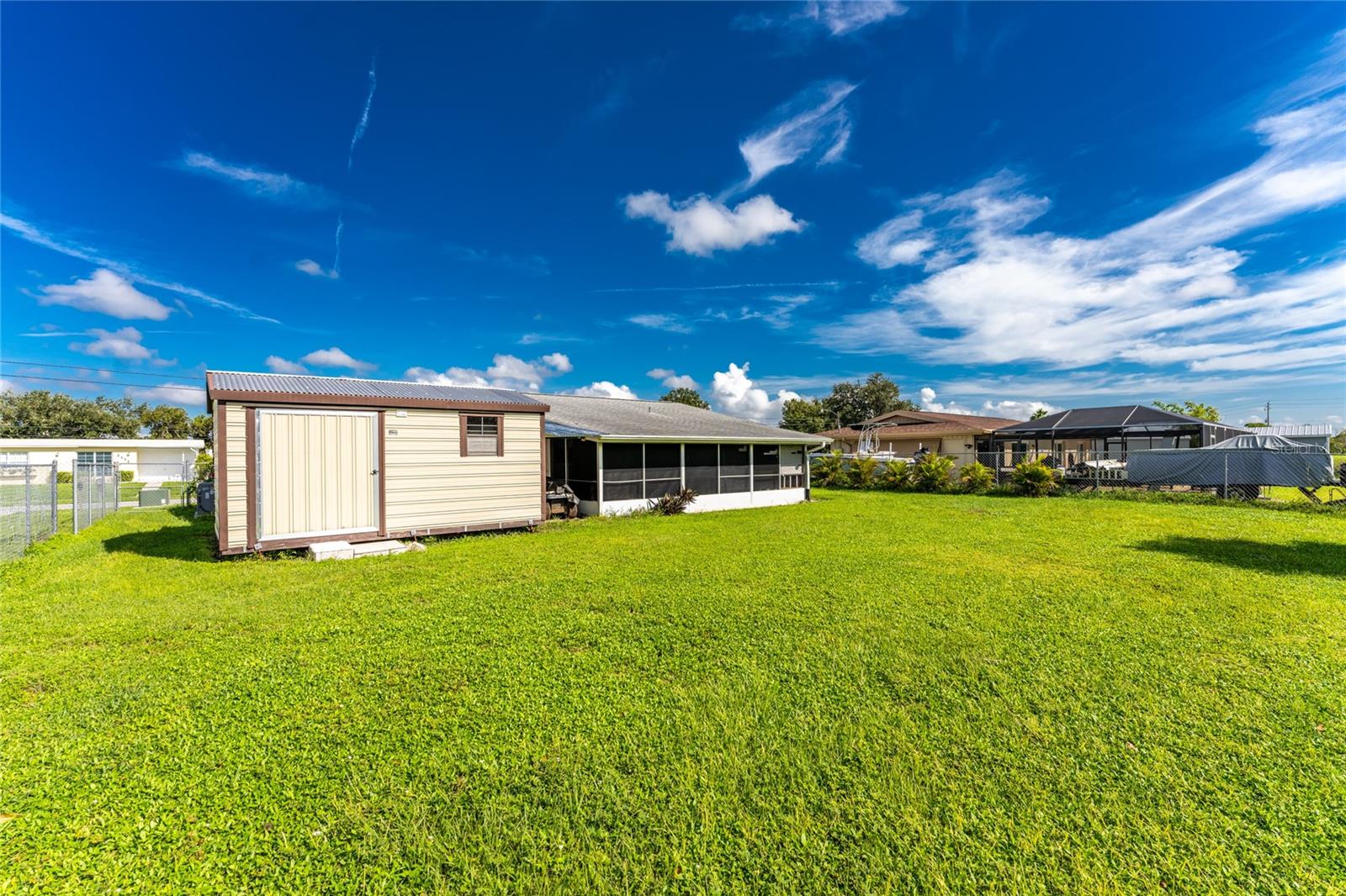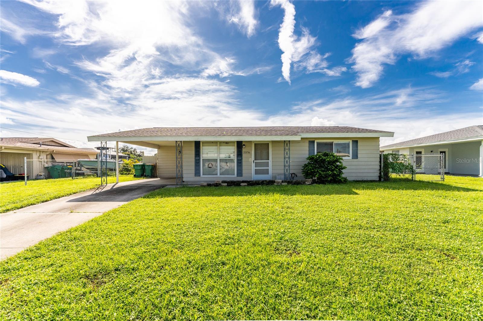 One or more photo(s) has been virtually staged. Are you looking for an affordable Waterfront Property in Port Charlotte that is well priced for a quick sale? Welcome to 2376 Starlite Lane, a cozy 2-Bedroom home with a Carport located on a serene freshwater canal offering a tranquil retreat with peaceful canal views. This home offers the perfect balance of comfort and simplicity, ideal for a carefree lifestyle, with endless potential to customize and make it uniquely yours. Recent updates include NEW ROOF in 2019, NEW HVAC in 2021, NEW 10x16 SHED in 2020, NEW ELECTRIC PANEL in 2019. Step inside and you will appreciate 2 generously sized bedrooms, providing comfort and relaxation with large built-in closets providing ample storage. An indoor laundry room adds convenience and functionality to your daily routine. Enjoy seamless indoor-outdoor living with the expansive screened lanai, accessible through sliding doors from the kitchen. Perfect for entertaining or simply relaxing while taking in the serene water views. Outside, you're only steps away from fishing off your own deck. The large yard offers plenty of space for outdoor activities, and gardening. There is also a huge shed behind the home that allows for extra storage. Located in a quiet, well-situated neighborhood, this home offers easy access to hospitals, shopping, dining, parks, recreation and easy access to US 41 and I-75. Call today to see this perfect starter home or winter vacation getaway.