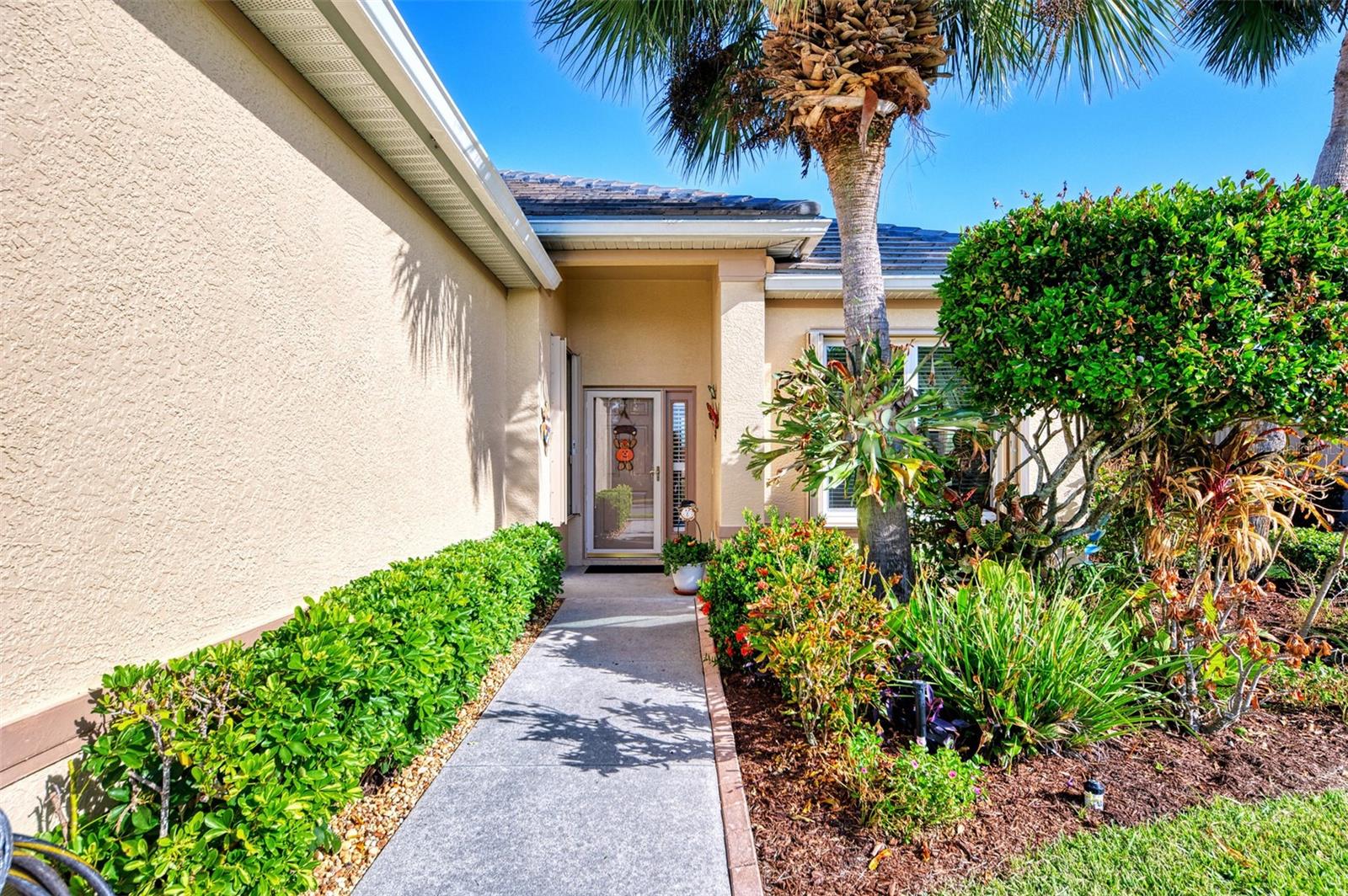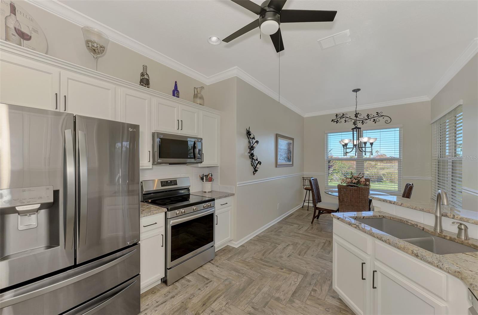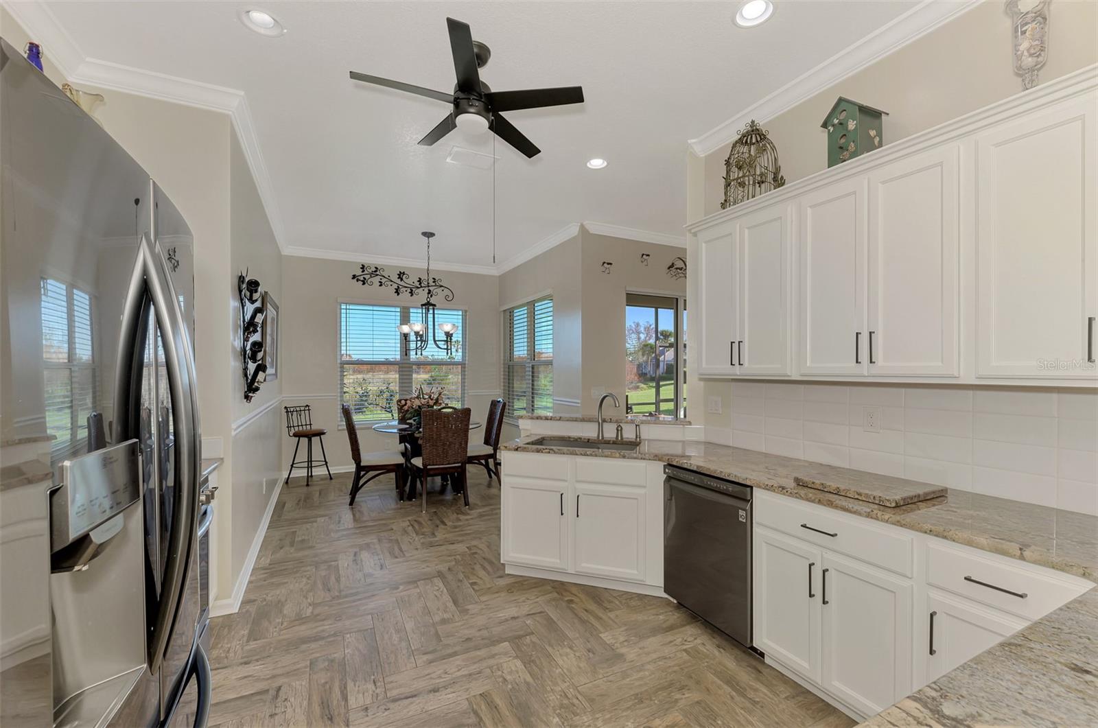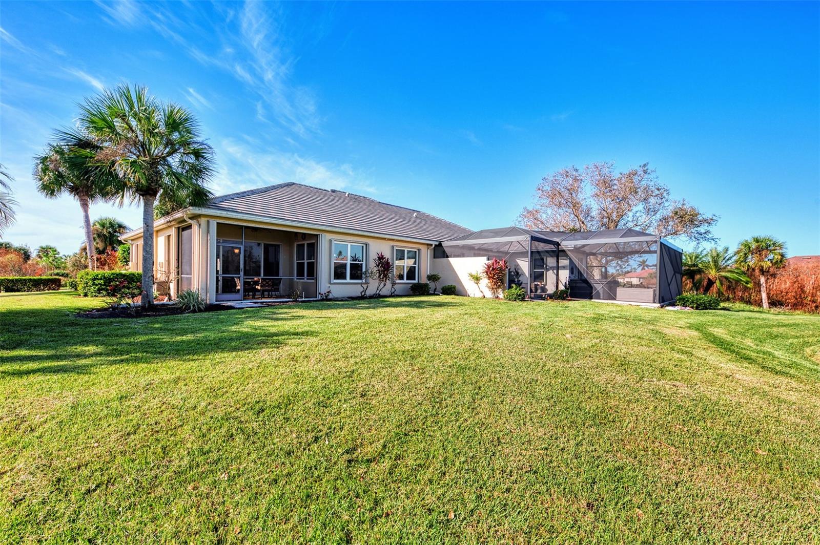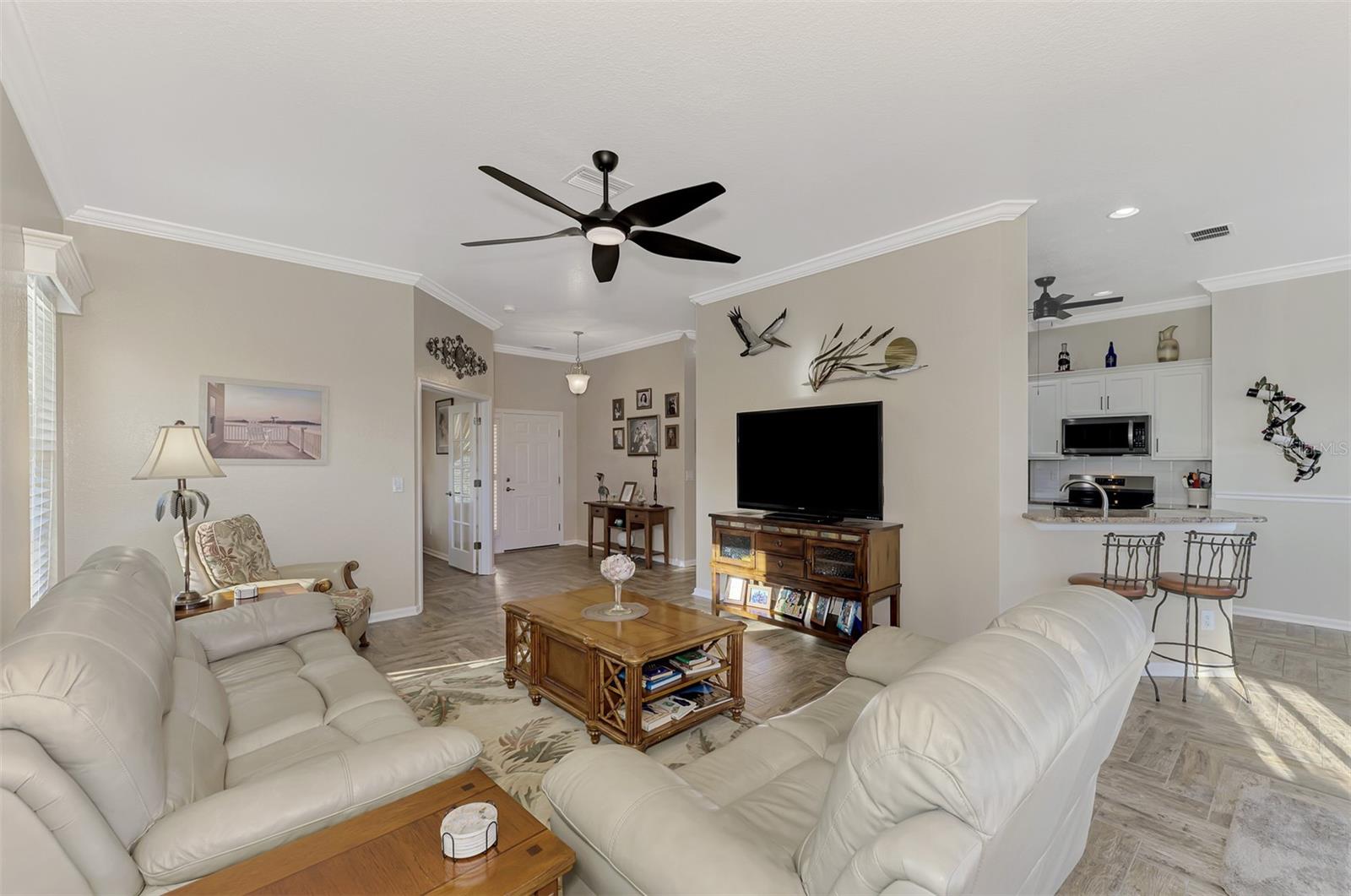PRICE CHANGE! New Roof 2024! Welcome to your dream home in the serene gated community of Riverwood! A pristine well maintained 2 Bedroom, 2 Bath plus Den JUNIPER VILLA with its very scenic open-wide natural view of preserve and wild-life. In the quaint peaceful, established landscape neighborhood of Marlin Cove this home features many recent updates starting as you enter the front door with the stunning Herringbone pattern wood look tile flooring throughout the living area into the bathrooms. Spacious kitchen with wood cabinets, granite countertops, graphite sink and updated stainless steel appliances. The primary bedroom suite boasts the comfort of new carpet, a large walk-in closet with 10' ceiling and a beautiful updated modern bathroom with a large walk-in shower, elevated vanity w/dual sinks & light fixture. French doors lead you to a private office/den currently being used as a formal dining area. Added features include; NEW windows, RECENTLY painted interior, NEW ceiling fans in Living Room & Kitchen, NEW Garage Epoxy flooring & door opener, Hunter Douglas Vertiglide-Style blind on the lanai slider, storm door at front door, hurricane shutters and crown molding. This is Florida Living at its Best! Don't let this extraordinary opportunity slip away! GOLF CLUB NAMED *TOP 50 US COURSES* *GOLF ADVISOR* *2018*, ACTIVITY CENTER CAMPUS INCLUDES LAP & RESORT STYLE POOL, FITNESS CENTER, PICKLE-BALL COURTS, SMALL AND LARGE DOG PARKS, TENNIS COURTS, LAWN CROQUET, BOCCE COURTS, CRAFT ROOM, LIBRARY AND SOCIAL ACTIVITIES! Additional fees apply for Riverwood Golf Club & Private Beach Club on Manasota Key. Riverwood is Close to Tampa Bay Rays Spring Training Facility, Atlanta Braves Spring Training Facility, Gulf Beaches, Carlotte Harbor, Myakka River, Punta Gorda, Englewood and Boca Grande. Riverwood, a Perfect Blend of Florida's Nature and Resort Lifestyle.
