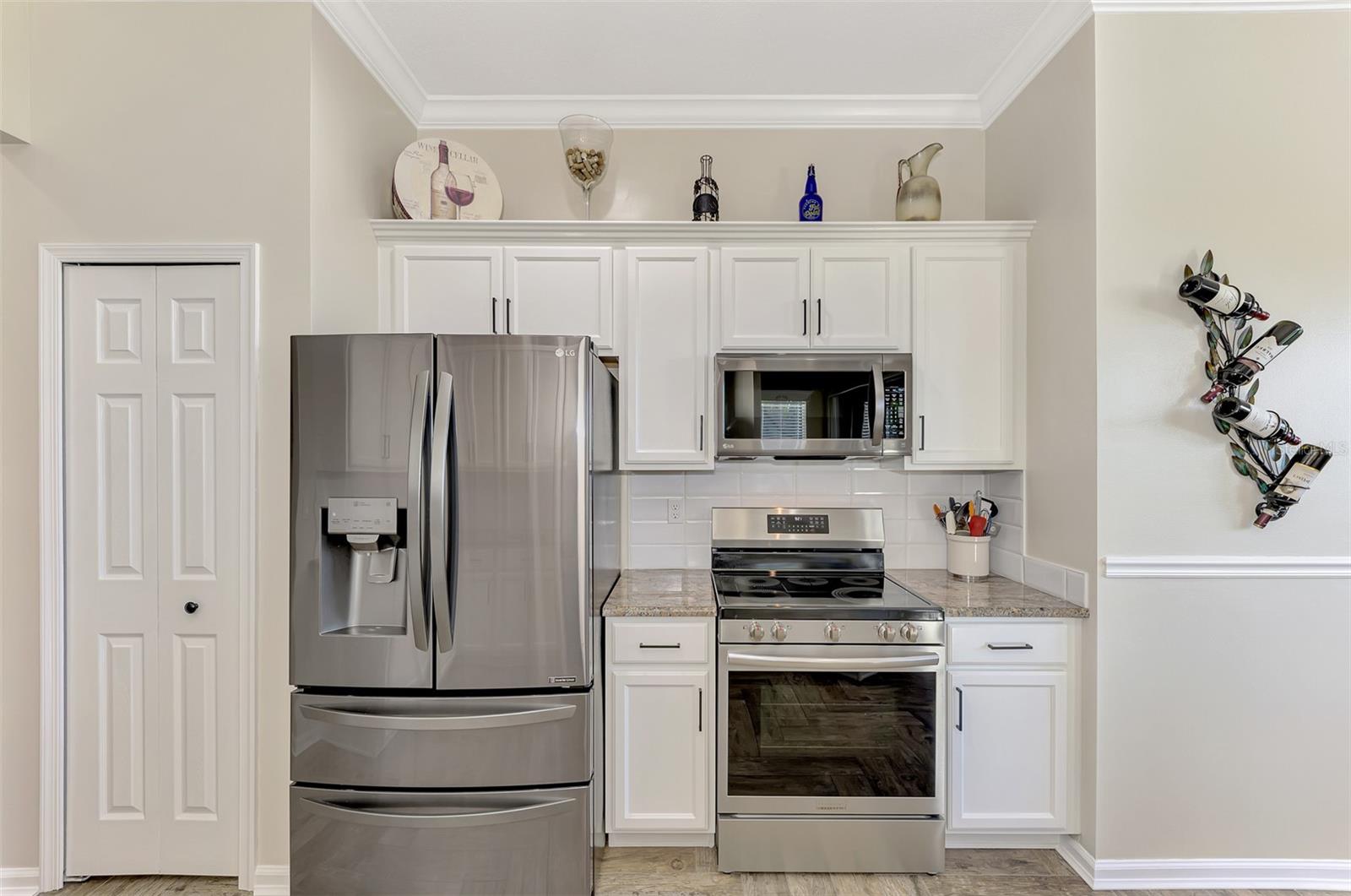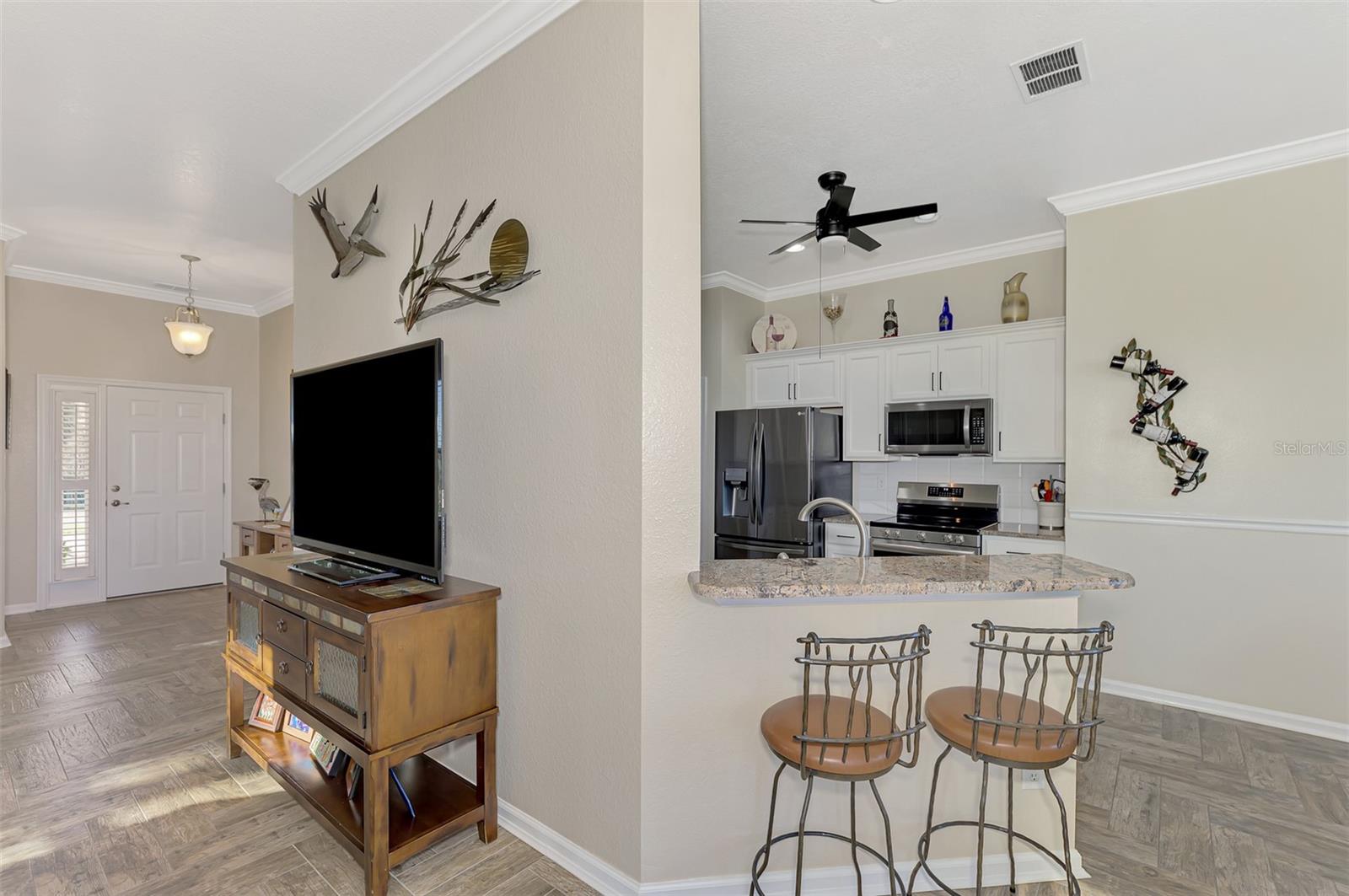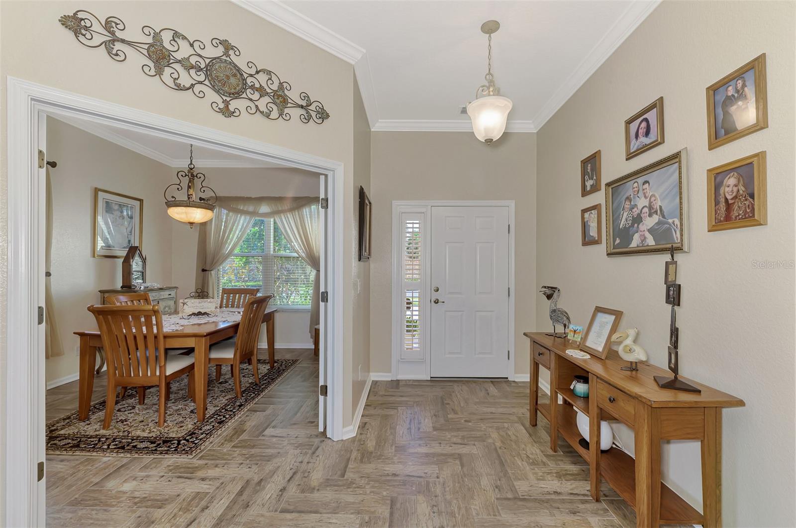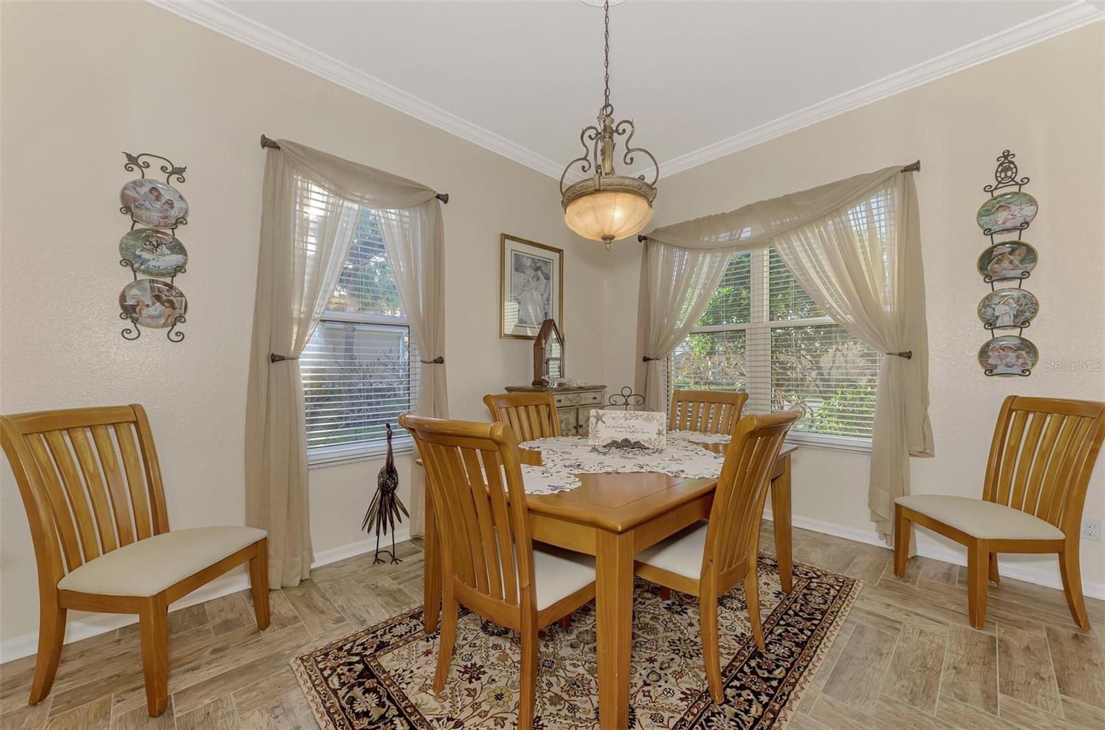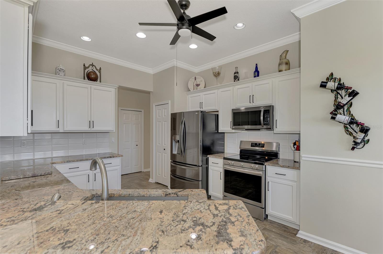 PRICE CHANGE! New Roof 2024! Welcome to your dream home in the serene gated community of Riverwood! A pristine well maintained 2 Bedroom, 2 Bath plus Den JUNIPER VILLA with its very scenic open-wide natural view of preserve and wild-life. In the quaint peaceful, established landscape neighborhood of Marlin Cove this home features many recent updates starting as you enter the front door with the stunning Herringbone pattern wood look tile flooring throughout the living area into the bathrooms. Spacious kitchen with wood cabinets, granite countertops, graphite sink and updated stainless steel appliances. The primary bedroom suite boasts the comfort of new carpet, a large walk-in closet with 10' ceiling and a beautiful updated modern bathroom with a large walk-in shower, elevated vanity w/dual sinks & light fixture. French doors lead you to a private office/den currently being used as a formal dining area. Added features include; NEW windows, RECENTLY painted interior, NEW ceiling fans in Living Room & Kitchen, NEW Garage Epoxy flooring & door opener, Hunter Douglas Vertiglide-Style blind on the lanai slider, storm door at front door, hurricane shutters and crown molding. This is Florida Living at its Best! Don't let this extraordinary opportunity slip away! GOLF CLUB NAMED *TOP 50 US COURSES* *GOLF ADVISOR* *2018*, ACTIVITY CENTER CAMPUS INCLUDES LAP & RESORT STYLE POOL, FITNESS CENTER, PICKLE-BALL COURTS, SMALL AND LARGE DOG PARKS, TENNIS COURTS, LAWN CROQUET, BOCCE COURTS, CRAFT ROOM, LIBRARY AND SOCIAL ACTIVITIES! Additional fees apply for Riverwood Golf Club & Private Beach Club on Manasota Key. Riverwood is Close to Tampa Bay Rays Spring Training Facility, Atlanta Braves Spring Training Facility, Gulf Beaches, Carlotte Harbor, Myakka River, Punta Gorda, Englewood and Boca Grande. Riverwood, a Perfect Blend of Florida's Nature and Resort Lifestyle.