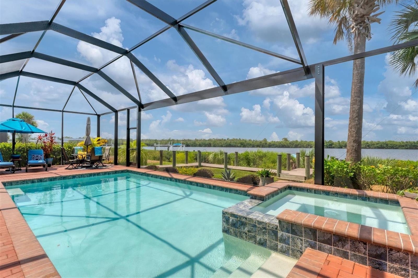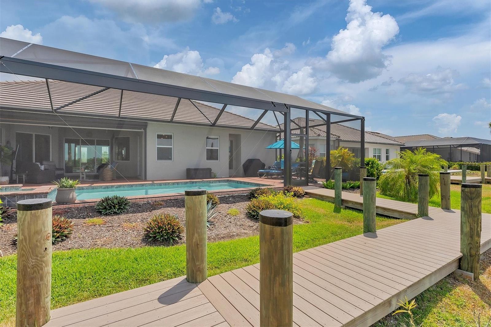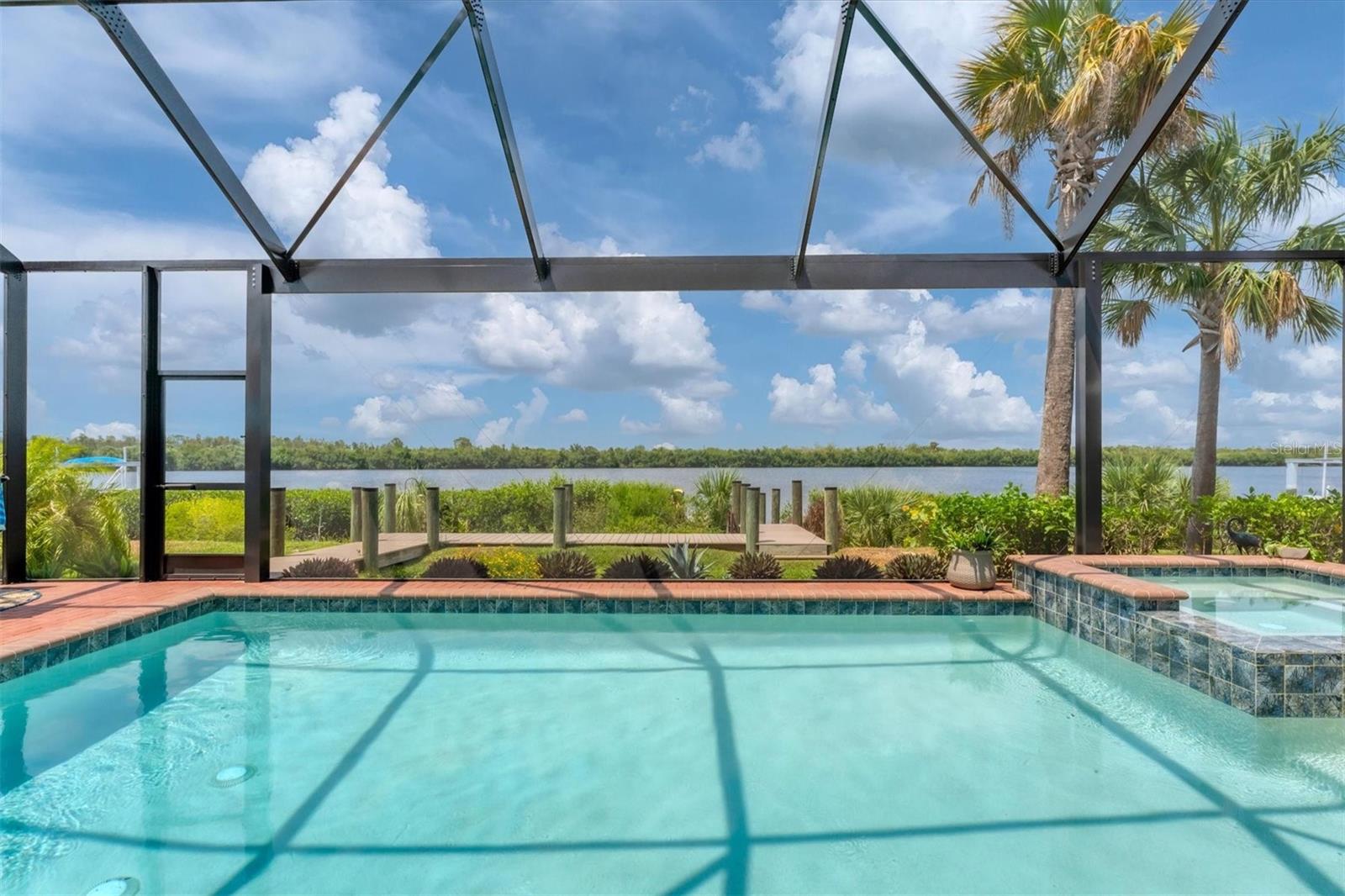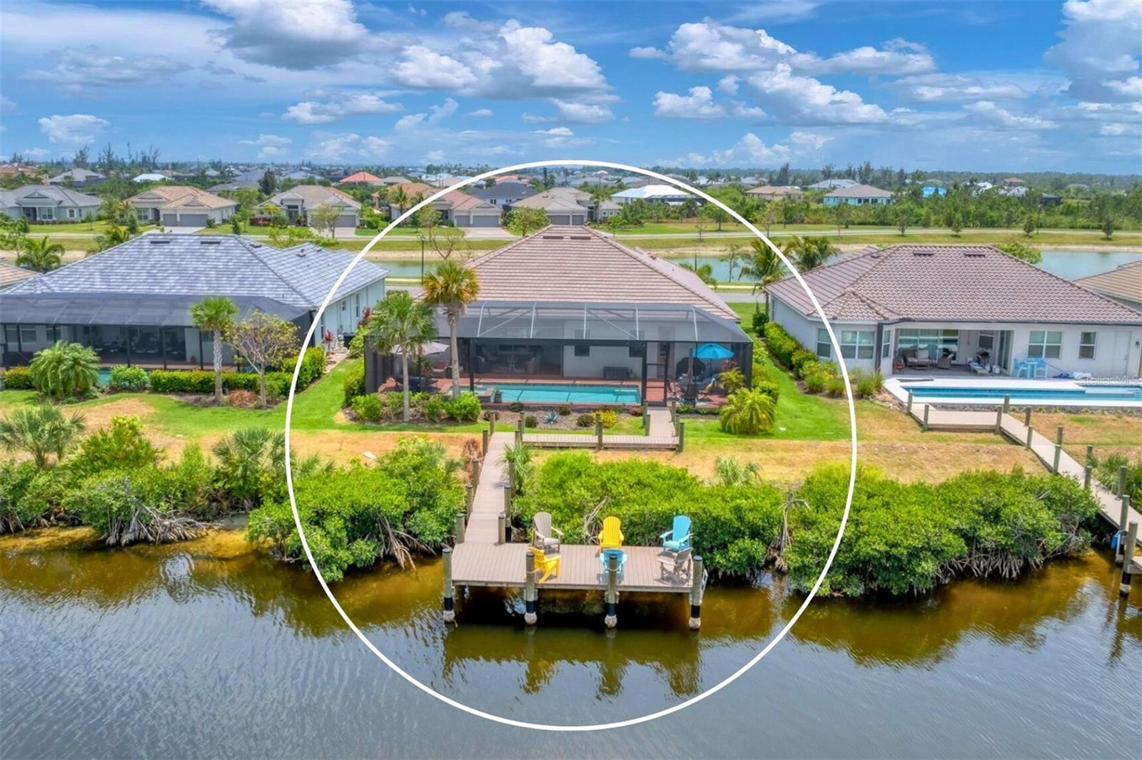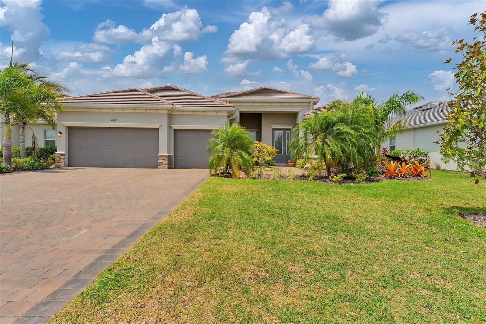 Experience exclusive waterfront living at Harbor West, a serene, deed-restricted gated community designed for boating and fishing enthusiasts—where golf carts are always welcome! This stunning 2020-built home features 4 bedrooms plus a den and 3 baths, along with a coveted three-car garage with an epoxy-coated floor. Inside, enjoy expansive waterfront views and stylish upgrades like tray ceilings, crown molding, and diagonally set tile flooring. The layout includes a foyer, formal living room, and dining area that are separate from the centrally located kitchen, which opens to the breakfast nook and family room—ideal for both entertaining and privacy. The kitchen has white 42” shaker-style cabinets, granite countertops, a tile backsplash, and a breakfast bar. With an aquarium window and multiple sliding glass doors, the living areas offer breathtaking views of the water. The master bedroom is a true retreat, featuring sliding doors to the pool, a cozy sitting area, tray ceiling, and a spacious walk-in closet, plus an additional reach-in closet. The master bath includes a large dual sink, soaking tub, walk-in shower, and abundant natural light. Guest bedrooms are thoughtfully placed on the opposite side of the home for added privacy. Step outside to a beautiful pool and spa area surrounded by panoramic screens that maximize your views of the waterway. Composite decking leads to the dock, perfect for relaxing with a cocktail or casting a line for a day of fishing. The exterior is beautifully landscaped and includes an irrigation system, a paver driveway, a 2024 tile roof, whole-house impact windows and sliding doors, and a storm smart screen on the lanai. Low HOA fees cover lawn irrigation, grass cutting, tree pruning, and common area maintenance. Leasing is allowed for a minimum of 30 days with HOA approval. Located in a fantastic waterfront area with no bridges, you can easily launch your boat from your dock and spend the day on the Gulf of Mexico enjoying beautiful sandy beaches, world-class fishing, or dining at waterfront restaurants. Prefer to stay on land? You’ll find several golf courses, dining options, and shopping experiences nearby. Don’t let this beautiful Harbor West home pass you by—schedule your showing today!