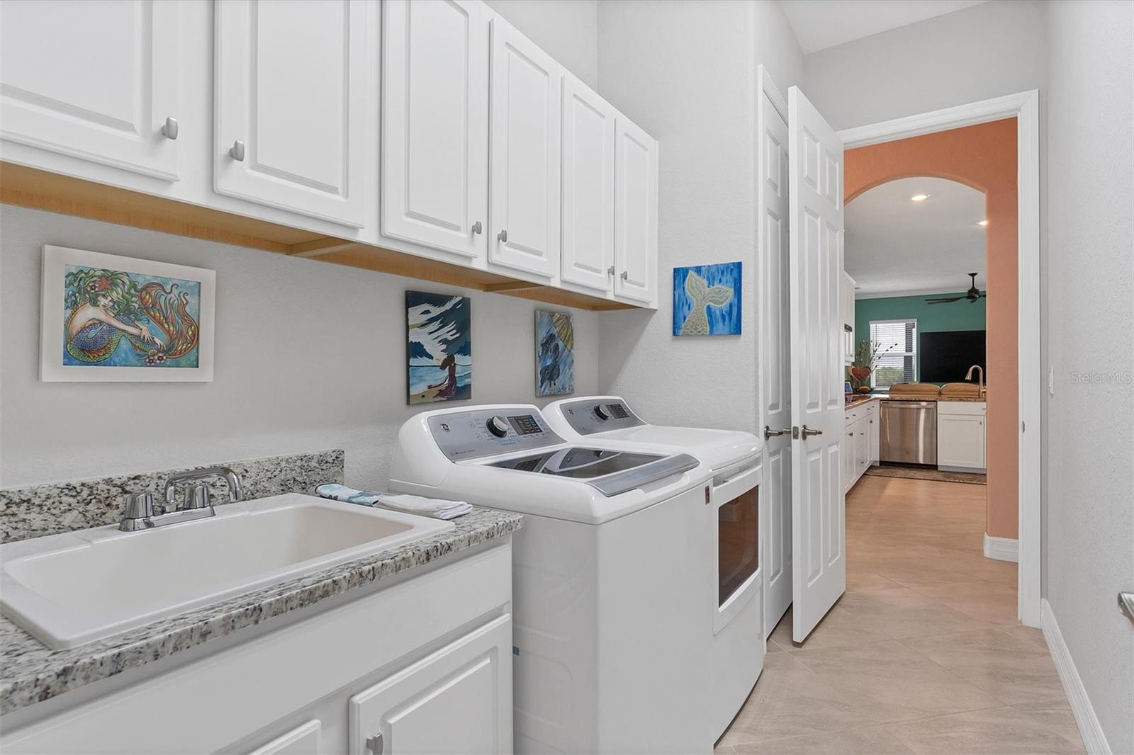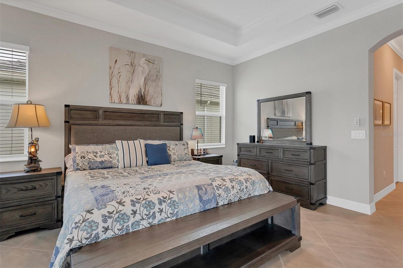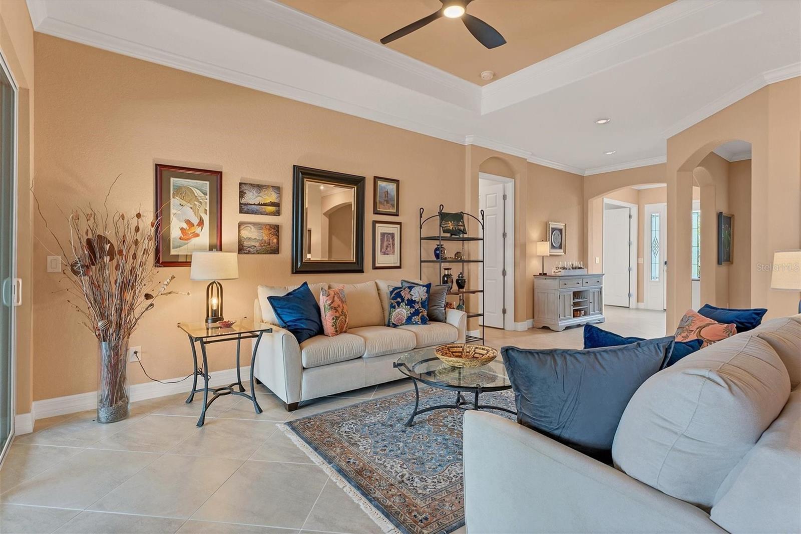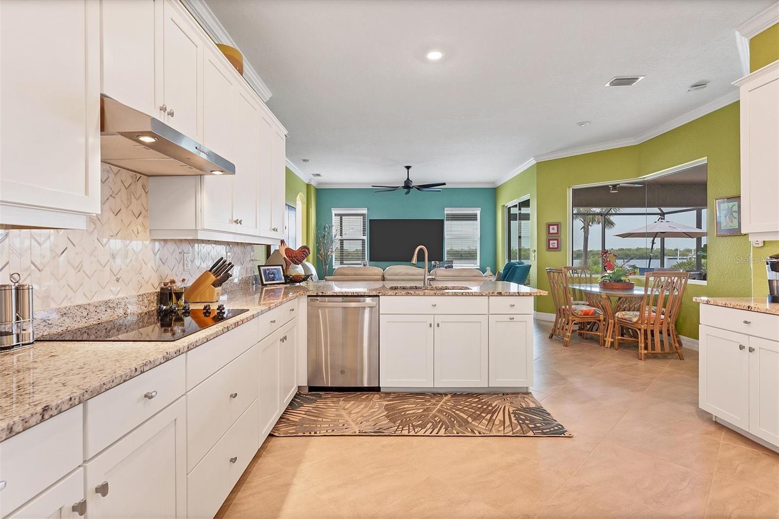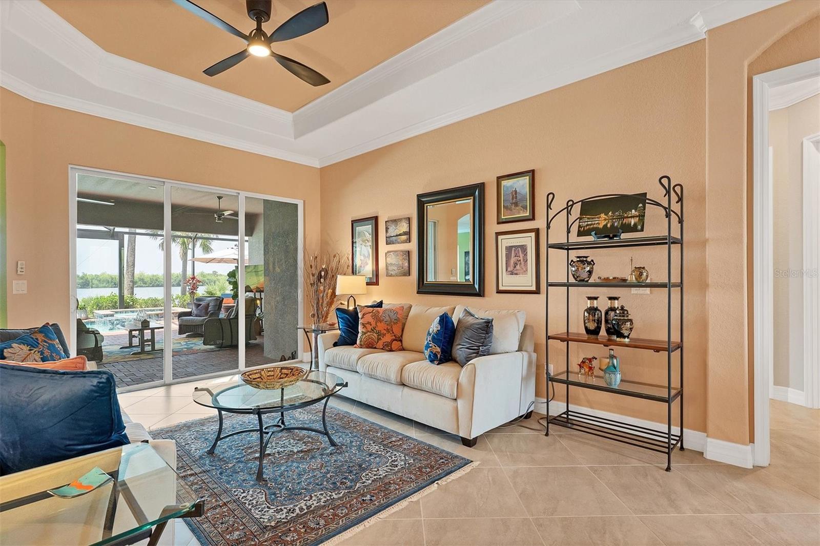 Experience exclusive waterfront living at Harbor West, a serene, deed-restricted gated community designed for boating and fishing enthusiasts—where golf carts are always welcome! This stunning 2020-built home features 4 bedrooms plus a den and 3 baths, along with a coveted three-car garage with an epoxy-coated floor. Inside, enjoy expansive waterfront views and stylish upgrades like tray ceilings, crown molding, and diagonally set tile flooring. The layout includes a foyer, formal living room, and dining area that are separate from the centrally located kitchen, which opens to the breakfast nook and family room—ideal for both entertaining and privacy. The kitchen has white 42” shaker-style cabinets, granite countertops, a tile backsplash, and a breakfast bar. With an aquarium window and multiple sliding glass doors, the living areas offer breathtaking views of the water. The master bedroom is a true retreat, featuring sliding doors to the pool, a cozy sitting area, tray ceiling, and a spacious walk-in closet, plus an additional reach-in closet. The master bath includes a large dual sink, soaking tub, walk-in shower, and abundant natural light. Guest bedrooms are thoughtfully placed on the opposite side of the home for added privacy. Step outside to a beautiful pool and spa area surrounded by panoramic screens that maximize your views of the waterway. Composite decking leads to the dock, perfect for relaxing with a cocktail or casting a line for a day of fishing. The exterior is beautifully landscaped and includes an irrigation system, a paver driveway, a 2024 tile roof, whole-house impact windows and sliding doors, and a storm smart screen on the lanai. Low HOA fees cover lawn irrigation, grass cutting, tree pruning, and common area maintenance. Leasing is allowed for a minimum of 30 days with HOA approval. Located in a fantastic waterfront area with no bridges, you can easily launch your boat from your dock and spend the day on the Gulf of Mexico enjoying beautiful sandy beaches, world-class fishing, or dining at waterfront restaurants. Prefer to stay on land? You’ll find several golf courses, dining options, and shopping experiences nearby. Don’t let this beautiful Harbor West home pass you by—schedule your showing today!