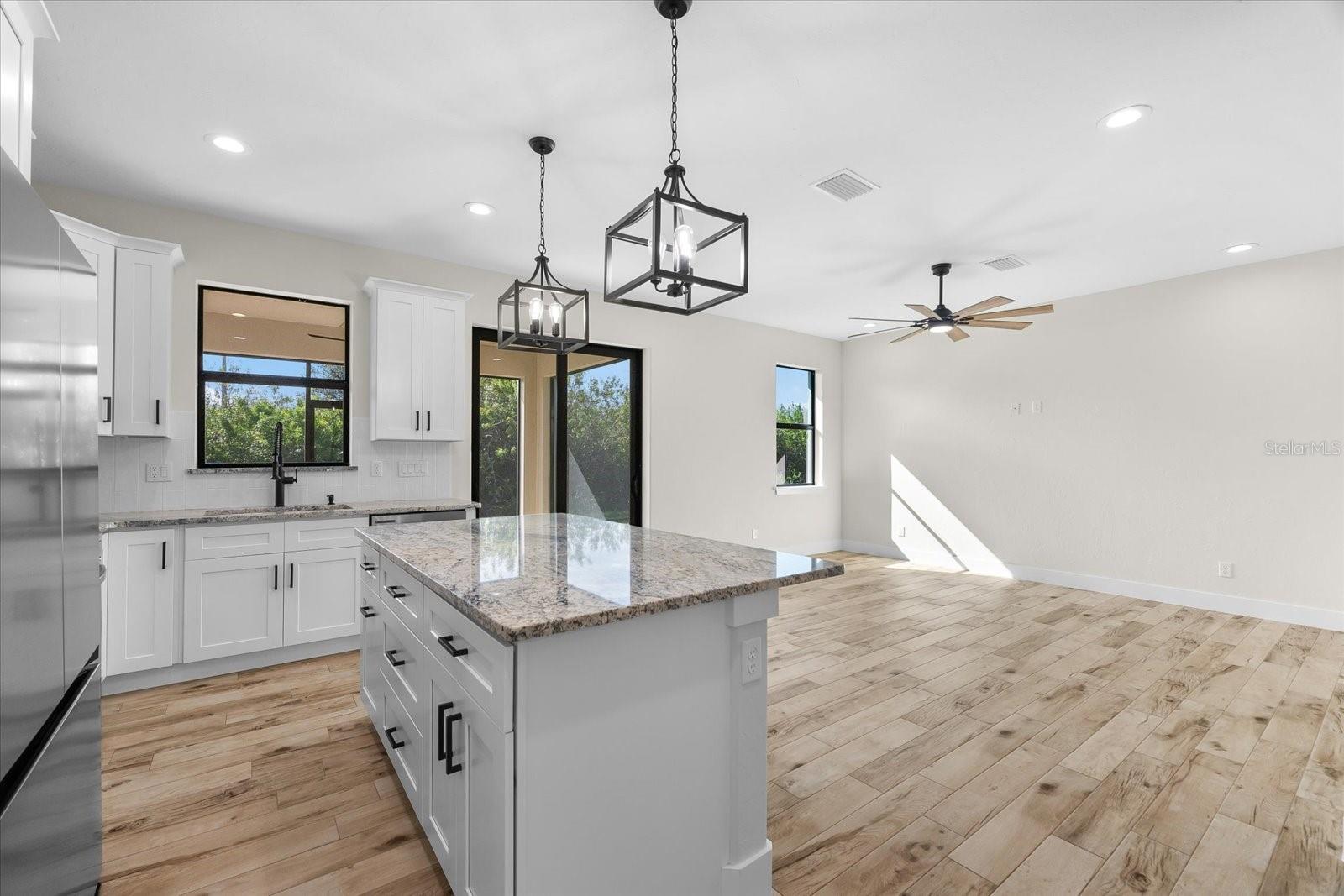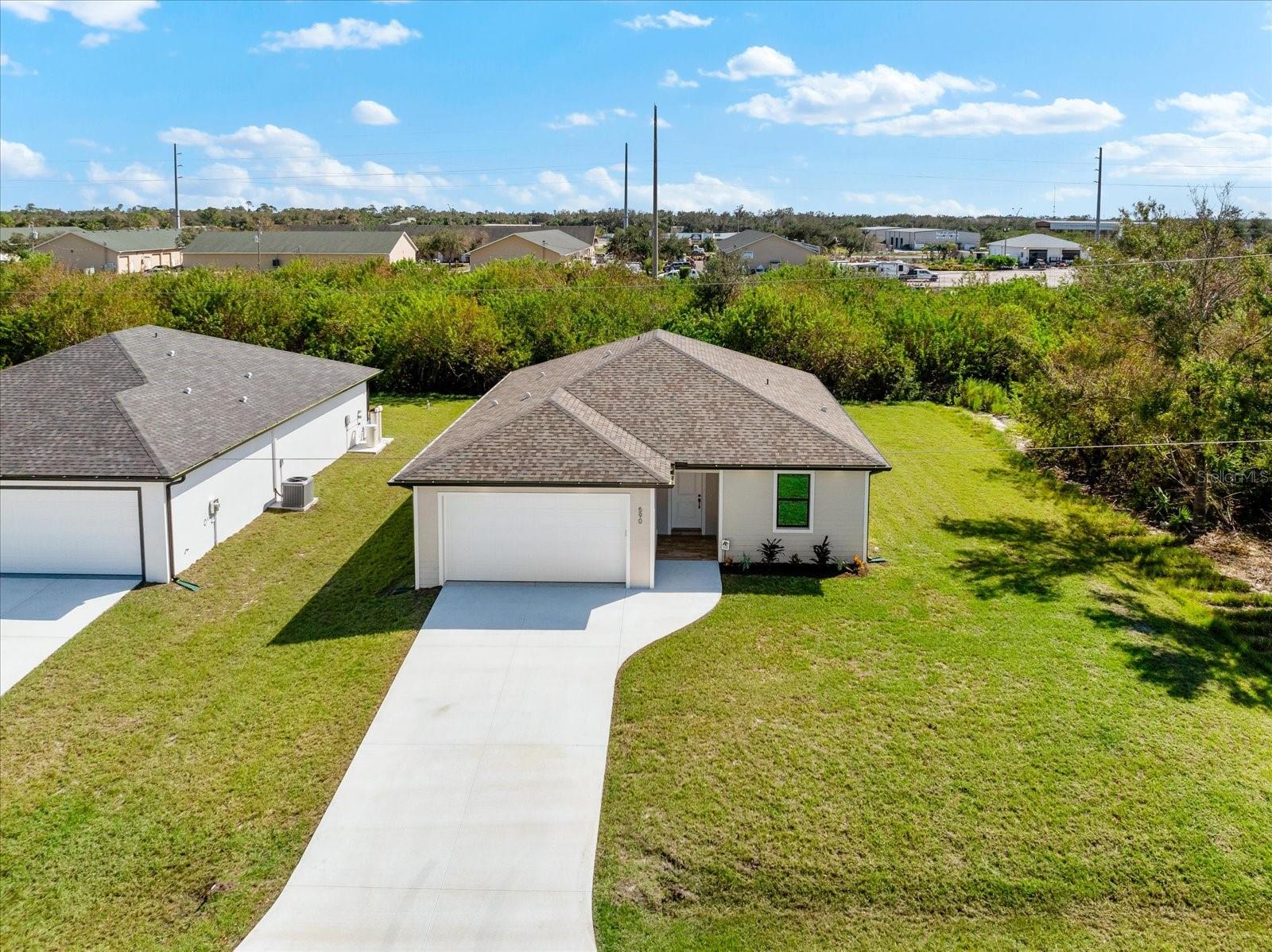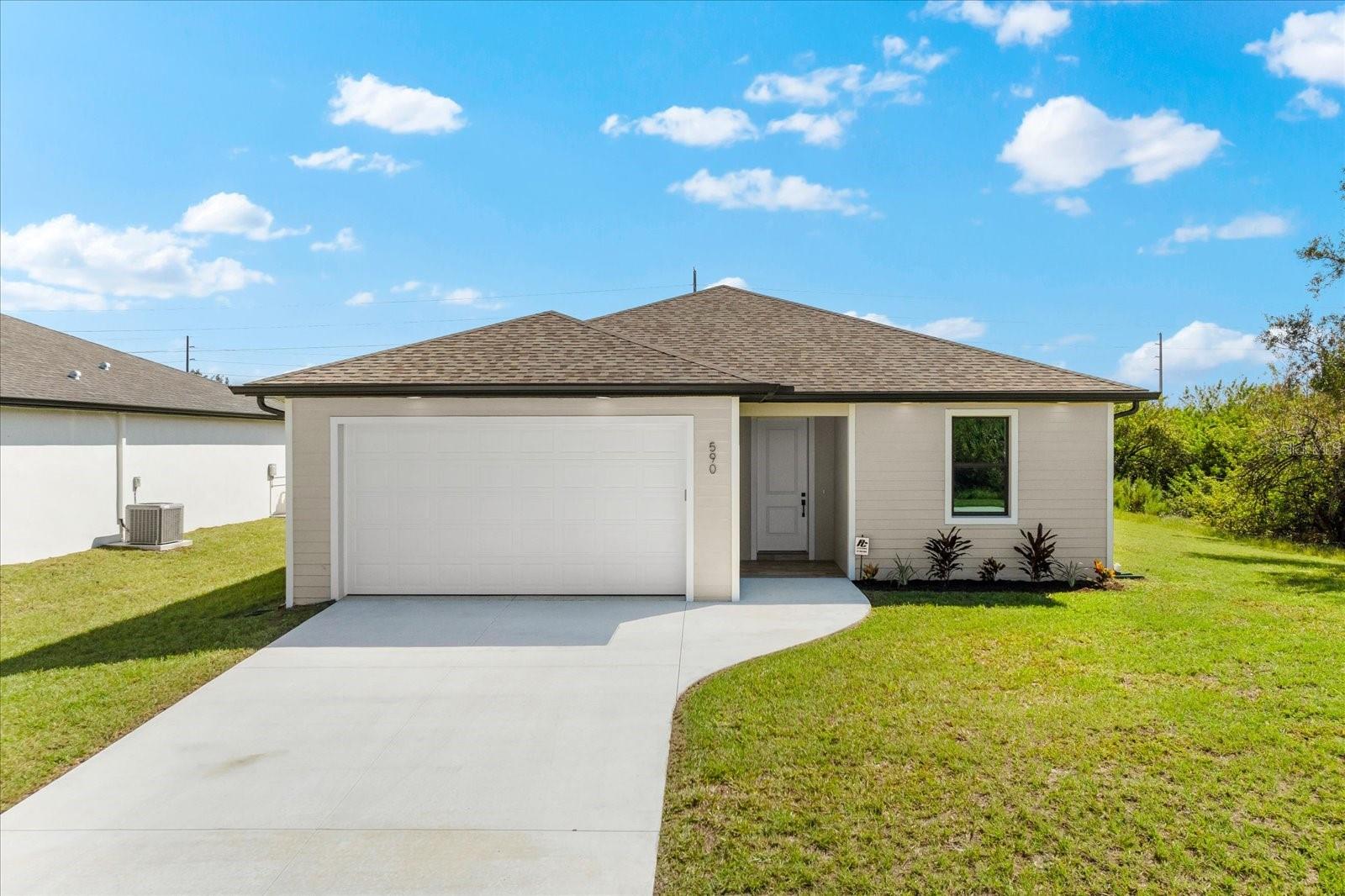 PRICED TO SELL!!! Get ready to fall in love with this Brand-New Construction in the highly desirable X-FLOOD ZONE! This home is crafted with care and attention to detail—no quick, subpar finishes here. Plus, it comes with a 1-YEAR BUILDER WARRANTY for peace of mind. From the moment you arrive, you'll appreciate the upgraded features like PGT impact windows and doors, TAMKO Titan shingles, and Icynene spray foam insulation—practical and durable choices for peace of mind. The epoxy-coated garage floor and tiled entryway give the home a polished look right from the start. Inside, the living space feels open and inviting with 10-foot ceilings, 8-foot doors, and easy-to-maintain porcelain tile flooring. Just off the living area, the screened and tiled lanai provides the perfect spot to unwind after a long day. The kitchen is packed with thoughtful upgrades, featuring level 3 granite countertops, soft-close cabinets, and custom pot drawers—perfect for someone looking for that extra touch of convenience. The stainless steel appliances add a modern feel, making cooking a breeze. Each bedroom is designed for comfort, with ceiling fans and plenty of natural light, while the bathrooms feature durable finishes, like quartz countertops and tiled showers. The finished laundry room comes complete with a washer, dryer, and extra storage space—making daily chores a little easier. You’ll also feel secure with the PC Security system, which comes with ONE YEAR OF FREE MONITORING. Located just minutes from Port Charlotte and I-75, this home offers the perfect mix of upgraded features and location. Don’t miss the chance to make this stunning home your own.