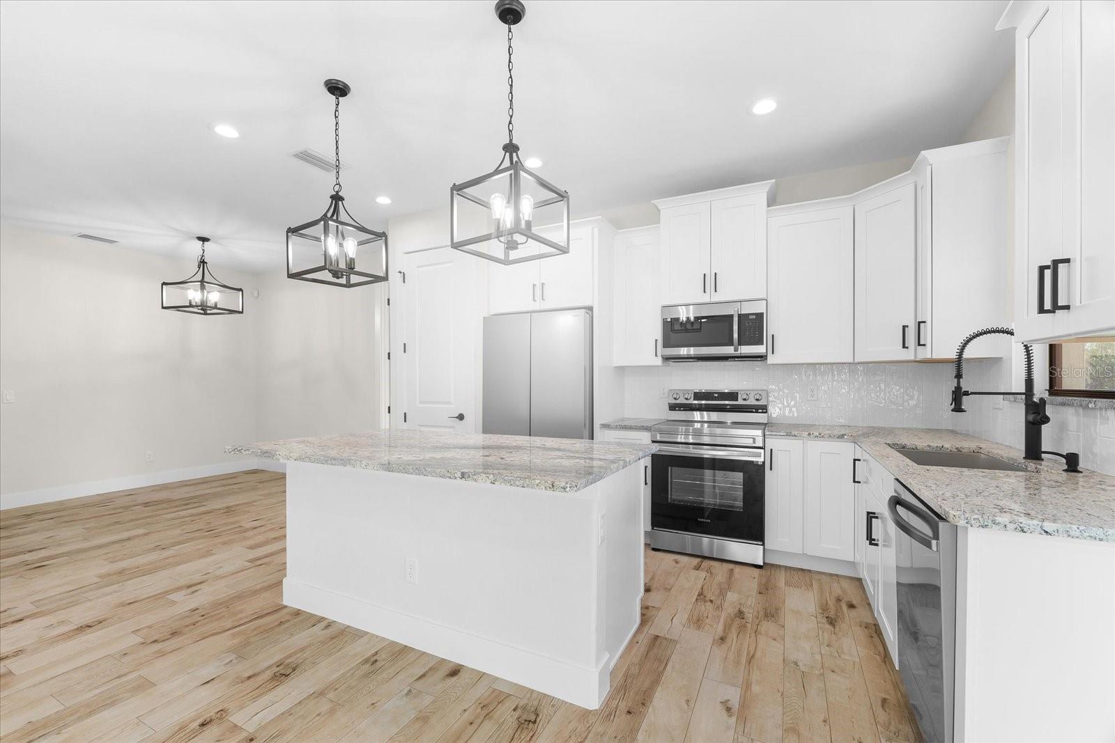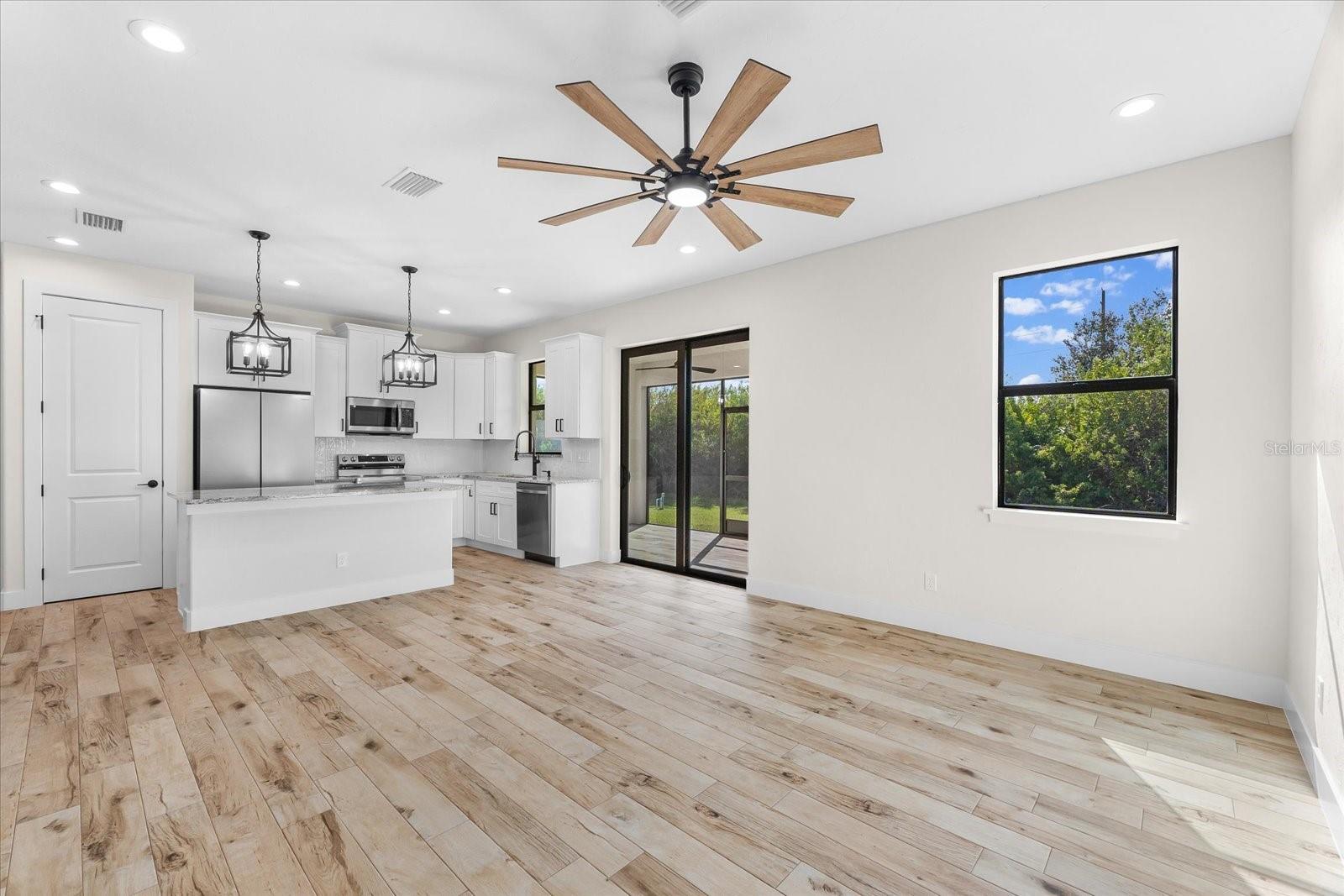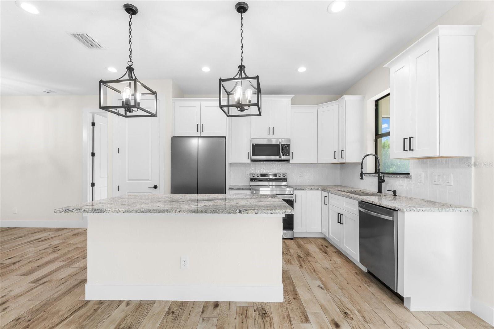 PRICED TO SELL!!! Get ready to fall in love with this Brand-New Construction in the highly desirable X-FLOOD ZONE! This home is crafted with care and attention to detail—no quick, subpar finishes here. Plus, it comes with a 1-YEAR BUILDER WARRANTY for peace of mind. From the moment you arrive, you'll appreciate the upgraded features like PGT impact windows and doors, TAMKO Titan shingles, and Icynene spray foam insulation—practical and durable choices for peace of mind. The epoxy-coated garage floor and tiled entryway give the home a polished look right from the start. Inside, the living space feels open and inviting with 10-foot ceilings, 8-foot doors, and easy-to-maintain porcelain tile flooring. Just off the living area, the screened and tiled lanai provides the perfect spot to unwind after a long day. The kitchen is packed with thoughtful upgrades, featuring level 3 granite countertops, soft-close cabinets, and custom pot drawers—perfect for someone looking for that extra touch of convenience. The stainless steel appliances add a modern feel, making cooking a breeze. Each bedroom is designed for comfort, with ceiling fans and plenty of natural light, while the bathrooms feature durable finishes, like quartz countertops and tiled showers. The finished laundry room comes complete with a washer, dryer, and extra storage space—making daily chores a little easier. You’ll also feel secure with the PC Security system, which comes with ONE YEAR OF FREE MONITORING. Located just minutes from Port Charlotte and I-75, this home offers the perfect mix of upgraded features and location. Don’t miss the chance to make this stunning home your own.