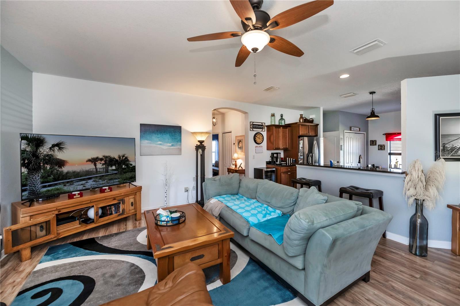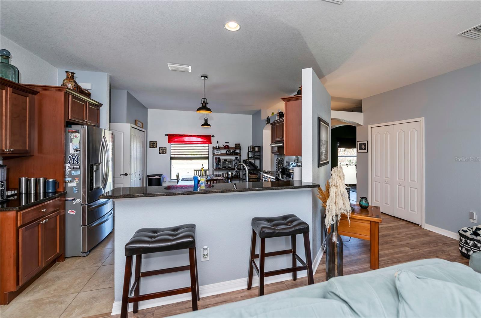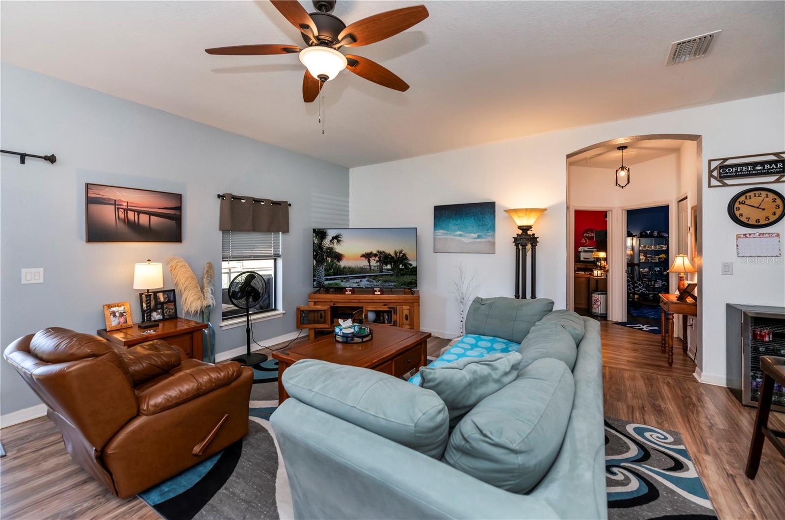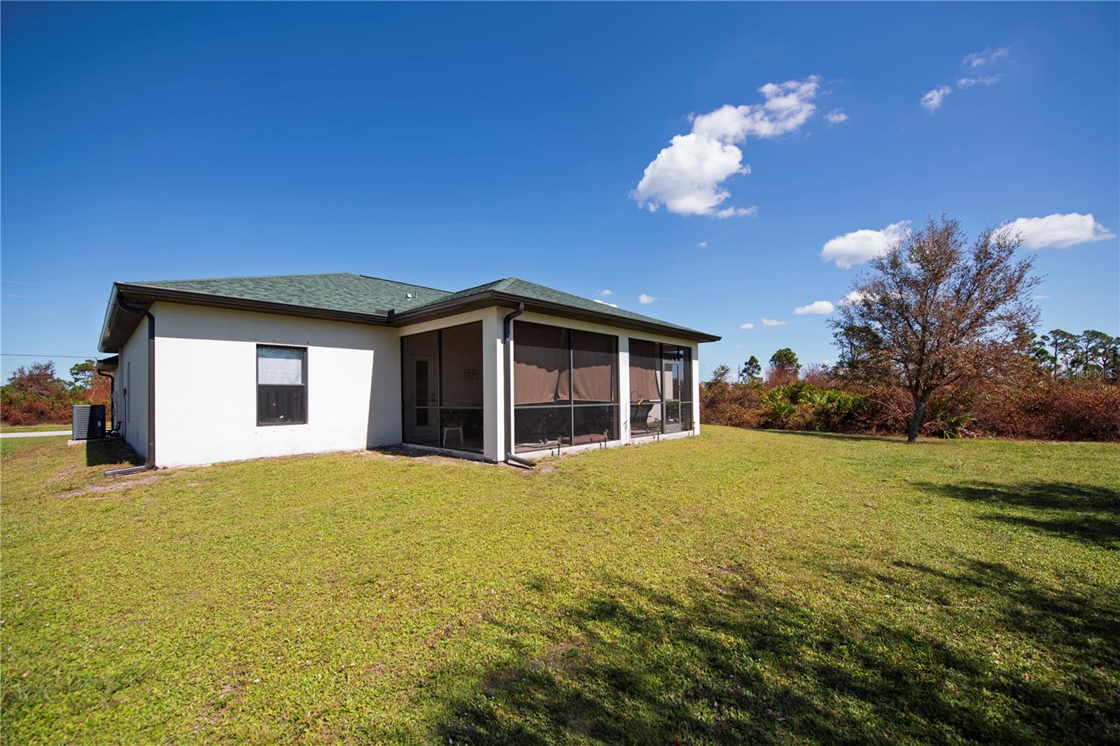 "X" FLOOD ZONE - NO FLOOD INSURANCE REQUIRED! This one owner home is in mint, move-in condition! New motor on the air conditioner, new roof and gutters, front porch new in 2021, painted in 2022, hooked up to public sewer in 2022, public water, new laminate floors throughout in 2017, granite countertops and wood cabinets. This home shows pride of ownership and has been well taken care of. The floorplan includes a welcoming front foyer that leads to all of the rooms in the home. A formal dining room and a beautiful Chef's Dream Kitchen with plenty of room for a table and chairs for everyday meals. The laundry room is very convenient right off of the kitchen and a large pantry. The bright and cheerful living room lends plenty of seating area and a friendly, warm atmosphere. The split floorplan puts the primary bedroom and ensuite on the left side of the home with two good sized bedrooms and guest bath on the right. Guests could access the kitchen and living room without disturbing the owners. A spacious lanai off the rear of the home has plenty of room for a seating area and a dining area for those times you want to enjoy our beautiful weather. A 2 car garage rounds out the picture. The large backyard could accommodate a pool if you chose to install one. A short drive to the beaches, shopping, medical care, and cultural events make this the perfect home for you! Don't miss this home! It is priced to sell!