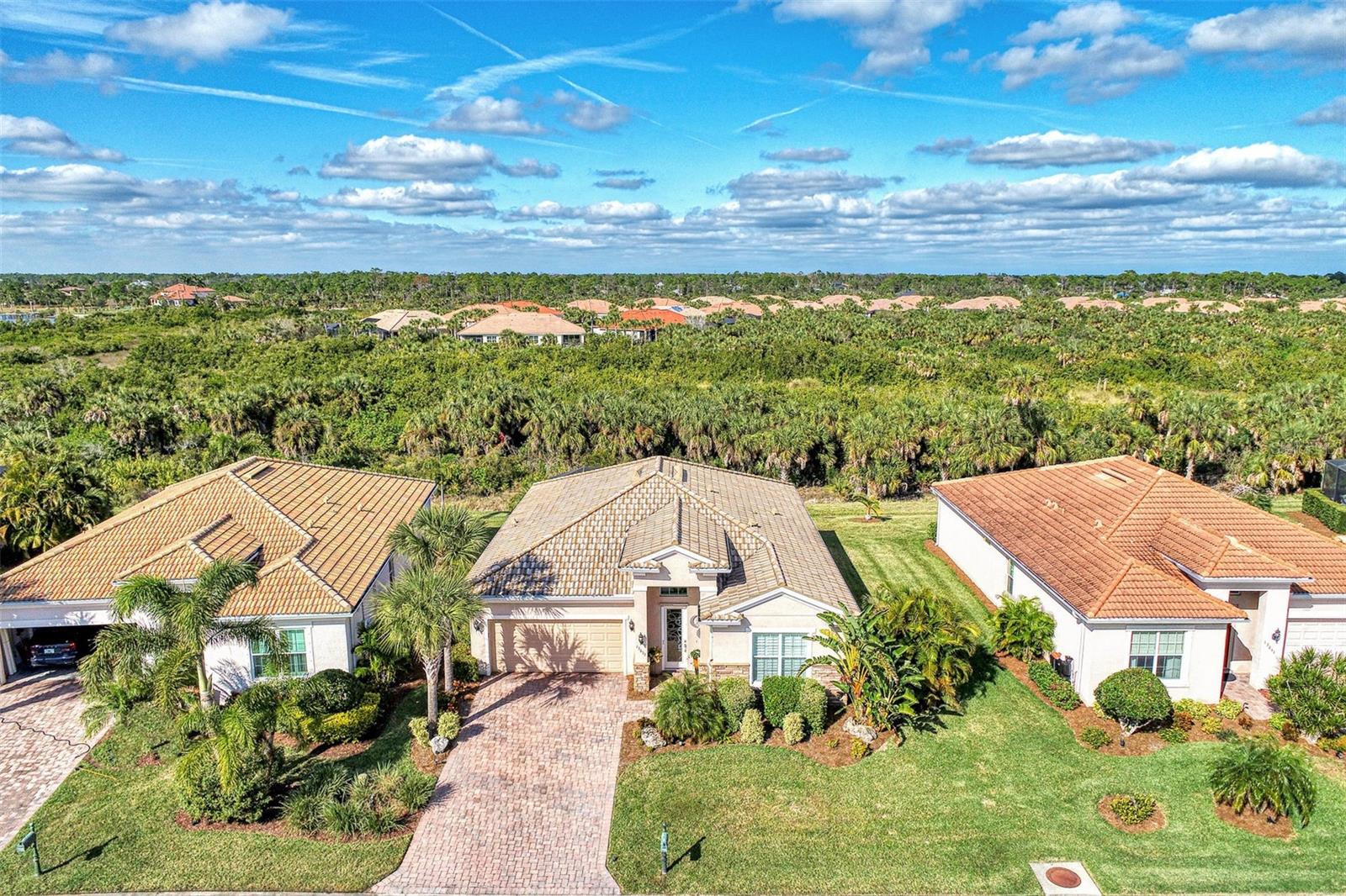 This WELL BUILT, 2015 METICULOUSLY MAINTAINED MODERN HOME truly encompasses the epitome of Florida living at its best! Embark on the ultimate Florida lifestyle by becoming the proud owner of the most recently constructed residence in the highly sought-after Riverwood community. Presenting the well-appointed "BELLINGWOOD" Model, this 2-bedroom, 2-bathroom plus den home captures natural views of a tranquil, private preserve from an expansive paver lanai—providing an array of inviting sitting areas to revel in the idyllic Florida outdoors. From the home's modern, top-notch artistic decor to its opulent details, this residence exudes a sense of fine comfort. Architectural allure is evident in the grand etched glass front door, front hallway archways, 10x13 ft. volume ceilings, 8' doors, and 18" tile. The interior is further enhanced with espresso-stained wood glazed kitchen cabinetry, a decorative tile backsplash, a large island with sprawling granite counters, and quality appliances. The primary bedroom is a retreat with a tray ceiling, a spacious walk-in closet and a lavish ensuite bath. Designer lighting, window treatments and crown molding grace every corner. Additional VALUE includes a BRAND NEW 2025 AIR CONDITIONER, custom cabinets and shelving in the garage for ample storage, a paver driveway, and the option to purchase the available Turn-Key Quality Furniture Package, providing a very convenient "MOVE-IN-READY" opportunity. Situated in Riverwood, this 1300-acre gated community offers a resort-style experience, complete with golf. Delight in daily walks or bike rides along tree-lined streets, tennis and pickleball matches, and other enjoyable amenities such as a Jr. Olympic-sized pool, spa, state-of-the-art fitness center, art room, croquet, bocce court, dog park, and an array of classes, seminars, and on-going social events. Riverwood, an Audubon Green Community Award Winner, is recognized for its natural habitat supporting Florida wildlife. Optional amenities, based on availability and a separate fee, include access to the Riverwood Golf Club—a Par 72 Championship course—and the Riverwood Private Beach Club on Manasota Key. Conveniently located minutes away from shopping, dining, boating, fishing, cultural and sporting events, and the stunning beaches of Southwest Florida, this home truly encapsulates the Florida dream. Call for a Showing Today!