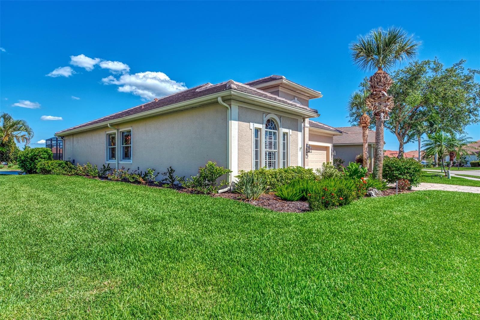 ENJOY the FLORIDA DREAM by owning this WELL BUILT and APPOINTED 2-Bedroom, 2-Bathroom plus Den (currently used as a 3rd Bedroom) home in the coveted RIVERWOOD community. Featuring a desirable upgraded Open Great Room plan, this residence offers serene views of a tranquil pond, creating the perfect backdrop for sunlit moments and relaxation. Stepping outside onto the expansive decorative engraved lanai, one will discover an inviting heated pool surrounded by ample sitting areas, ideal for soaking up the natural beauty and breathtaking sunrises. The well-designed interior of the home features architectural charm, highlighted by a grand glass front door, elegant archways in the front hallway, and soaring 10x13 ft. volume ceilings adorned with crown molding. Inside, you'll find a blend of tile and carpet flooring and tasteful interior decorative upgrades. The Kitchen is a Chef's Delight, with an expansive island, granite counters, and quality stainless steel appliances. The primary bedroom retreat features a tray ceiling, a spacious walk-in closet, and a luxurious renovated bath. Designer window treatments and lighting add a touch of sophistication throughout the home. Additional features include upgraded storm shutters on all windows and a mature landscape that enhances the property's curb appeal and privacy. Plus, enjoy the BONUS of a 2023 NEW TILE ROOF. Riverwood is a gated, golf, resort-style community that epitomizes the Florida lifestyle. Residents can take advantage of amenities such as tree-lined walking and biking paths, tennis and pickleball courts, a lap and resort entry pool, a hot tub, fitness center, and a variety of classes and social activities at the Activity Center. Recognized as an Audubon Green Community, Riverwood provides a natural habitat for Florida wildlife. For pet owners, the community offers the R.O.M.P. Dog Park, while golf enthusiasts can tee off at the Riverwood Golf Club's Par 72 Championship course or enjoy access to the Beach Club on Manasota Key. Memberships based on availability. Conveniently located between Sarasota and Fort Myers on Florida's West Coast, Riverwood offers easy access to boating, cultural events, dining, shopping, and the beautiful beaches of Southwest Florida. Contact your agent today to discover this exceptional property and start living the Riverwood Florida Lifestyle!