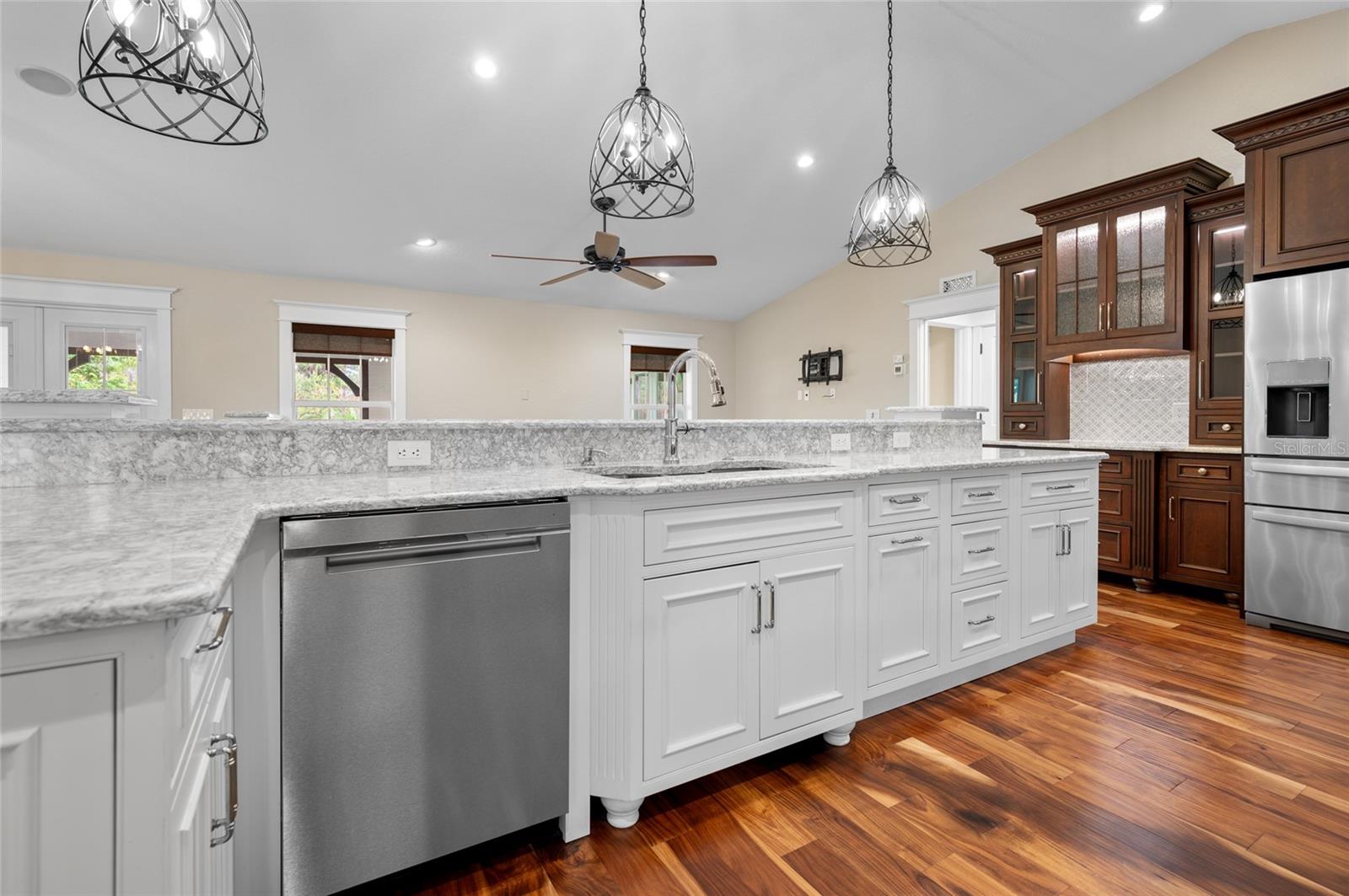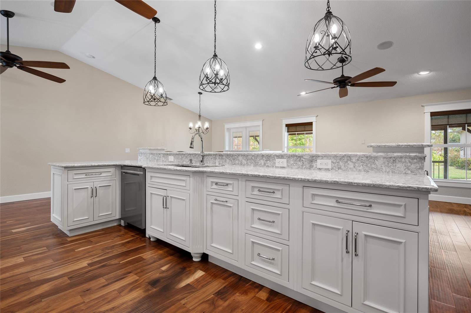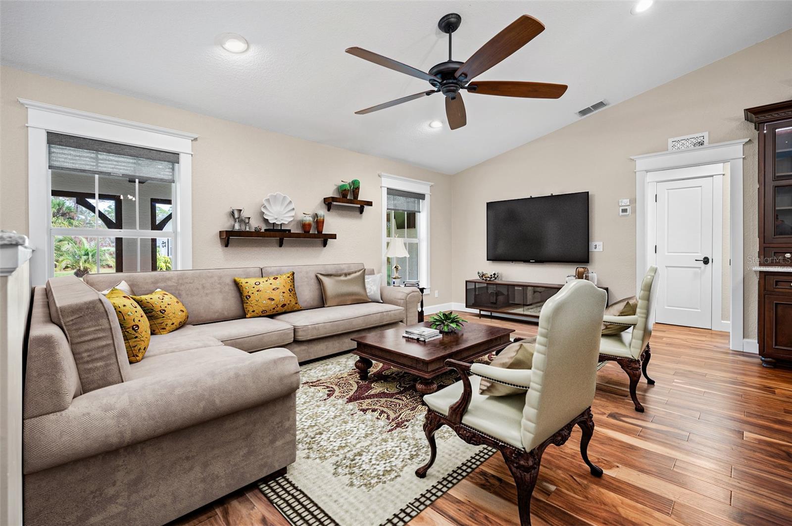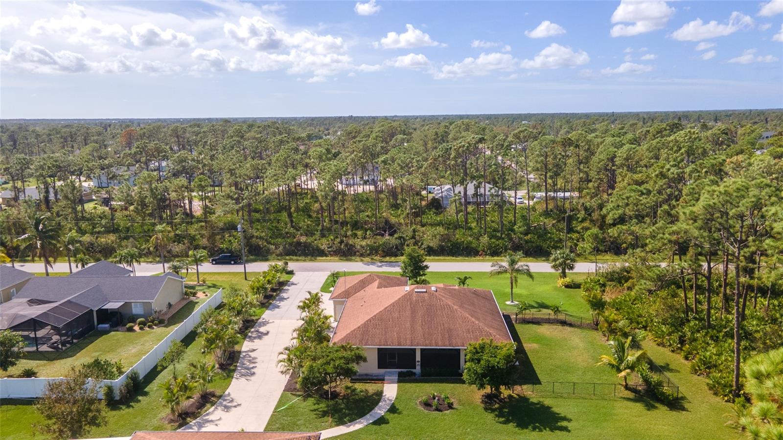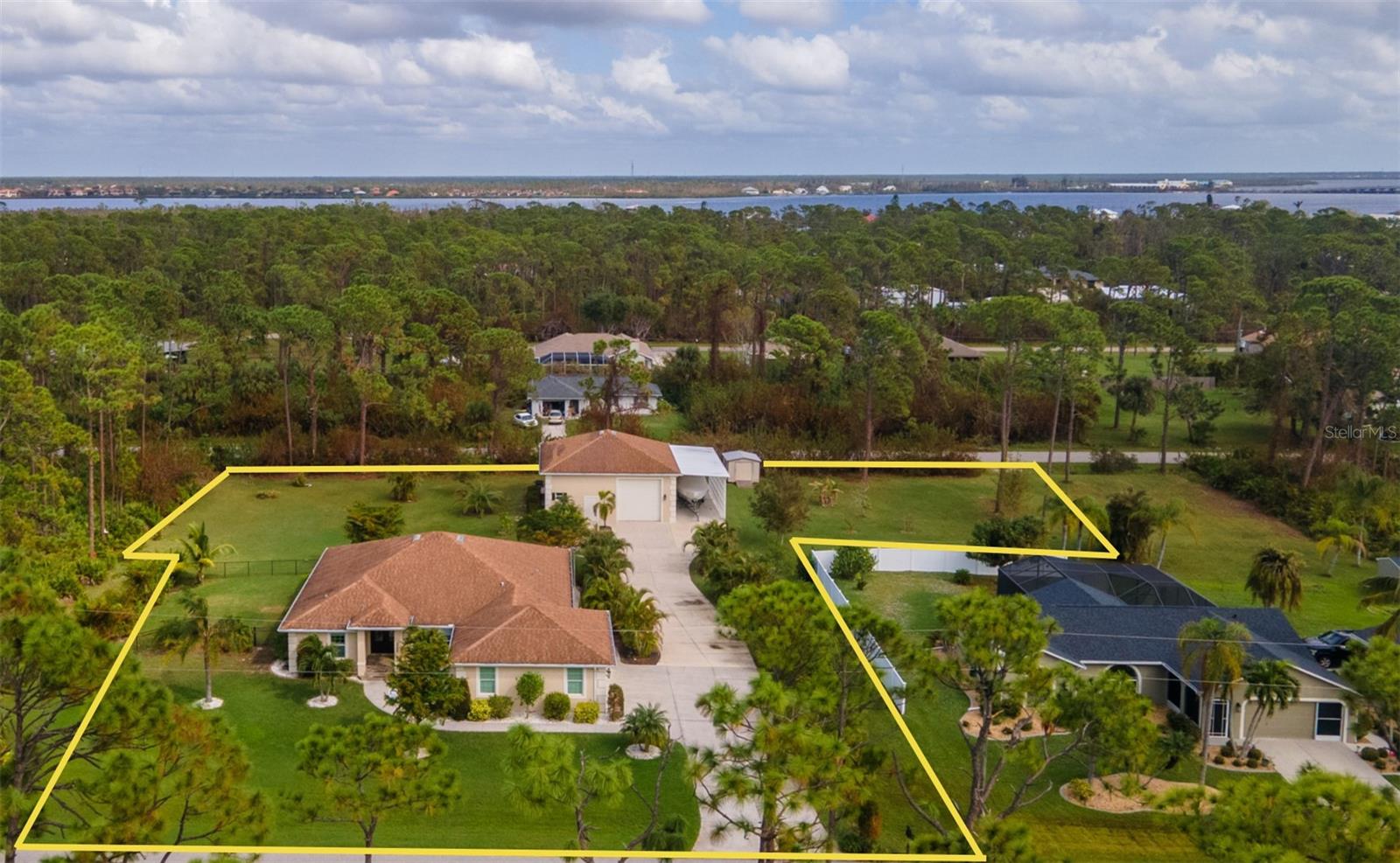 One or more photo(s) has been virtually staged. <p>This property has it all! This luxury retreat sits on OVER AN ACRE in Gulf Cove and includes BOTH AN ATTACHED AND DETACHED GARAGE for you to park ALL your vehicles and toys, along with an RV carport! Plus, MULTIPLE SHEDS and OFFICES on the property will give you all the extra space you need. Your stunning home is filled to the brim with CUSTOM FEATURES to make you the envy of all your friends and family! Be sure to view the Custom Features Sheet for a FULL LIST OF UPGRADES! <p>Step inside and be welcomed by the WOOD FLOORING underfoot and the grandeur of CATHEDRAL CEILINGS above. The gourmet kitchen is a chef’s dream, featuring QUARTZ COUNTERTOPS, PULL-OUT DRAWERS, and SOFT-CLOSE CABINETS for a refined touch. Equipped with a three-compartment sink, stainless steel appliances, built-in microwave, and an ITALIAN GAS RANGE WITH CENTER GRIDDLE. Ample cabinetry offers abundant storage, while UNDER-CABINET LIGHTING creates the perfect warm ambiance. Use your DRY BAR to mix your favorite drinks or make it your own coffee bar. You have the option to serve your meals at the convenient BREAKFAST BAR or formal dining room where they can relax and savor your cuisine. <p>Your PRIMARY SUITE allows you to unwind in a private sanctuary, featuring TRAY CEILINGS, a spacious WALK-IN CLOSET, and elegant FRENCH DOORS to the lanai. The en-suite bathroom offers a spa-like haven with a HEATED BIDET TOILET and a TOWEL WARMER for added comfort. DUAL SINKS set in quartz countertops and a stunning walk-in shower, complete with a custom backsplash and a built-in bench, invites you to rejuvenate in style. Your guests will feel right at home with a fancy GLASS POCKET DOOR to close off their two guest bedrooms. One bedroom features a double built-in closet, while the other boasts a spacious walk-in closet that could easily double as a sewing or craft space. Finally, your HOME OFFICE can be used for personal hobbies or professional work while you close the FRENCH DOORS for added privacy. <p>Invite your guests outside to relax in the DESIGNER SCREENED-IN LANAI, a perfect spot for lounging and entertaining in the fresh air. A 50x50 SIDE FENCED DOG RUN provides a safe and comfortable space for your pets with a WROUGHT IRON FENCE facing the front. A walkway leads to your impressive 36' x 40' DETACHED GARAGE with a FULL BATHROOM and ample space to accommodate UP TO FIVE CARS or even a CLASS C RV. Inside, you’ll find a PRIVATE OFFICE, a dedicated WORKSHOP AREA, and abundant storage shelves, making it as versatile as it is spacious. Plus, an RV carport with a 50 AMP hookup that accommodates a Class A motorhome makes this property ideal for those with a boat, RV, or car collection. The CARPORT'S CONCRETE SLAB WAS POURED WITH FOOTERS, reducing the cost of enclosing this area. And for added convenience, you have access to your rear storage from inside the detached garage and a separate GARDEN SHED is ready to store all your lawn tools! <p>Located in scenic Gulf Cove, join an optional HOA to take advantage of their PRIVATE BOAT RAMP FOR LARGE BOATS and park only about a mile away will take you directly to the Gulf of Mexico! You will have easy access to 776 and a variety of shopping & dining options. Travel to numerous golf courses, or head to area beaches by heading south to Boca Grande or west to Englewood and Manasota Beaches. Experience 2 MAJOR LEAGUE BASEBALL SPRING TRAINING STADIUMS nearby. Call now to schedule a showing before your Florida dream home passes you by!