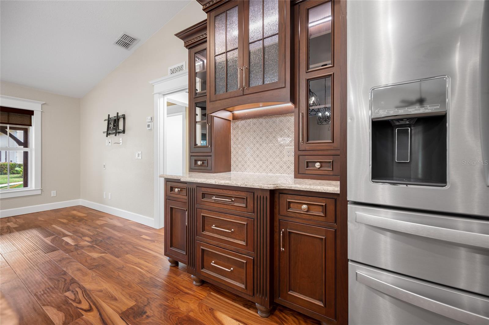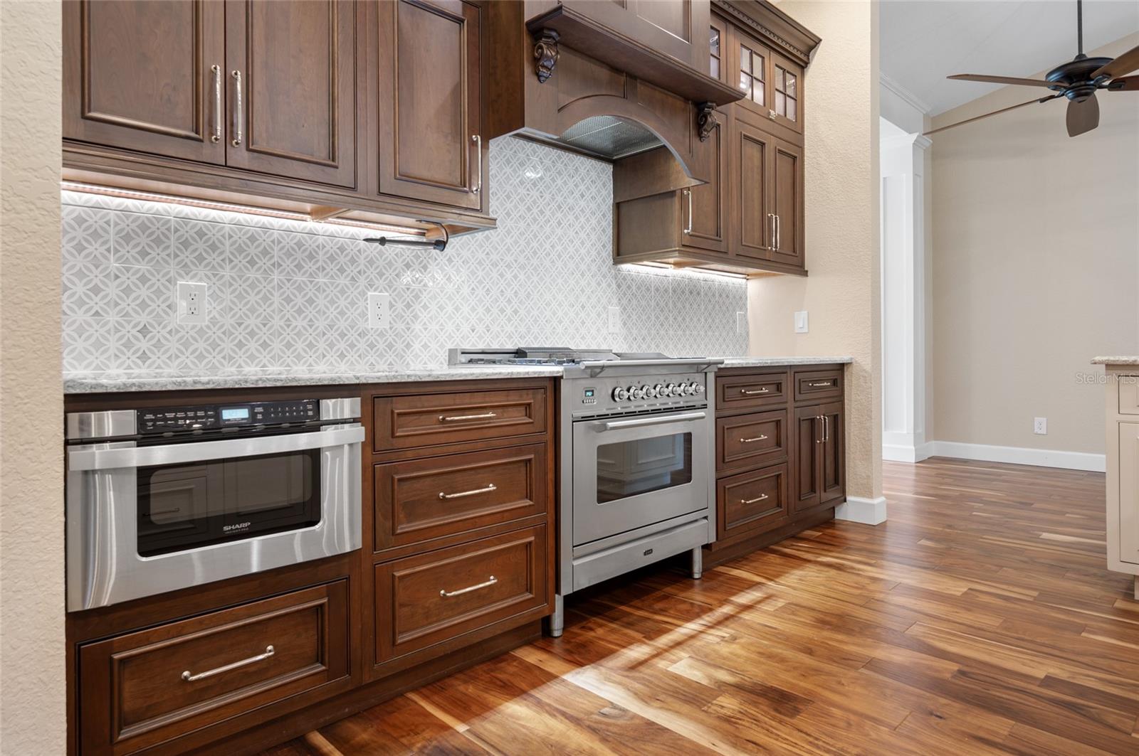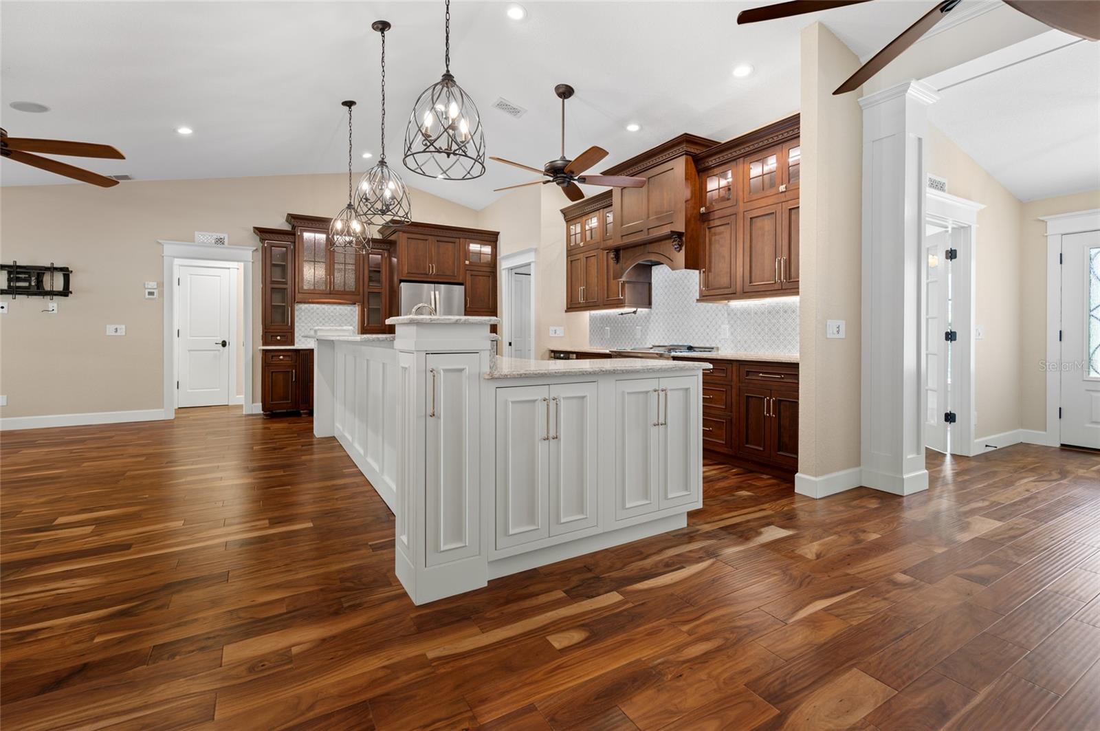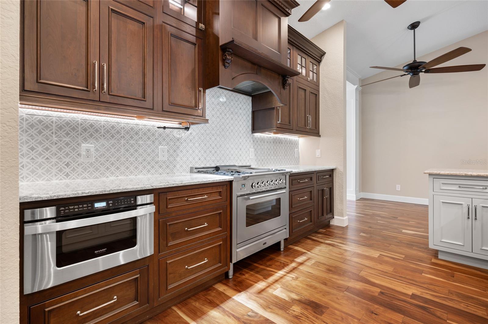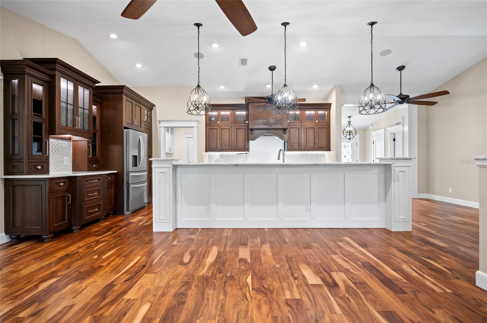 One or more photo(s) has been virtually staged. <p>This property has it all! This luxury retreat sits on OVER AN ACRE in Gulf Cove and includes BOTH AN ATTACHED AND DETACHED GARAGE for you to park ALL your vehicles and toys, along with an RV carport! Plus, MULTIPLE SHEDS and OFFICES on the property will give you all the extra space you need. Your stunning home is filled to the brim with CUSTOM FEATURES to make you the envy of all your friends and family! Be sure to view the Custom Features Sheet for a FULL LIST OF UPGRADES! <p>Step inside and be welcomed by the WOOD FLOORING underfoot and the grandeur of CATHEDRAL CEILINGS above. The gourmet kitchen is a chef’s dream, featuring QUARTZ COUNTERTOPS, PULL-OUT DRAWERS, and SOFT-CLOSE CABINETS for a refined touch. Equipped with a three-compartment sink, stainless steel appliances, built-in microwave, and an ITALIAN GAS RANGE WITH CENTER GRIDDLE. Ample cabinetry offers abundant storage, while UNDER-CABINET LIGHTING creates the perfect warm ambiance. Use your DRY BAR to mix your favorite drinks or make it your own coffee bar. You have the option to serve your meals at the convenient BREAKFAST BAR or formal dining room where they can relax and savor your cuisine. <p>Your PRIMARY SUITE allows you to unwind in a private sanctuary, featuring TRAY CEILINGS, a spacious WALK-IN CLOSET, and elegant FRENCH DOORS to the lanai. The en-suite bathroom offers a spa-like haven with a HEATED BIDET TOILET and a TOWEL WARMER for added comfort. DUAL SINKS set in quartz countertops and a stunning walk-in shower, complete with a custom backsplash and a built-in bench, invites you to rejuvenate in style. Your guests will feel right at home with a fancy GLASS POCKET DOOR to close off their two guest bedrooms. One bedroom features a double built-in closet, while the other boasts a spacious walk-in closet that could easily double as a sewing or craft space. Finally, your HOME OFFICE can be used for personal hobbies or professional work while you close the FRENCH DOORS for added privacy. <p>Invite your guests outside to relax in the DESIGNER SCREENED-IN LANAI, a perfect spot for lounging and entertaining in the fresh air. A 50x50 SIDE FENCED DOG RUN provides a safe and comfortable space for your pets with a WROUGHT IRON FENCE facing the front. A walkway leads to your impressive 36' x 40' DETACHED GARAGE with a FULL BATHROOM and ample space to accommodate UP TO FIVE CARS or even a CLASS C RV. Inside, you’ll find a PRIVATE OFFICE, a dedicated WORKSHOP AREA, and abundant storage shelves, making it as versatile as it is spacious. Plus, an RV carport with a 50 AMP hookup that accommodates a Class A motorhome makes this property ideal for those with a boat, RV, or car collection. The CARPORT'S CONCRETE SLAB WAS POURED WITH FOOTERS, reducing the cost of enclosing this area. And for added convenience, you have access to your rear storage from inside the detached garage and a separate GARDEN SHED is ready to store all your lawn tools! <p>Located in scenic Gulf Cove, join an optional HOA to take advantage of their PRIVATE BOAT RAMP FOR LARGE BOATS and park only about a mile away will take you directly to the Gulf of Mexico! You will have easy access to 776 and a variety of shopping & dining options. Travel to numerous golf courses, or head to area beaches by heading south to Boca Grande or west to Englewood and Manasota Beaches. Experience 2 MAJOR LEAGUE BASEBALL SPRING TRAINING STADIUMS nearby. Call now to schedule a showing before your Florida dream home passes you by!
