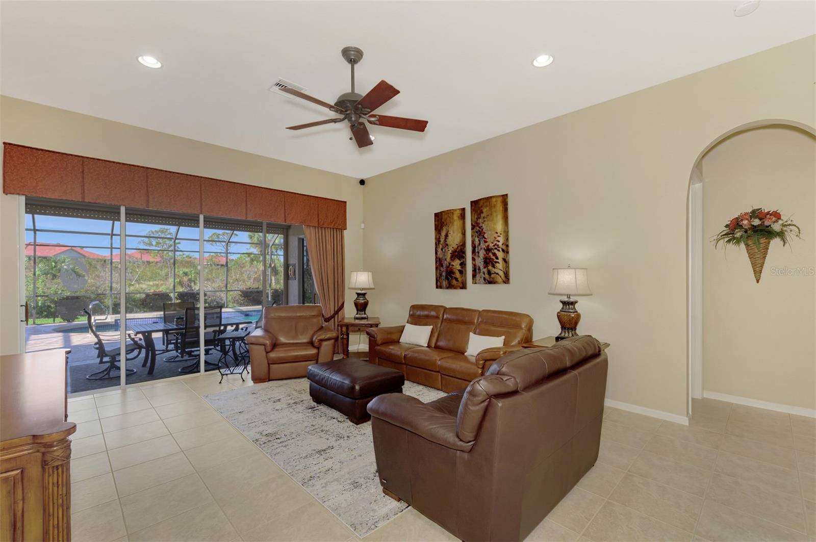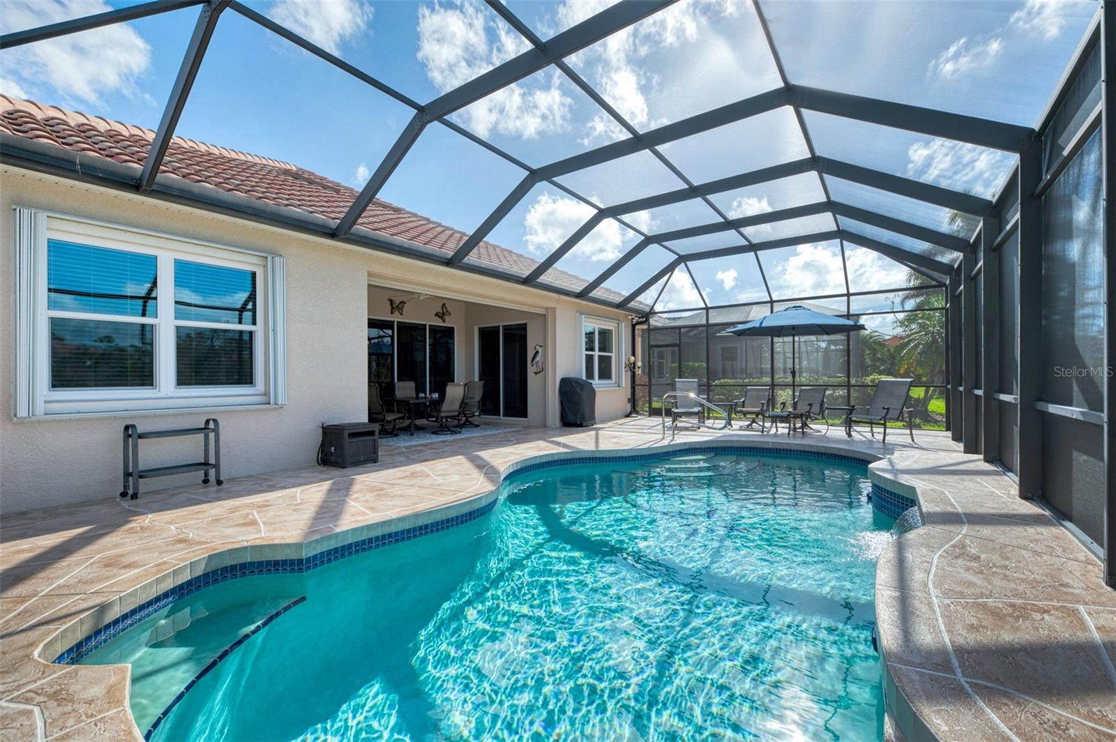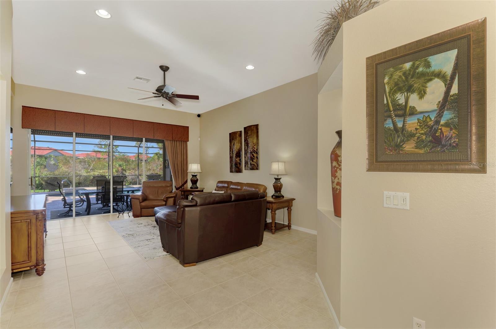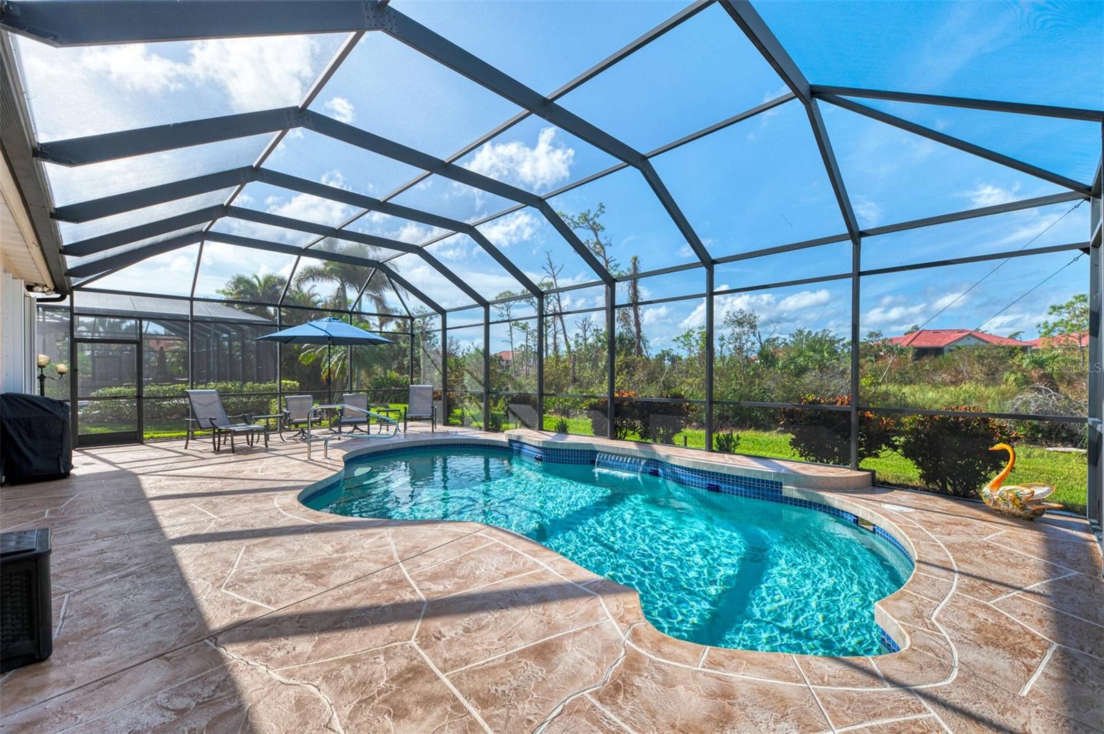 Enjoy the Best of Florida Living – Indoors and Outdoors owning this beautifully crafted, well-built 2-Bedroom, 2-Bathroom home with a 2-Car Garage, complete with a coveted transferable RIVERWOOD BEACH CLUB MEMBERSHIP on MANASOTA KEY. Located in the highly desirable, gated Riverwood Community—renowned for its golf course and resort-style amenities—this home offers the ideal Florida lifestyle, including a heated saltwater pool. As you step through the front door, you’ll immediately notice the pristine, immaculate condition of the home. The spacious open Great Room plan welcomes you with high-volume ceilings, porcelain tile floors, and designer lighting and window treatments throughout. The layout includes a formal dining area and a versatile den that could easily serve as a third bedroom with the addition of a closet. This generous space is perfect for both entertaining and family living. The renovated kitchen is a chef’s dream, featuring quality wood cabinetry, granite countertops, stainless steel appliances, and a breakfast bar for extra seating. The spacious primary bedroom serves as a private retreat, complete with a large walk-in closet and an en-suite bathroom that includes dual vanities, a Roman shower, and a garden tub. Slide open the glass doors to step onto the expanded, beautifully decorated lanai, complete with engraved details and outdoor speakers for relaxation. Here, you can enjoy your heated saltwater pool while being surrounded by a serene nature preserve that provides complete privacy. Additional features include tray ceilings, a marbleite decorative garage floor, and recent upgrades such as a new Water Heater (2024), A/C (2023), Tile Roof (2020), and Kitchen appliances (2015). The home is also equipped with Impact Windows, plus Roll-down and Accordion Storm Shutters for peace of mind. This exceptional property will captivate even the most discerning buyer. Call to schedule a showing today and start enjoying the best of Florida living!