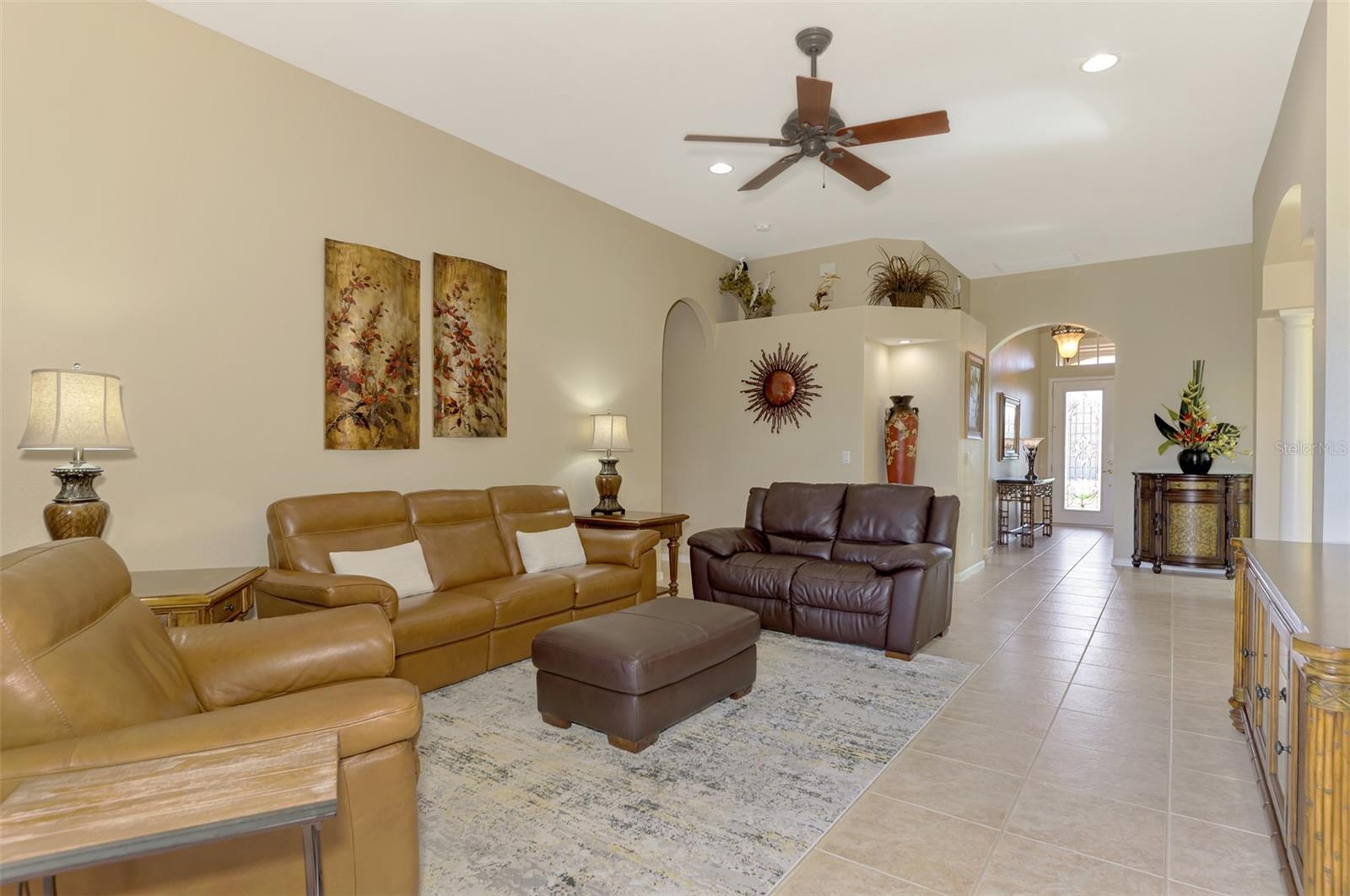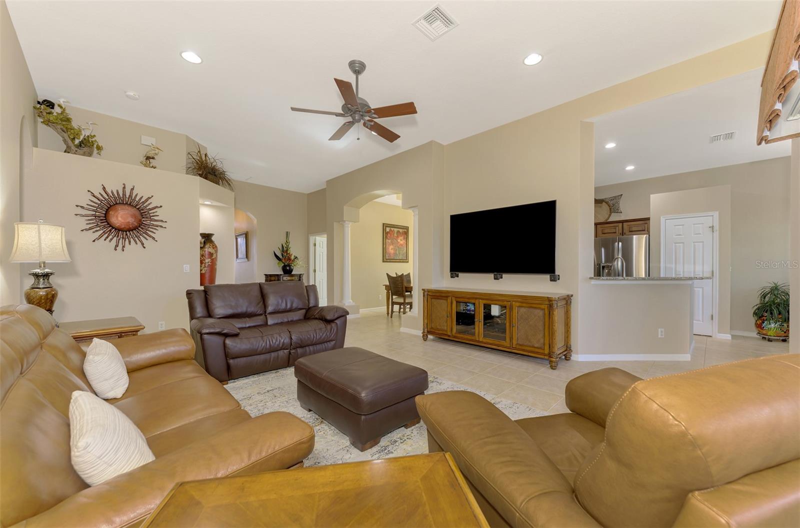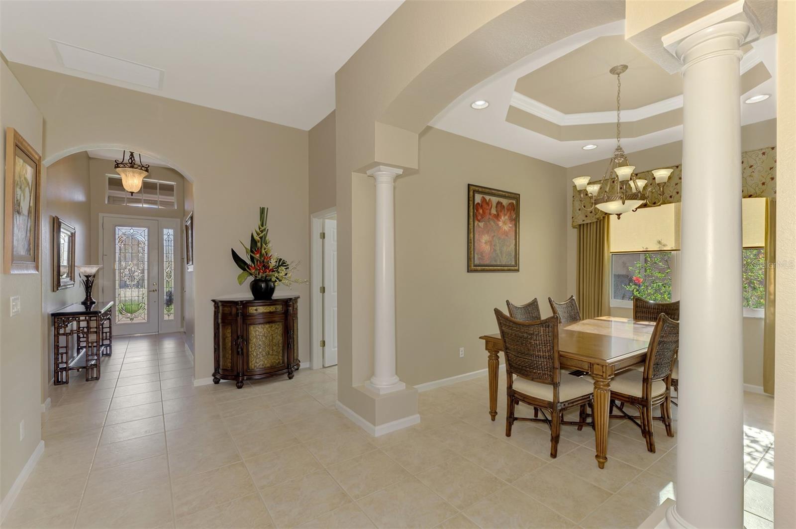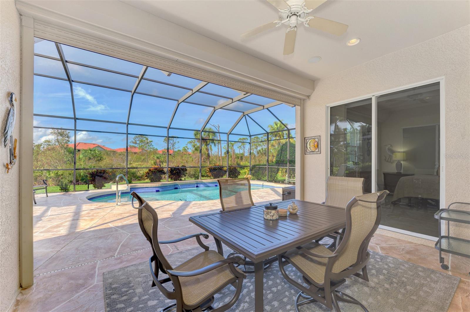 Enjoy the Best of Florida Living – Indoors and Outdoors owning this beautifully crafted, well-built 2-Bedroom, 2-Bathroom home with a 2-Car Garage, complete with a coveted transferable RIVERWOOD BEACH CLUB MEMBERSHIP on MANASOTA KEY. Located in the highly desirable, gated Riverwood Community—renowned for its golf course and resort-style amenities—this home offers the ideal Florida lifestyle, including a heated saltwater pool. As you step through the front door, you’ll immediately notice the pristine, immaculate condition of the home. The spacious open Great Room plan welcomes you with high-volume ceilings, porcelain tile floors, and designer lighting and window treatments throughout. The layout includes a formal dining area and a versatile den that could easily serve as a third bedroom with the addition of a closet. This generous space is perfect for both entertaining and family living. The renovated kitchen is a chef’s dream, featuring quality wood cabinetry, granite countertops, stainless steel appliances, and a breakfast bar for extra seating. The spacious primary bedroom serves as a private retreat, complete with a large walk-in closet and an en-suite bathroom that includes dual vanities, a Roman shower, and a garden tub. Slide open the glass doors to step onto the expanded, beautifully decorated lanai, complete with engraved details and outdoor speakers for relaxation. Here, you can enjoy your heated saltwater pool while being surrounded by a serene nature preserve that provides complete privacy. Additional features include tray ceilings, a marbleite decorative garage floor, and recent upgrades such as a new Water Heater (2024), A/C (2023), Tile Roof (2020), and Kitchen appliances (2015). The home is also equipped with Impact Windows, plus Roll-down and Accordion Storm Shutters for peace of mind. This exceptional property will captivate even the most discerning buyer. Call to schedule a showing today and start enjoying the best of Florida living!