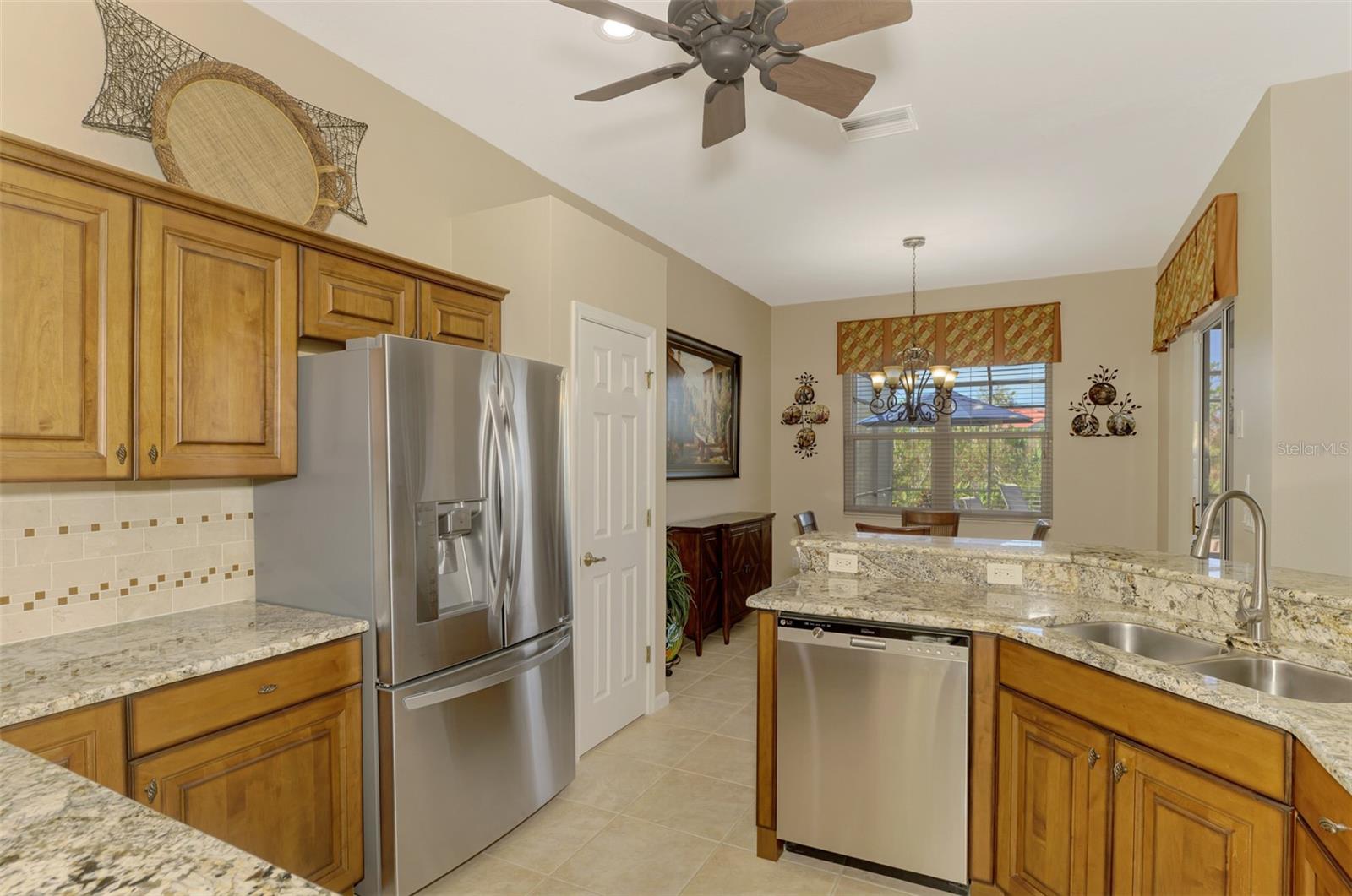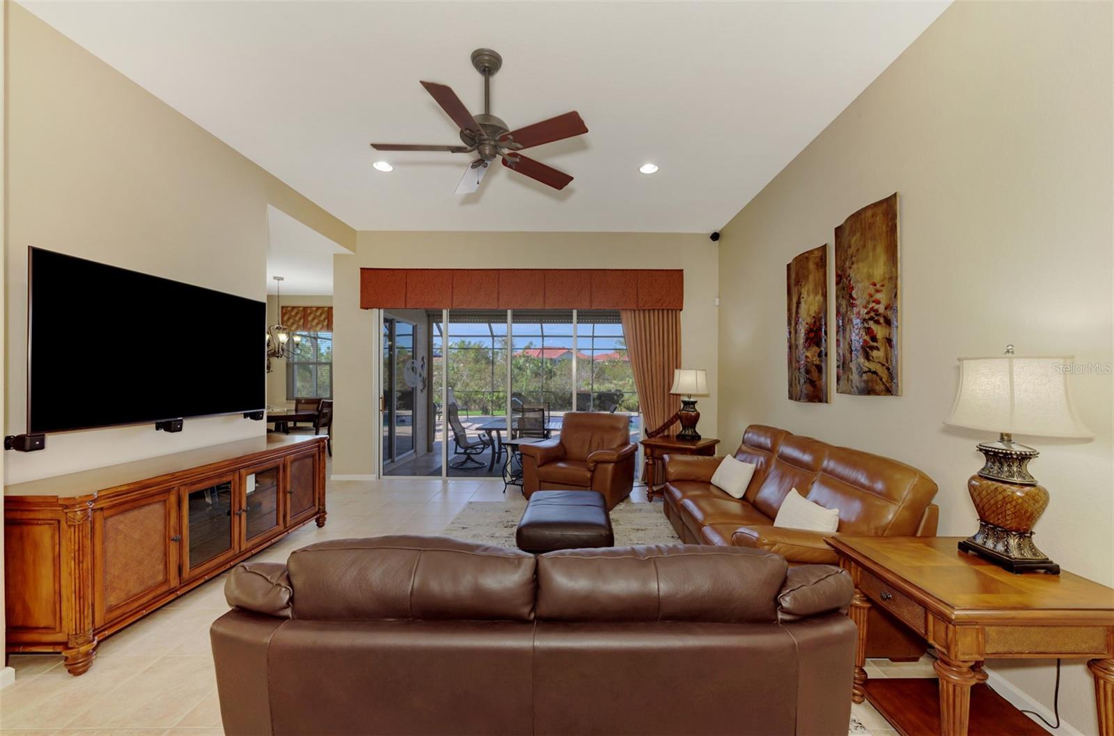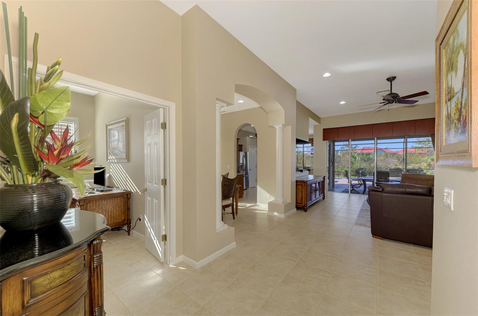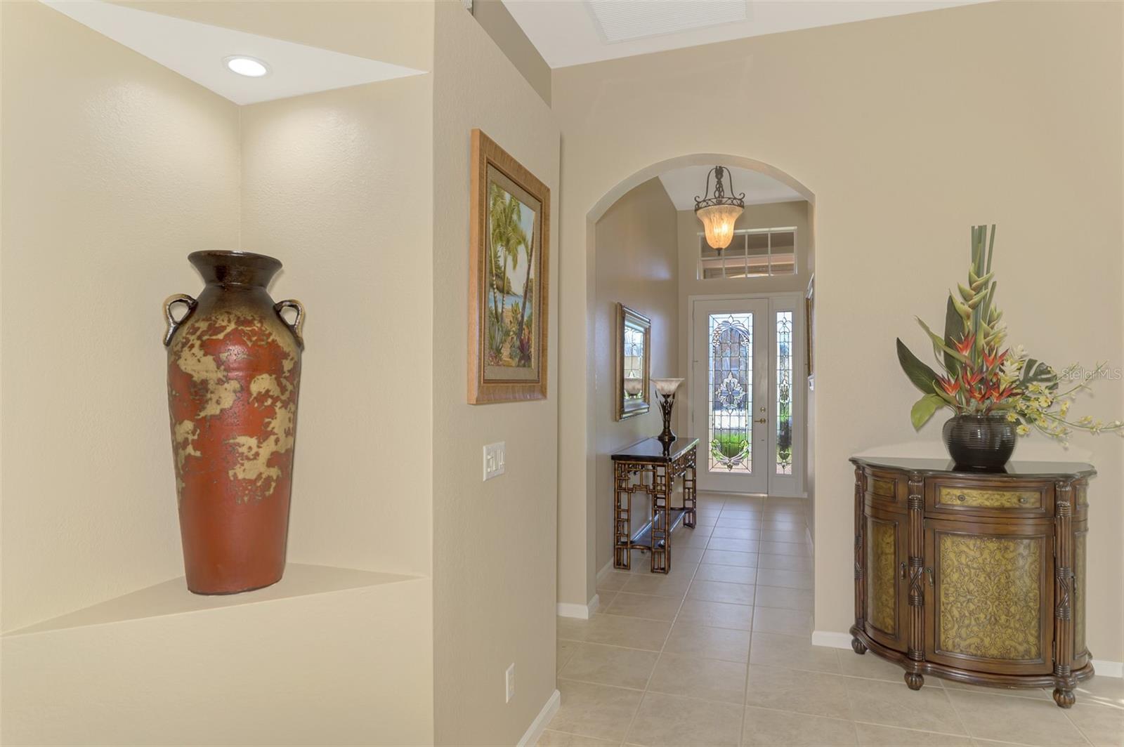 Enjoy the Best of Florida Living – Indoors and Outdoors owning this beautifully crafted, well-built 2-Bedroom, 2-Bathroom home with a 2-Car Garage, complete with a coveted transferable RIVERWOOD BEACH CLUB MEMBERSHIP on MANASOTA KEY. Located in the highly desirable, gated Riverwood Community—renowned for its golf course and resort-style amenities—this home offers the ideal Florida lifestyle, including a heated saltwater pool. As you step through the front door, you’ll immediately notice the pristine, immaculate condition of the home. The spacious open Great Room plan welcomes you with high-volume ceilings, porcelain tile floors, and designer lighting and window treatments throughout. The layout includes a formal dining area and a versatile den that could easily serve as a third bedroom with the addition of a closet. This generous space is perfect for both entertaining and family living. The renovated kitchen is a chef’s dream, featuring quality wood cabinetry, granite countertops, stainless steel appliances, and a breakfast bar for extra seating. The spacious primary bedroom serves as a private retreat, complete with a large walk-in closet and an en-suite bathroom that includes dual vanities, a Roman shower, and a garden tub. Slide open the glass doors to step onto the expanded, beautifully decorated lanai, complete with engraved details and outdoor speakers for relaxation. Here, you can enjoy your heated saltwater pool while being surrounded by a serene nature preserve that provides complete privacy. Additional features include tray ceilings, a marbleite decorative garage floor, and recent upgrades such as a new Water Heater (2024), A/C (2023), Tile Roof (2020), and Kitchen appliances (2015). The home is also equipped with Impact Windows, plus Roll-down and Accordion Storm Shutters for peace of mind. This exceptional property will captivate even the most discerning buyer. Call to schedule a showing today and start enjoying the best of Florida living!