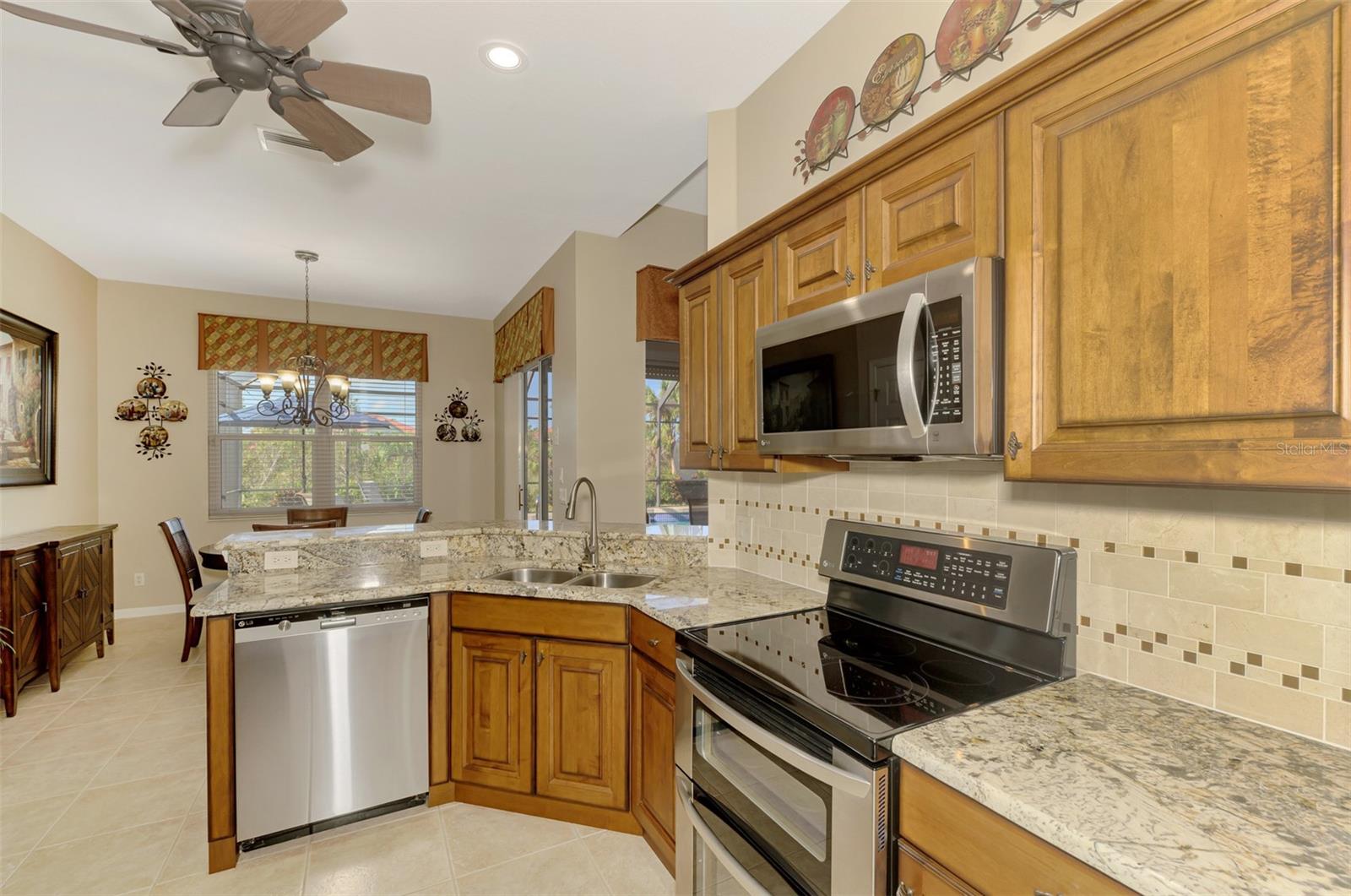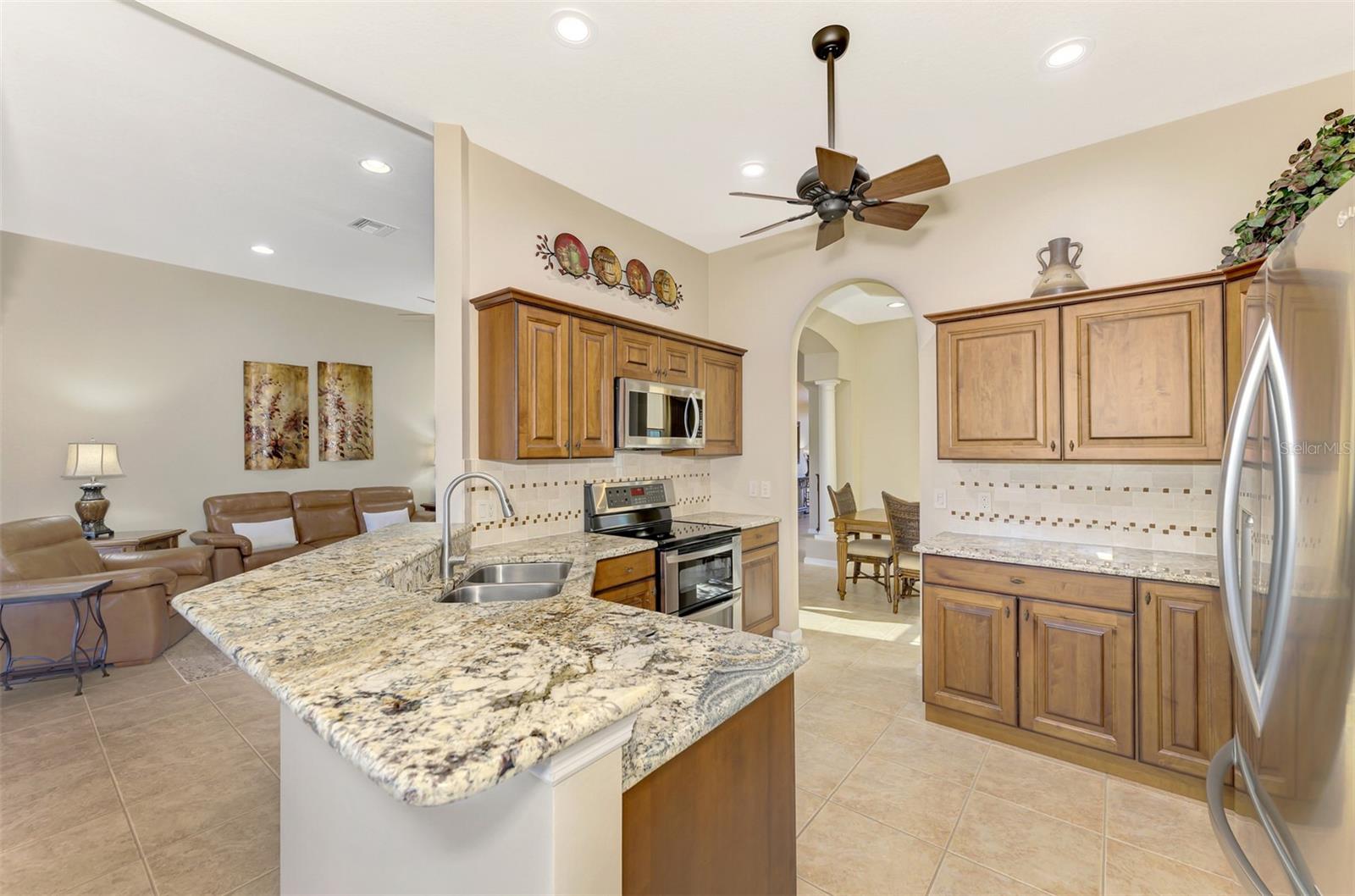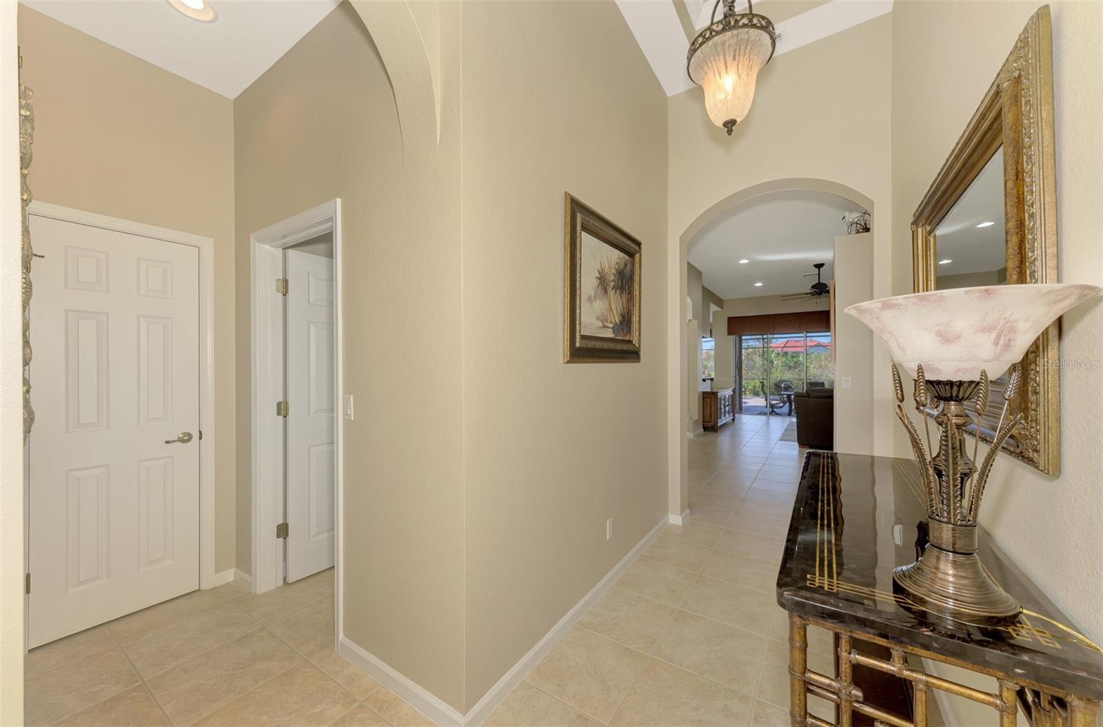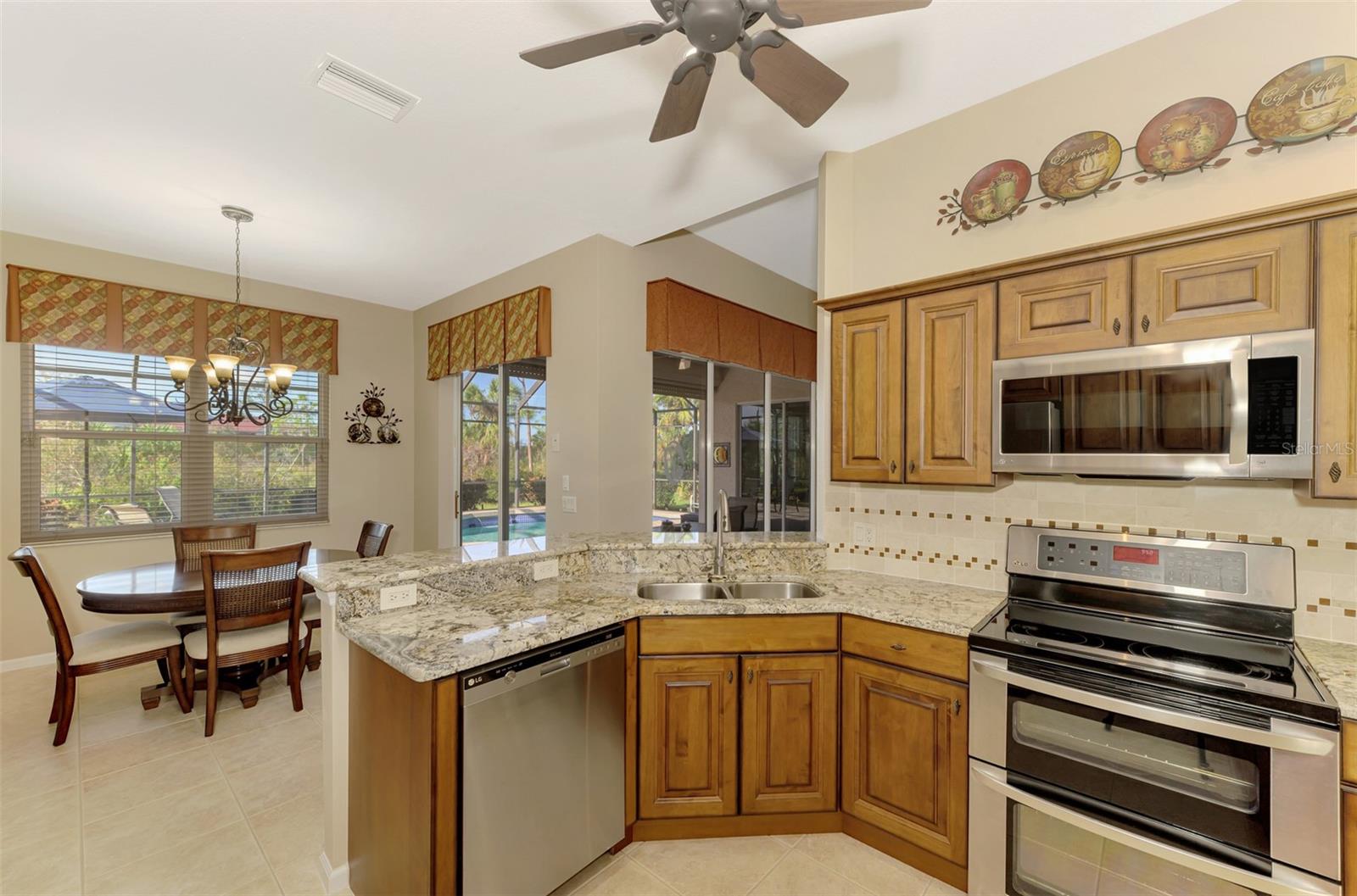 Enjoy the Best of Florida Living – Indoors and Outdoors owning this beautifully crafted, well-built 2-Bedroom, 2-Bathroom home with a 2-Car Garage, complete with a coveted transferable RIVERWOOD BEACH CLUB MEMBERSHIP on MANASOTA KEY. Located in the highly desirable, gated Riverwood Community—renowned for its golf course and resort-style amenities—this home offers the ideal Florida lifestyle, including a heated saltwater pool. As you step through the front door, you’ll immediately notice the pristine, immaculate condition of the home. The spacious open Great Room plan welcomes you with high-volume ceilings, porcelain tile floors, and designer lighting and window treatments throughout. The layout includes a formal dining area and a versatile den that could easily serve as a third bedroom with the addition of a closet. This generous space is perfect for both entertaining and family living. The renovated kitchen is a chef’s dream, featuring quality wood cabinetry, granite countertops, stainless steel appliances, and a breakfast bar for extra seating. The spacious primary bedroom serves as a private retreat, complete with a large walk-in closet and an en-suite bathroom that includes dual vanities, a Roman shower, and a garden tub. Slide open the glass doors to step onto the expanded, beautifully decorated lanai, complete with engraved details and outdoor speakers for relaxation. Here, you can enjoy your heated saltwater pool while being surrounded by a serene nature preserve that provides complete privacy. Additional features include tray ceilings, a marbleite decorative garage floor, and recent upgrades such as a new Water Heater (2024), A/C (2023), Tile Roof (2020), and Kitchen appliances (2015). The home is also equipped with Impact Windows, plus Roll-down and Accordion Storm Shutters for peace of mind. This exceptional property will captivate even the most discerning buyer. Call to schedule a showing today and start enjoying the best of Florida living!