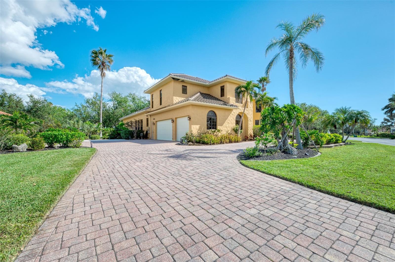 Step into this “ONE OF A KIND” impeccably WELL BUILT and maintained HACIENDA COURTYARD ESTATE, privately nestled within the gated "RIVERSIDE" subdivision of the coveted Riverwood Community. Positioned on a sprawling, beautifully landscaped lot, this home radiates Mediterranean detail at every turn. A grand circular driveway leads to an impressive entryway, where redwood rod iron doors set the stage for timeless sophistication. Inside, the main living areas are open and inviting, featuring high-volume ceilings, rich terracotta tile floors, and large windows that fill the space with natural light and views of the private courtyard. Renovated gourmet kitchen is a chef’s delight, with custom cabinetry, leather rainforest granite countertops, a spacious island, and top-of-the-line appliances. French doors open from the kitchen to the courtyard, creating a seamless flow for indoor-outdoor entertaining. The adjacent dining area is perfect for gatherings, with access to an expansive backyard patio—a private sanctuary for gardening or quiet reflection.The Primary Suite is a luxurious retreat, complete with a remodeled spa-like bathroom featuring a soaking tub, dual vanities, and spacious walk-in closets. Upstairs, two uniquely faux-painted bedrooms with new luxury vinyl flooring offer comfort and charm, each with a private bathroom, large closets, and shared access to a washer and dryer. An expansive den on this level serves as an ideal space for a private office, fitness room, or hobby area. Each room opens to a wraparound balcony with scenic views of the pool and the landscaped courtyard that are also accessible by an outdoor spiral staircase. The COURTYARD is the heart of the home, showcasing a large heated saltwater pool and spa with a tropical water fountain, outdoor kitchen, and a custom two-sided fireplace. Multiple seating areas make this the perfect space for alfresco dining or relaxing under the stars. A separate casita, complete with its own entrance, provides a private retreat for guests, featuring a kitchenette, private bath, and a spacious cedar closet. Additional value features include an oversized three-car garage with storage, a replaced Tile Roof (2024) a Lanai Cage (2023), Pool Resurfacing (2023), and so much more. Contact the listing agent for further details and a showing today to begin living the GRAND FLORIDA LIFESTYLE you've been dreaming of! Property taxes include an annual CDD fee. Riverwood stands as a premier community in Southwest Florida, offering an exquisitely landscaped setting along the tranquil Myakka River, nestled between Fort Myers and Sarasota in Port Charlotte. Spanning 1300 acres, Riverwood's master-planned community seamlessly blends natural beauty with modern living trends. Enjoy an array of lifestyle amenities, including a recreation center equipped with a state-of-the-art fitness facility, a lap pool and resort style pool, 6 hard-tru tennis courts, pickleball courts, lawn croquet, and a dog park, among others! Riverwood Golf Club is recognized as a Golf Digest-rated 4 ½ star golf course and Riverwood Beach Club on the Gulf of Mexico offers memberships based on availability. Conveniently located near Sunseeker Resort, which boasts a variety of restaurants, the Tampa Rays and Atlanta Braves Spring Training facilities, boating, world-class fishing, and the pristine beaches of Southwest Florida, Riverwood’s location provides easy access to a wealth of cultural and lifestyle opportunities.