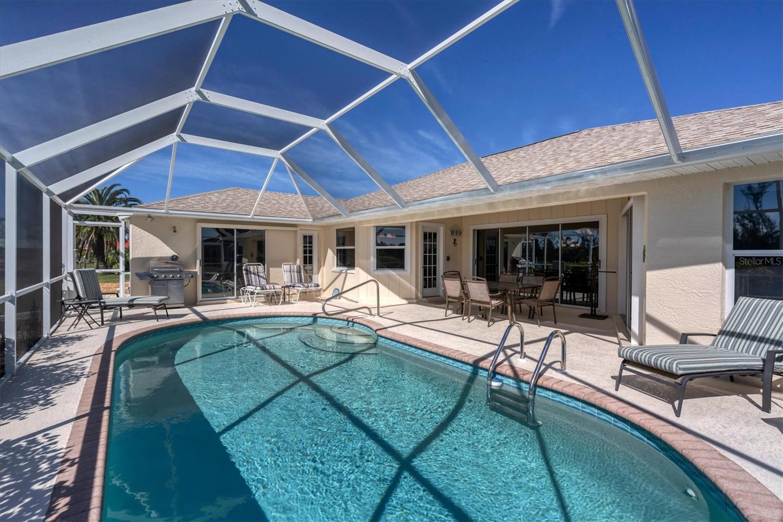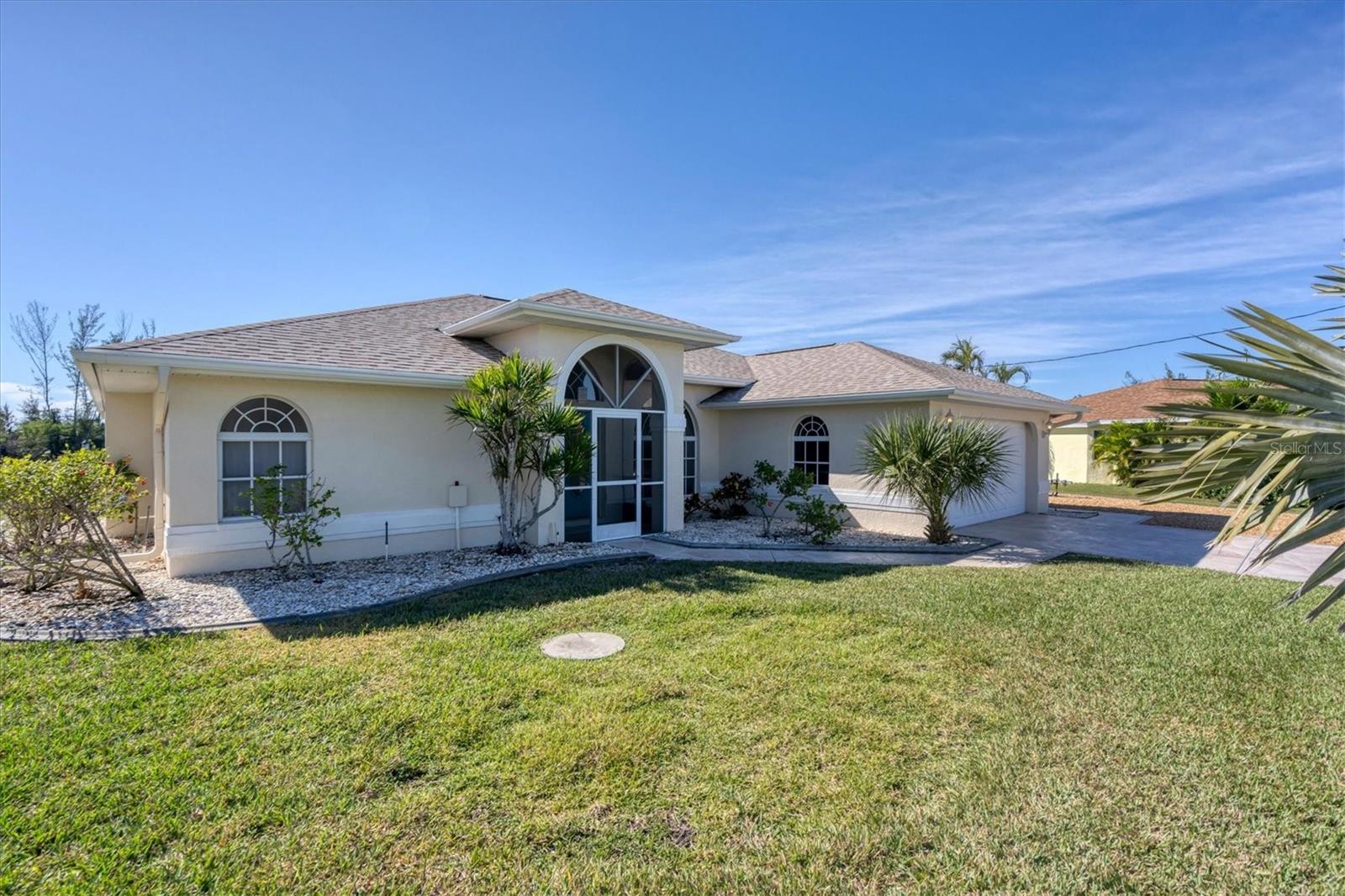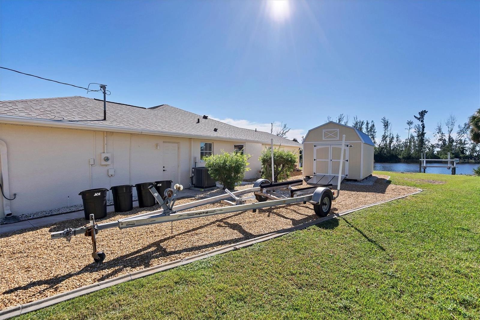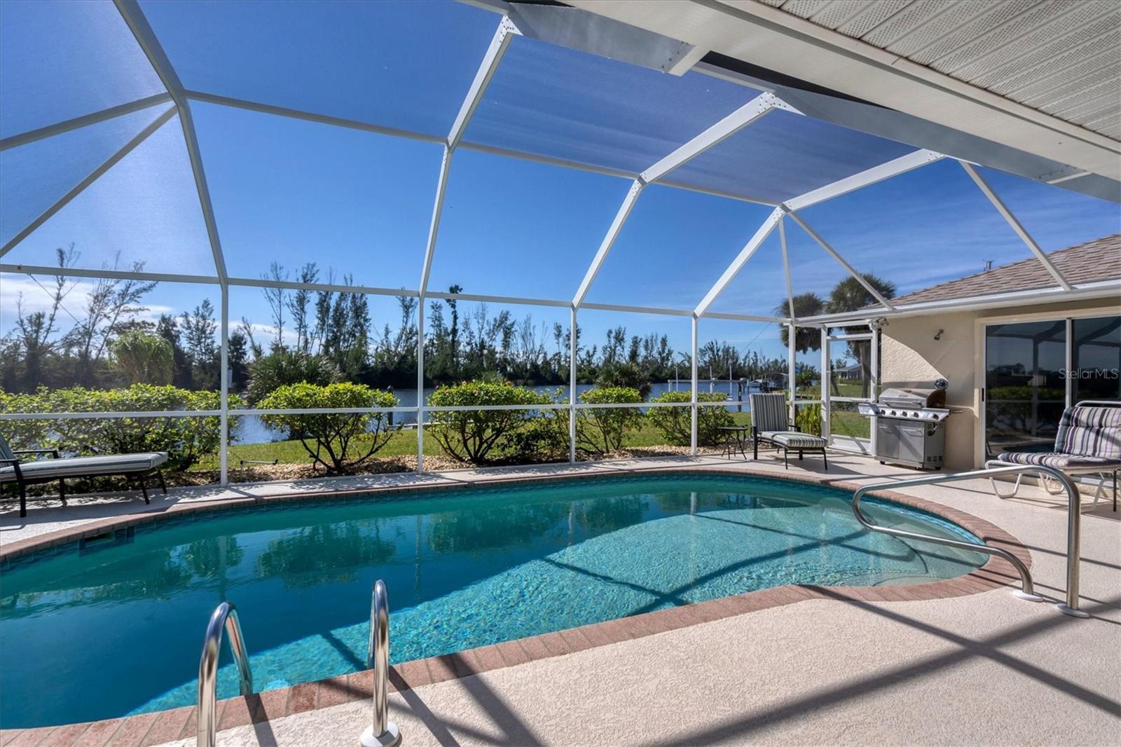 Location! Location! Location! This house sits on a beautiful tip lot with 167' frontage on the extra wide Santa Cruz Waterway with a preserve of trees beyond for a completely natural view. Hard to see any neighbors while sitting on the pool lanai, for extra privacy. Two different docks, one has a 10k power boat lift, the other is perfect for a sailboat. No bridges, direct out through the neighborhood lagoon and protected lock system, with easy boating up two different fresh water rivers, explore the wide estuary of Gasparilla Sound, and then boat up/down the ICW or beyond the barrier islands to the Gulf of Mexico. Perfect boating property. The house itself is older, but well maintained with so many recent updates you won't have any worries for quite awhile. New roof, shed, A/C, pool pump, irrigation pump. High elevation and the protective lock system protects the property from storm surges. With a beautiful Owner's suite on one side of the house, with sliders to the pool lanai and an ensuite bath with dual vanities, a tub and walk-in shower. The other 2 guest bedrooms are on the other side of the house with a shared bathroom with hall access to the pool lanai. The oak kitchen has tons of open counter prep space, a walk-in pantry, and a breakfast bar. The often-accessed refrigerator is set outside the main flow of the kitchen. Walls of glass open for an easy indoor/outdoor lifestyle with the best view in the neighborhood.