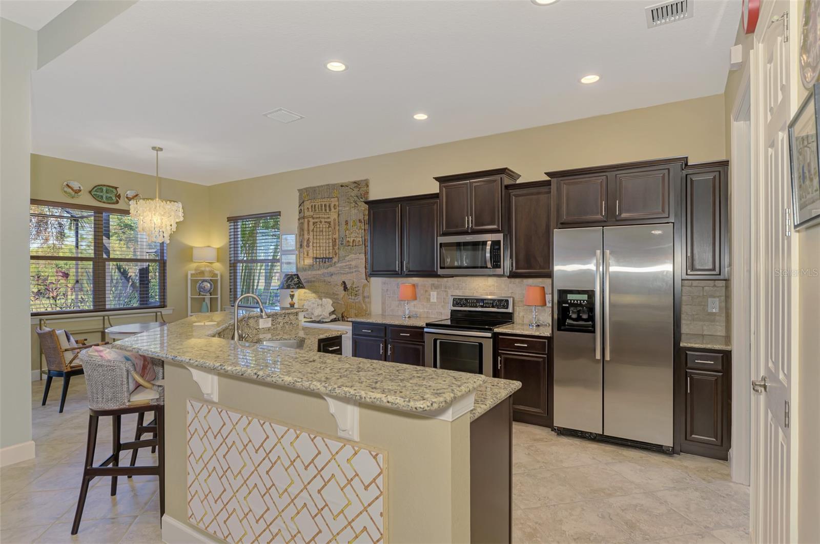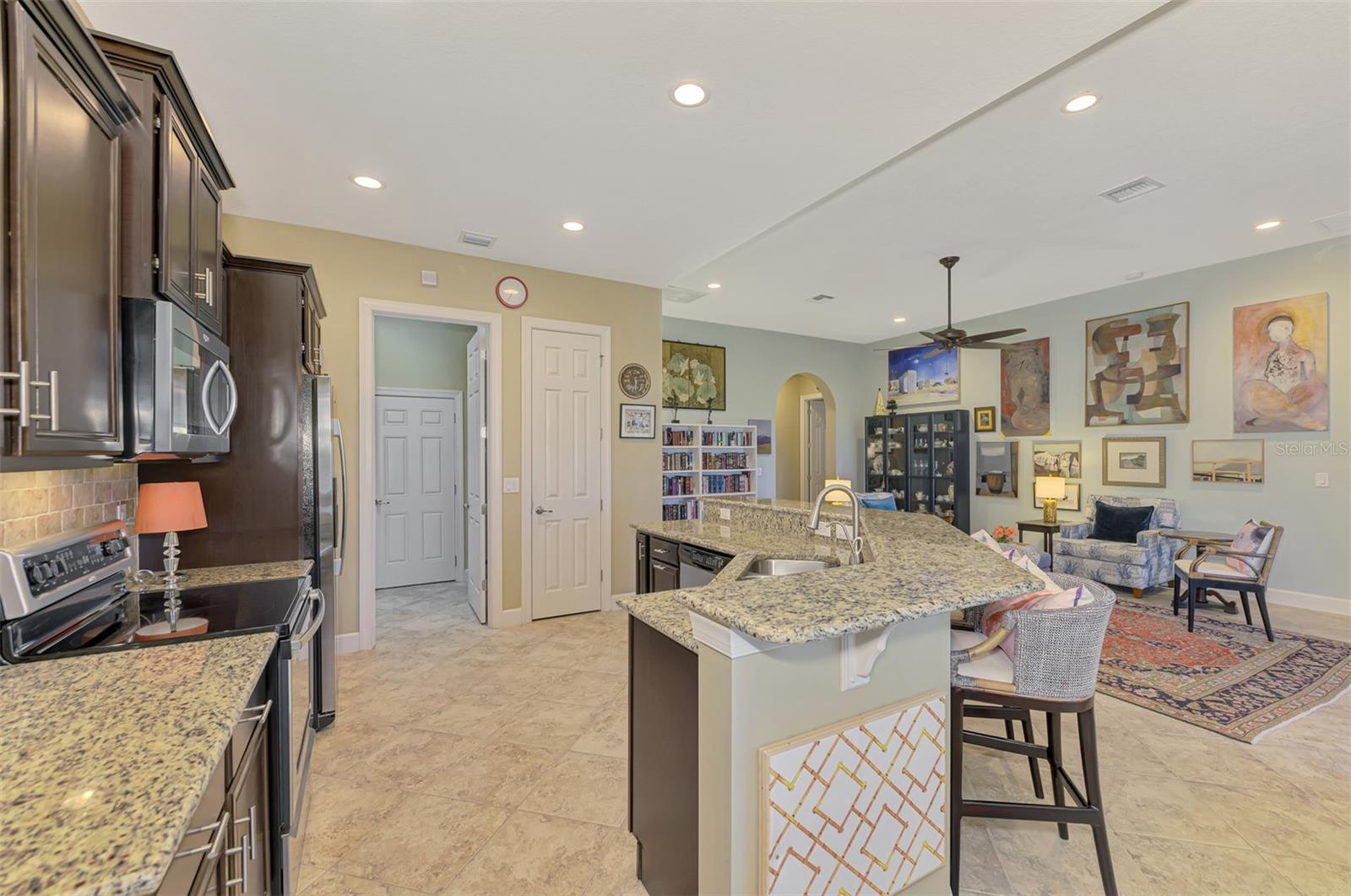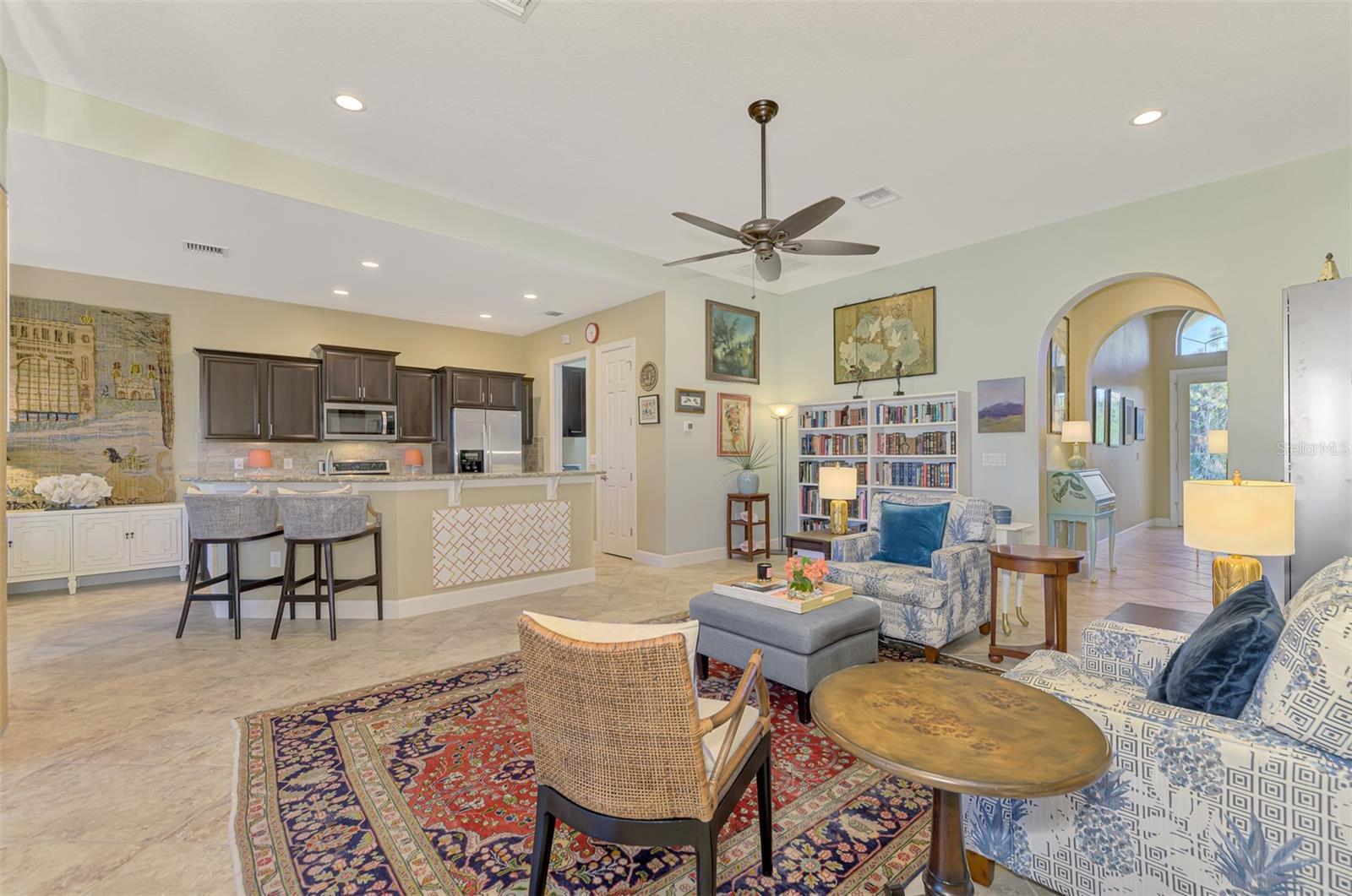 Start Living the Florida Dream by Owning This Well-Appointed Home! This impeccably maintained 2-Bedroom, 2-Bath + Den home offers the highly sought-after “Open” Bellingwood Great Room Plan, perfectly positioned to capture serene views of a peaceful preserve and scenic pond. From the expansive outdoor lanai with brick pavers, enjoy spacious sitting areas ideal for soaking in nature’s beauty and stunning sunsets. Step inside to discover architectural elegance, including a grand front entry, arched hallways, and impressive volume ceilings ranging from 10 to 13 feet, paired with 8-foot doors and 17-inch diagonal tile flooring throughout. The thoughtfully designed kitchen features espresso-stained cabinetry, a stylish tile backsplash, a large island with granite countertops, and premium stainless steel appliances. The primary suite features spacious, well-designed walk-in closets and is complemented by designer lighting and fans throughout the home. Additional highlights include an upgraded power storm shutter screen for the lanai and lush, mature landscaping. Schedule a showing today and begin living the grand Florida lifestyle you've been dreaming of! Property taxes include an annual CDD fee. Riverwood stands as a premier community in Southwest Florida, offering an exquisitely landscaped setting along the tranquil Myakka River, nestled between Fort Myers and Sarasota in Port Charlotte. Spanning 1300 acres, Riverwood's master-planned community seamlessly blends natural beauty with modern living trends. Enjoy an array of lifestyle amenities, including a recreation center equipped with a state-of-the-art fitness facilities, a Lap Pool and Resort Style pool, 6 har-tru tennis courts, pickleball courts, lawn croquet, and a dog park, among others! Riverwood Golf Club is recognized as a Golf Digest-rated 4 ½ star Golf Course, and Riverwood Beach Club on the Gulf of Mexico offers memberships based on availability. Conveniently located near the new Sunseeker Resort, which boasts a variety of restaurants, the Tampa Rays and Atlanta Braves Spring Training facilities, boating, world-class fishing, and the pristine beaches of Southwest Florida, Riverwood’s location provides easy access to a wealth of cultural and lifestyle opportunities.Discover your piece of paradise in this one-of-a-kind community!
