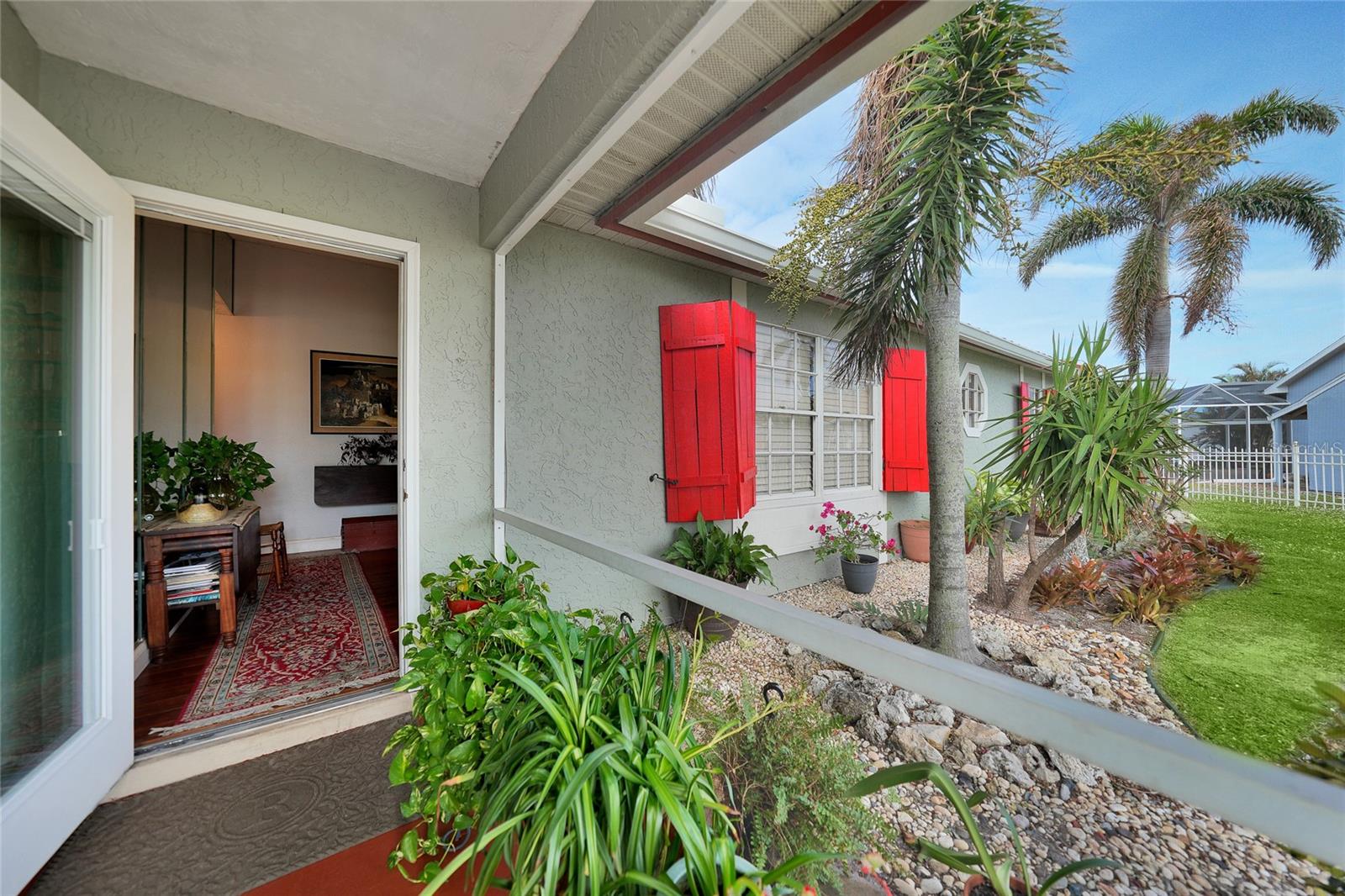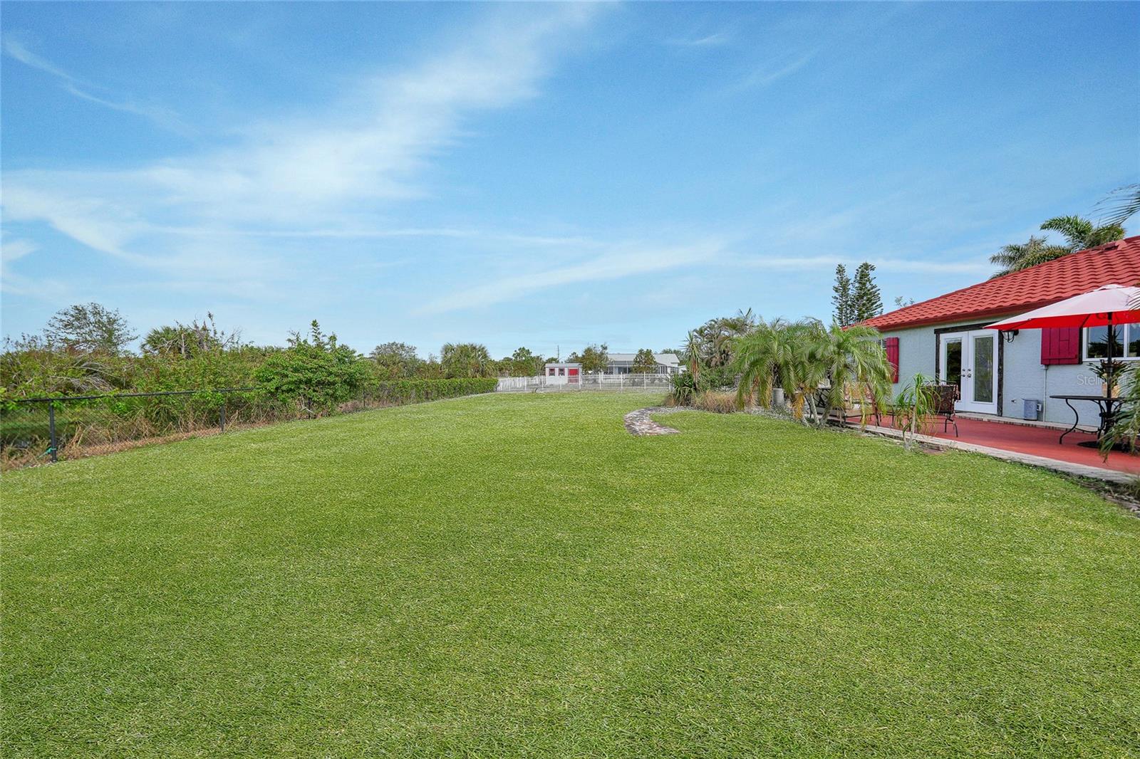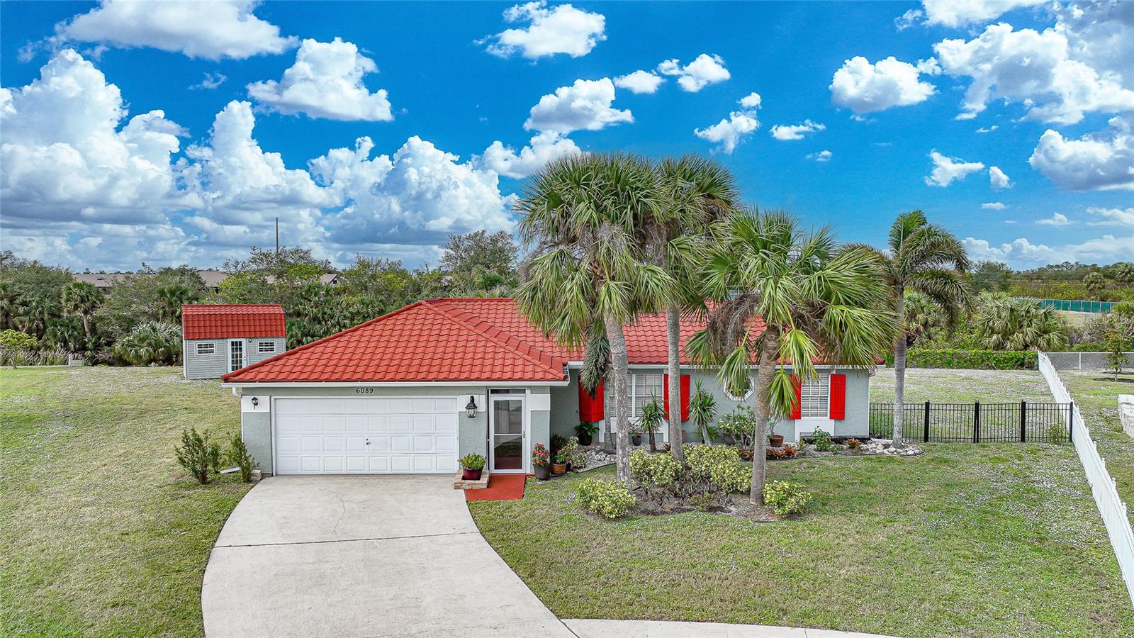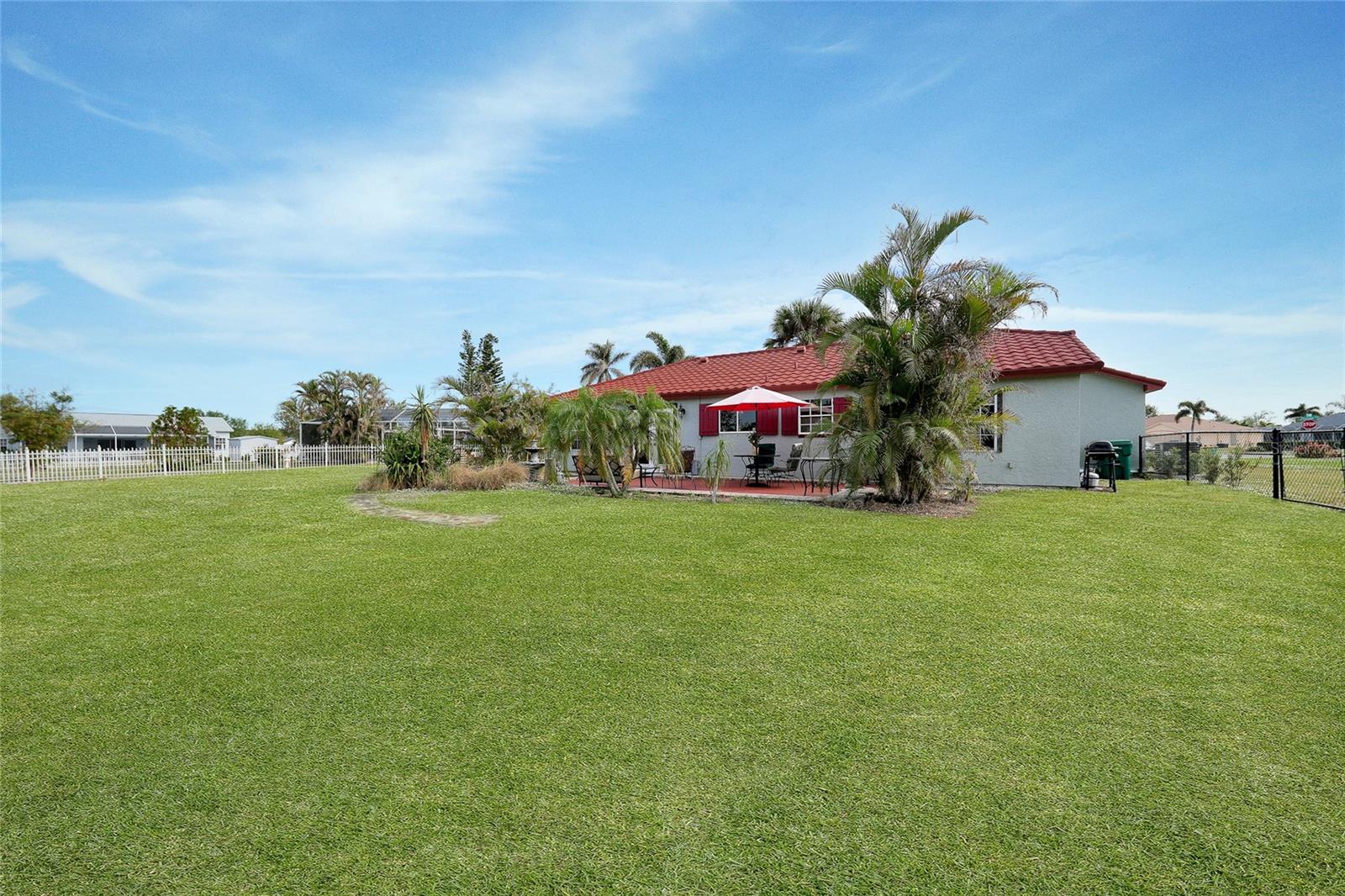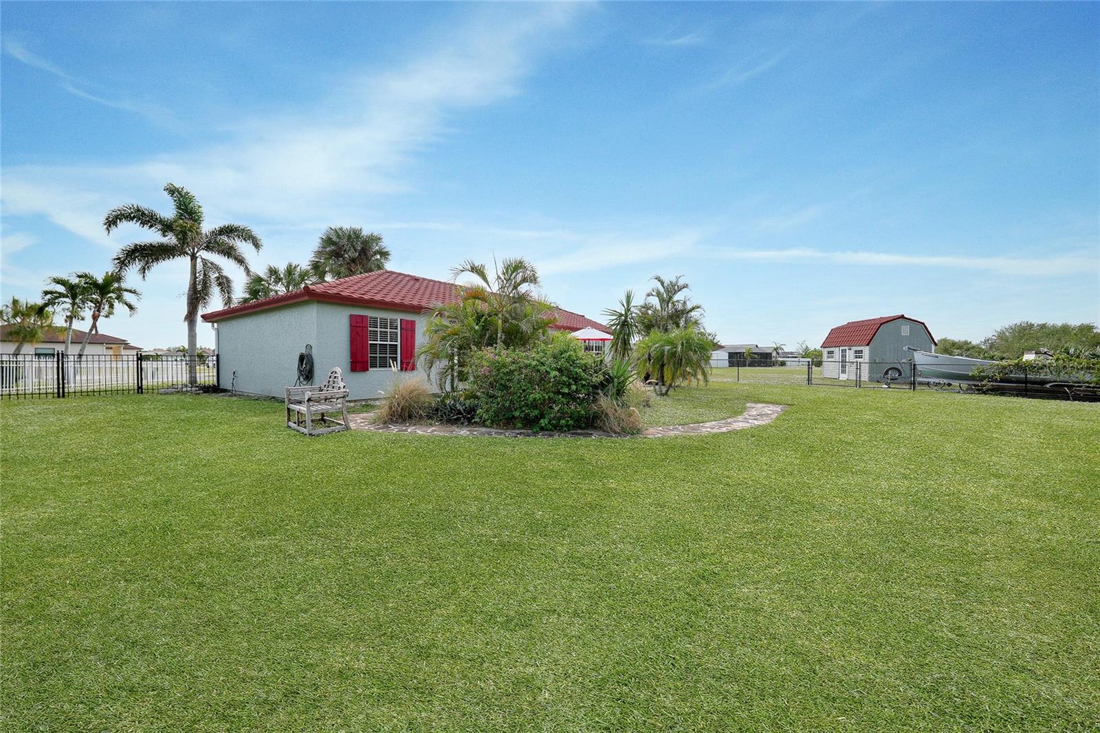 Nestled on an oversized 15,000 sqft lot overlooking a serene freshwater canal. Enjoy unmatched privacy and peaceful surroundings in this charming home, perfectly situated with no neighbors behind you. This home offers a rare sense of seclusion while still being conveniently close to local amenities. The backyard is your private retreat—ideal for relaxing, entertaining, or simply taking in the tranquil views without interruption. This beautifully updated 3-bedroom, 2-bathroom, 2-car garage home offers a perfect blend of tranquility and modern convenience. Surrounded by mature landscaping and a fenced backyard with drive-thru gates on the east and south sides, this property provides privacy and ample outdoor space for relaxation and entertainment. Step inside, and you'll immediately feel the relaxing and peaceful ambiance, enhanced by natural light streaming through and a seamless flow of living spaces. Laminate flooring, installed in 2017, adds warmth and style throughout the home, while abundant shelving ensures a clutter-free environment. The kitchen is a chef’s dream, featuring hardwood maple cabinets, butcher block countertops, a granite/epoxy sink, and top-of-the-line KitchenAid appliances, including an induction stove and a 2023 slimline microwave with a dedicated circuit. The primary suite is a true retreat, offering a walk-in closet, an ensuite bathroom, and a serene view of the backyard oasis. Two additional bedrooms, with one converted into a den that can be easily converted back to a bedroom. Recent updates include a newly painted exterior in 2024 and a durable steel, stone-coated barrel tile roof with a 50-year guarantee installed in 2023. A modern air conditioning system with new ductwork was added in 2021, ensuring year-round comfort. The property also boasts a versatile shed or man cave with abundant overhead storage, air conditioning, heating, and underground 110/220 50-amp service, perfect for RV hook up, hobbies, or additional workspace. Also includes a RV black water dump on the south side of the garage. The Gardens of Gulf Cove community offers a wide array of amenities, including two pools, tennis courts, bocce courts, water aerobics, shuffleboard, a fitness center, and two clubhouses for social events and activities. Conveniently located just minutes from beautiful Gulf beaches, shopping, and dining, this home combines the best of privacy, comfort, and accessibility. Don’t miss your opportunity to own this serene and stylish retreat in a sought-after community!