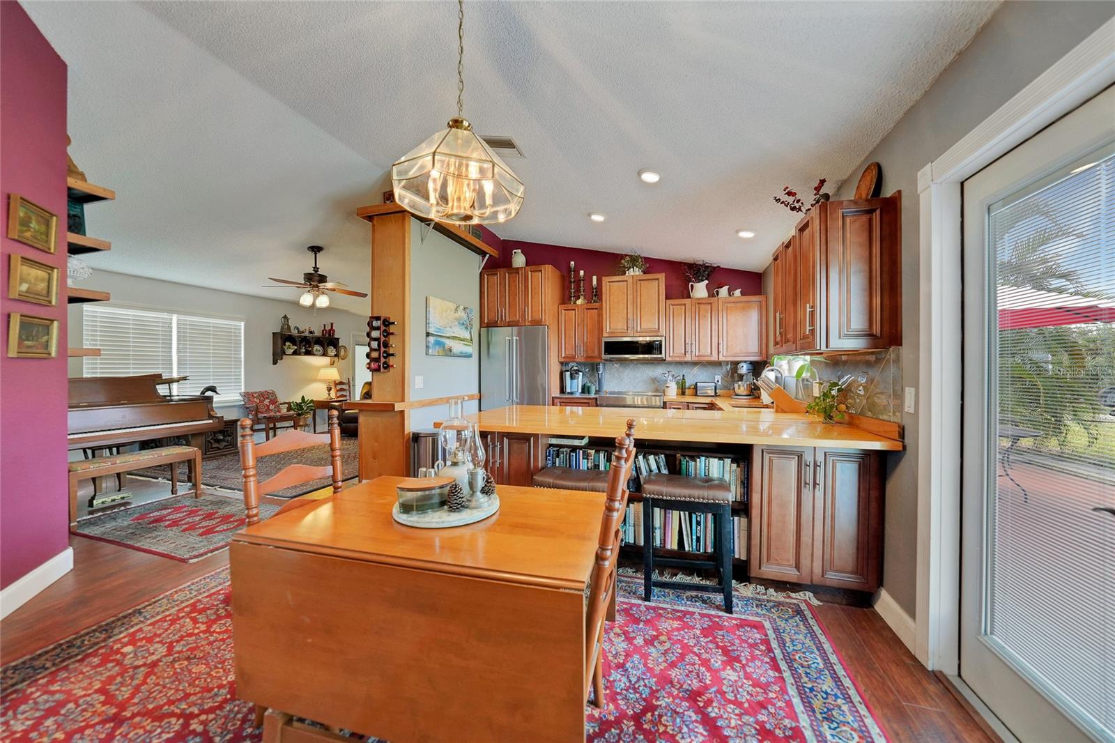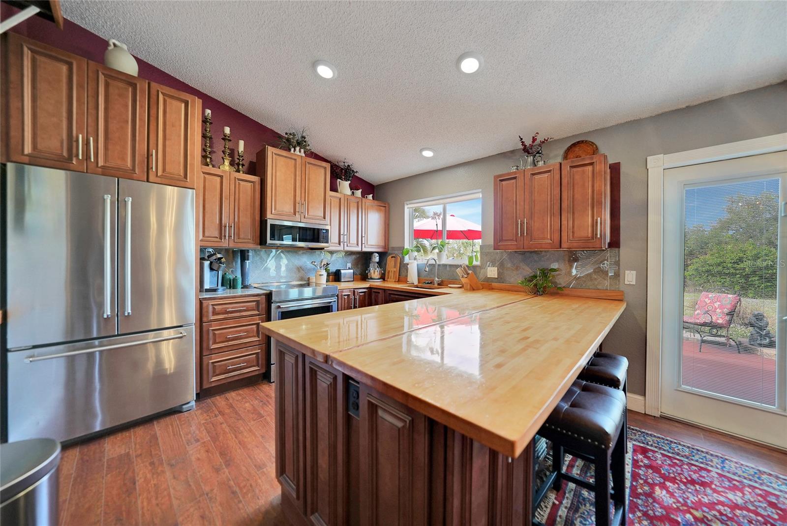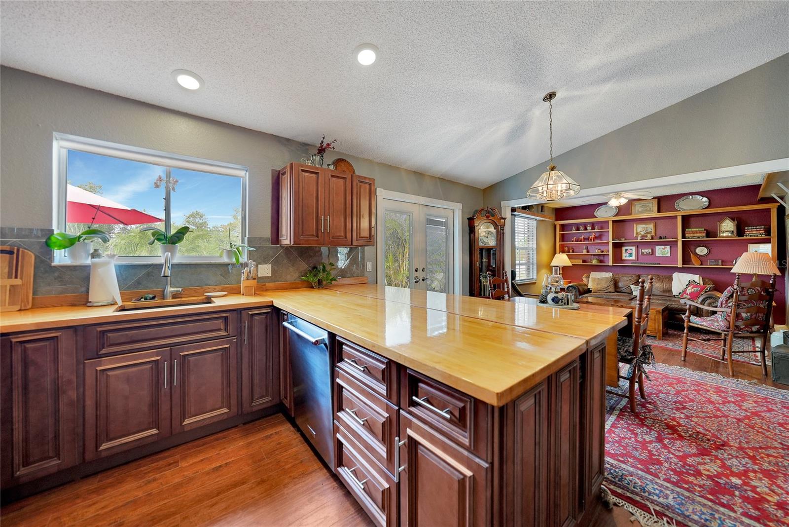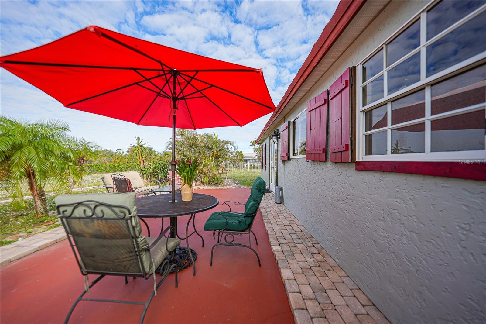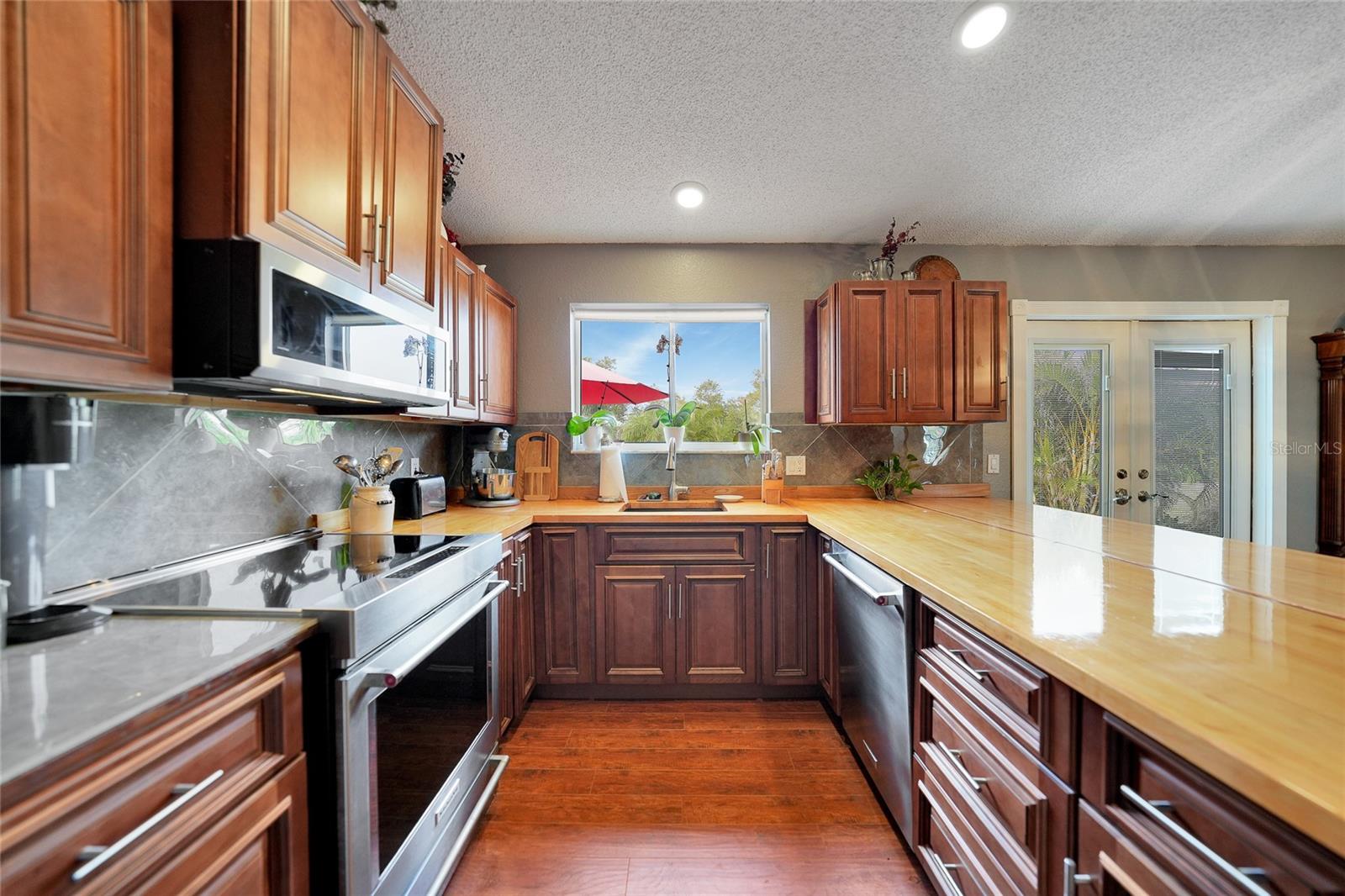 Nestled on an oversized 15,000 sqft lot overlooking a serene freshwater canal. Enjoy unmatched privacy and peaceful surroundings in this charming home, perfectly situated with no neighbors behind you. This home offers a rare sense of seclusion while still being conveniently close to local amenities. The backyard is your private retreat—ideal for relaxing, entertaining, or simply taking in the tranquil views without interruption. This beautifully updated 3-bedroom, 2-bathroom, 2-car garage home offers a perfect blend of tranquility and modern convenience. Surrounded by mature landscaping and a fenced backyard with drive-thru gates on the east and south sides, this property provides privacy and ample outdoor space for relaxation and entertainment. Step inside, and you'll immediately feel the relaxing and peaceful ambiance, enhanced by natural light streaming through and a seamless flow of living spaces. Laminate flooring, installed in 2017, adds warmth and style throughout the home, while abundant shelving ensures a clutter-free environment. The kitchen is a chef’s dream, featuring hardwood maple cabinets, butcher block countertops, a granite/epoxy sink, and top-of-the-line KitchenAid appliances, including an induction stove and a 2023 slimline microwave with a dedicated circuit. The primary suite is a true retreat, offering a walk-in closet, an ensuite bathroom, and a serene view of the backyard oasis. Two additional bedrooms, with one converted into a den that can be easily converted back to a bedroom. Recent updates include a newly painted exterior in 2024 and a durable steel, stone-coated barrel tile roof with a 50-year guarantee installed in 2023. A modern air conditioning system with new ductwork was added in 2021, ensuring year-round comfort. The property also boasts a versatile shed or man cave with abundant overhead storage, air conditioning, heating, and underground 110/220 50-amp service, perfect for RV hook up, hobbies, or additional workspace. Also includes a RV black water dump on the south side of the garage. The Gardens of Gulf Cove community offers a wide array of amenities, including two pools, tennis courts, bocce courts, water aerobics, shuffleboard, a fitness center, and two clubhouses for social events and activities. Conveniently located just minutes from beautiful Gulf beaches, shopping, and dining, this home combines the best of privacy, comfort, and accessibility. Don’t miss your opportunity to own this serene and stylish retreat in a sought-after community!