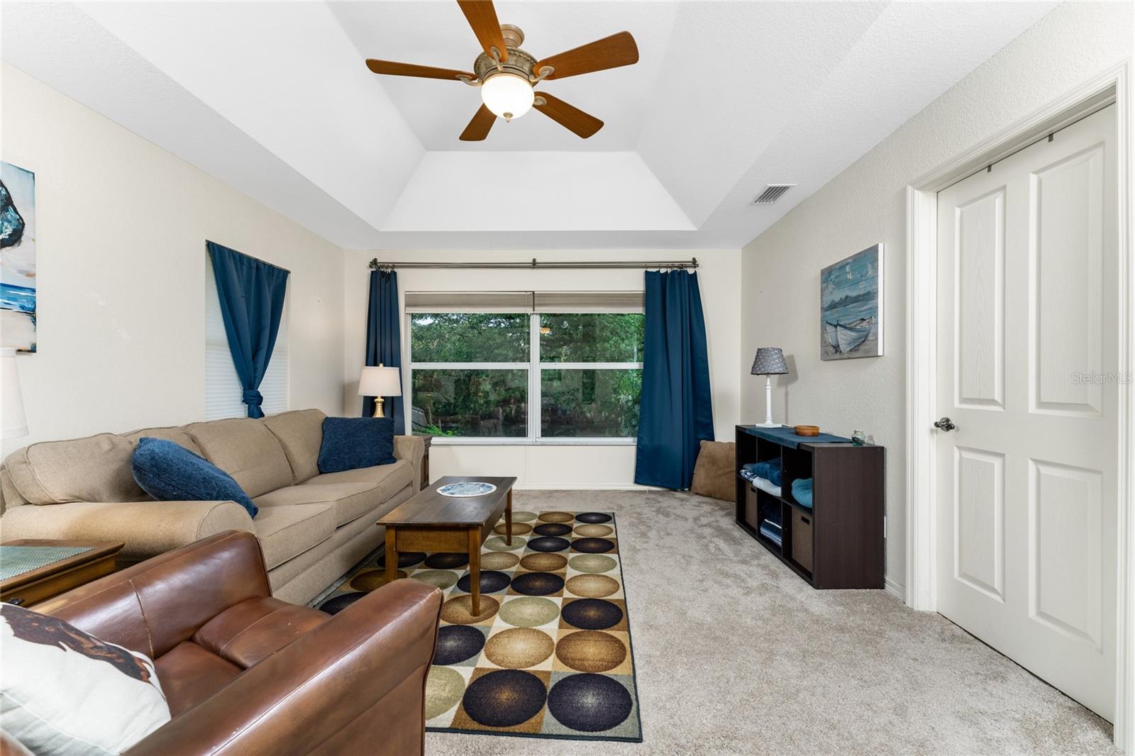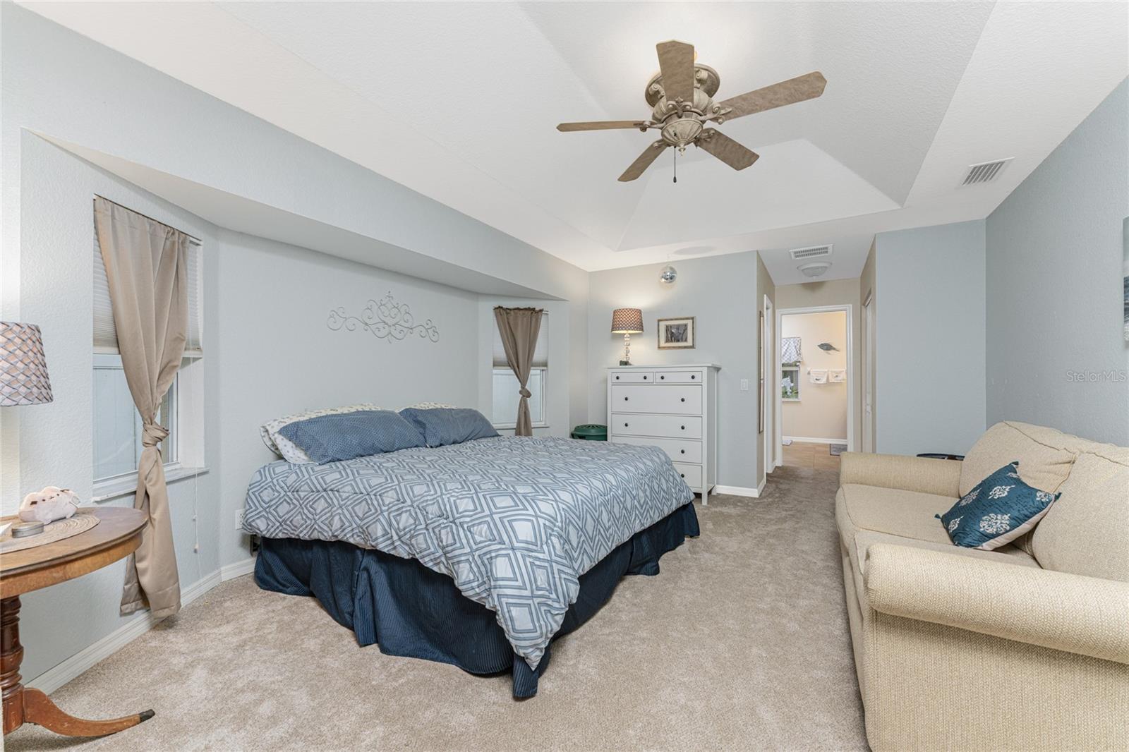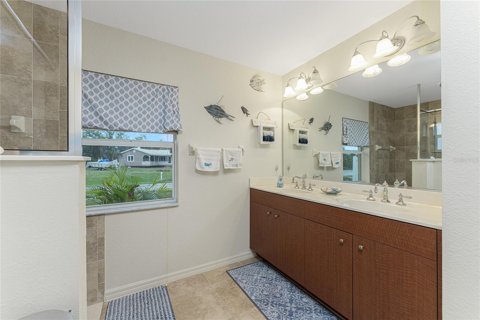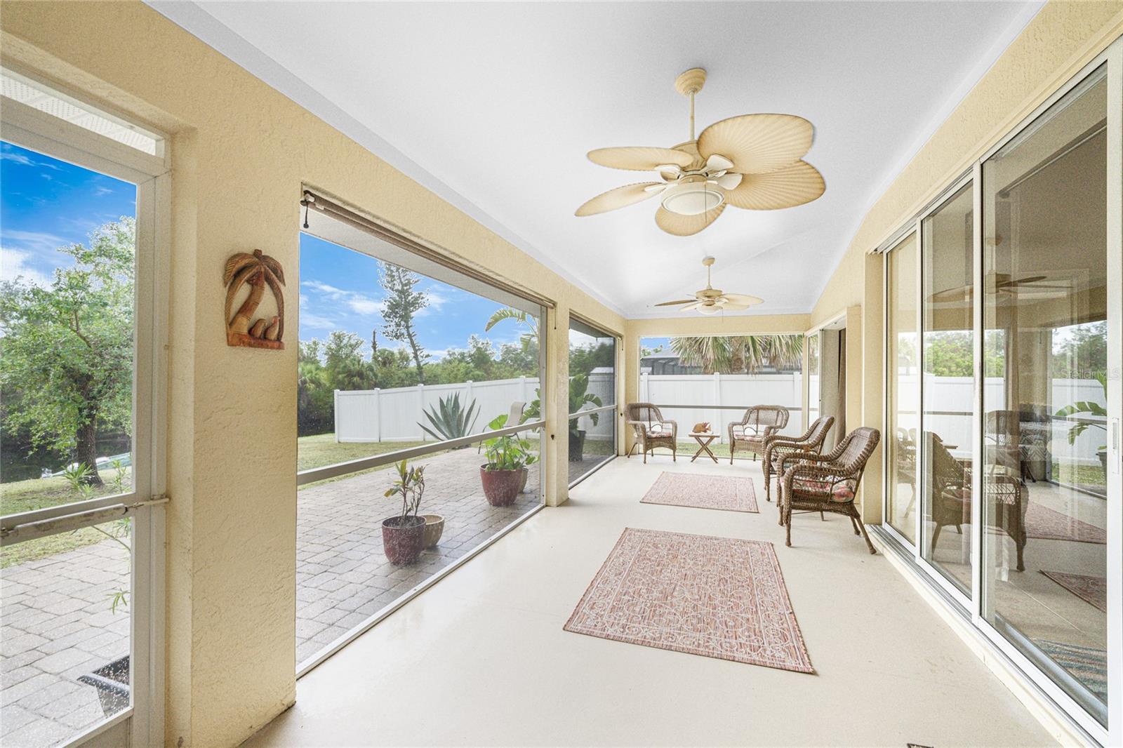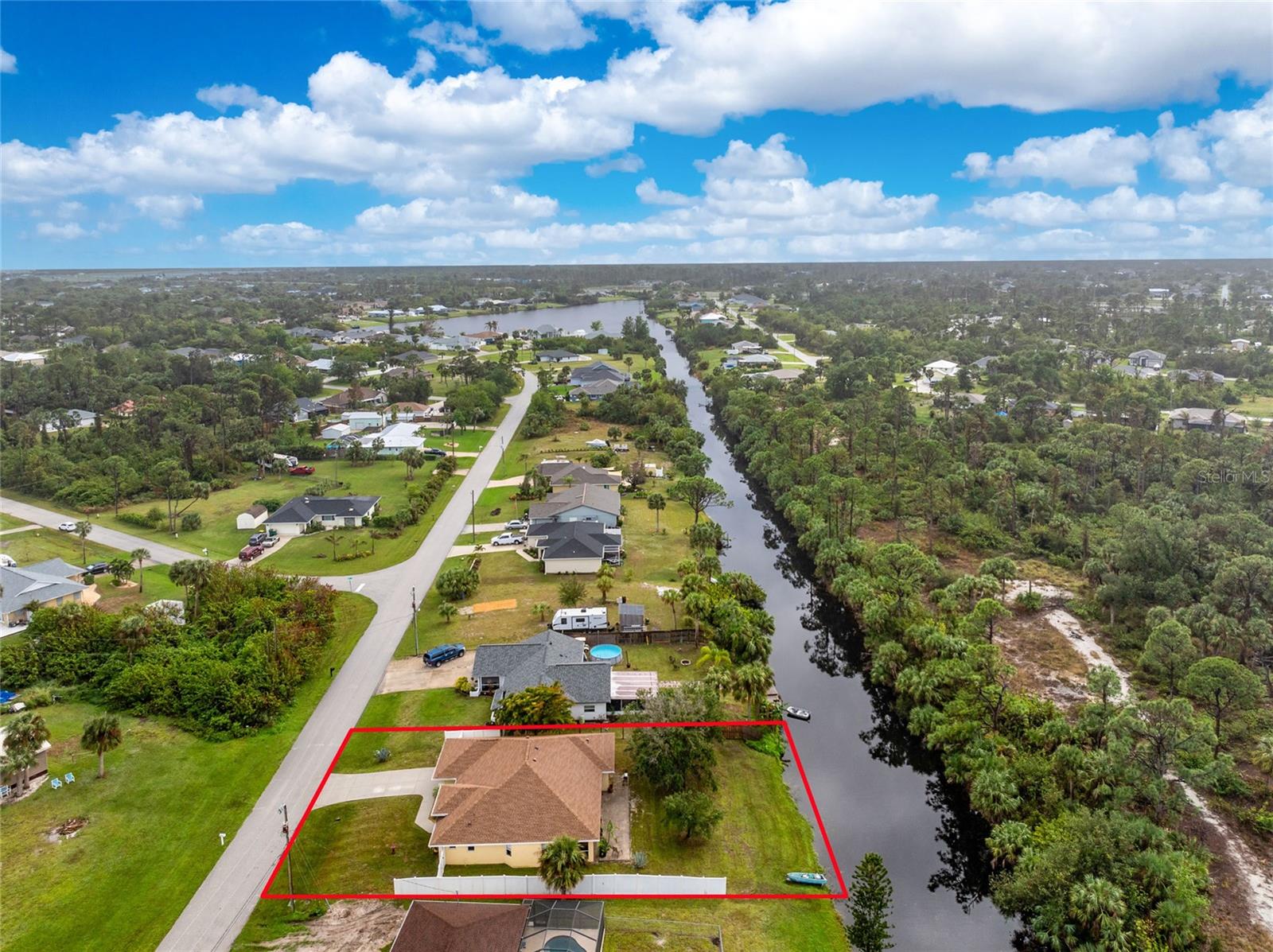 Need two MASTER SUITES? AND HUGE LANAI? No HOA either! Quick closing is possible! Take a look at this CUSTOM BUILT ROBERTS HOME, featuring two extra large bedroom suites - perfect for when those guests come to visit or that teenager who needs their own bathroom! This well maintained home on a Freshwater canal leading to BLUEBERRY LAKE features a gracious entry with tiled flooring and double front doors! Living/dining area has a cathedral ceiling w/ceiling fan, tiled flooring and 8' POCKET sliding glass doors leading to the lanai. Kitchen has both a breakfast bar AND nook area, providing choices for that morning cup of Joe or your lunch! Appliances include: Frigidaire smooth top stove and microwave, GE dishwasher, & Maytag French door refrigerator. Large walk in butler's pantry is just off the kitchen and provides loads of storage! Main bedroom has a 2' bumpout providing extra floor space, tray ceiling with fan, Walk in closet AND a wall closet, updated carpeted flooring and another set of sliding glass doors to the lanai! Main bath includes a Roman shower, raised height vanity with cultured marble top, linen closet, and tiled flooring. Bedroom #2 - which is your 2nd MASTER SUITE - also has a tray ceiling with fan, wall closet, direct access to the 2nd bath, and large windows in the rear, providing a view of the waterway! 2nd bath features a combo tub/shower, raised height vanity with cultured marble top, tiled flooring and exterior door, setting it up to be a pool bath if you ever added a pool! Large laundry room has a ceiling fan, utility tub, updated Speed Queen washer and dryer, and tiled flooring. Two car garage has an automatic garage door and pull down steps for access to the attic for storage. Huge lanai has TWO ceiling fans, outside shower and leads right out to the paver patio! Plenty of space for outdoor entertaining! Roof new in 2023. NOT IN A MANDATORY FLOOD ZONE SO YOUR LENDER WILL NOT REQUIRE FLOOD INSURANCE, SAVING YOU THOUSANDS OF DOLLARS OVER THE LIFE THAT YOU OWN YOUR HOME! Close to shopping, restaurants and just a short drive to area beaches! Come make this home your Florida get a way!!