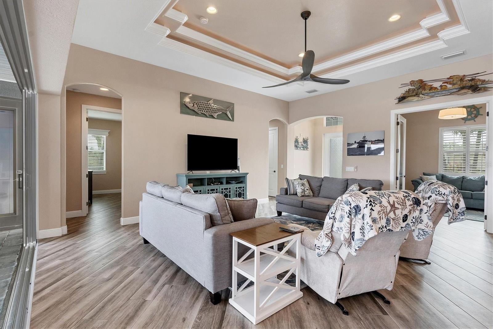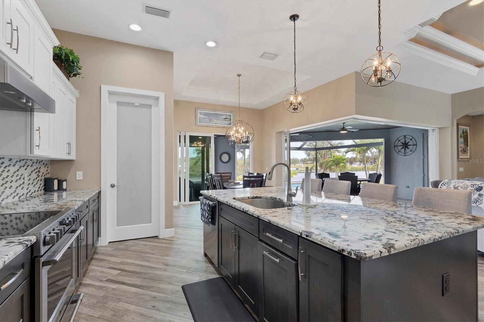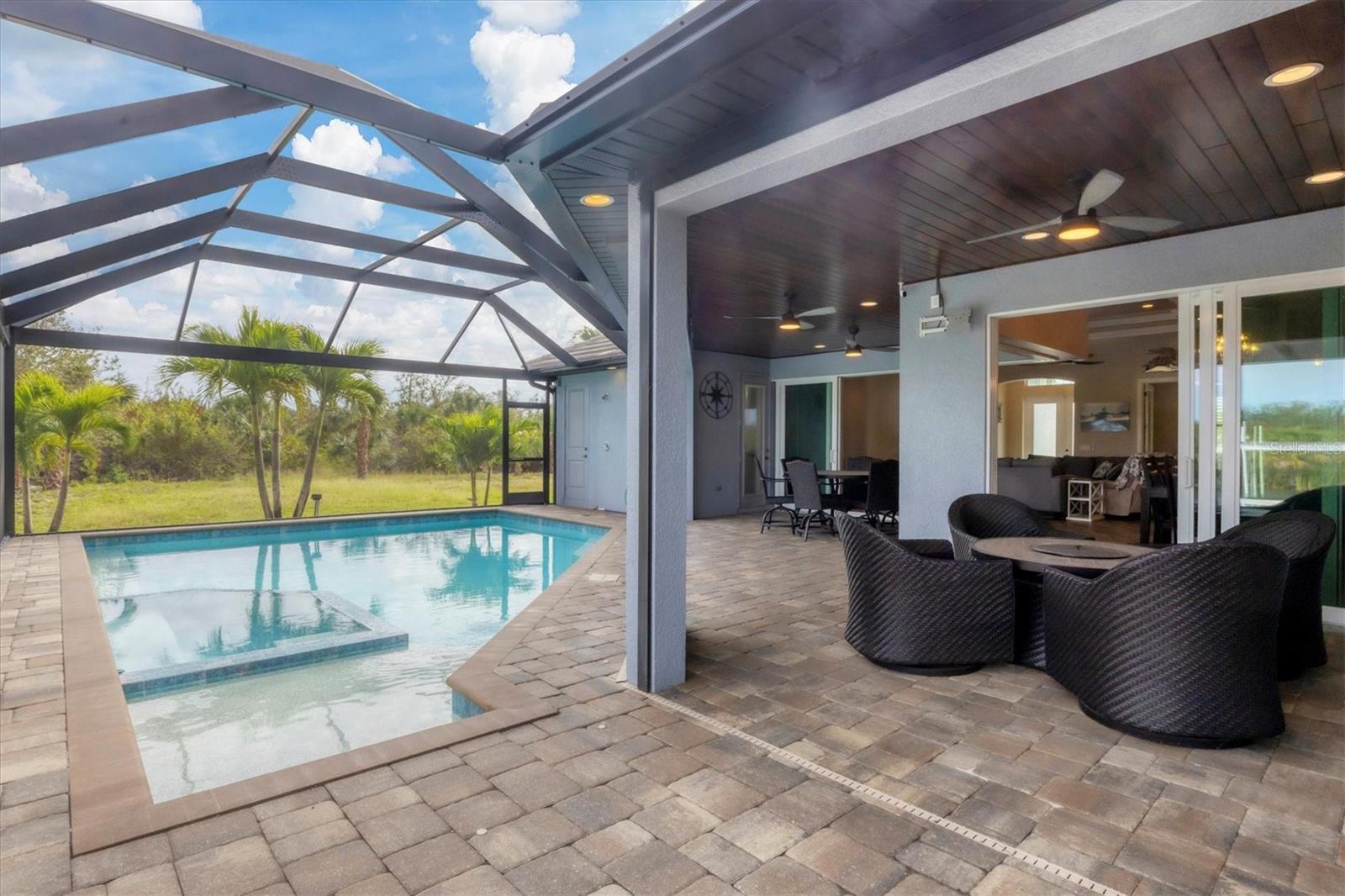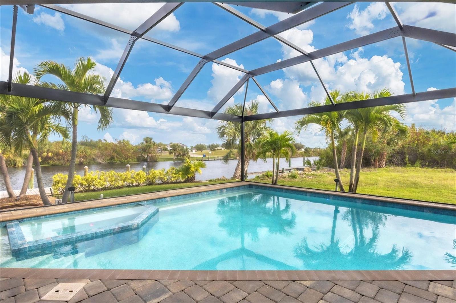 Welcome to an exceptional waterfront estate in the prestigious South Gulf Cove community, where luxury and lifestyle converge. Perfectly situated with Gulf access and a concrete seawall, this Custom-Built FURNISHED home is a masterpiece of design and functionality, just minutes from the world-renowned beaches of Boca Grande, Manasota Key, Venice, and Sarasota, as well as premier shopping and dining. This home features a thoughtfully designed split three-bedroom floor plan, three bathrooms, and a versatile den or flex space, offering both privacy and functionality for modern living. Included with this property is the adjacent vacant lot, complete with its own Gulf-access dock, offering endless possibilities for building a dream garage, storing boats or RVs, or simply preserving unmatched privacy. This beautifully furnished home is an exceptional opportunity, whether you’re seeking the perfect second home for coastal living or a lucrative investment property in a highly desirable waterfront community.<p> <p> From the moment you step through the grand double-door entry, you are greeted by a stunning blend of timeless elegance and modern sophistication. This three-bedroom, three-bathroom home, with an additional den/office and an oversized three-car garage, is filled with luxury finishes. Soaring ceilings, coffered details, crown molding, and 8-foot doors create a stately ambiance, while zero-degree sliding glass doors invite seamless indoor-outdoor living. The gourmet kitchen is a centerpiece, featuring 42-inch custom cabinetry with soft-close features, granite countertops, a glass tile backsplash, a pot filler, and top-of-the-line stainless steel appliances. <p> The outdoor space is a private oasis, designed for relaxation and entertainment. A newly installed pool cage (2023) surrounds the heated saltwater pool and spa, complete with a sun shelf, pebble finish, and LED multi-color lighting. The expansive lanai, adorned with stained wood ceilings and electric roll-down screens, offers the perfect setting for alfresco dining with a fully equipped built-in outdoor grill. For boating enthusiasts, the property boasts a 600-square-foot dock (new in 2021), and the included vacant lot provides a second dock, enhancing your waterfront lifestyle. <p> Built with energy efficiency in mind, this home includes a 16 seer A/C (new in 2023), Low-E impact windows and sliders, radiant barrier roof sheeting, and peel-and-stick weatherproof barriers, ensuring comfort and sustainability. Additional features include an oversized paver driveway, plantation shutters, custom electric blinds, an irrigation system, and professionally designed landscaping with accent lighting. <p> This estate is a rare offering, providing the ultimate in luxury, privacy, and potential. Whether you envision expanding with the adjacent lot, building the ultimate garage, or simply enjoying the exclusivity it affords, this property is truly unparalleled. Check out the Virtual Tour and schedule your private tour today and step into the waterfront lifestyle you’ve always dreamed of.