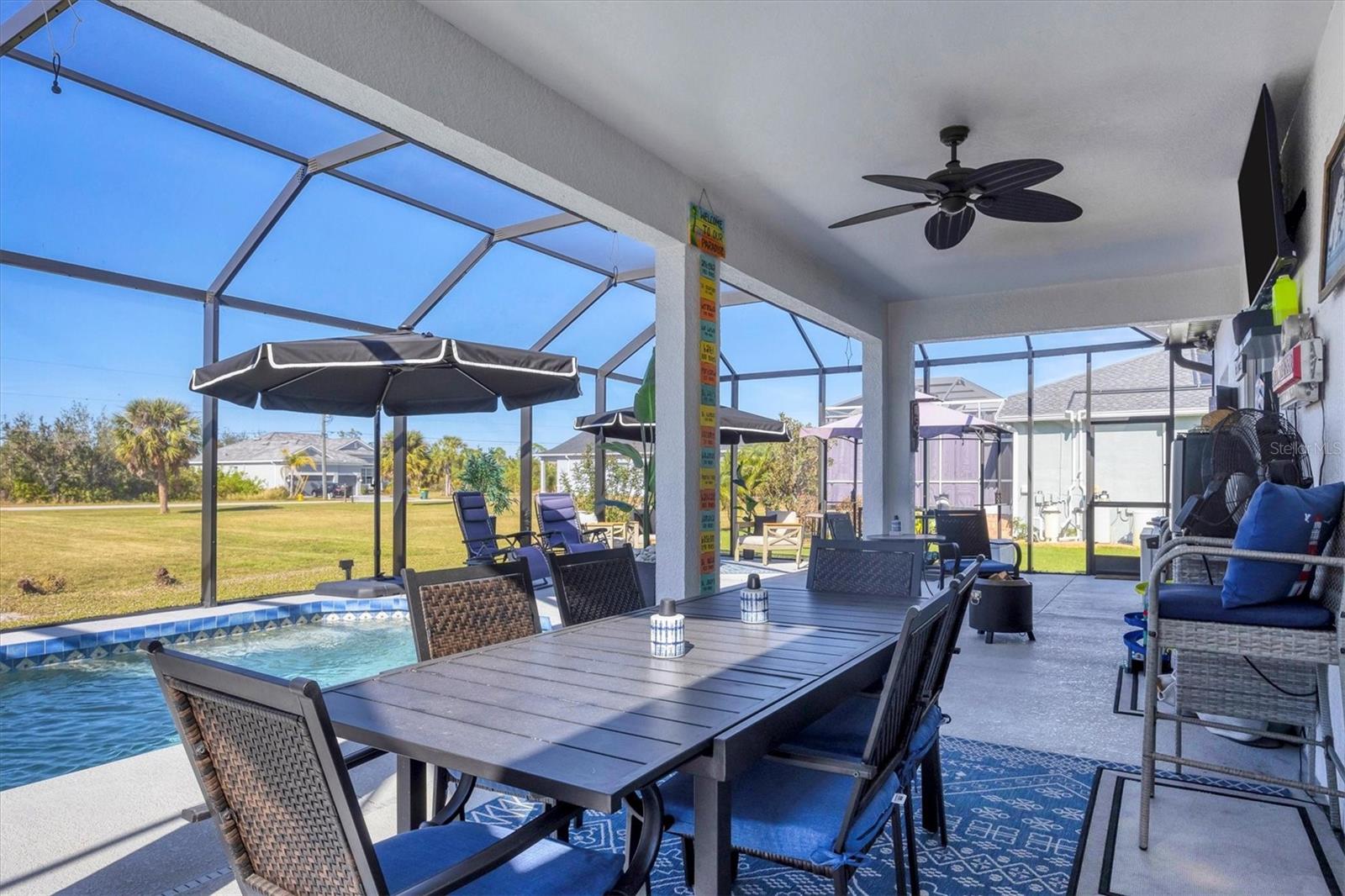 ****Motivated seller **** Beautifully upgraded 3-bedroom, 2-bath pool home with a flexible den space and 2-car garage in the highly sought-after boating community of South Gulf Cove! This home truly embraces the Florida lifestyle with an open layout that flows effortlessly to a tropical outdoor retreat. Enjoy your private screened pool (2023 cage) with new salt cell and pool pump (2024)—perfect for soaking up the sunshine or hosting weekend BBQs. Step inside to find tile flooring in main areas, luxury vinyl plank in bedrooms, and a gorgeous kitchen with granite countertops, black stainless appliances (2023), and modern style throughout. Bahama hurricane shutters (2023) offer both charm and peace of mind. Whether you're looking for a permanent home or a sunny getaway, this one checks all the boxes. Located just minutes from world-class beaches, boating, and golf, the best of Southwest Florida is right at your doorstep. Don’t miss your chance to own a move-in ready home in paradise—schedule your private showing today!
