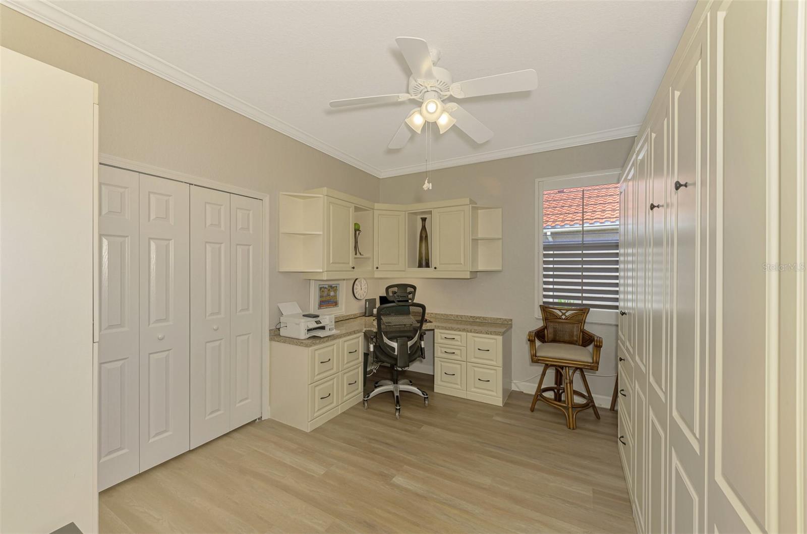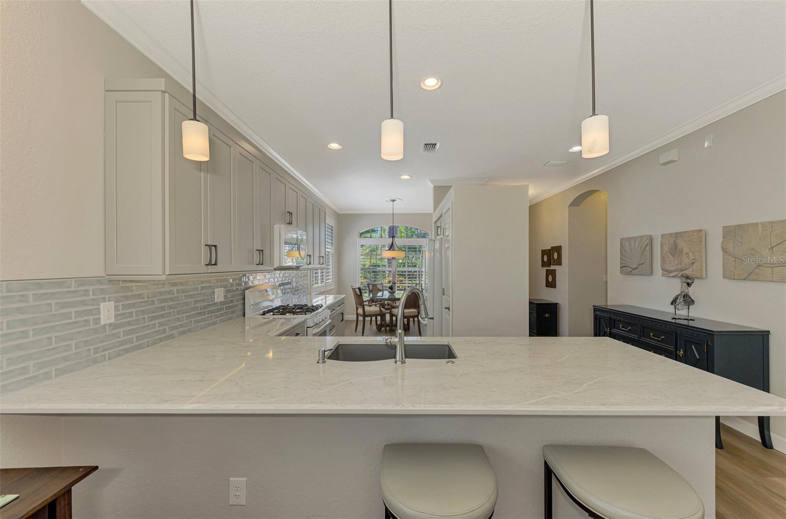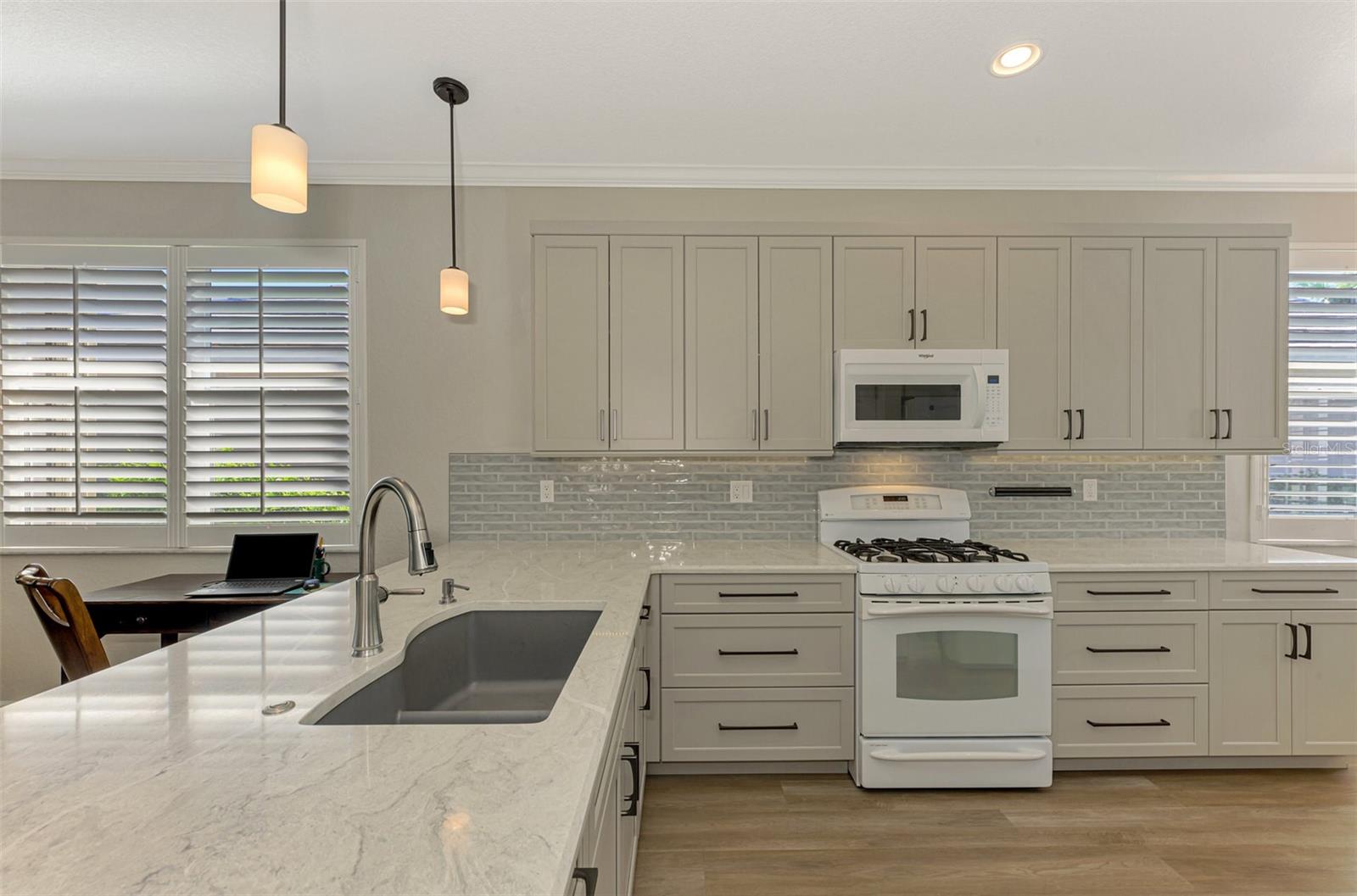Begin Living the Florida Lifestyle! From the home’s inviting curb appeal and well-maintained landscaping to its expansive outdoor lanai, this thoughtfully REMODELED, like new, 3 Bedroom 2 Bathroom home is ready for you to move right in! The expansive lanai for relaxation and entertaining features a heated oversized spa with decorative tile accents and a planter, all conveniently controlled with electronic settings. Surrounded by Florida’s natural beauty, the home offers serene water views that provide a peaceful and private retreat. Inside, the updated interior strikes the perfect balance between modern style and everyday comfort. Highlights include quality cabinetry, sleek quartz countertops and replaced appliances, complemented by upgraded luxury vinyl floors, a stylish tiled backsplash and a custom-built entertainment center. Plantation shutters, crown molding and other charming details add character throughout. The primary bedroom features a renovated bathroom with an expansive Roman walk-in shower and two closets for extra storage. The third bedroom offers versatility with a built-in desk and a Murphy bed, making it ideal for a home office or guest space. Adding even more value, this home includes a 2023 NEW METAL ROOF for peace of mind. Nestled in the resort-style, gated community of Riverwood, this home is perfectly situated to enjoy all the amenities and activities the neighborhood has to offer. Residents love the tree-lined walking and biking paths, tennis and pickleball courts, a lap and resort-style pool with a hot tub, fitness center, and a variety of social activities and classes at the Activity Center. Golf enthusiasts can take advantage of the Riverwood Golf Club’s Par 72 Championship course, while pet owners will appreciate the R.O.M.P. Dog Park. Members can also enjoy access to the exclusive Beach Club on Manasota Key (membership based on availability). Conveniently located between Sarasota and Fort Myers on Florida’s stunning West Coast, Riverwood provides easy access to boating, cultural events, dining, shopping, and the gorgeous beaches of Southwest Florida. This home is the ideal blend of relaxed living and stylish upgrades. Don’t wait—contact your agent today to view all that this well-appointed Riverwood Home and Community have to offer.