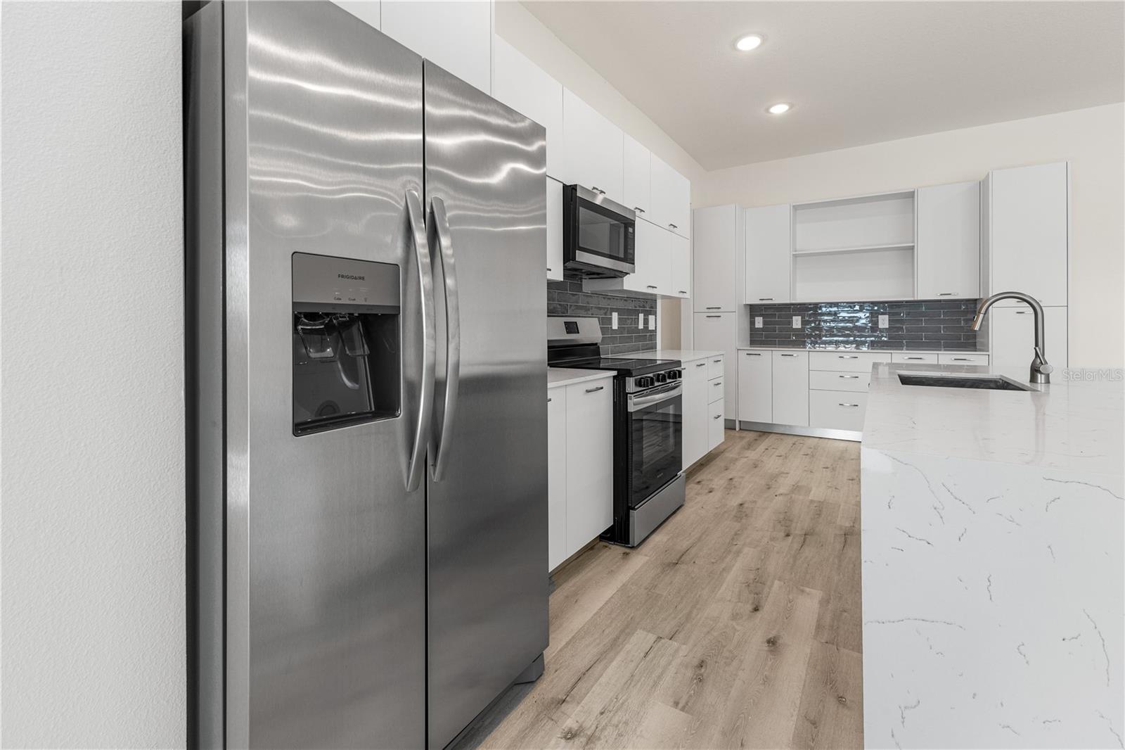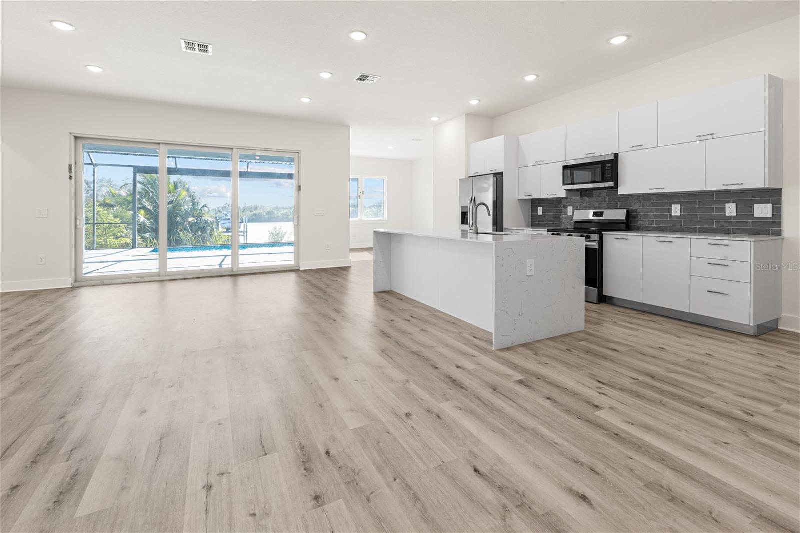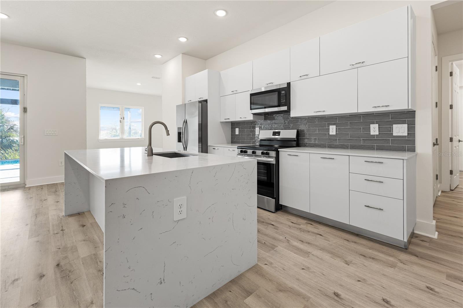 Discover this stunning new 4-bedroom, 4-bathroom home in South Gulf Cove, boasting a southern exposure. It's the epitome of modern living, designed with families in mind. The open-concept kitchen, living, and dining areas ensure a fluid space for daily life and social gatherings. The kitchen is a modern marvel with extensive counter space and generous storage options. The residence features an expansive main suite, a welcoming guest bedroom, and two additional bedrooms connected by a practical Jack-and-Jill bathroom. Venture outside to the vast, secluded lanai, complete with a gleaming salt water pool and ample space for entertainment—perfect for hosting or unwinding in the open air. The garage offers abundant storage and parking, along with a sizeable laundry room for added convenience. The home is graced with 10-foot ceilings throughout. Its completely open floor plan supports various furniture arrangements. A massive quartz island, measuring 8.5' by 3.5', features elegant waterfall edges. The extraordinary walk-in pantry, 8' by 4', includes custom shelving and storage drawers. The lap pool, with its sun shelf/tanning ledge measuring 8' by 8', accommodates 2-3 sun loungers. All closets come equipped with organizational systems to optimize storage. Embrace the contemporary design, thoughtful layout, and incredible outdoor area of this home, ideal for both family life and entertaining. Seize the opportunity—book a viewing today!