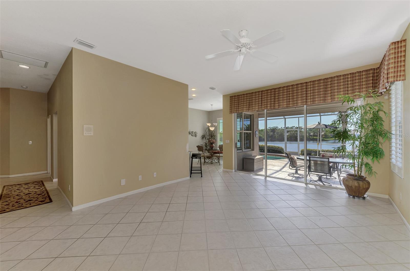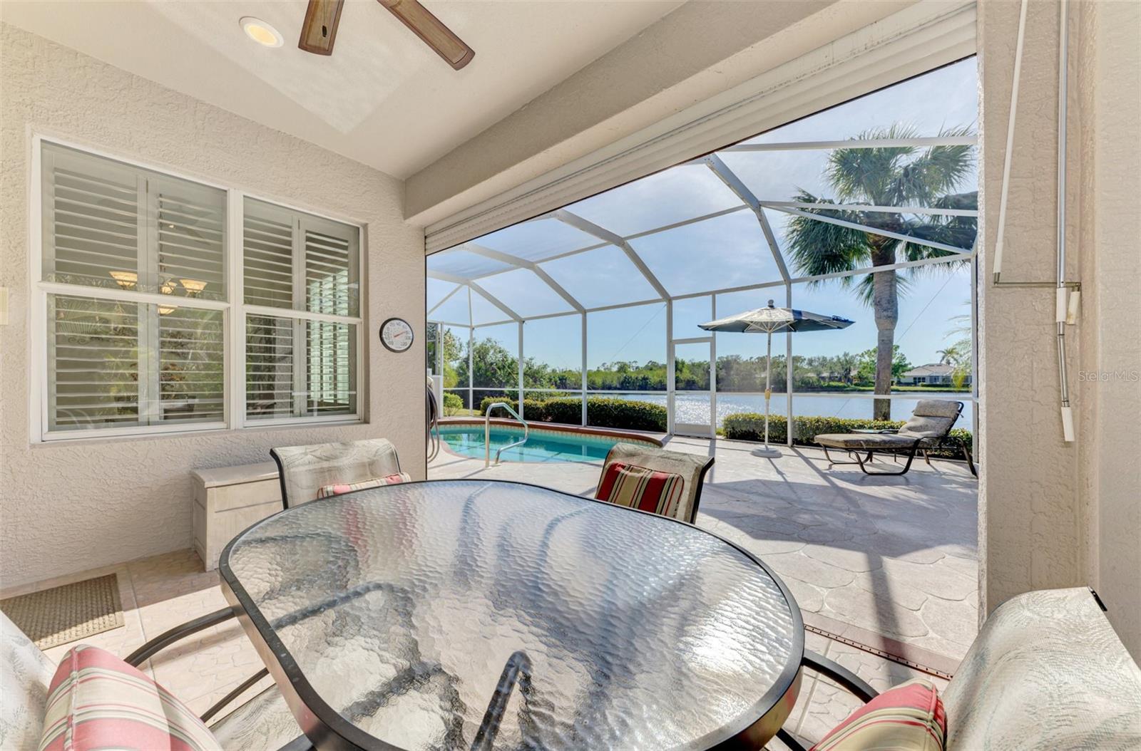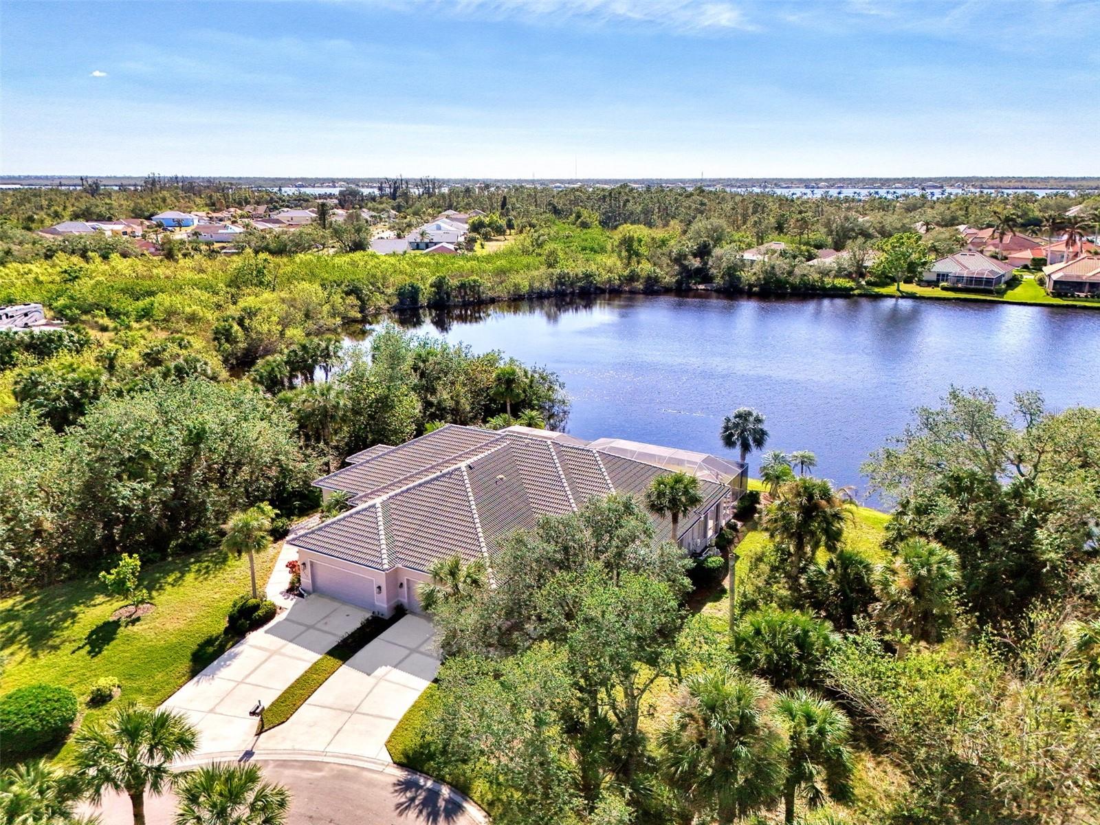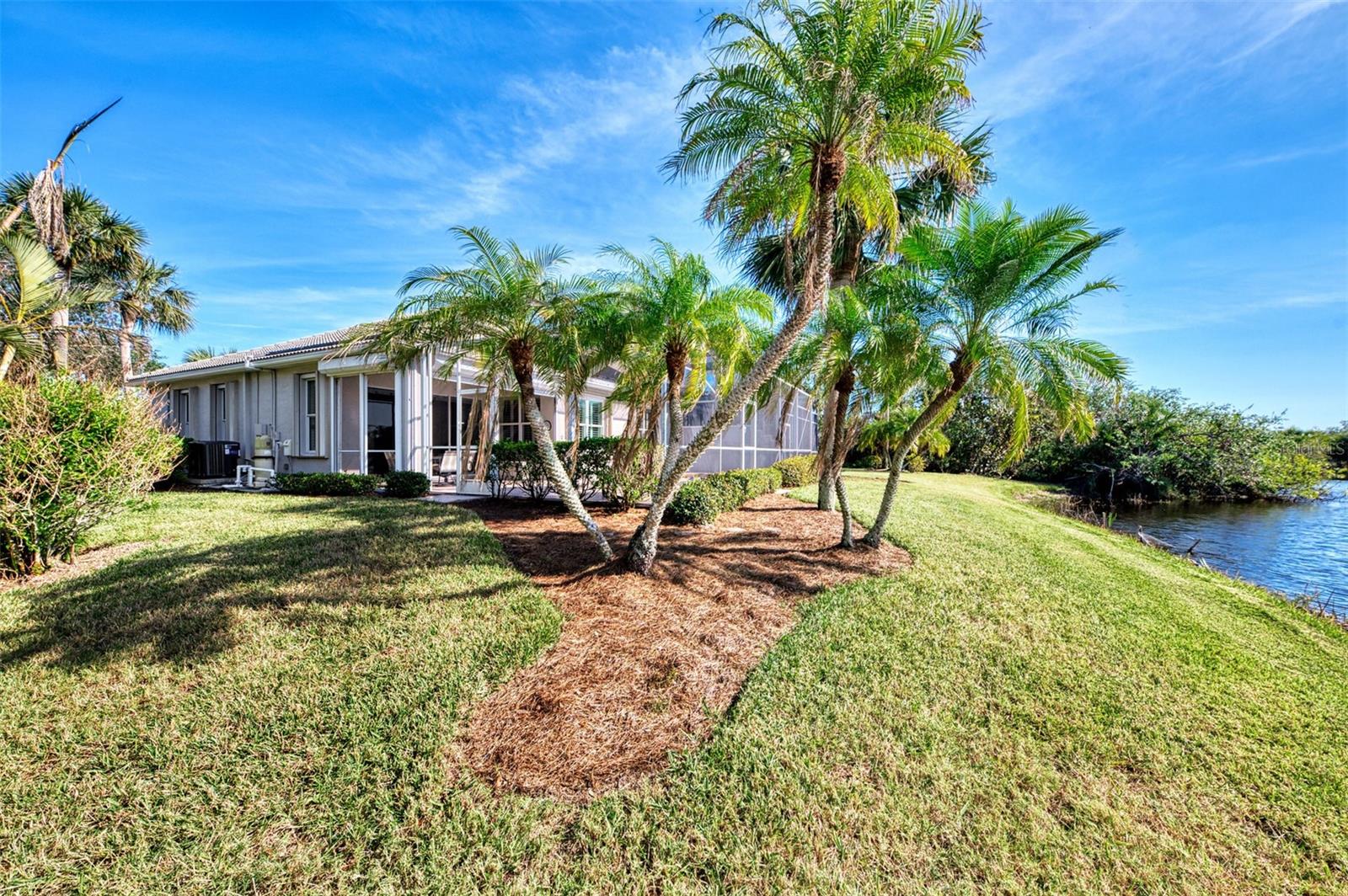SELLER MOTIVATED! $8,400 CREDIT TO BUYER AT CLOSING WITH ACCEPTABLE OFFER. SPECTACULAR WATER VIEW! Private 2 Bedroom, 2 Bath +Den Villa & Solar Heated Pool in beautiful RIVERWOOD! A Cul de Sac location and adjacent preserve providing additional privacy. Desired Southwest Exposure and gorgeous sunsets from the tiled Lanai and spacious pool deck. Expansive backyard Pond View with wading birds, fish and other wildlife. Light, bright home interior! An Updated Kitchen w/Granite counters, counter-height breakfast bar, stylish glass "subway tile" backsplash, cabinets with crown and LED under cabinet lighting, pull-out drawers, composite deep sink and Kenmore Elite fridge and Maytag double-oven range. Primary Bath Remodeled to create an Accessible walk-in, curbless Shower & Quartz topped vanity, closet and new lights Ceramic Tile Flooring on Diagonal in living areas; carpet in Bedrooms. Plantation Shutters throughout. Tubular Skylights in the Primary Bathroom and Laundry Room. Upgraded Storm Protection: Accordion Shutters at all windows, Roll down Shutters at Front Entry and Lanai, PLUS Impact Windows at Dinette, Primary Bedroom and in Den's front window. 2022 A/C 16 SEER. 2021 Water Heater. 2016 front load Washer & Dryer. Both Bedrooms equipped with Closet Built-Ins for easier and efficient organization. Abundant garage Cabinets and Shelves. All furnishings and personal property convey to Buyer with minimal exceptions. Riverwood: 1300 acres, gated, golf, resort style community. NEW RESORT STYLE & LAP POOL. SEPARATE FITNESS CENTER, PICKLEBALL COURTS, NEW SMALL AND LARGE DOG PARKS! Enjoy all that Riverwood has with our lush tree lined streets, renovated activity center with all the social activities offered, 6 Har-Tru tennis courts, croquet court. An Audubon Green Community Award Winner for its natural habitat for Florida Wildlife. Optional amenities: Dog Park, Riverwood Golf Club, Par 72 Championship course & Beach Club on Manasota Key. Close to boating, cultural events, dining, shopping & beautiful beaches of SW FL. Located between Sarasota & Ft Myers on Florida’s West Coast in Paradise!